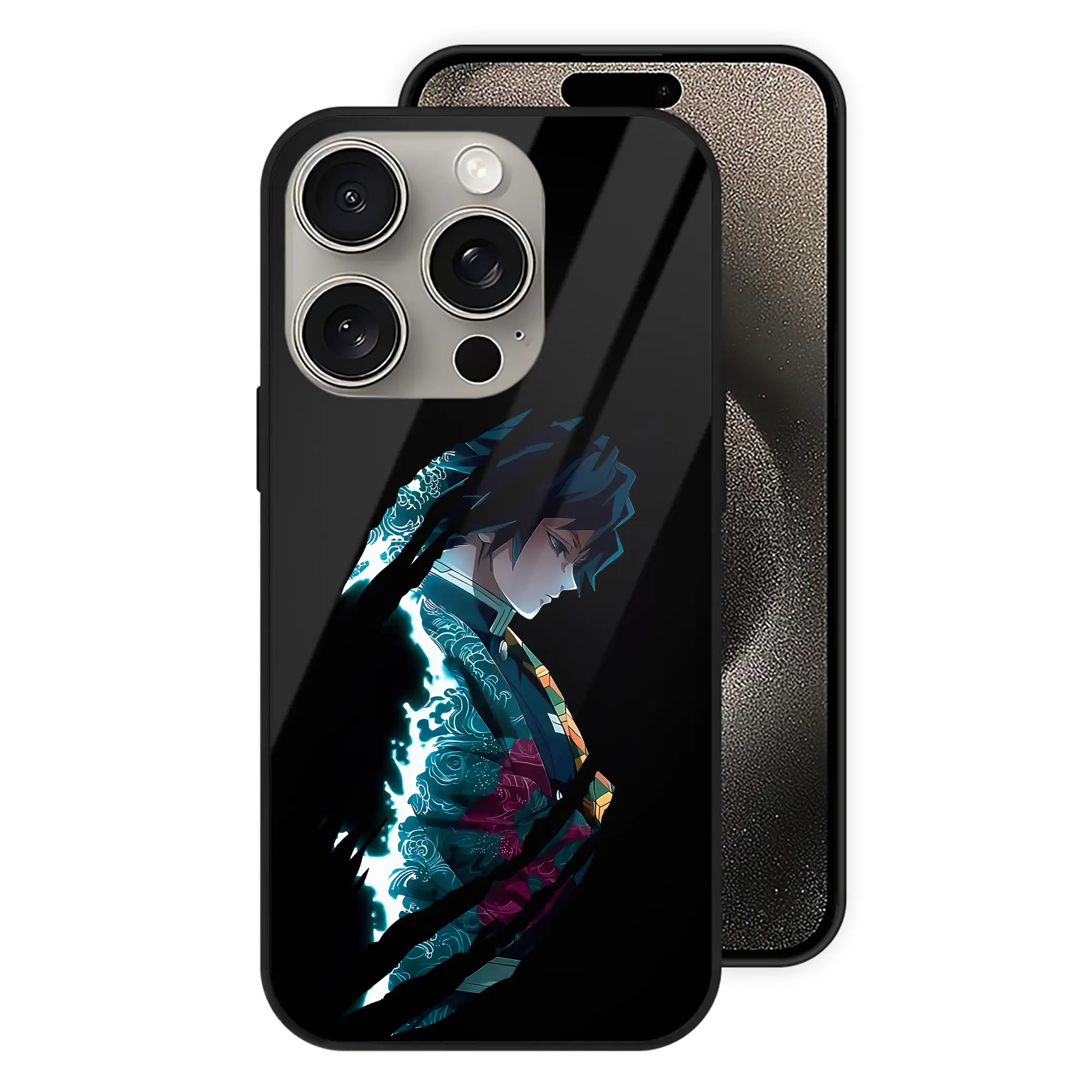 鬼滅の刃 グッズ,冨岡 義勇 - IPhone15Pro対応 ・ スマホケース ・ 背面ガラス ・ TPU+強化ガラス ・ 耐衝撃 ・ 黄変防止 ・ ワイヤレス充電対応 ・ 3D立体ボタン