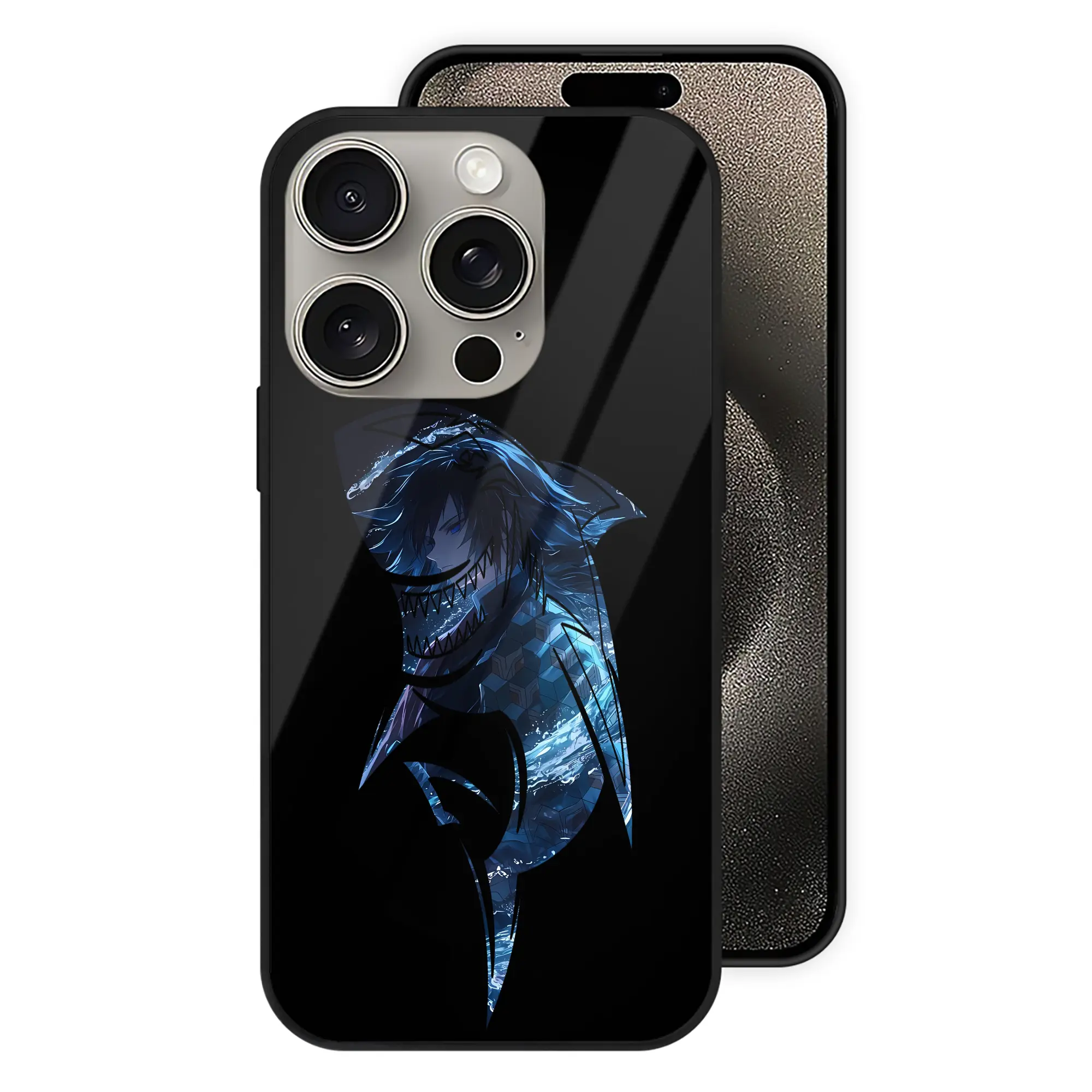 鬼滅の刃 グッズ,冨岡 義勇 - IPhone15Pro対応 ・ スマホケース ・ 背面ガラス ・ TPU+強化ガラス ・ 耐衝撃 ・ 黄変防止 ・ ワイヤレス充電対応 ・ 3D立体ボタン