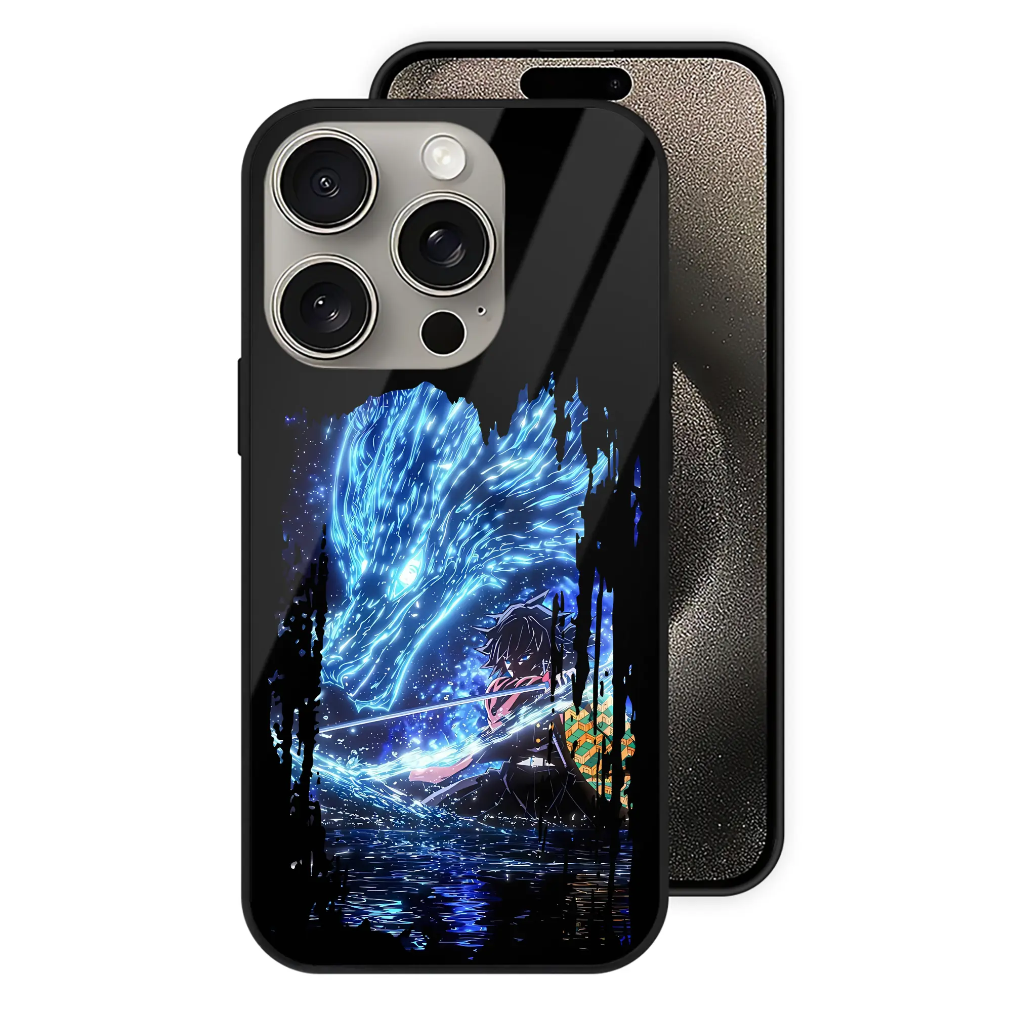 鬼滅の刃 グッズ,冨岡 義勇 - IPhone15Pro対応 ・ スマホケース ・ 背面ガラス ・ TPU+強化ガラス ・ 耐衝撃 ・ 黄変防止 ・ ワイヤレス充電対応 ・ 3D立体ボタン