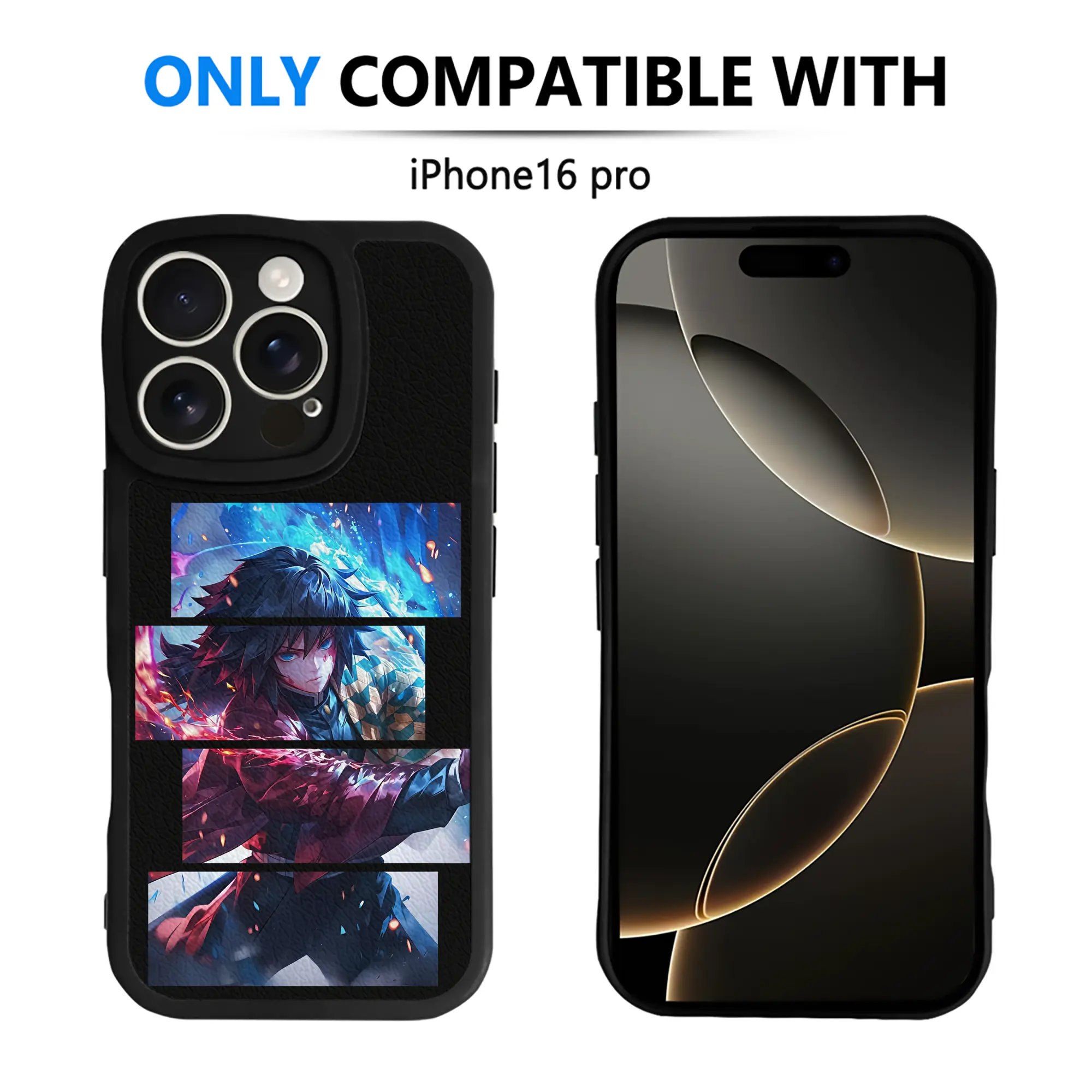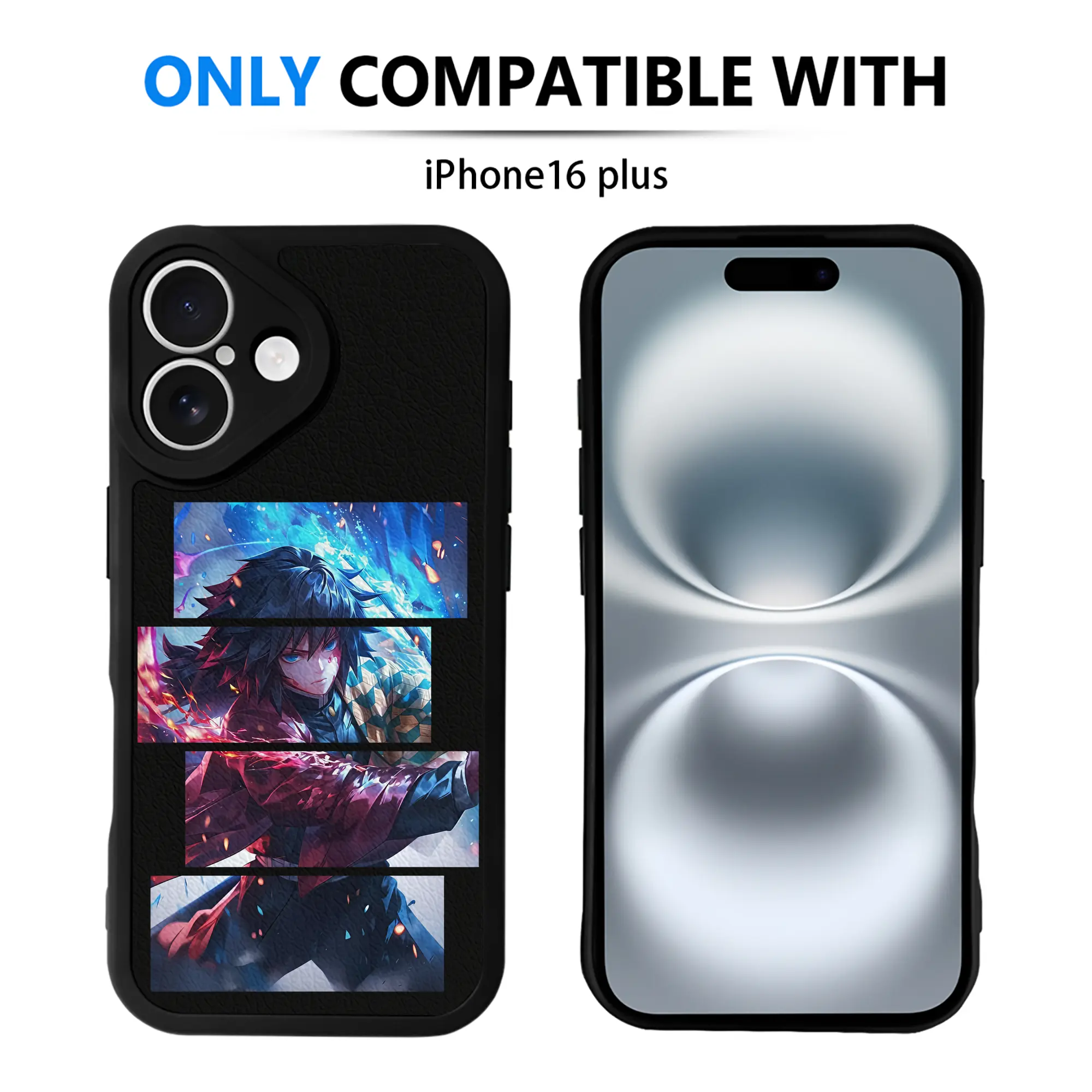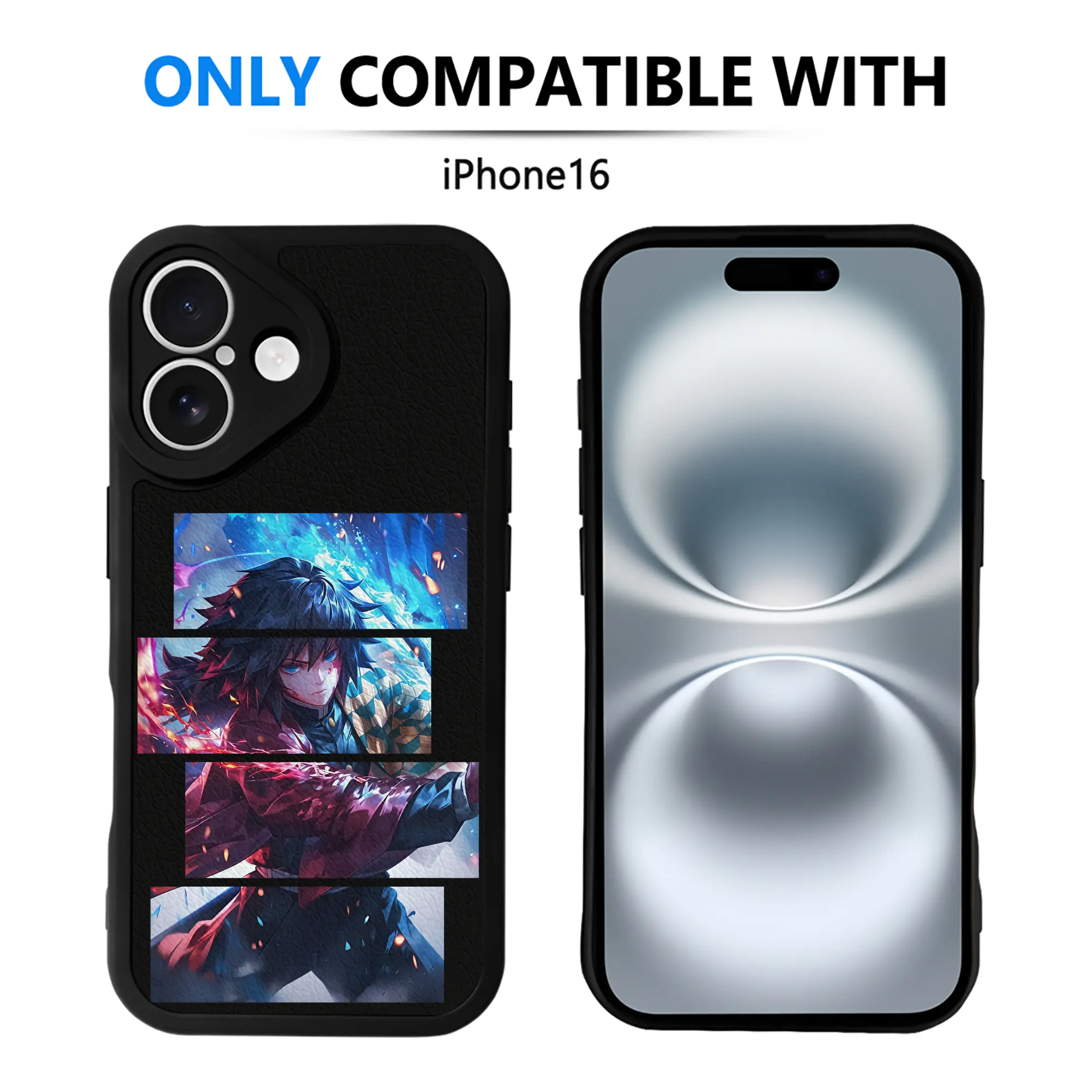鬼滅の刃 グッズ,冨岡 義勇 - IPhone 16シリーズ対応 ・ シリコンスマホケース ・ レザー調 ・ 高精度フィット ・ 耐衝撃 ・ ワイヤレス充電対応 ・ 精密カット