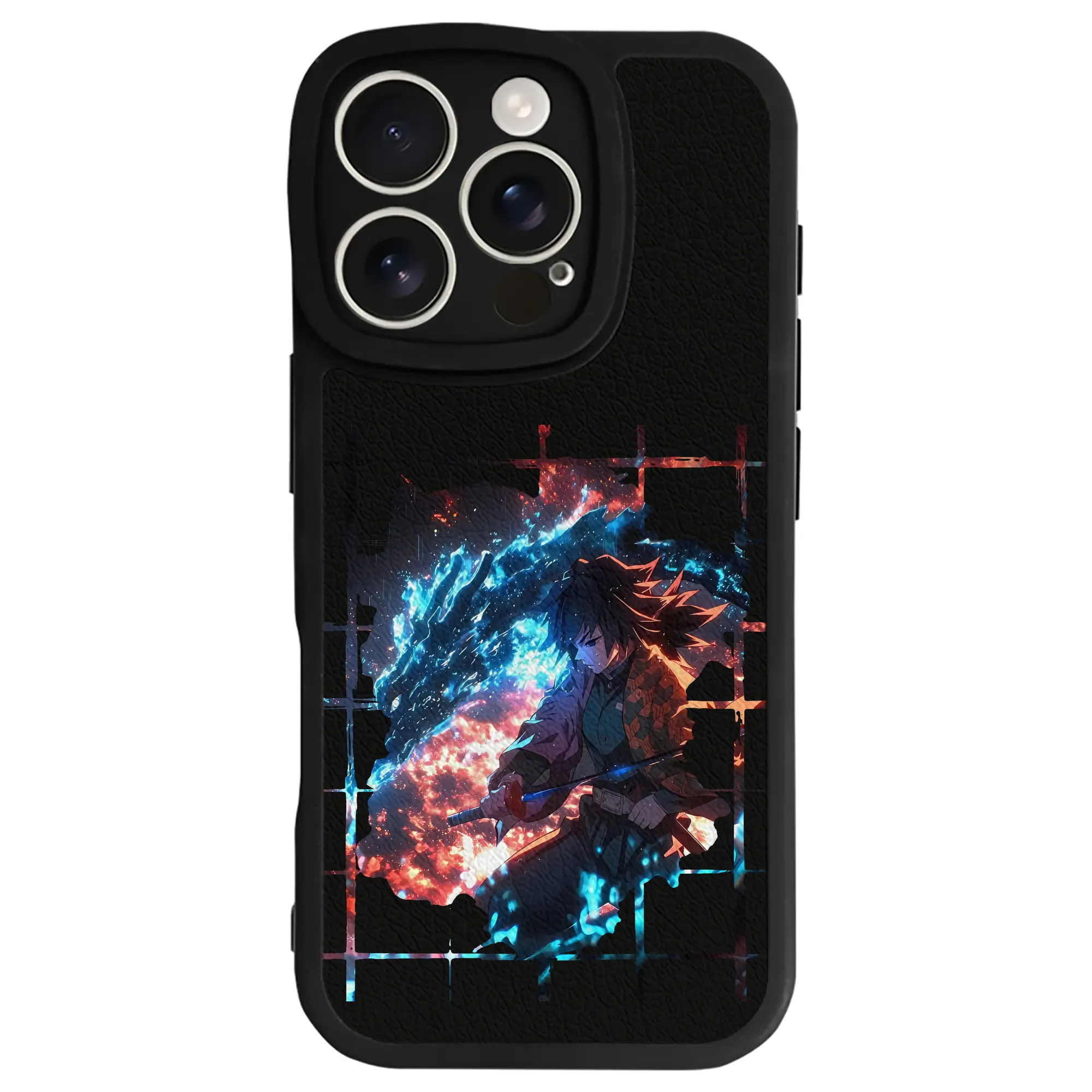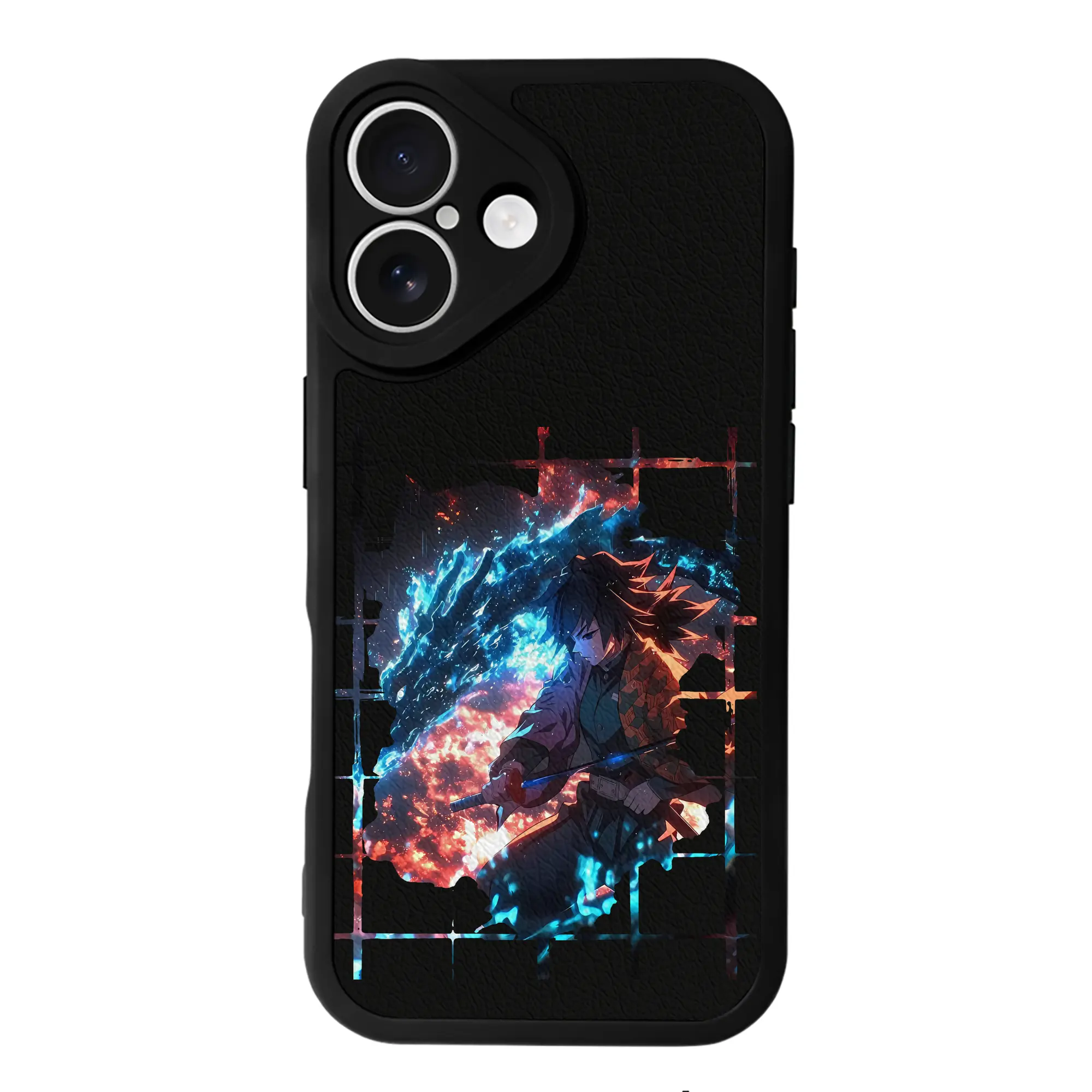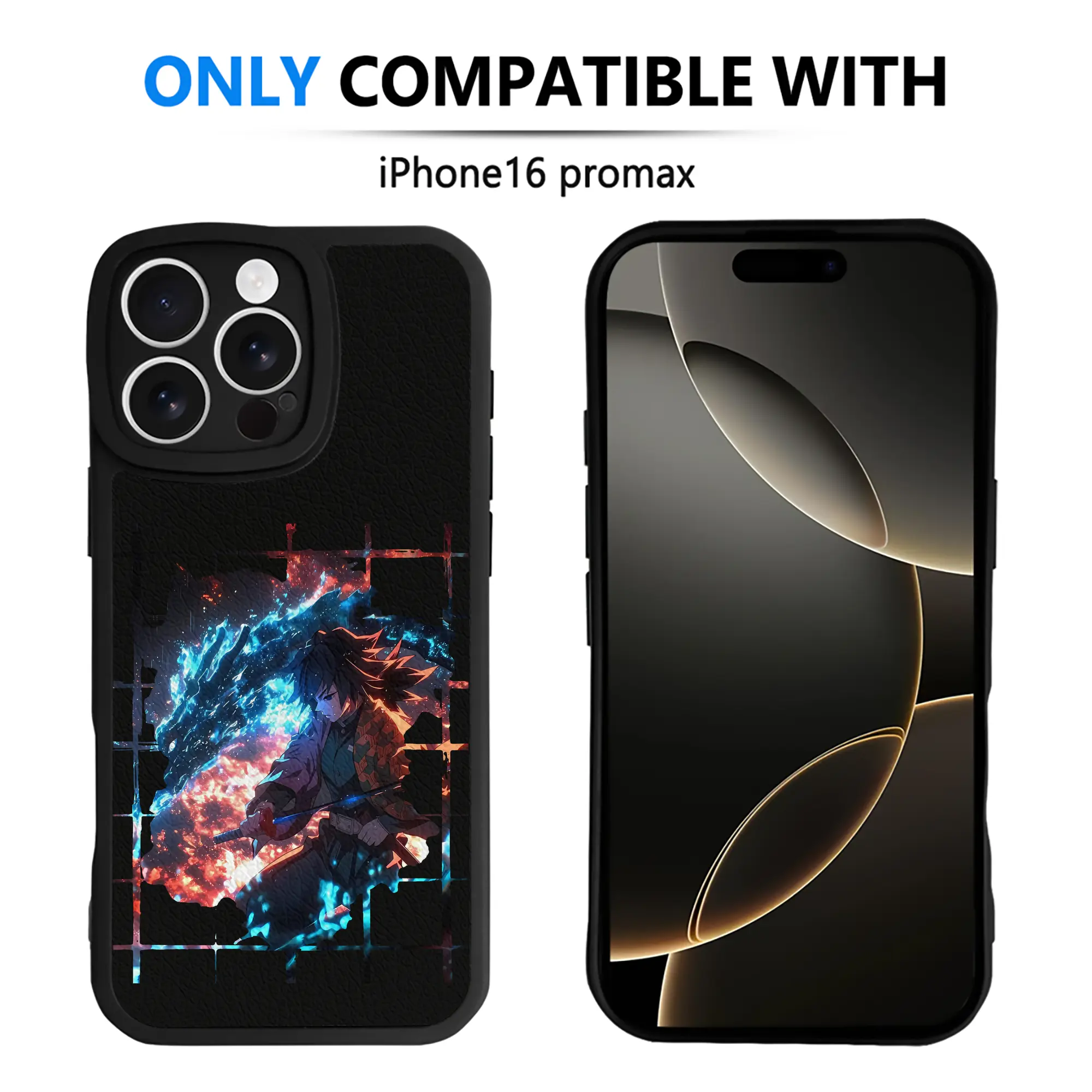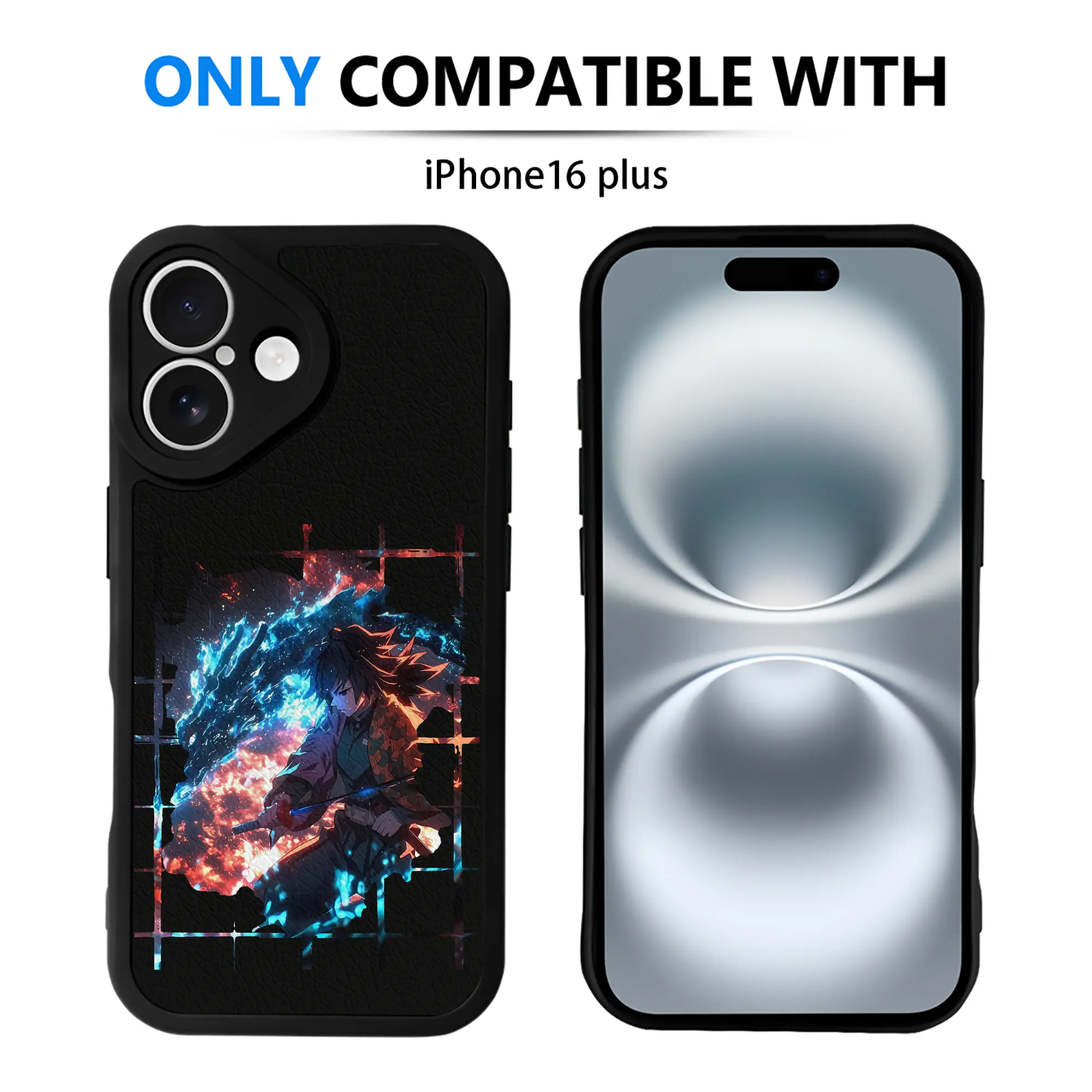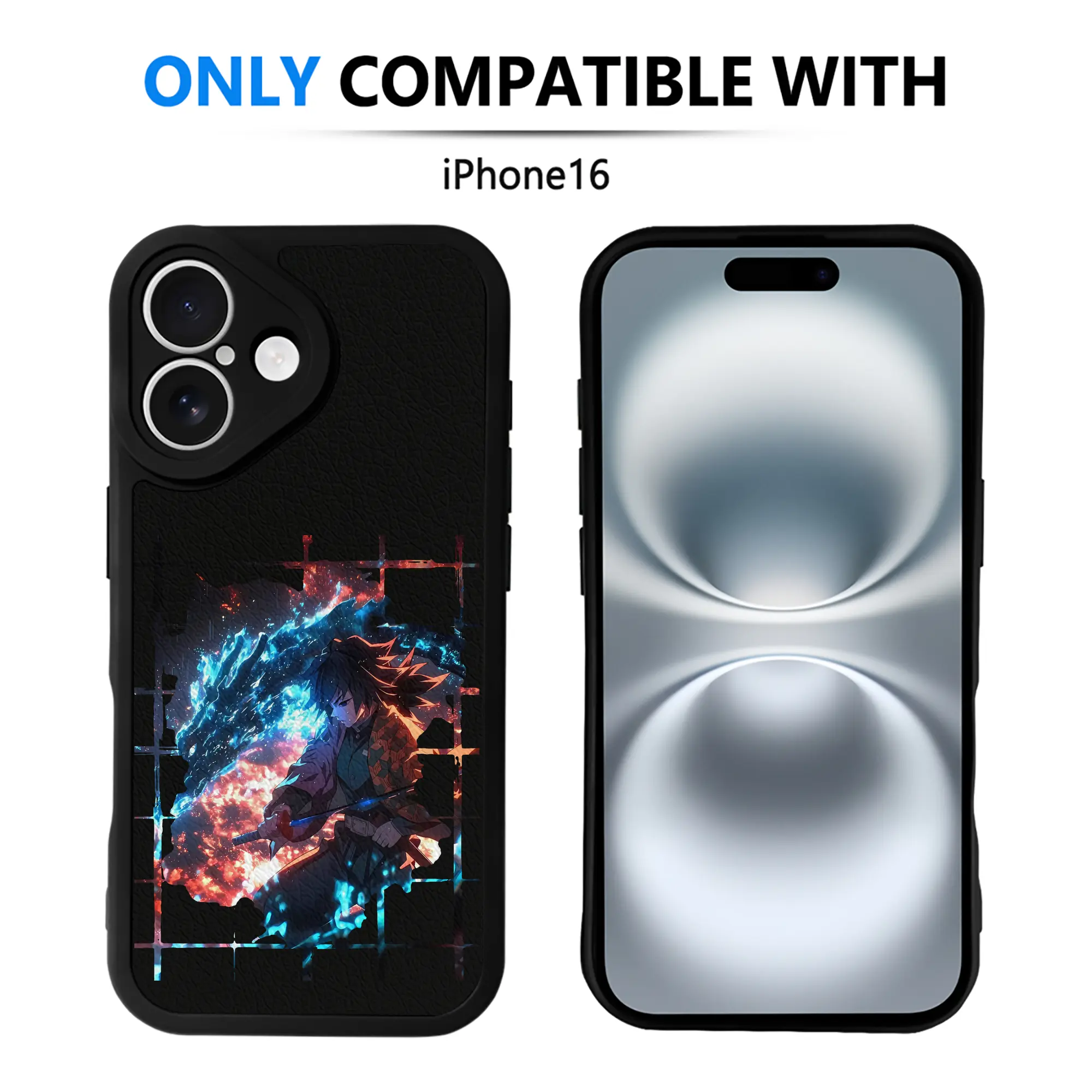 鬼滅の刃 グッズ,冨岡 義勇 - IPhone 16シリーズ対応 ・ シリコンスマホケース ・ レザー調 ・ 高精度フィット ・ 耐衝撃 ・ ワイヤレス充電対応 ・ 精密カット
