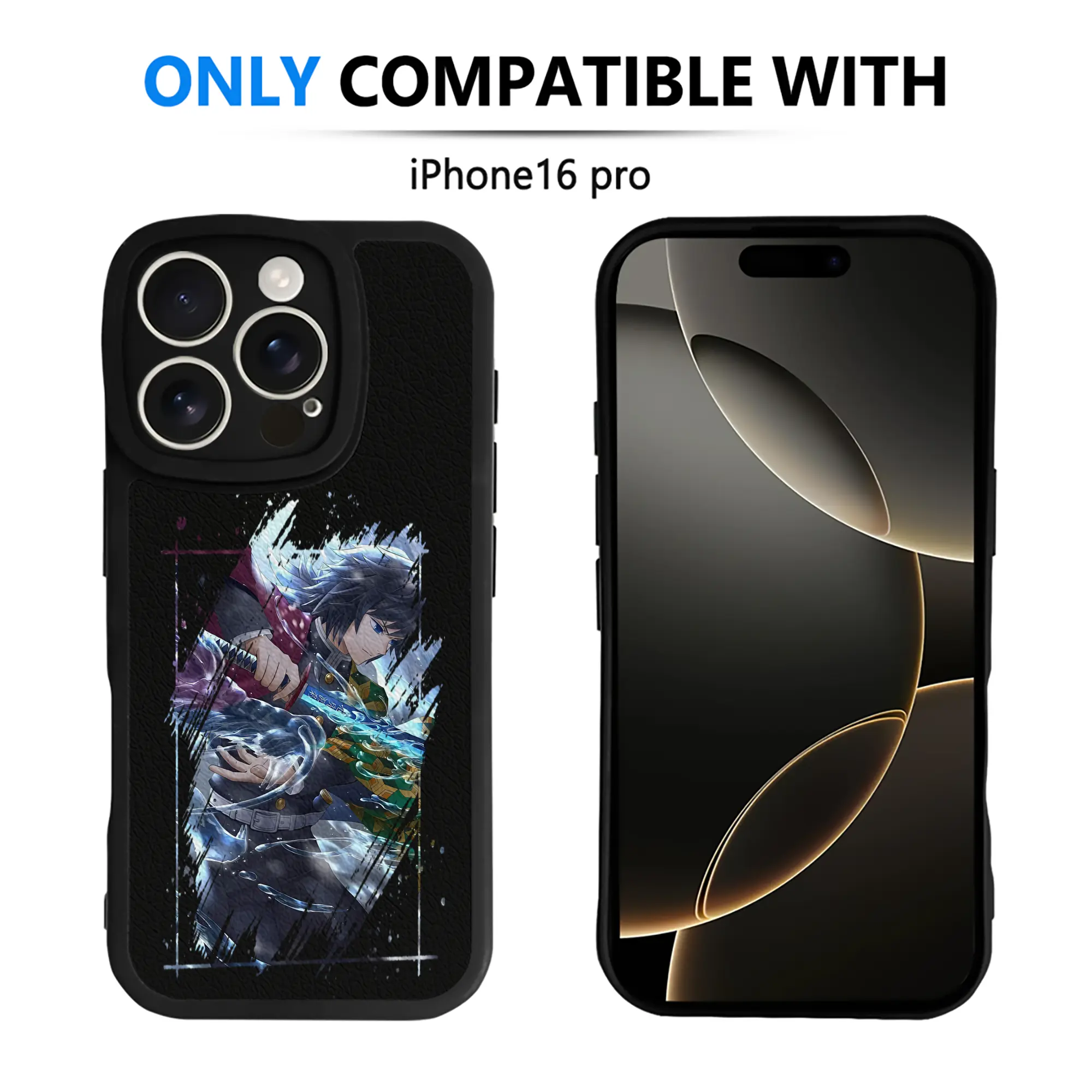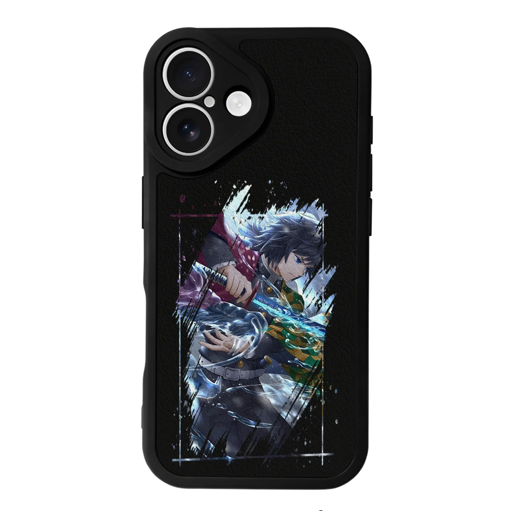 鬼滅の刃 グッズ,冨岡 義勇 - IPhone 16シリーズ対応 ・ シリコンスマホケース ・ レザー調 ・ 高精度フィット ・ 耐衝撃 ・ ワイヤレス充電対応 ・ 精密カット
