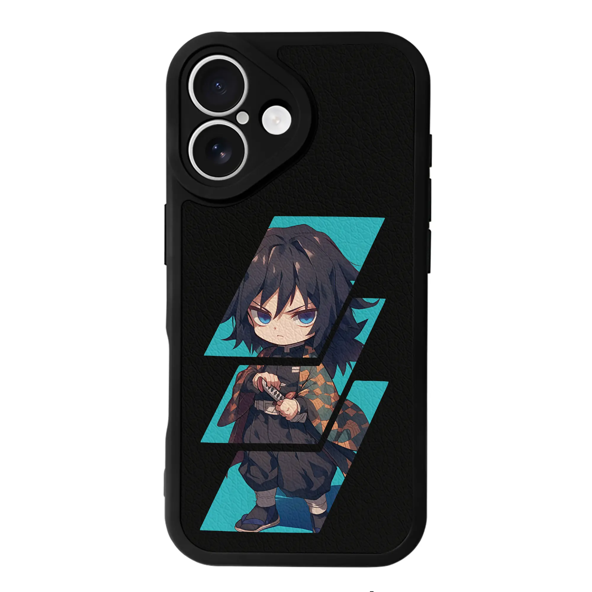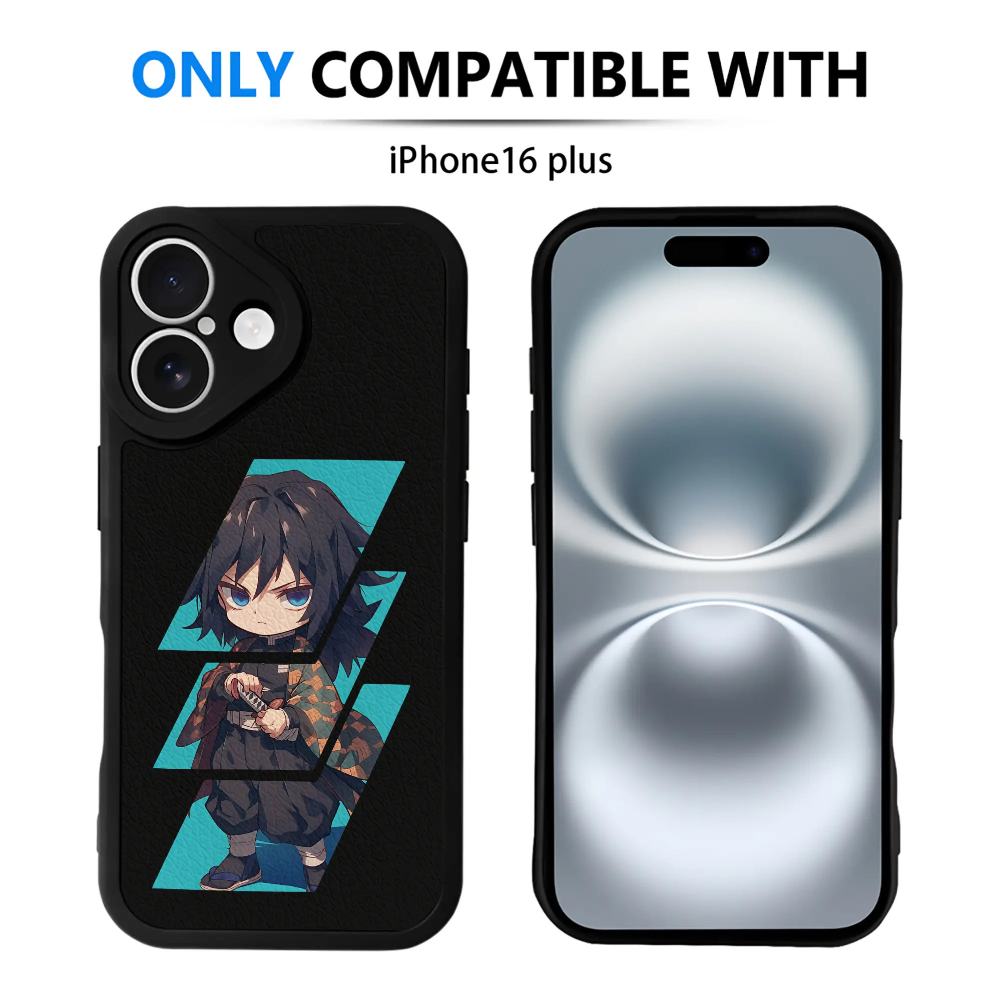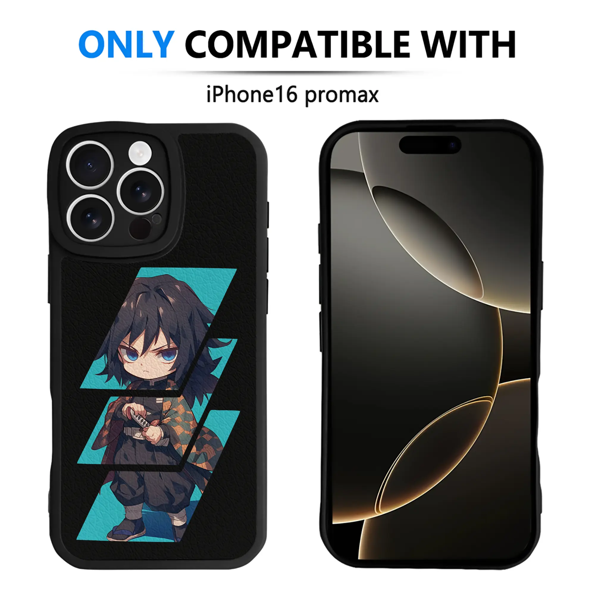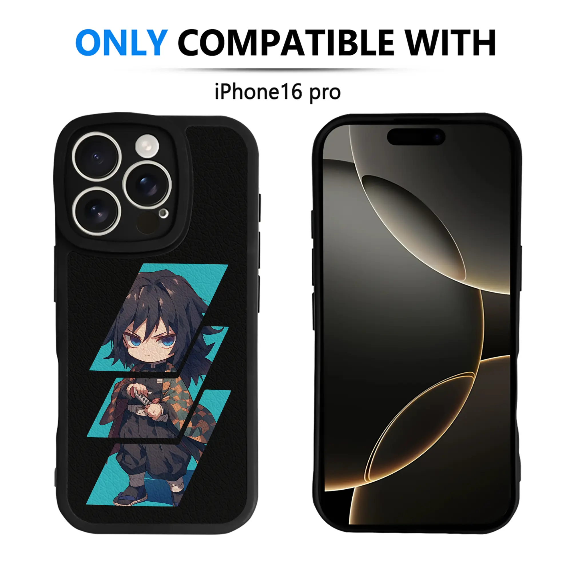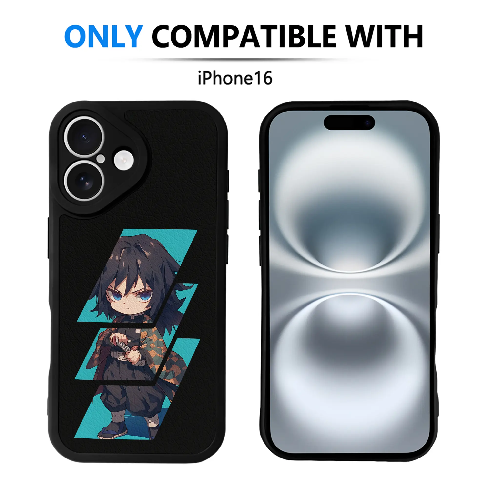 鬼滅の刃 グッズ,冨岡 義勇 - IPhone 16シリーズ対応 ・ シリコンスマホケース ・ レザー調 ・ 高精度フィット ・ 耐衝撃 ・ ワイヤレス充電対応 ・ 精密カット