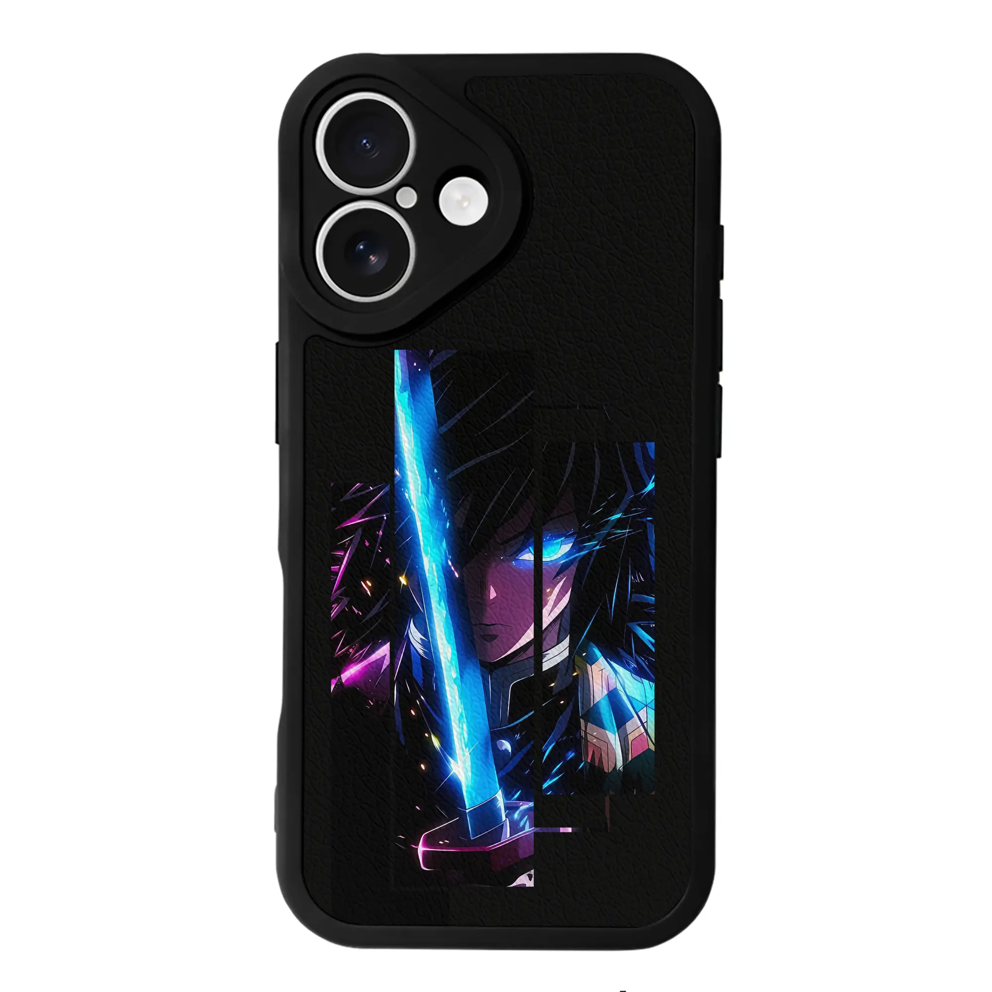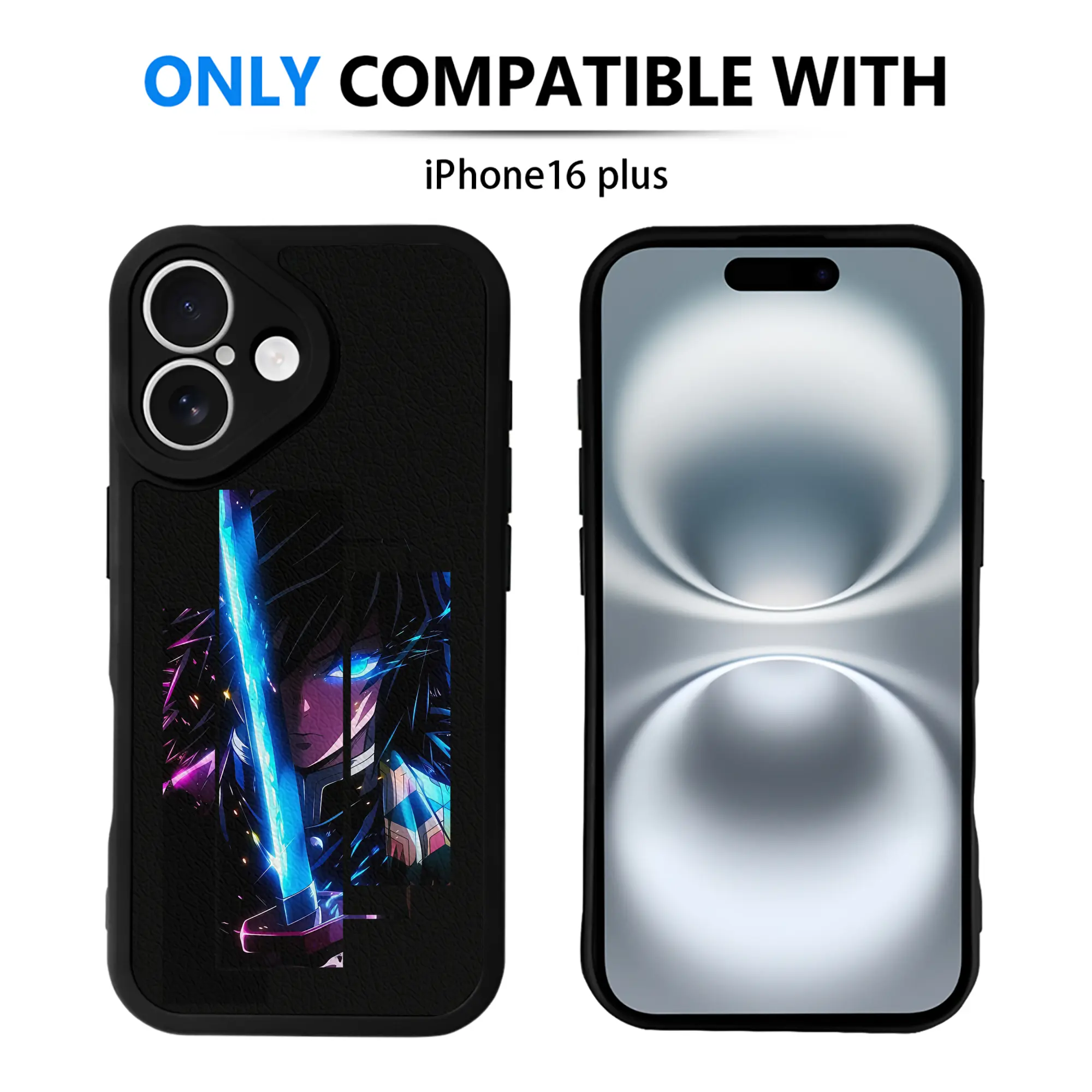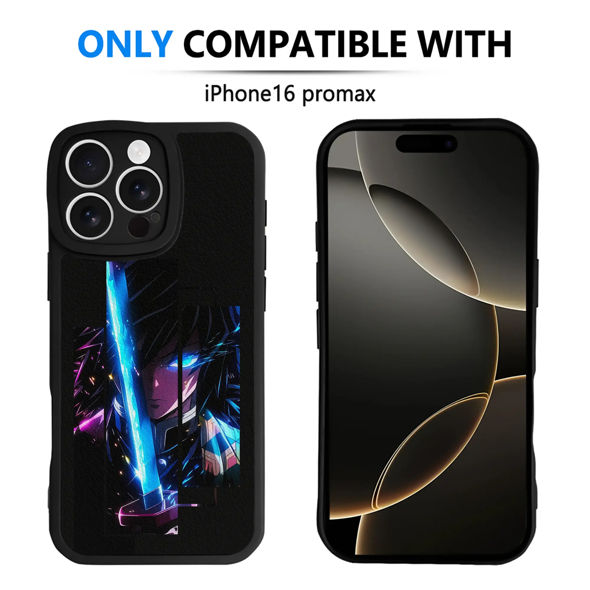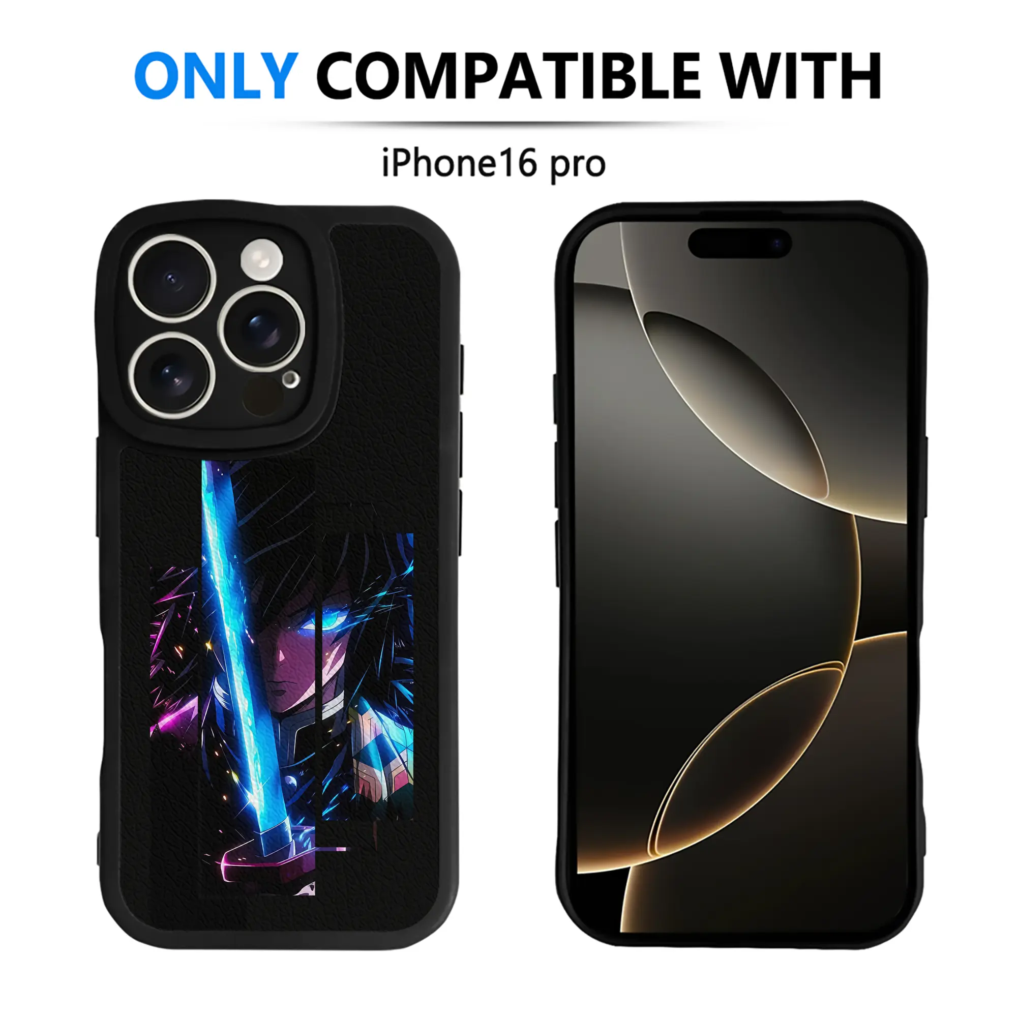 鬼滅の刃 グッズ,冨岡 義勇 - IPhone 16シリーズ対応 ・ シリコンスマホケース ・ レザー調 ・ 高精度フィット ・ 耐衝撃 ・ ワイヤレス充電対応 ・ 精密カット