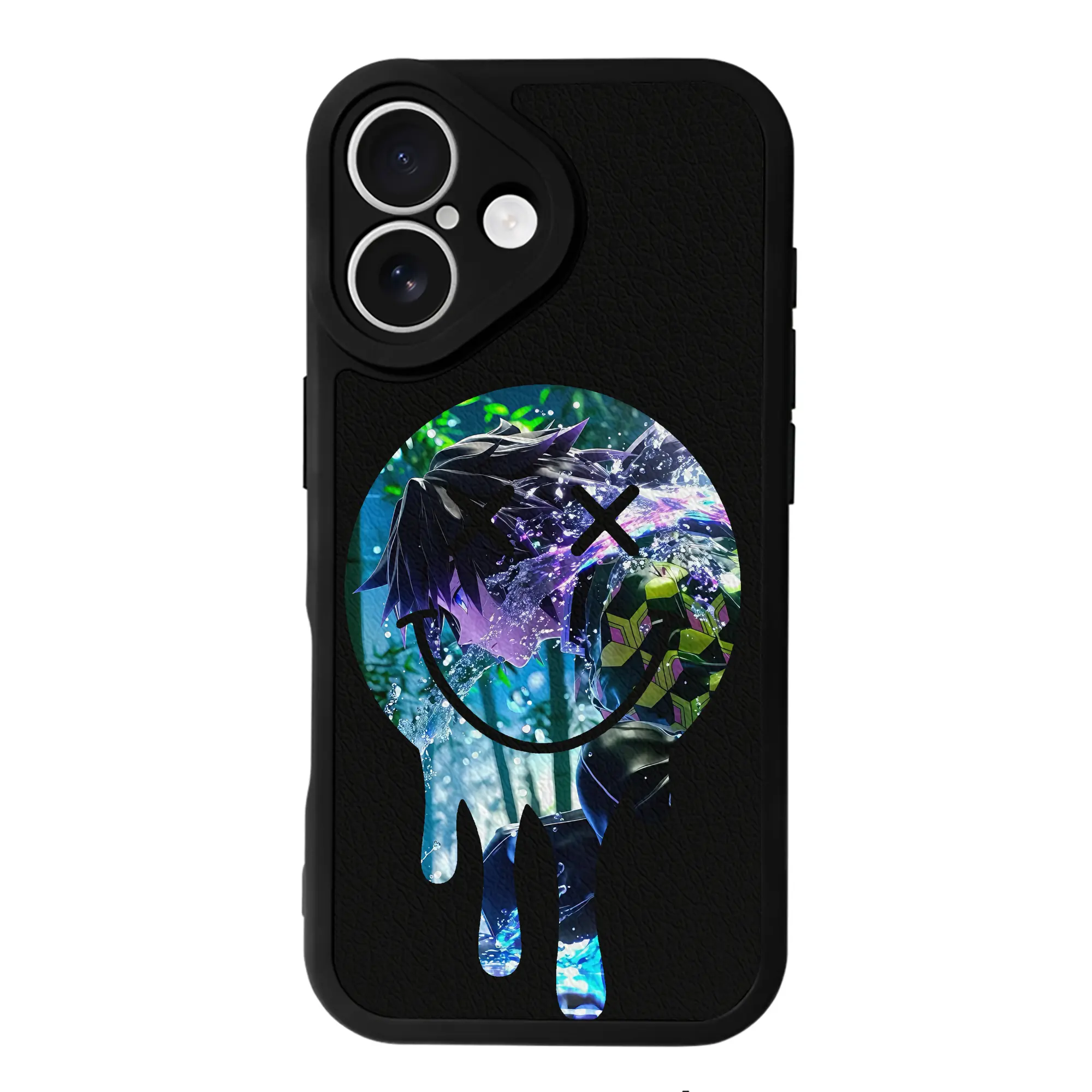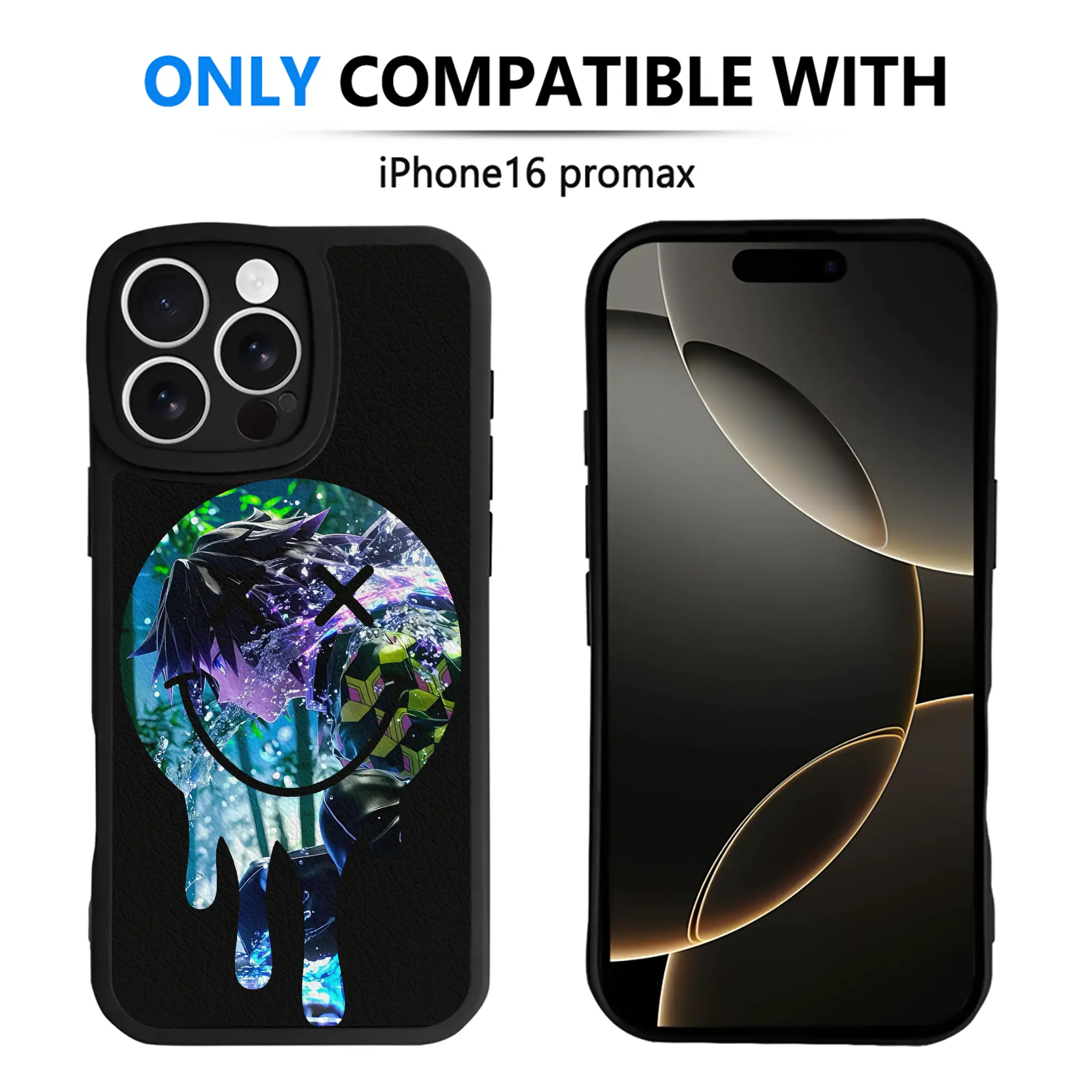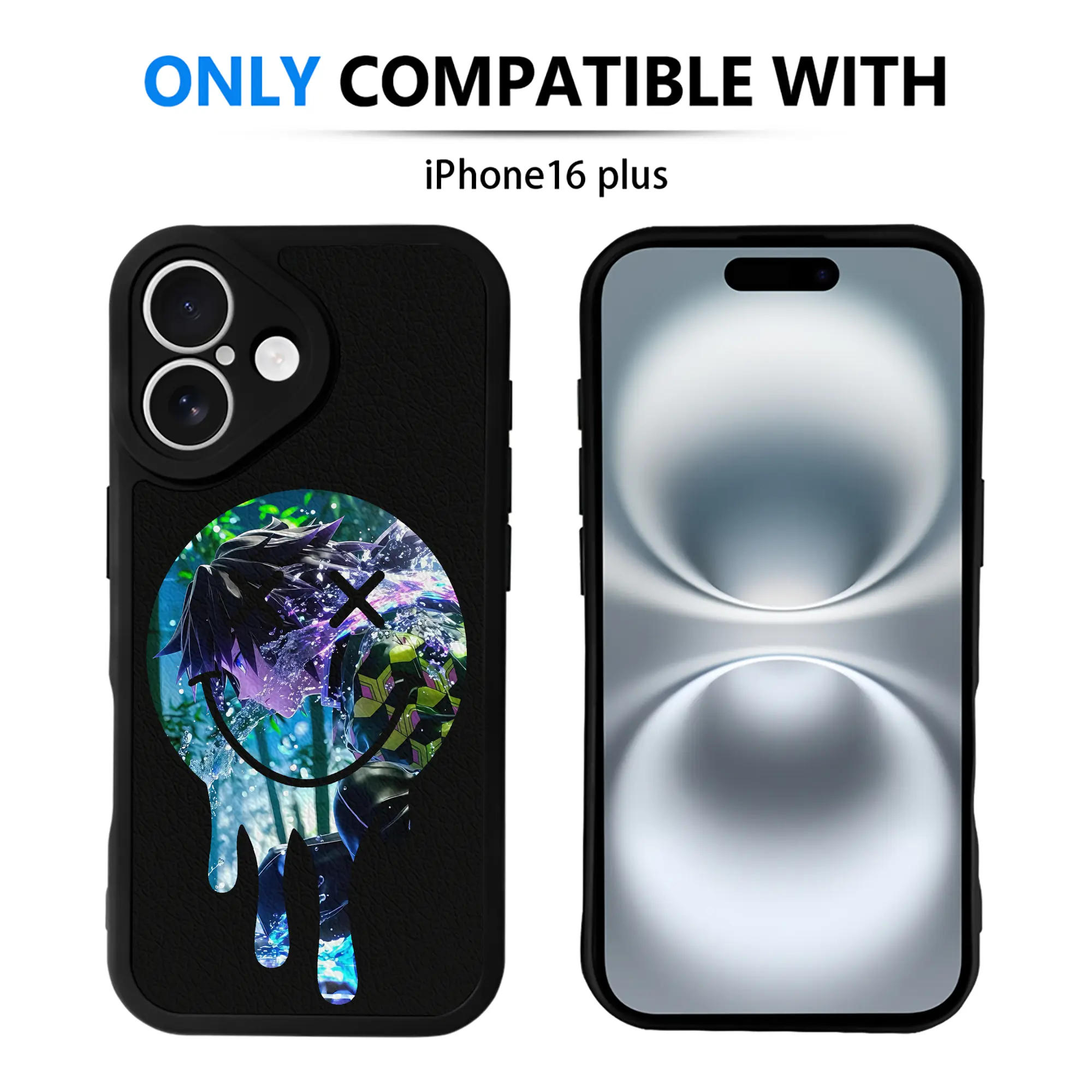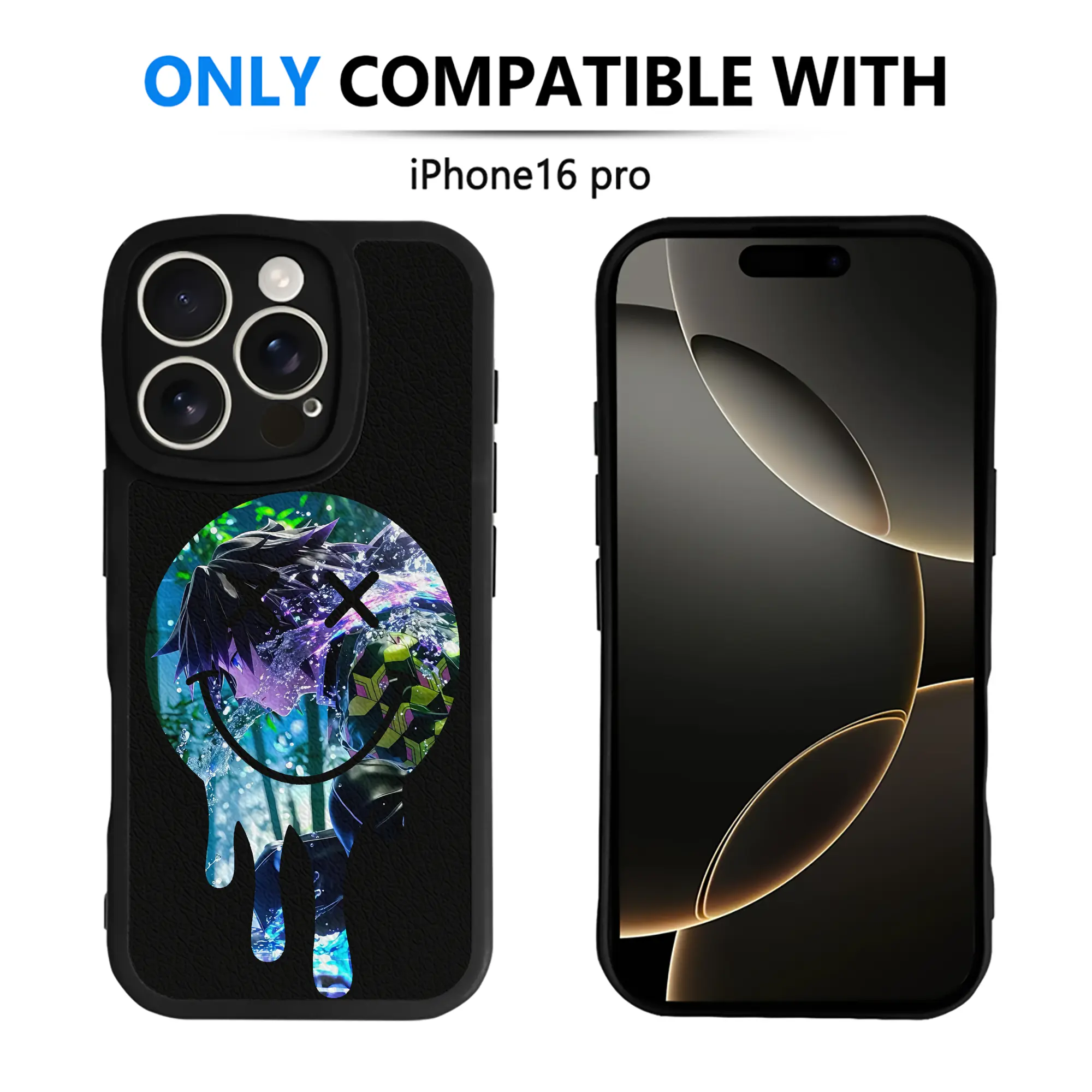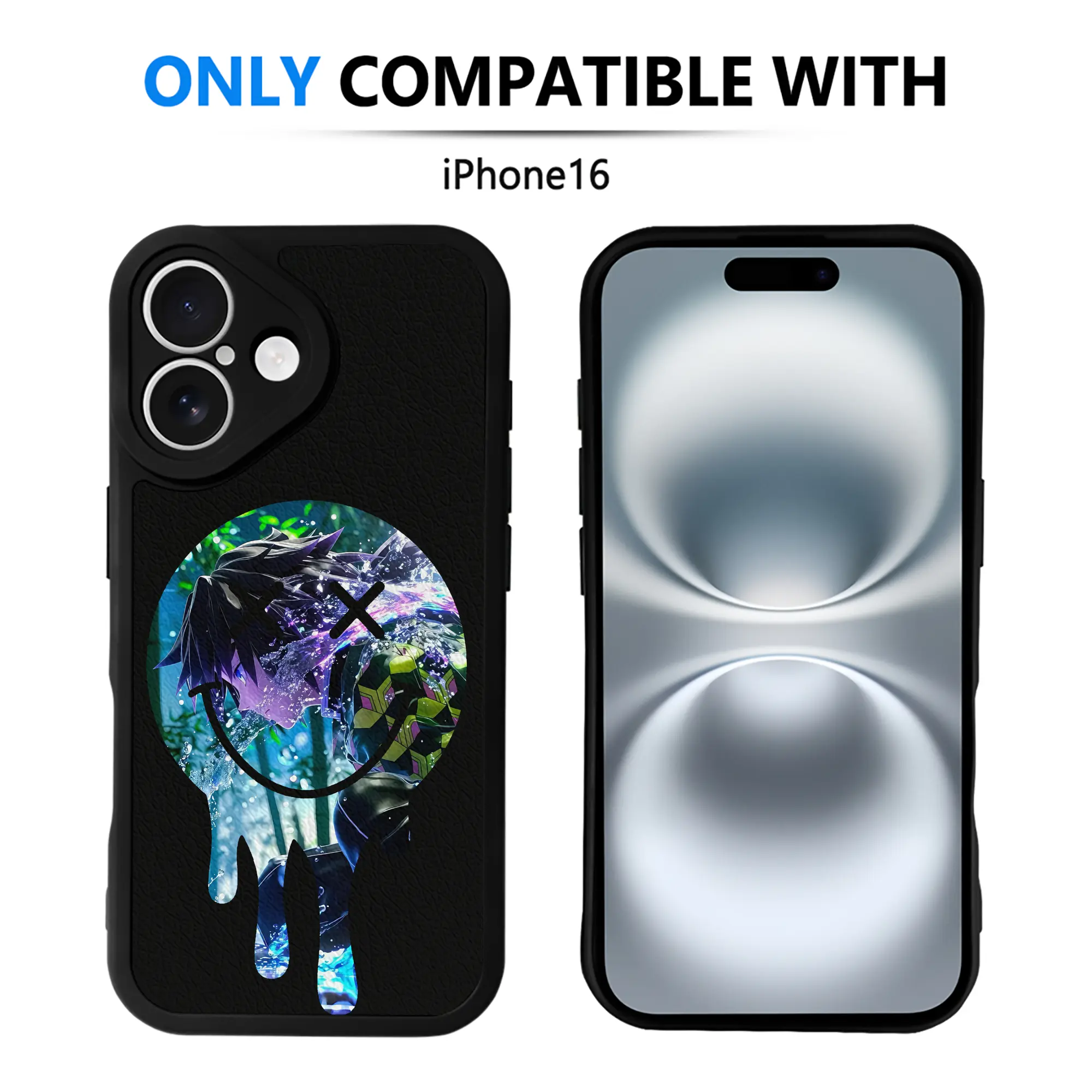 鬼滅の刃 グッズ,冨岡 義勇 - IPhone 16シリーズ対応 ・ シリコンスマホケース ・ レザー調 ・ 高精度フィット ・ 耐衝撃 ・ ワイヤレス充電対応 ・ 精密カット
