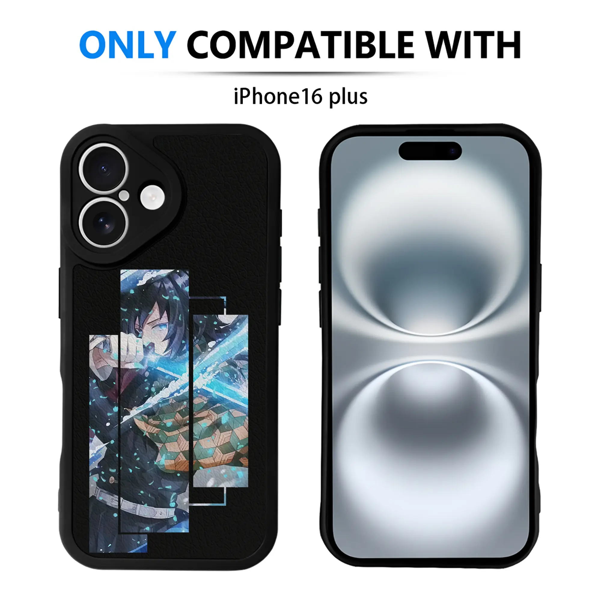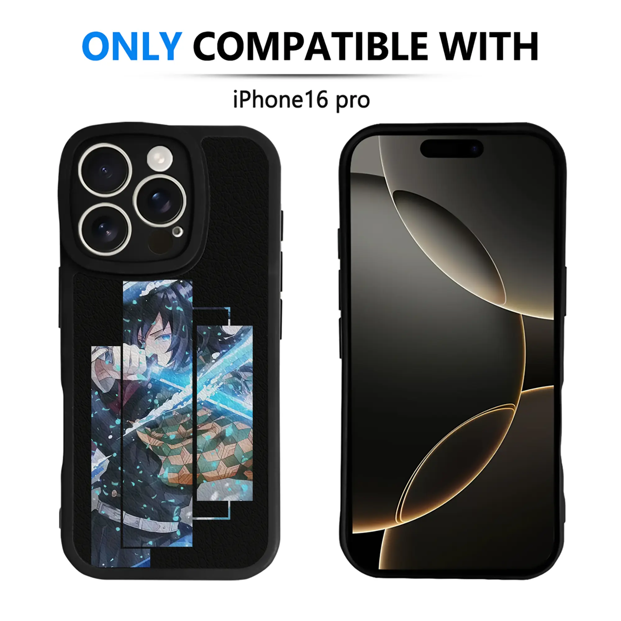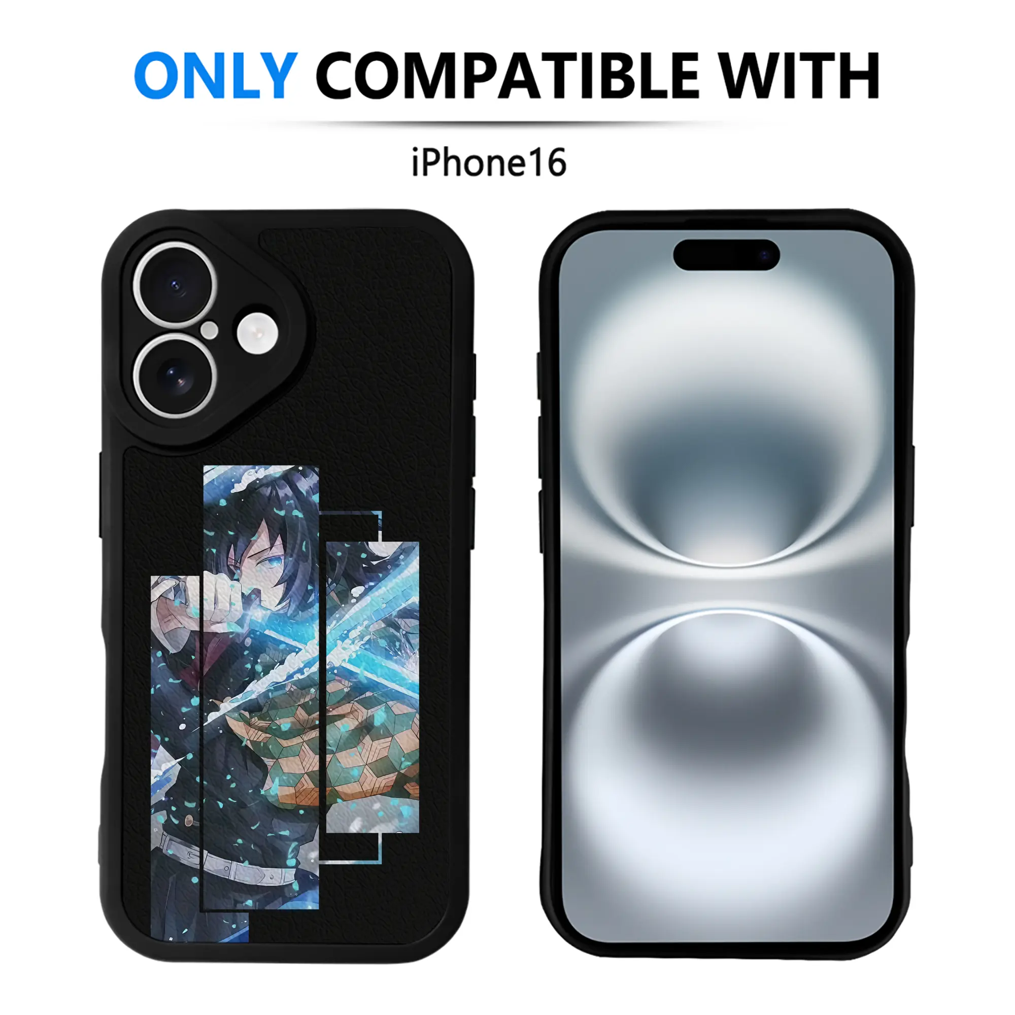 鬼滅の刃 グッズ,冨岡 義勇 - IPhone 16シリーズ対応 ・ シリコンスマホケース ・ レザー調 ・ 高精度フィット ・ 耐衝撃 ・ ワイヤレス充電対応 ・ 精密カット