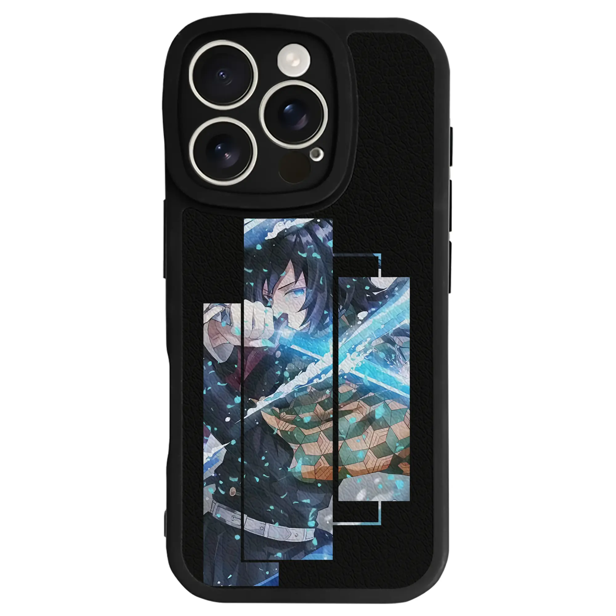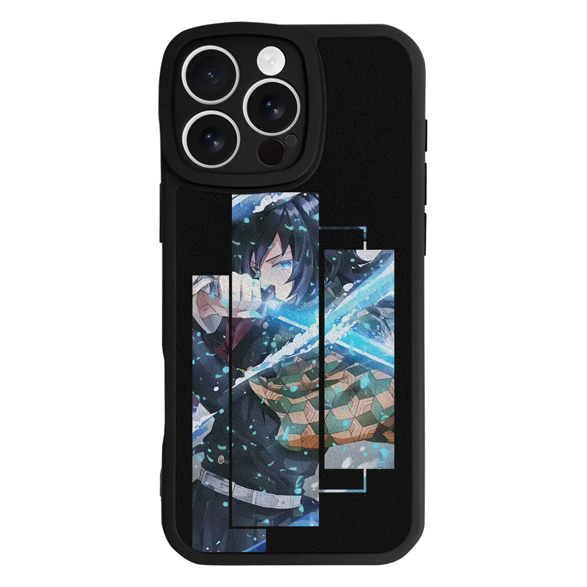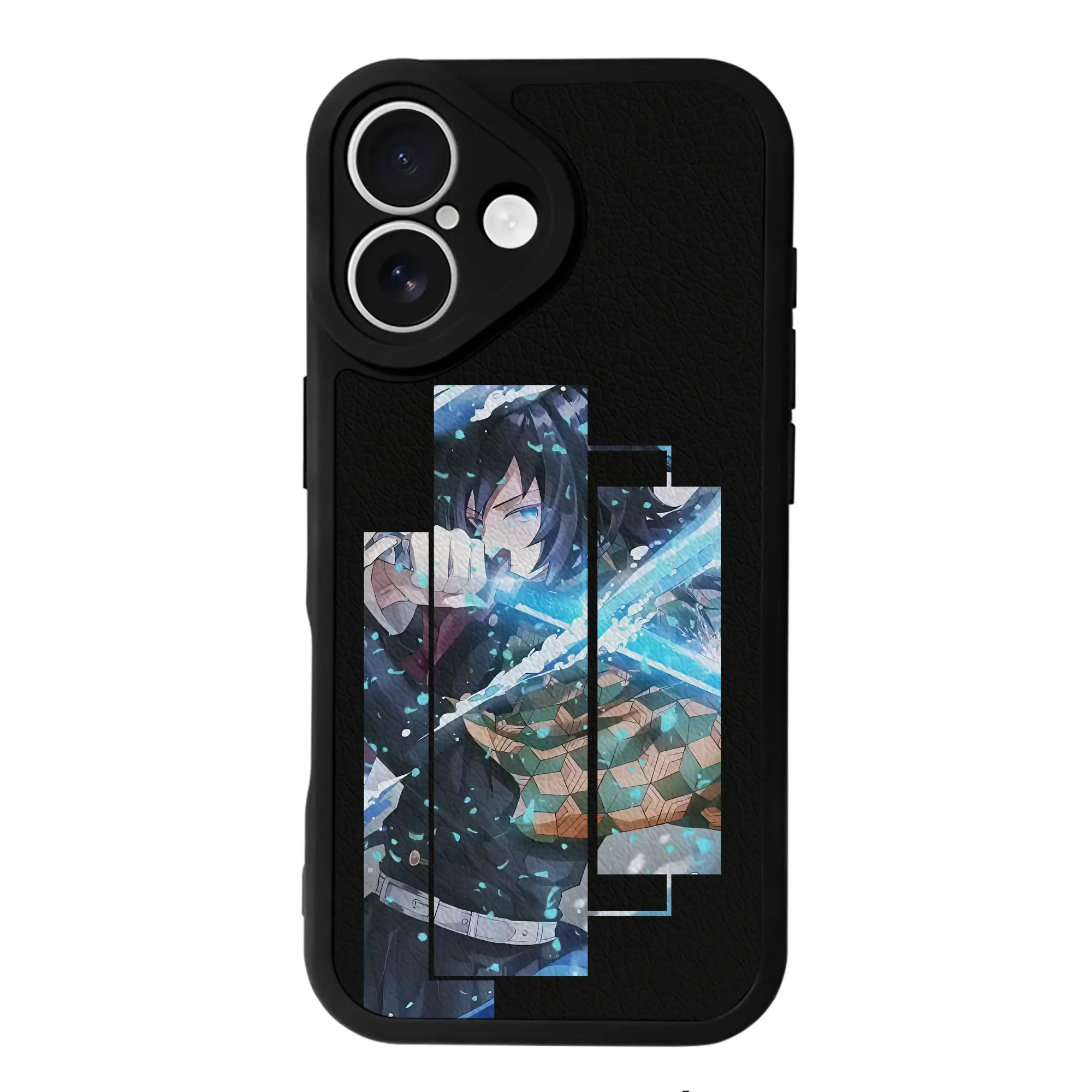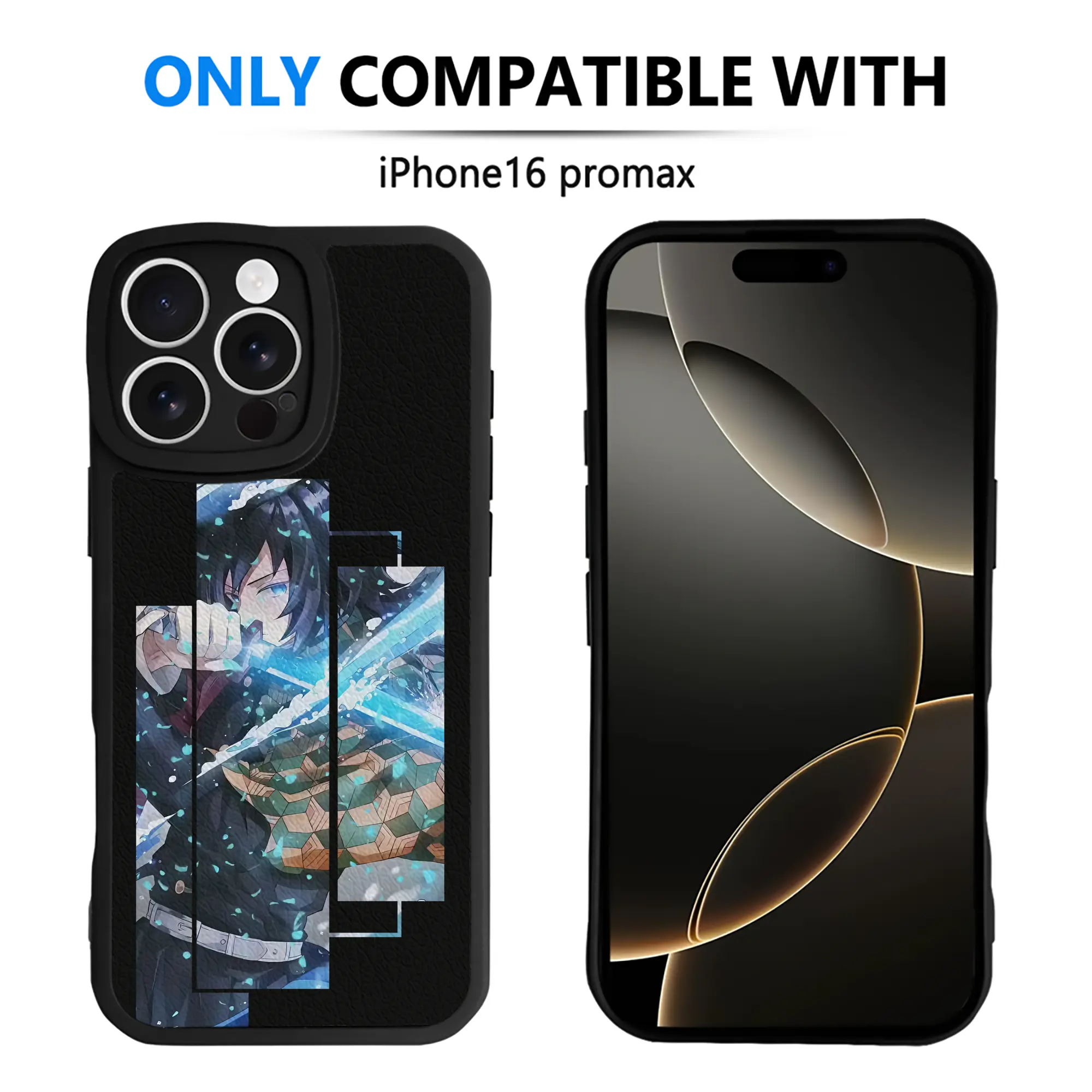 鬼滅の刃 グッズ,冨岡 義勇 - IPhone 16シリーズ対応 ・ シリコンスマホケース ・ レザー調 ・ 高精度フィット ・ 耐衝撃 ・ ワイヤレス充電対応 ・ 精密カット