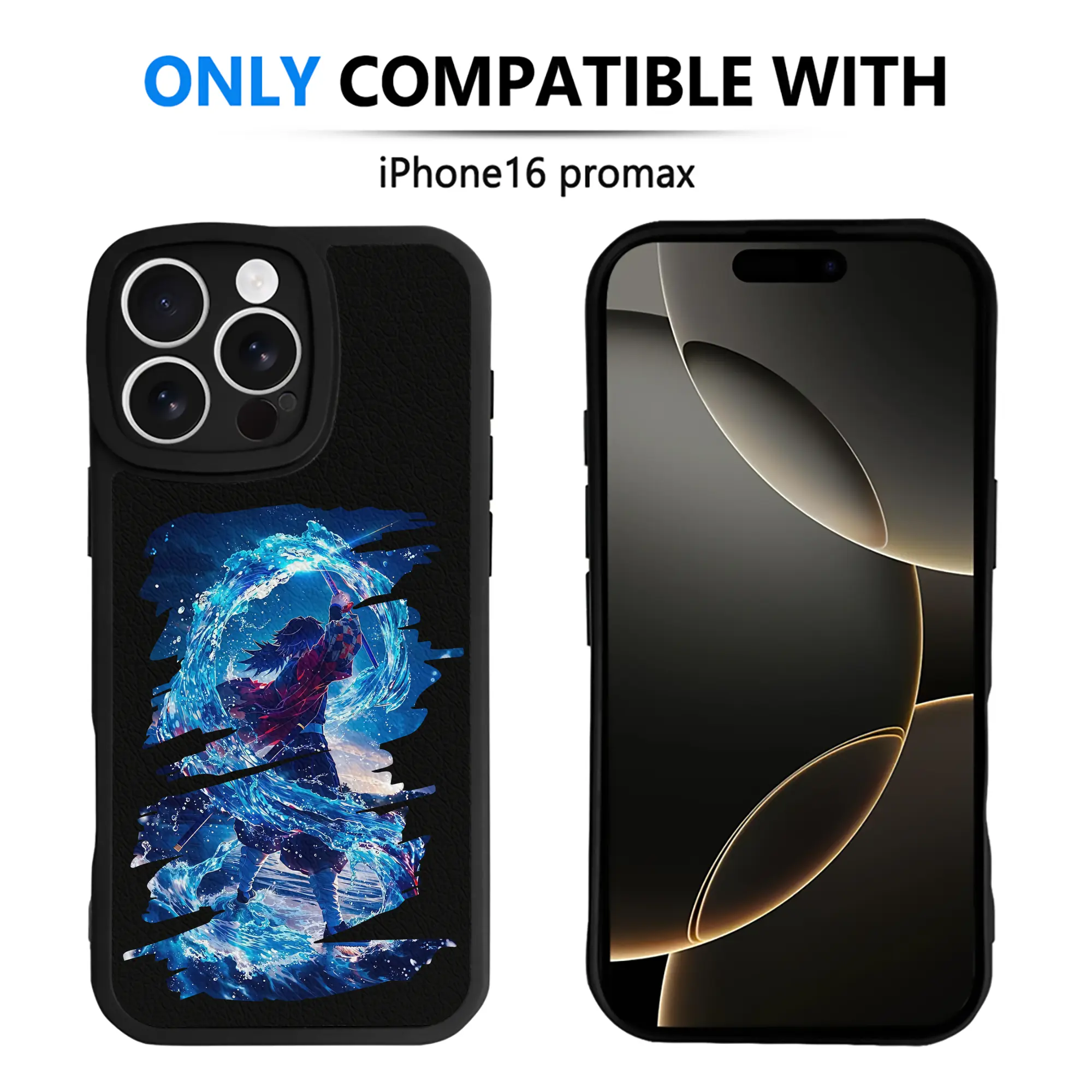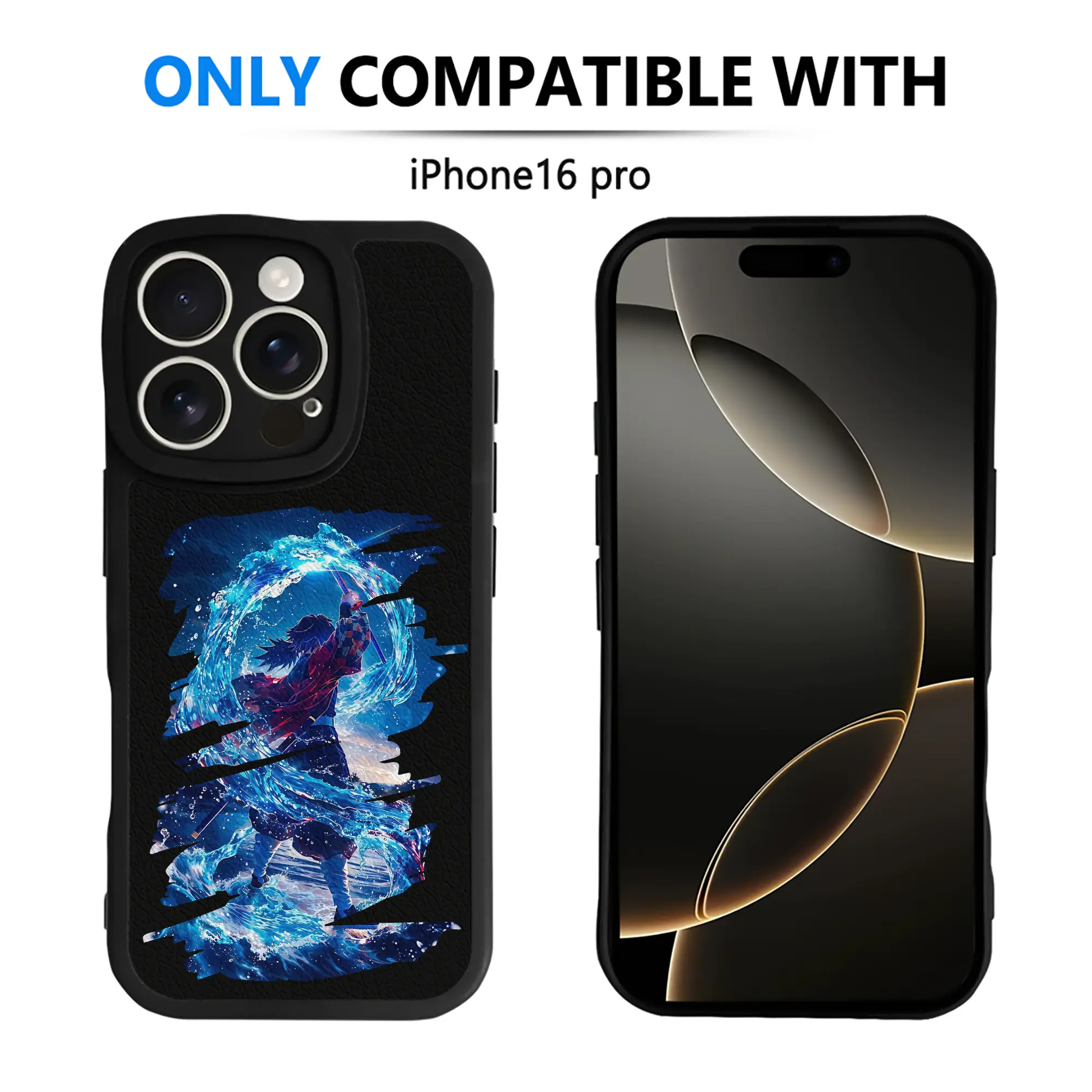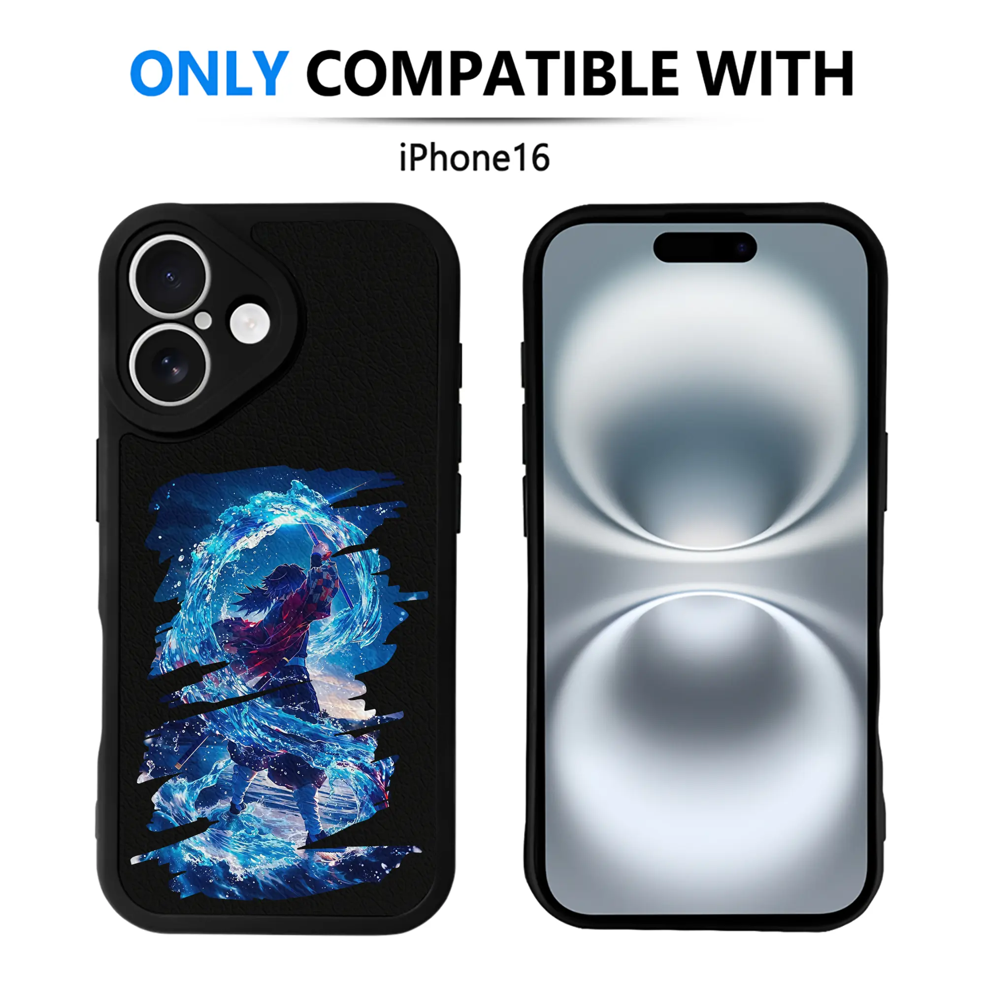 鬼滅の刃 グッズ,冨岡 義勇 - IPhone 16シリーズ対応 ・ シリコンスマホケース ・ レザー調 ・ 高精度フィット ・ 耐衝撃 ・ ワイヤレス充電対応 ・ 精密カット