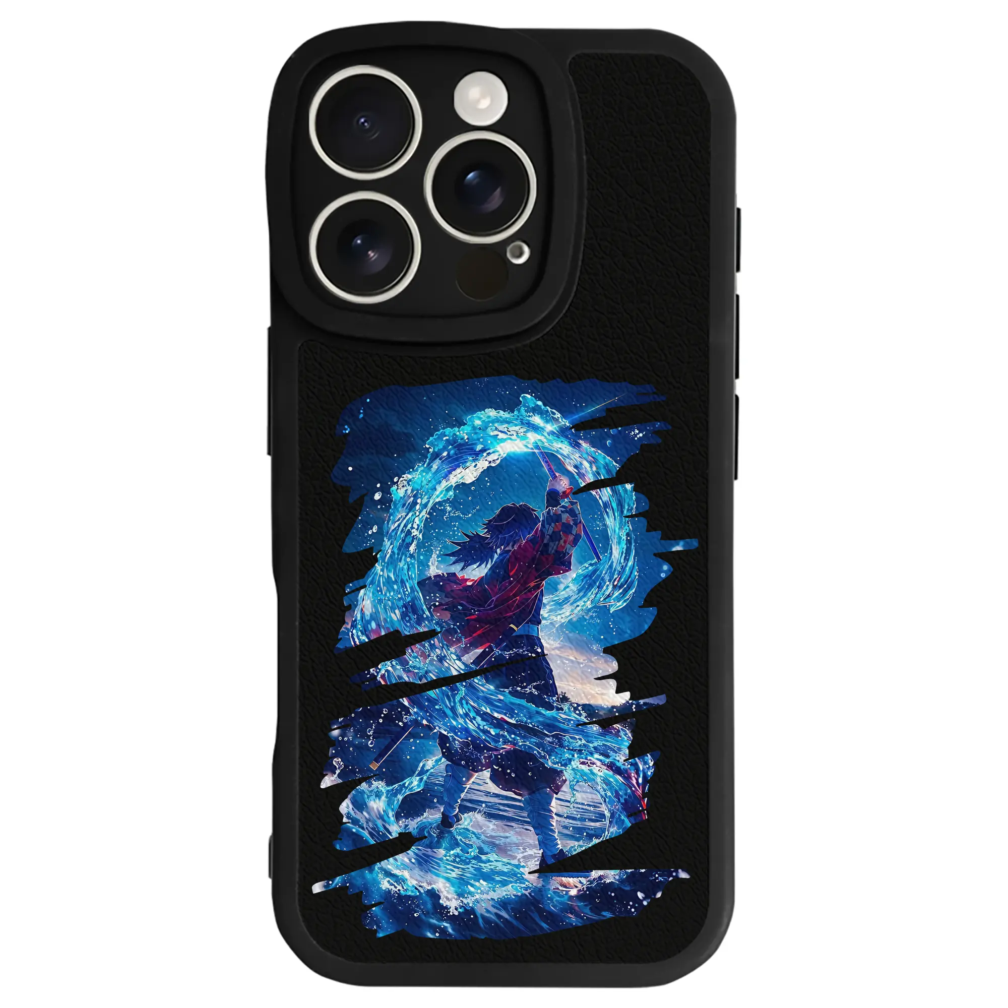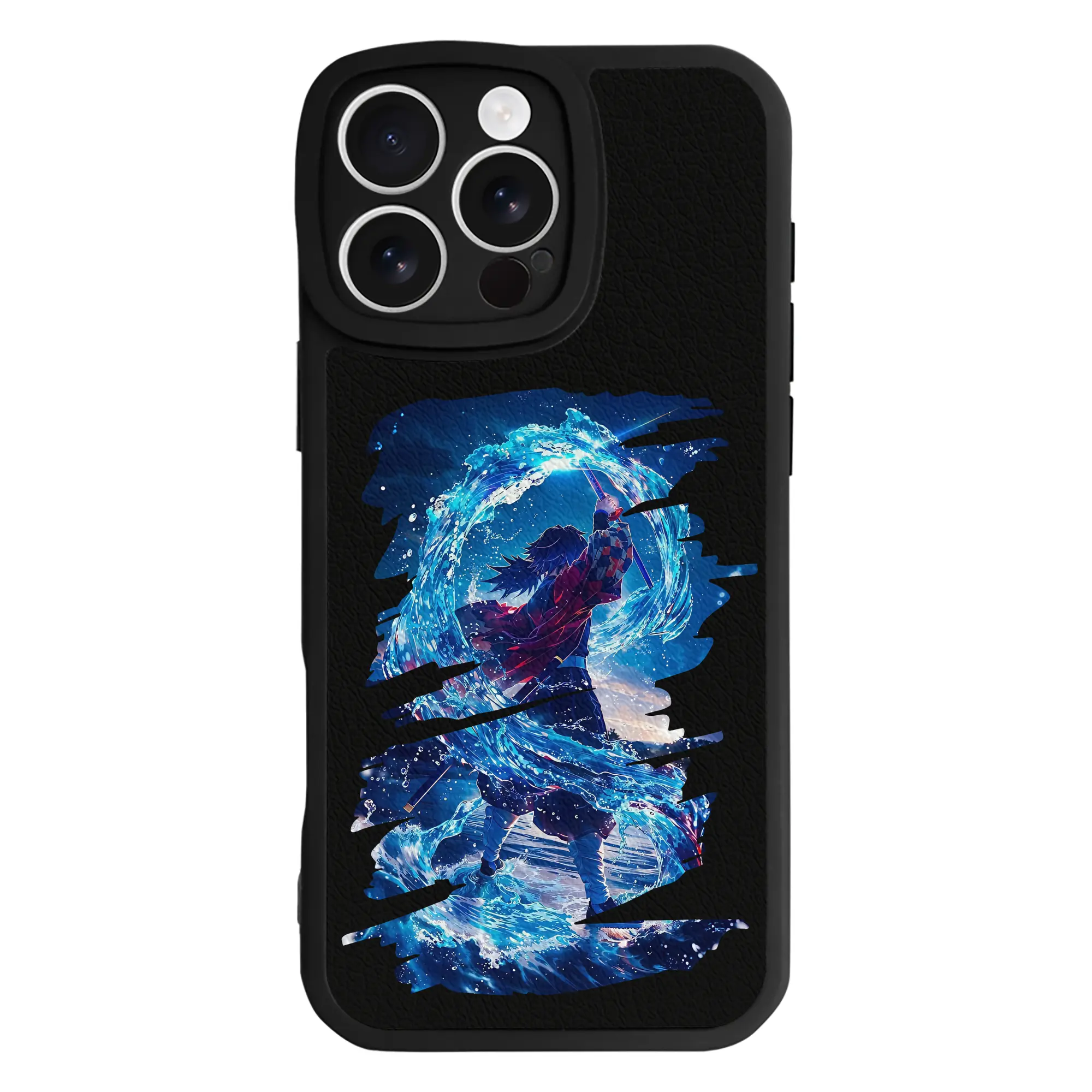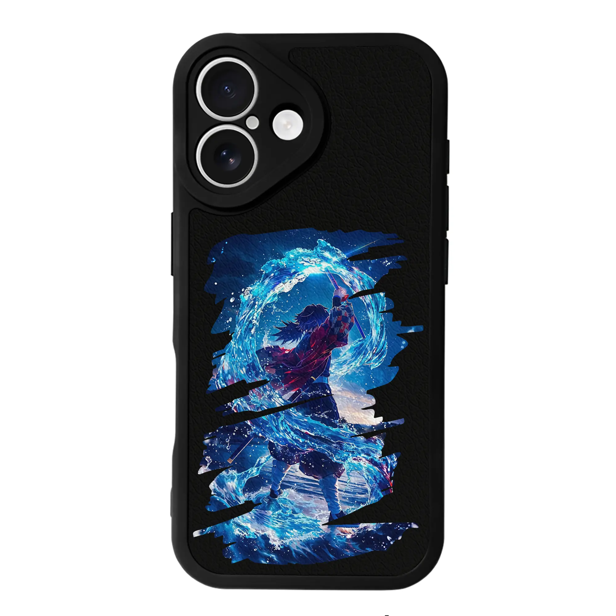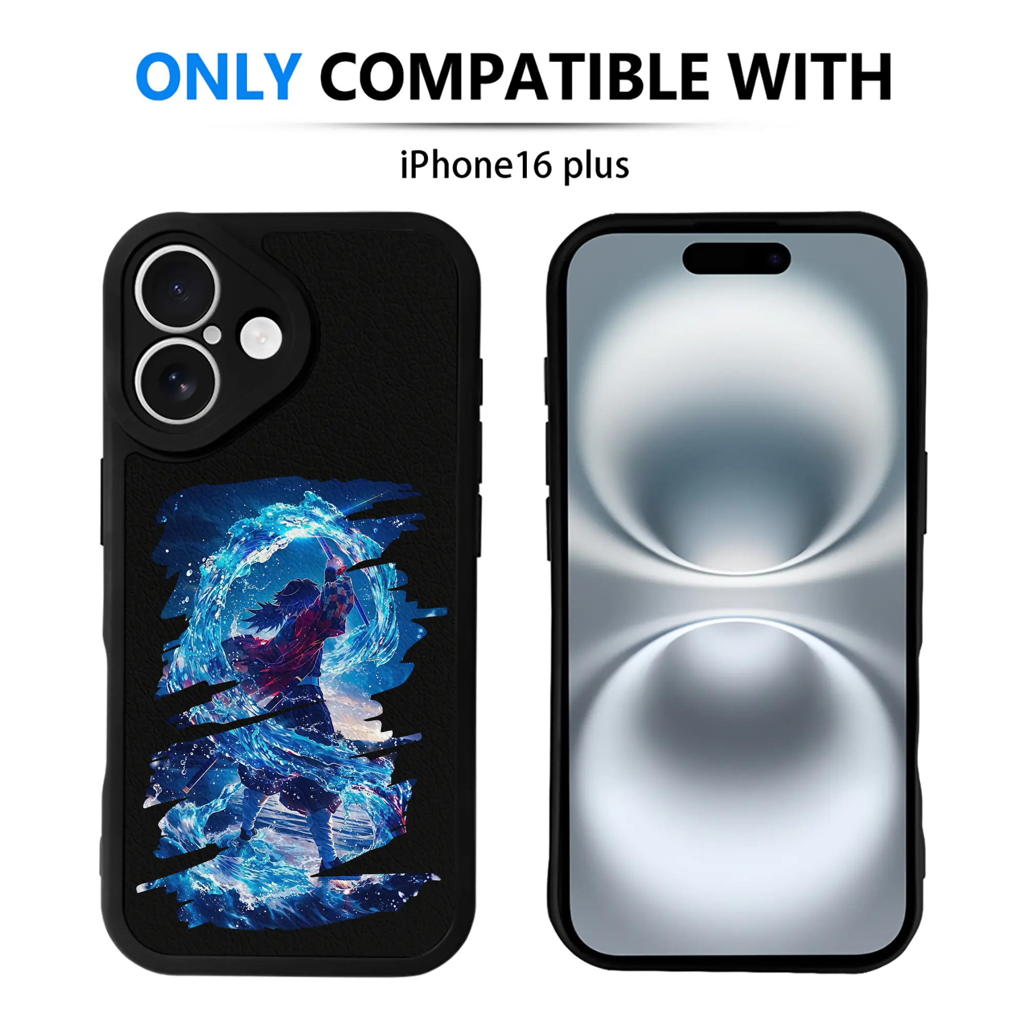 鬼滅の刃 グッズ,冨岡 義勇 - IPhone 16シリーズ対応 ・ シリコンスマホケース ・ レザー調 ・ 高精度フィット ・ 耐衝撃 ・ ワイヤレス充電対応 ・ 精密カット