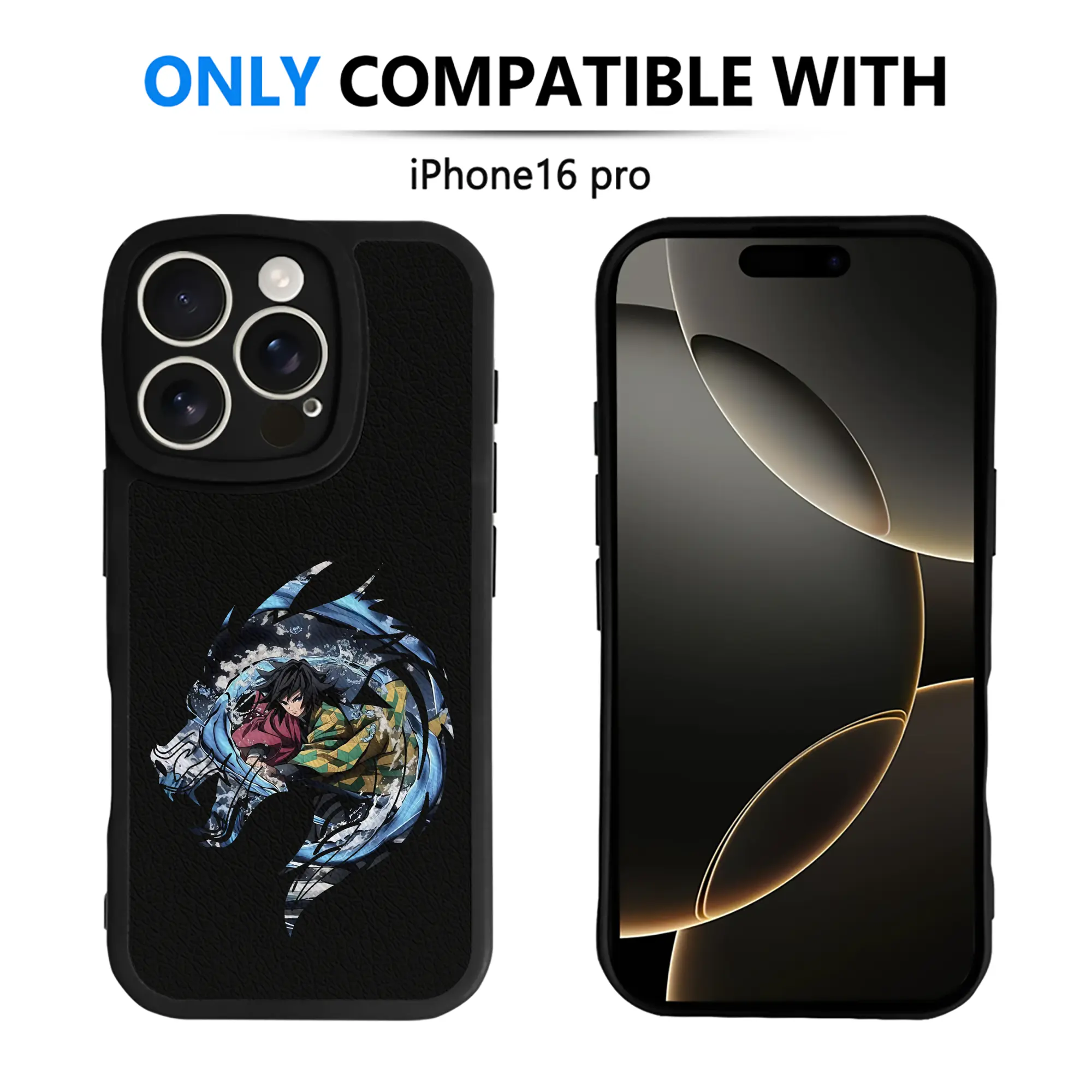 鬼滅の刃 グッズ,冨岡 義勇 - IPhone 16シリーズ対応 ・ シリコンスマホケース ・ レザー調 ・ 高精度フィット ・ 耐衝撃 ・ ワイヤレス充電対応 ・ 精密カット