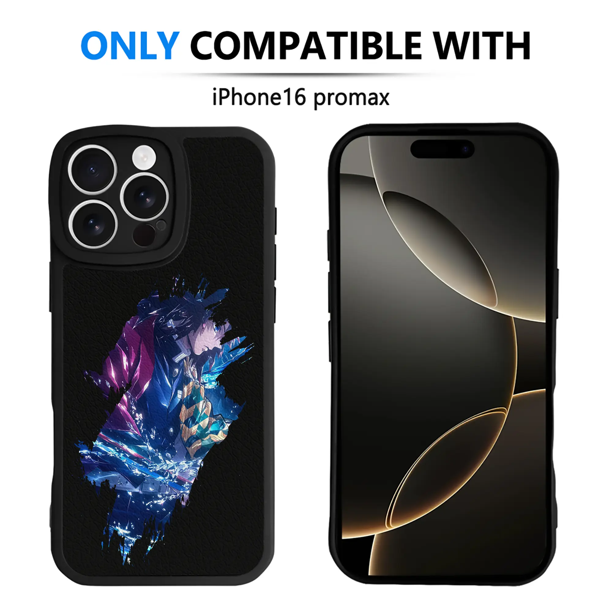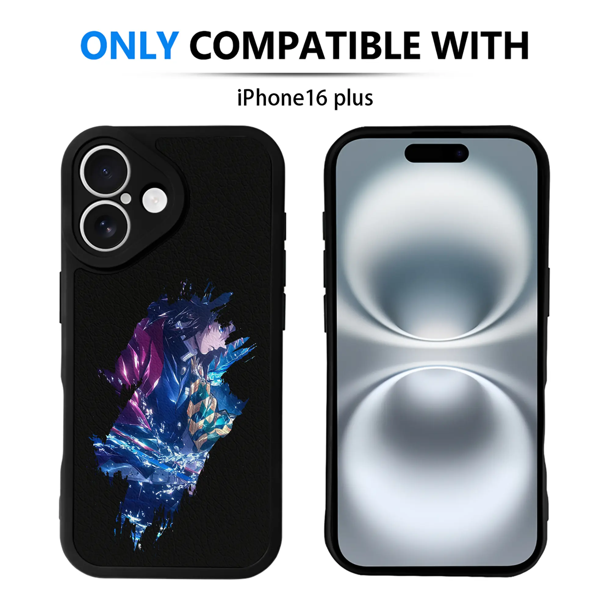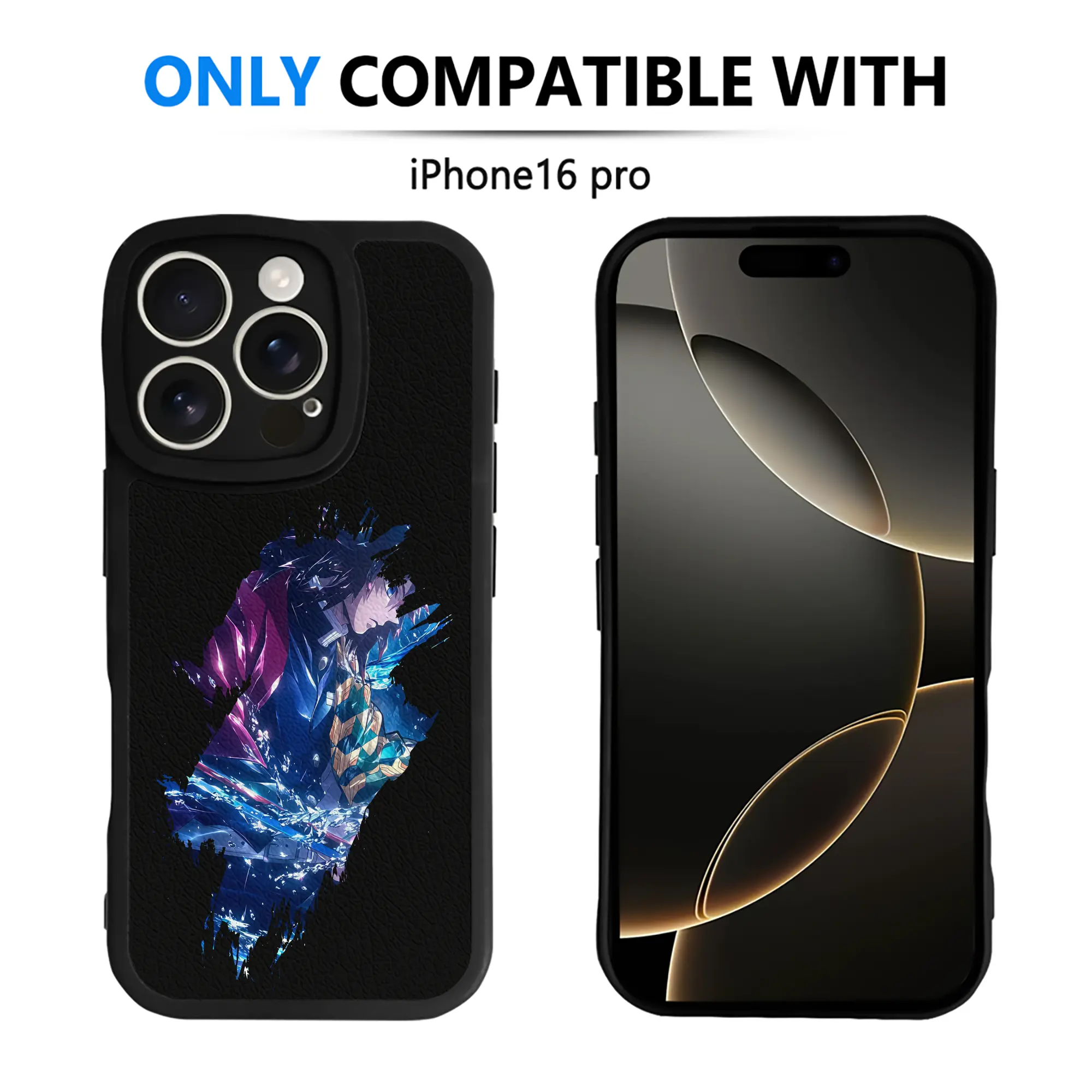 鬼滅の刃 グッズ,冨岡 義勇 - IPhone 16シリーズ対応 ・ シリコンスマホケース ・ レザー調 ・ 高精度フィット ・ 耐衝撃 ・ ワイヤレス充電対応 ・ 精密カット