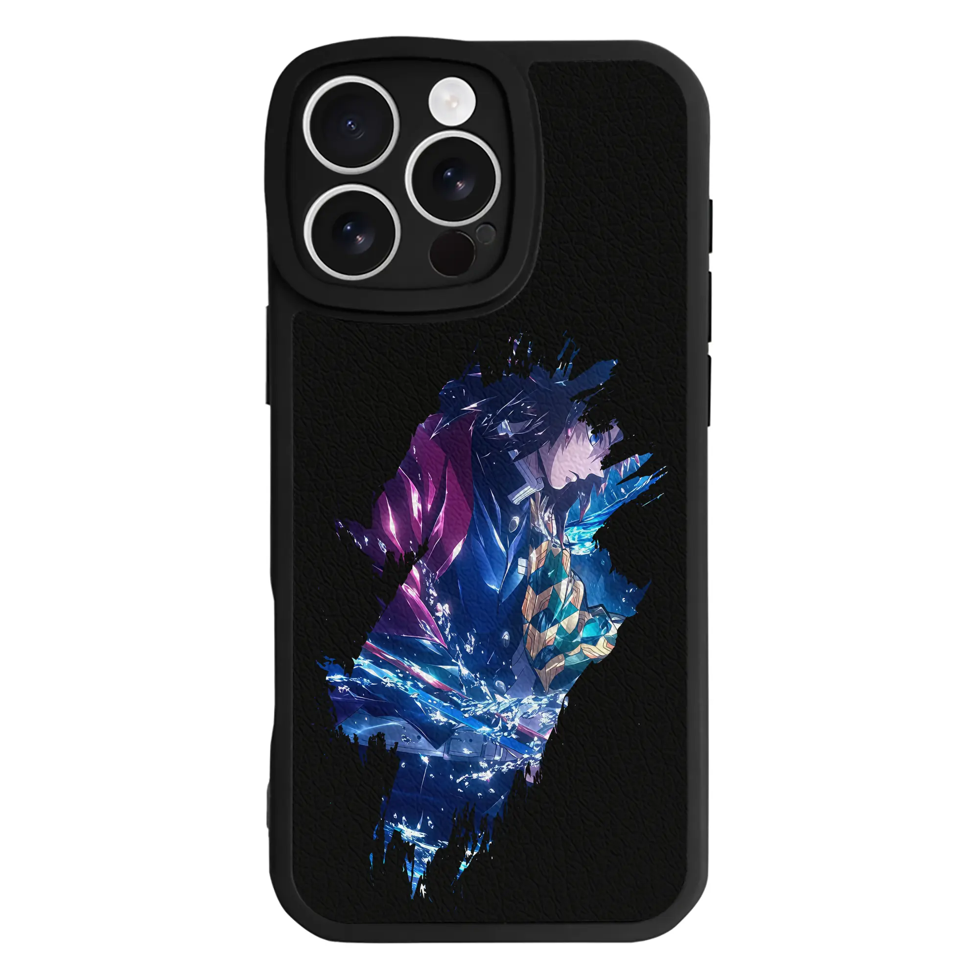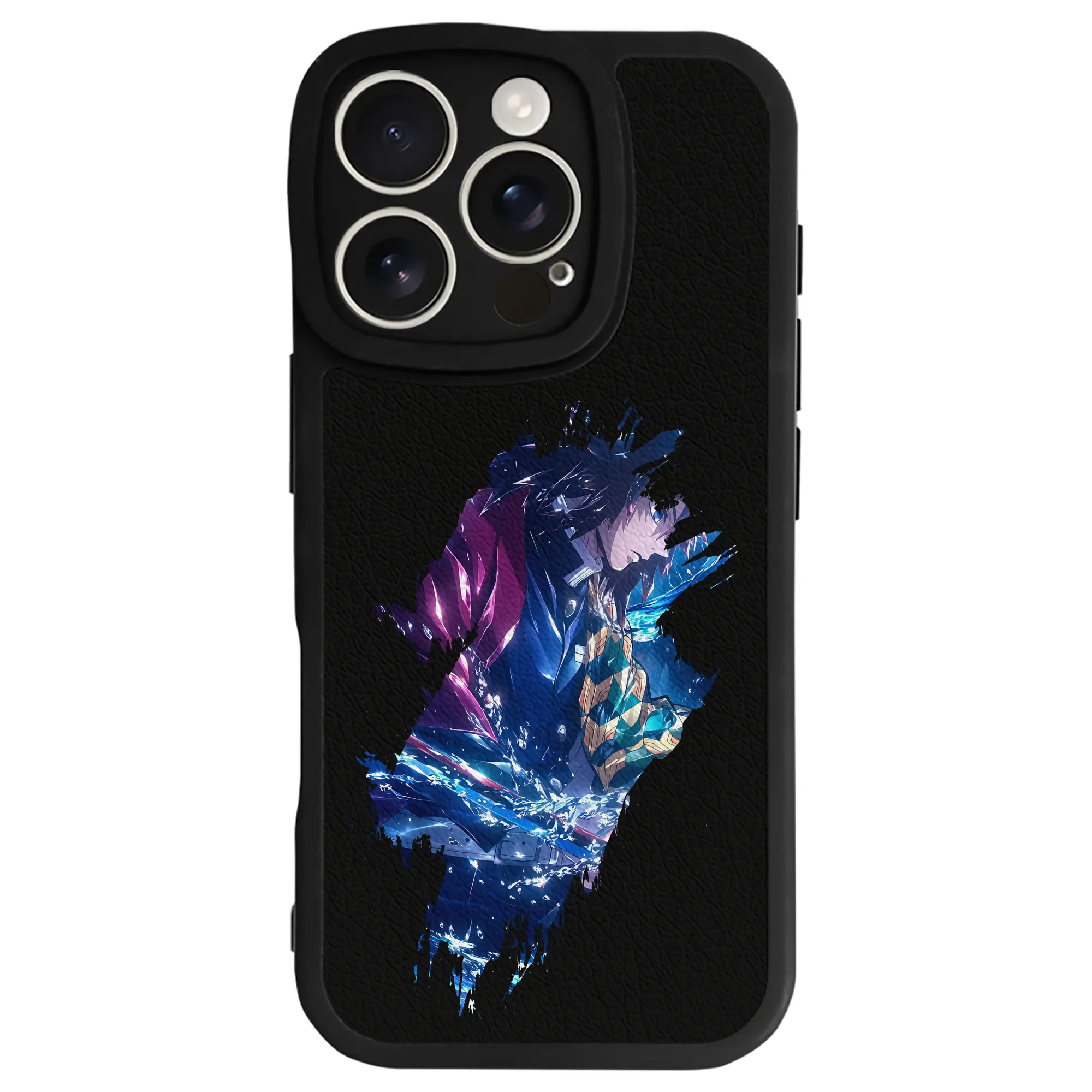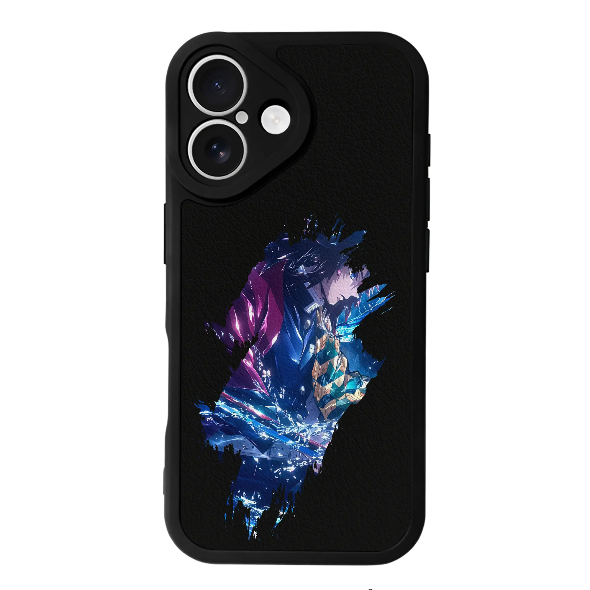 鬼滅の刃 グッズ,冨岡 義勇 - IPhone 16シリーズ対応 ・ シリコンスマホケース ・ レザー調 ・ 高精度フィット ・ 耐衝撃 ・ ワイヤレス充電対応 ・ 精密カット