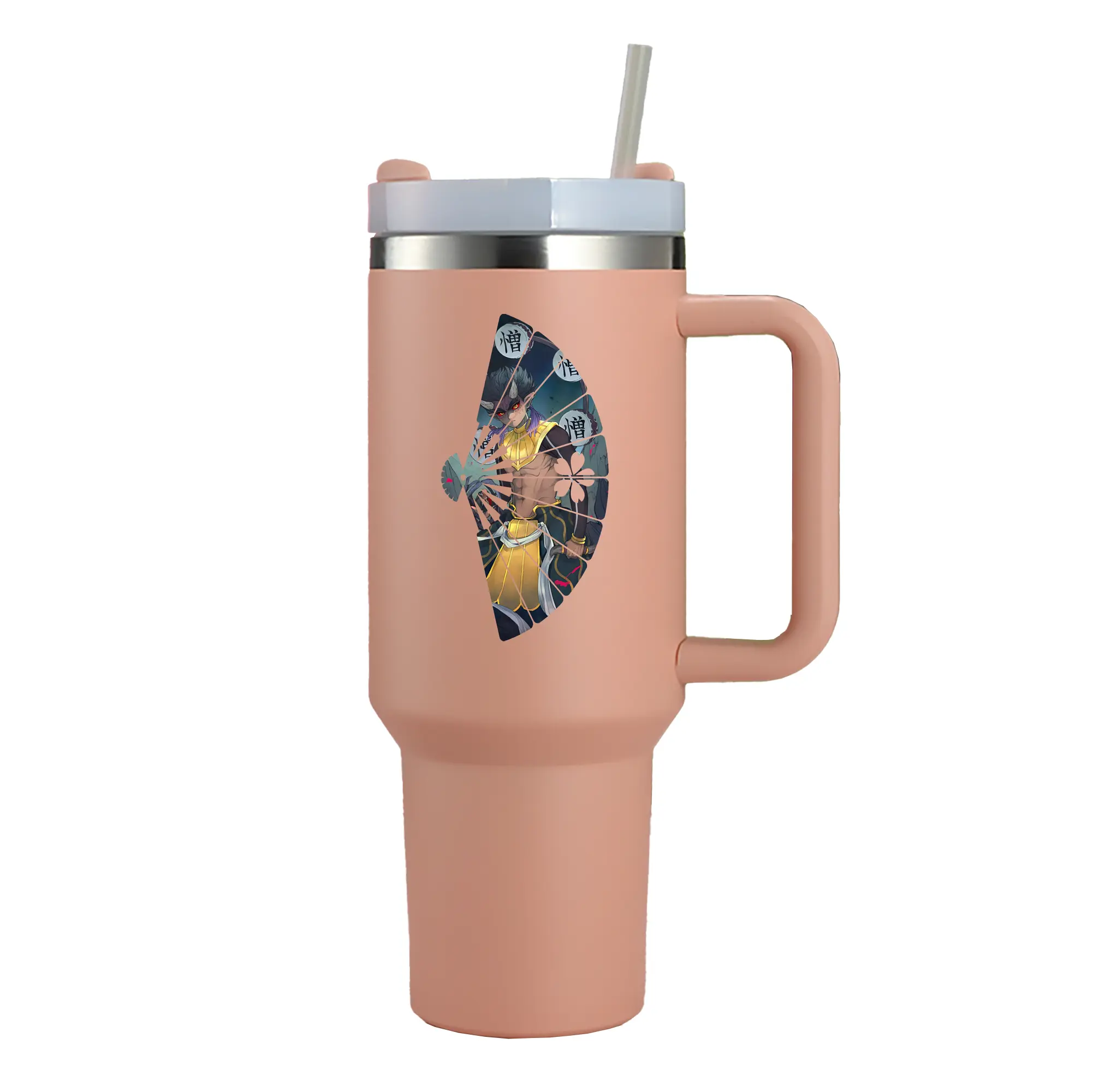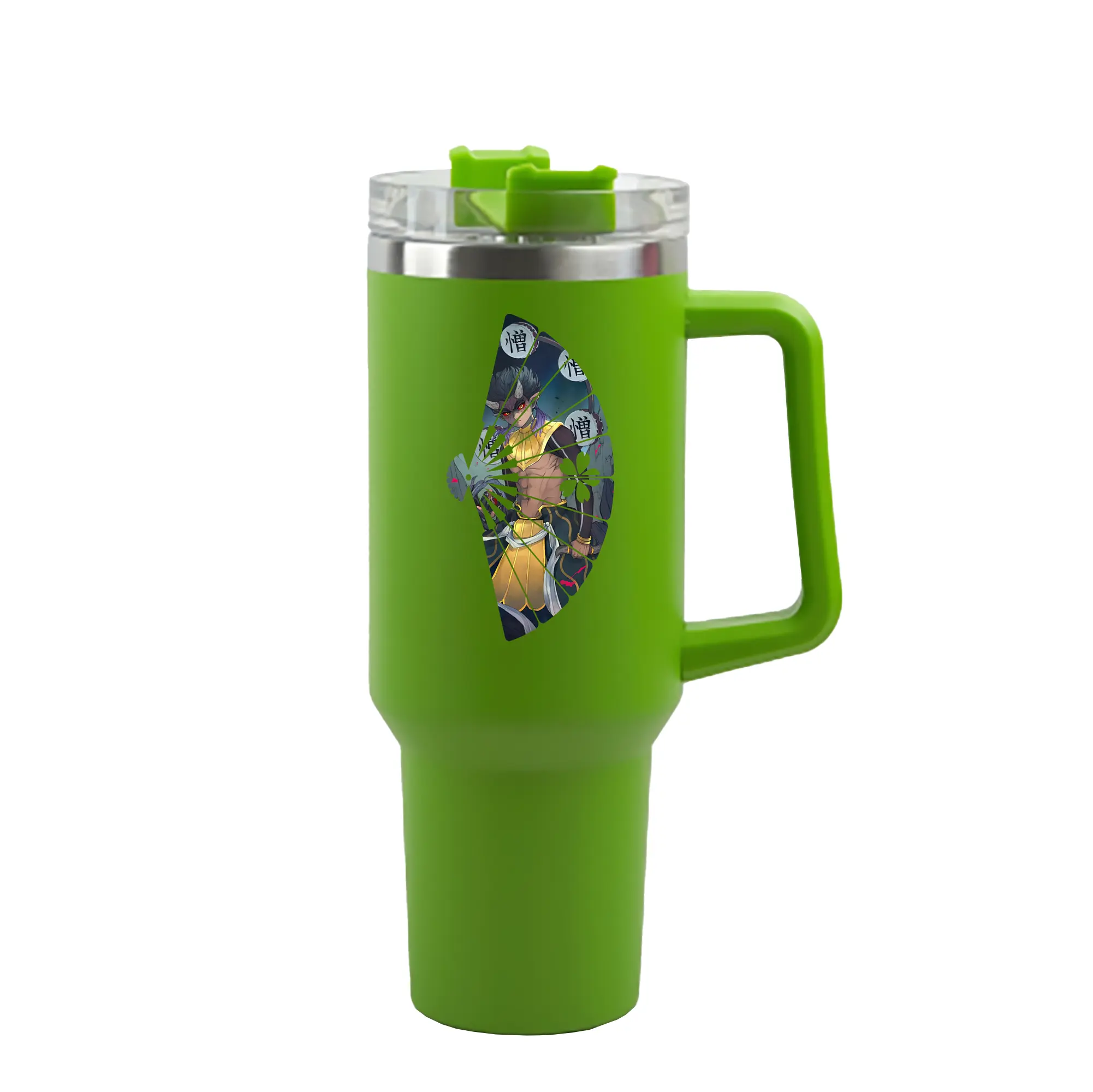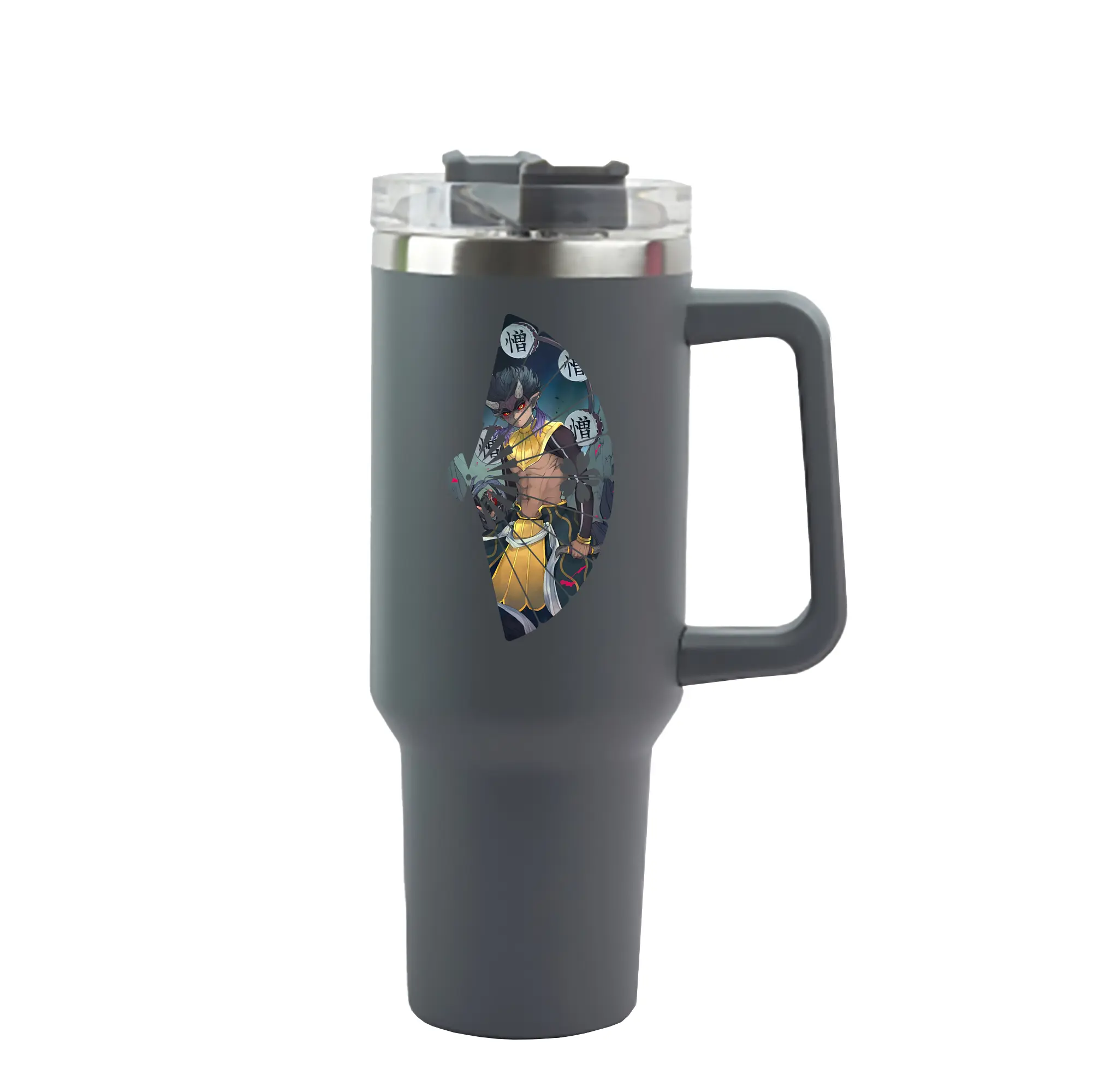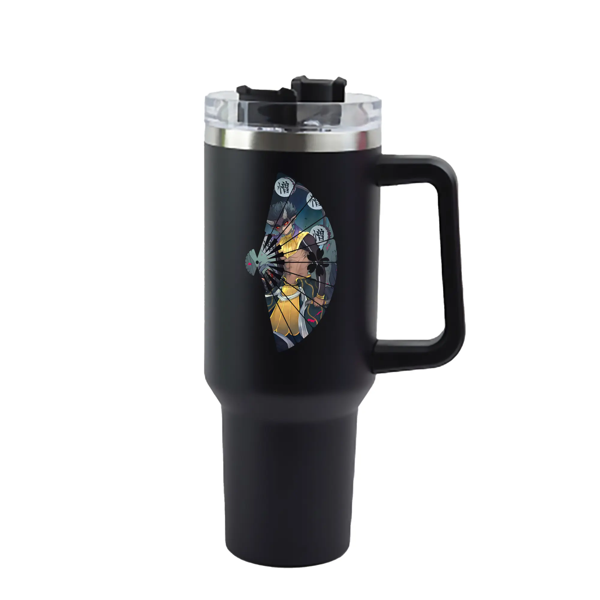 鬼滅の刃 グッズ,半天狗 - 1200mL 車用タンブラー ・ クリスタルステッカー ・ 304ステンレス 内側 ・ 201ステンレス 外側 ・ 保温 保冷 ・ ハンドル&ストロー付き ・ 通勤 ドライブ アウトドア用