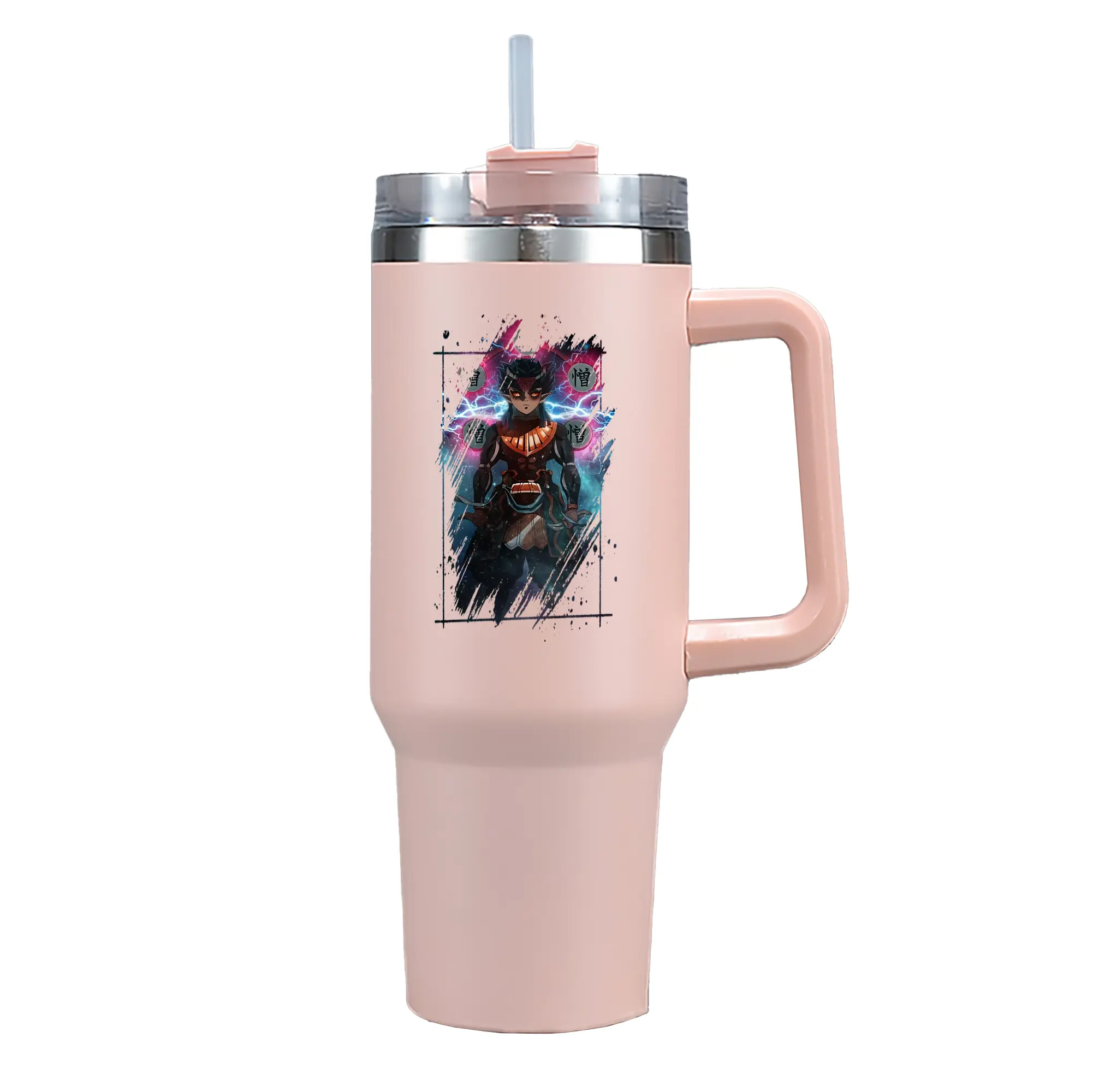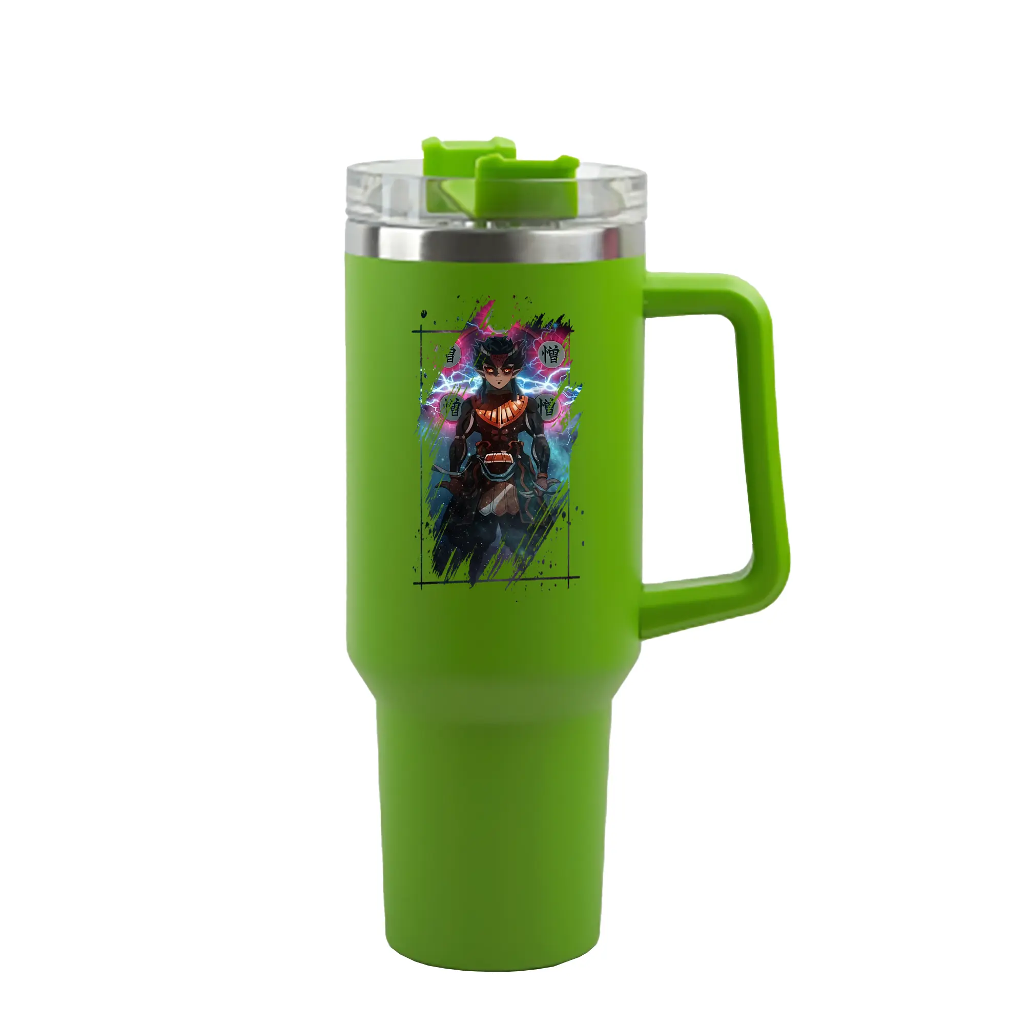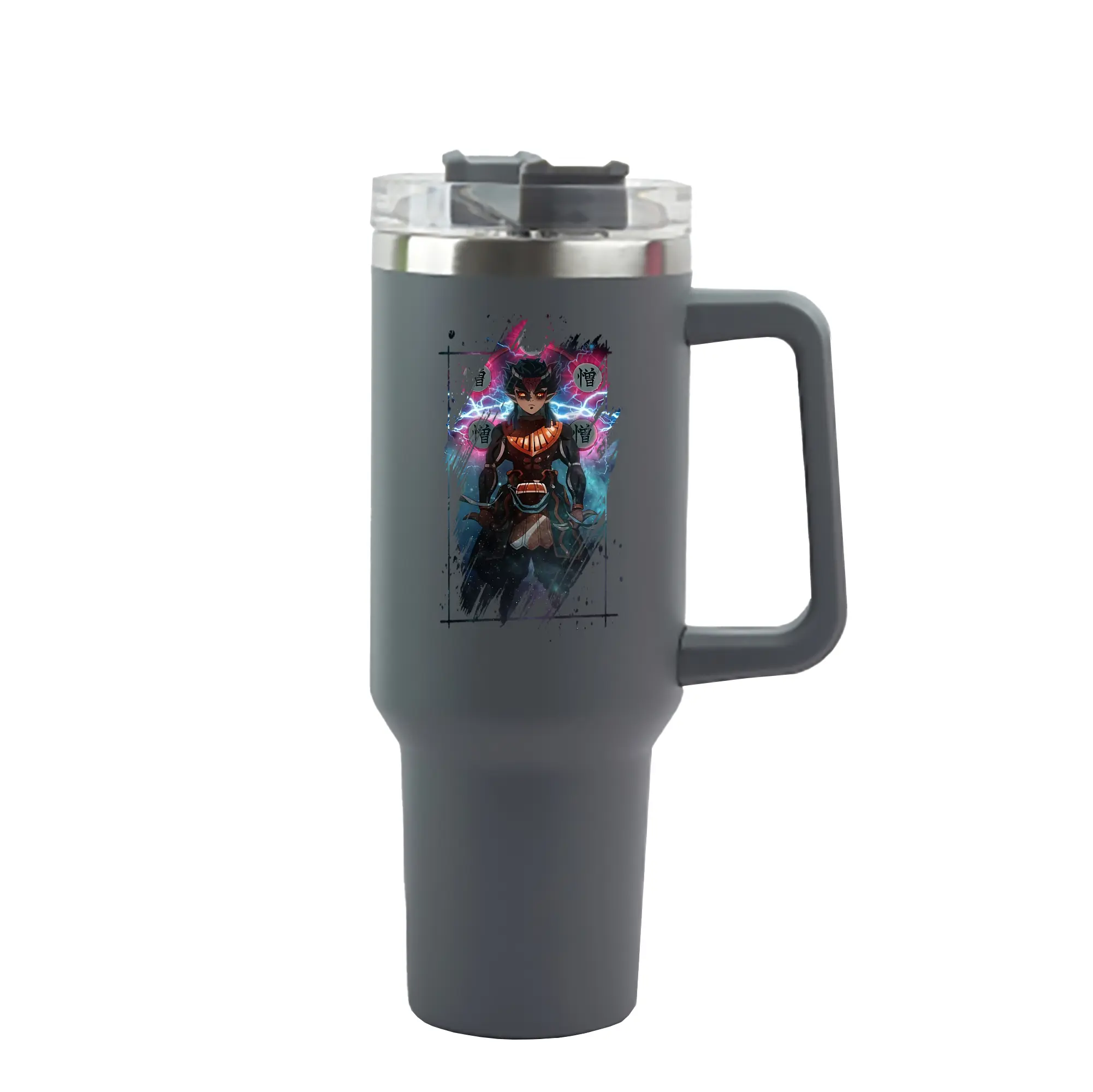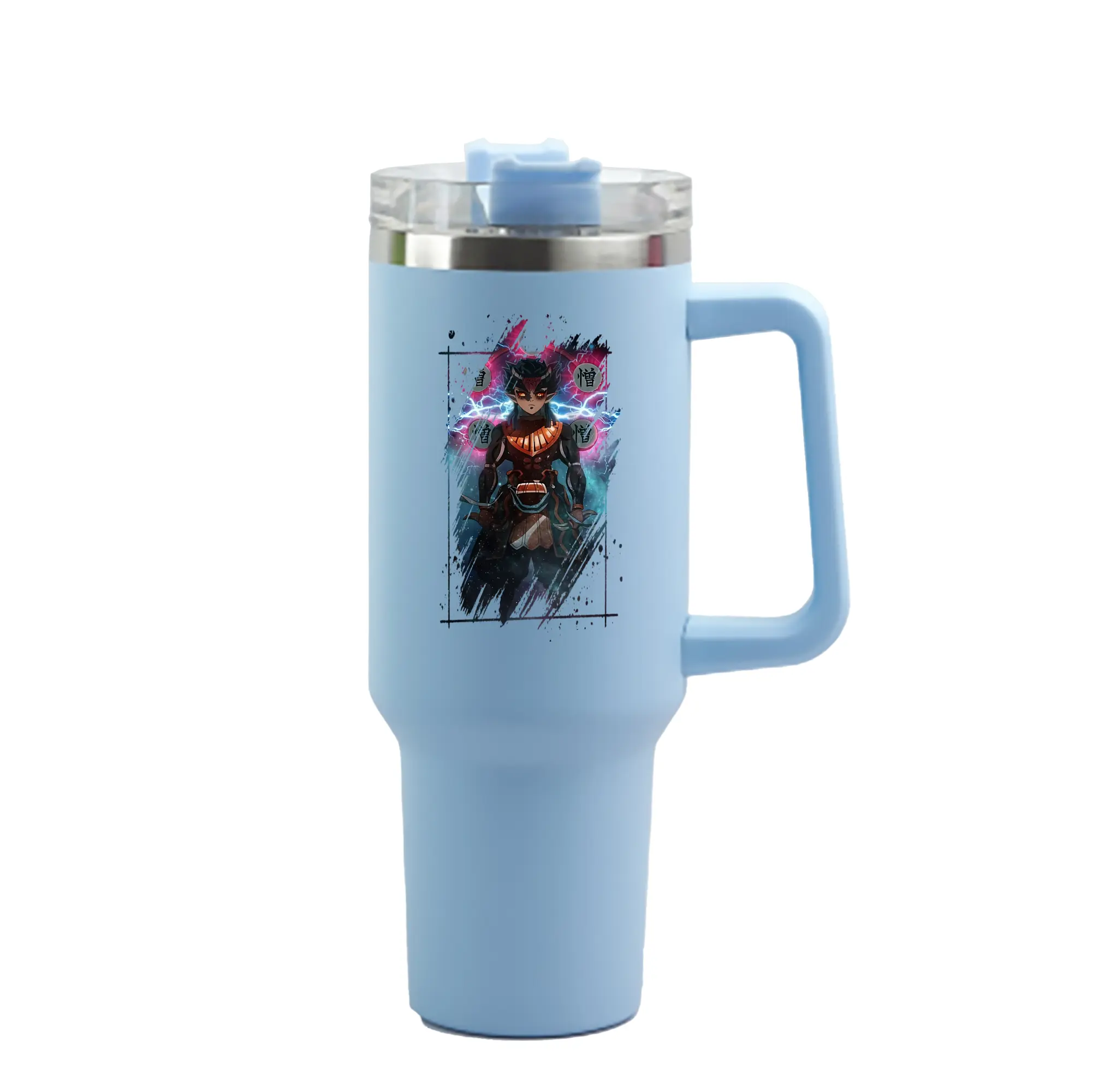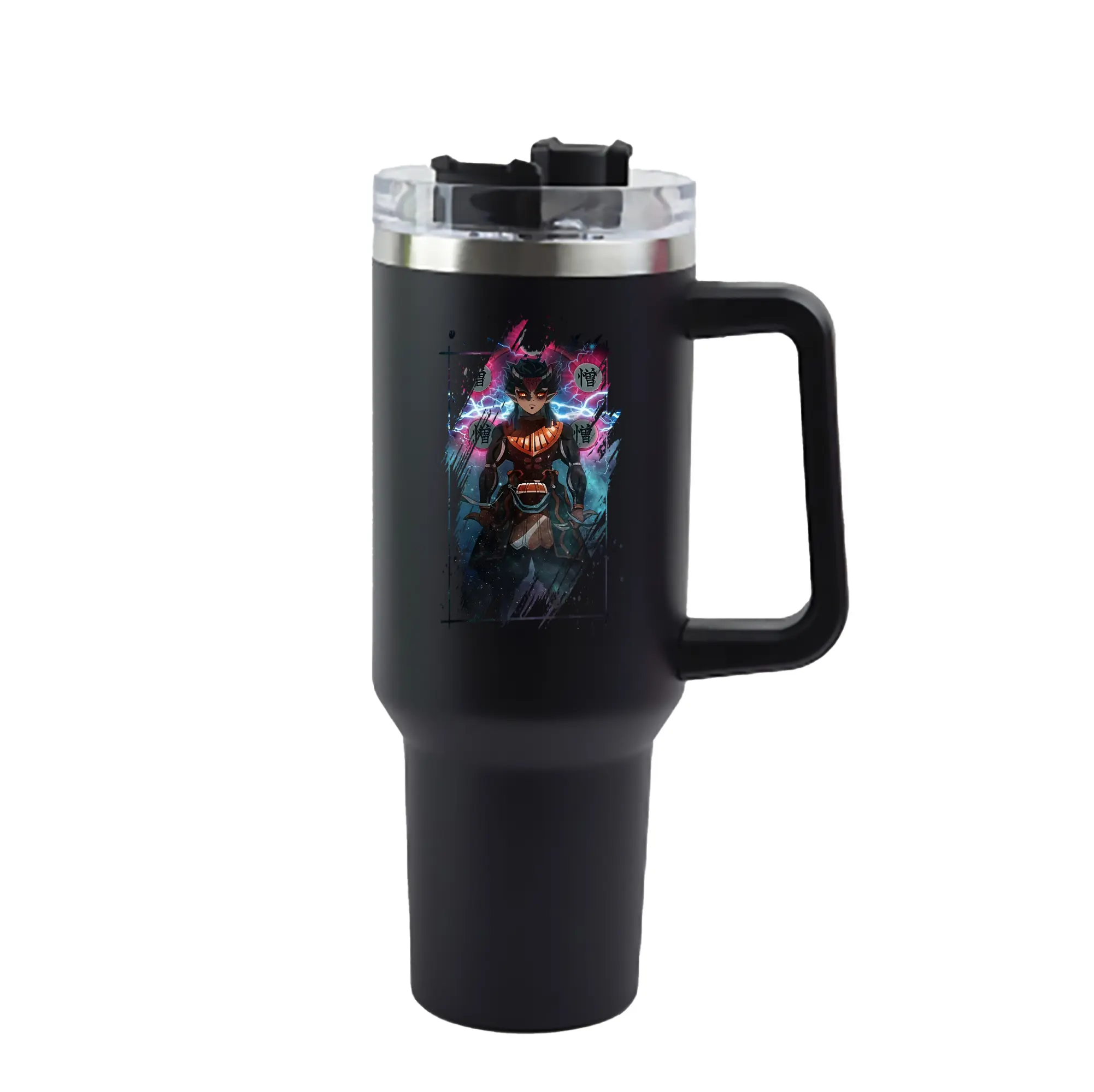 鬼滅の刃 グッズ,半天狗 - 1200mL 車用タンブラー ・ クリスタルステッカー ・ 304ステンレス 内側 ・ 201ステンレス 外側 ・ 保温 保冷 ・ ハンドル&ストロー付き ・ 通勤 ドライブ アウトドア用