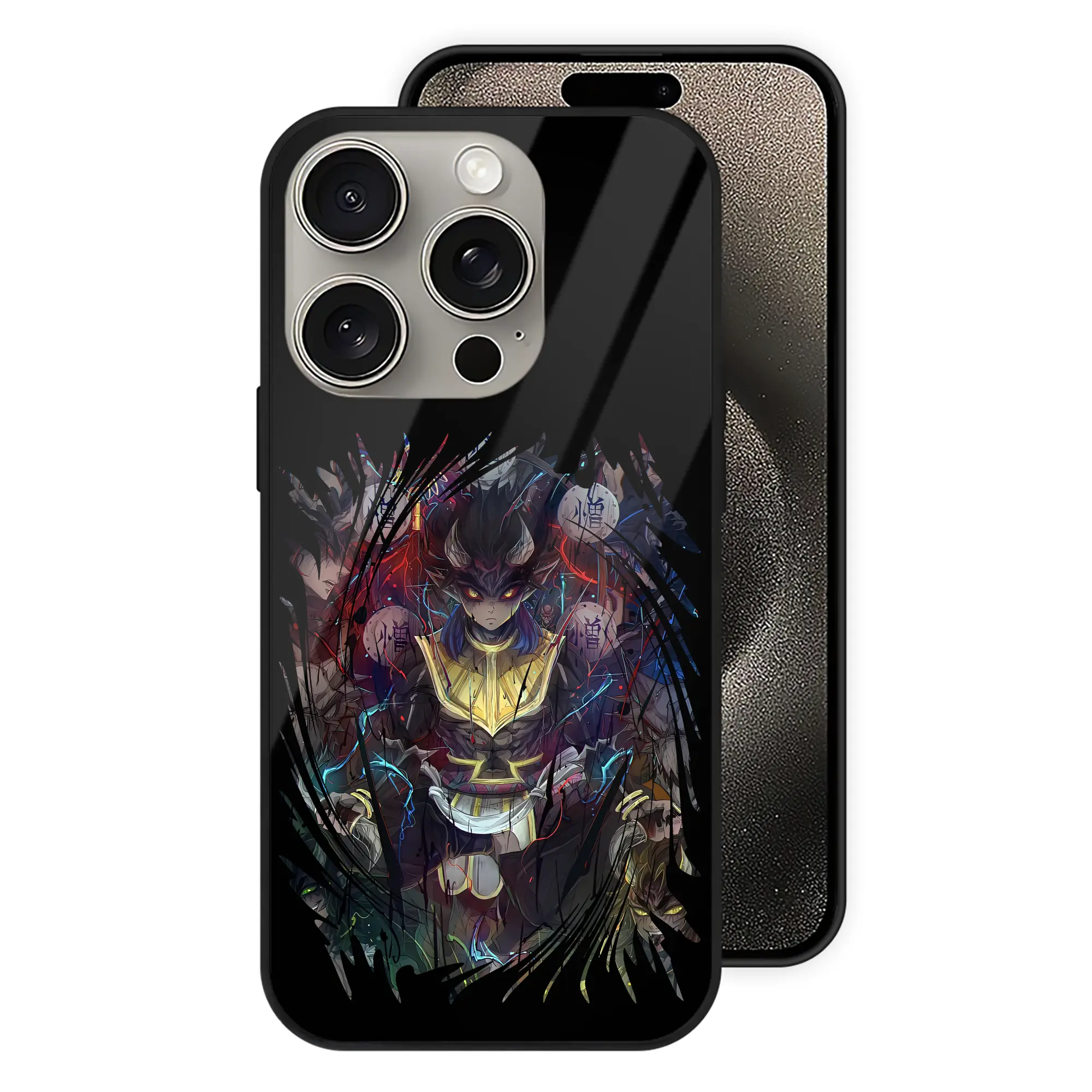鬼滅の刃 グッズ,半天狗 - IPhone15Pro対応 ・ スマホケース ・ 背面ガラス ・ TPU+強化ガラス ・ 耐衝撃 ・ 黄変防止 ・ ワイヤレス充電対応 ・ 3D立体ボタン
