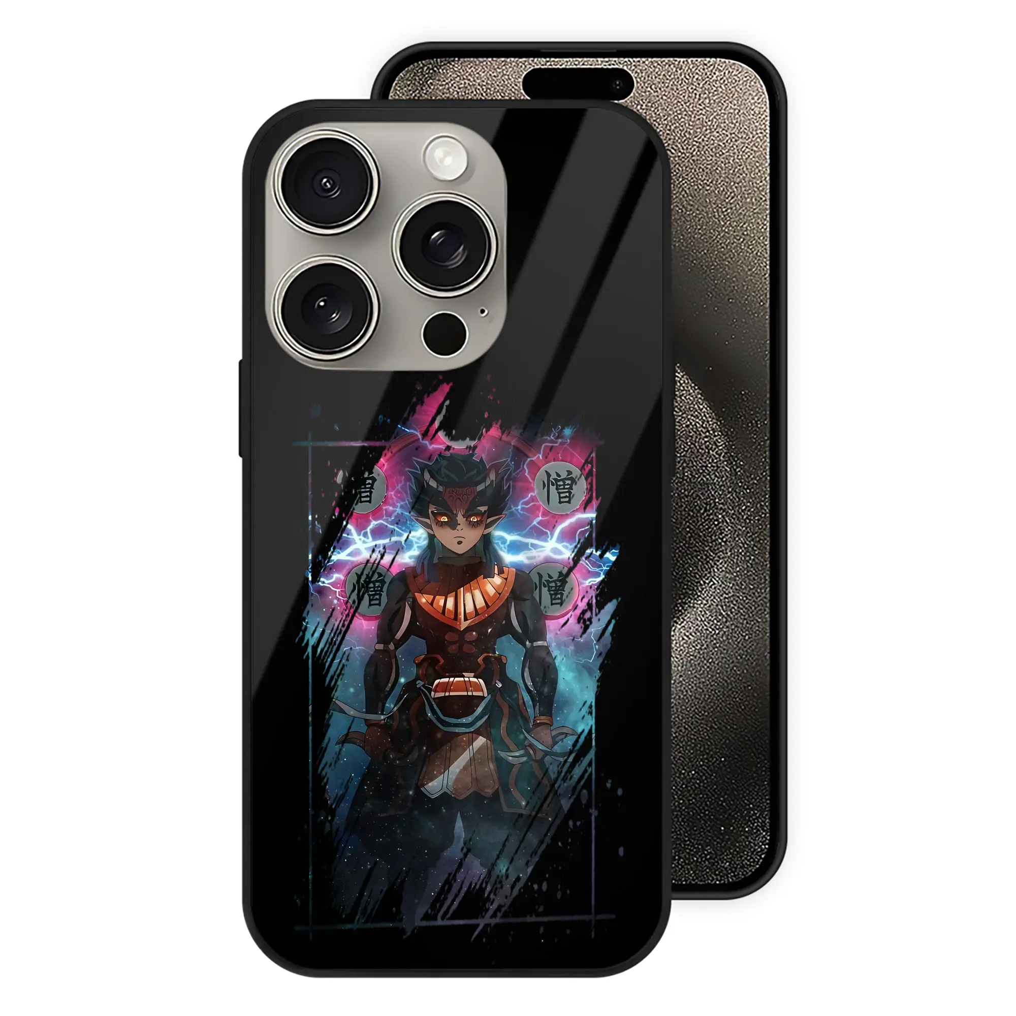 鬼滅の刃 グッズ,半天狗 - IPhone15Pro対応 ・ スマホケース ・ 背面ガラス ・ TPU+強化ガラス ・ 耐衝撃 ・ 黄変防止 ・ ワイヤレス充電対応 ・ 3D立体ボタン