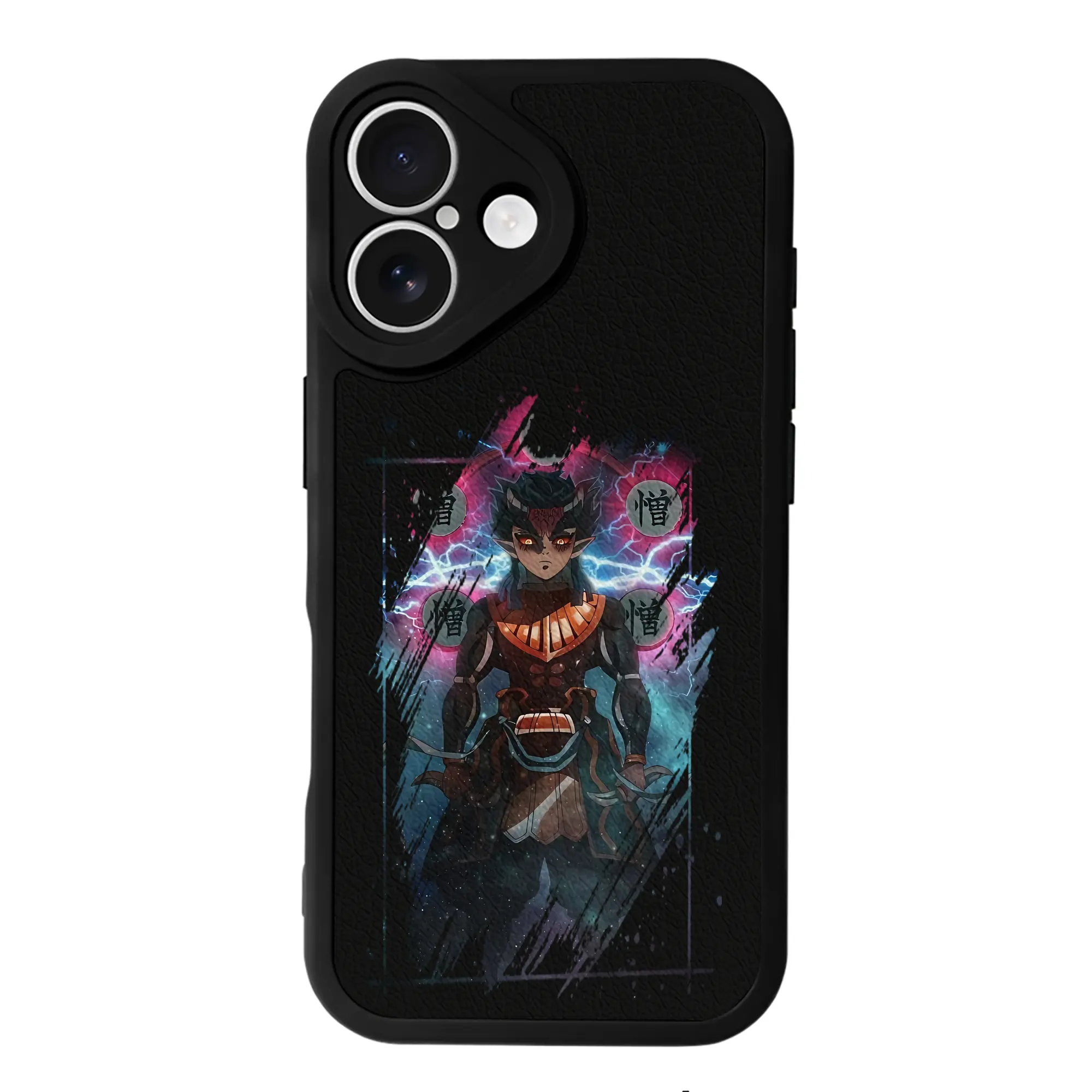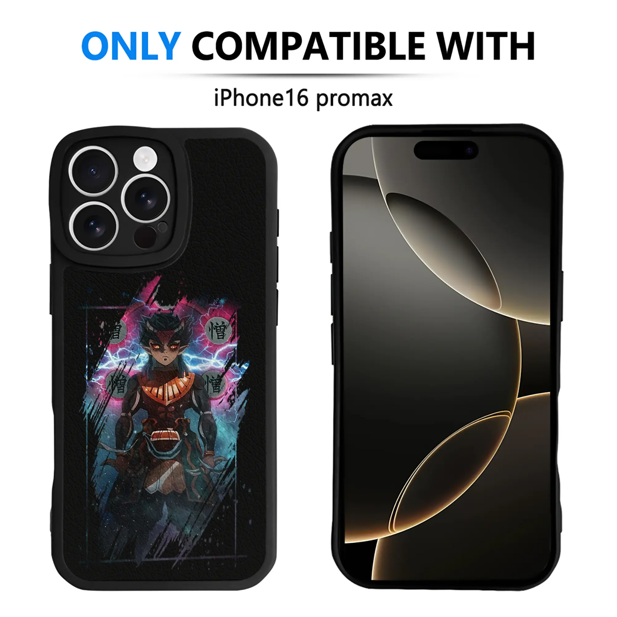 鬼滅の刃 グッズ,半天狗 - IPhone 16シリーズ対応 ・ シリコンスマホケース ・ レザー調 ・ 高精度フィット ・ 耐衝撃 ・ ワイヤレス充電対応 ・ 精密カット