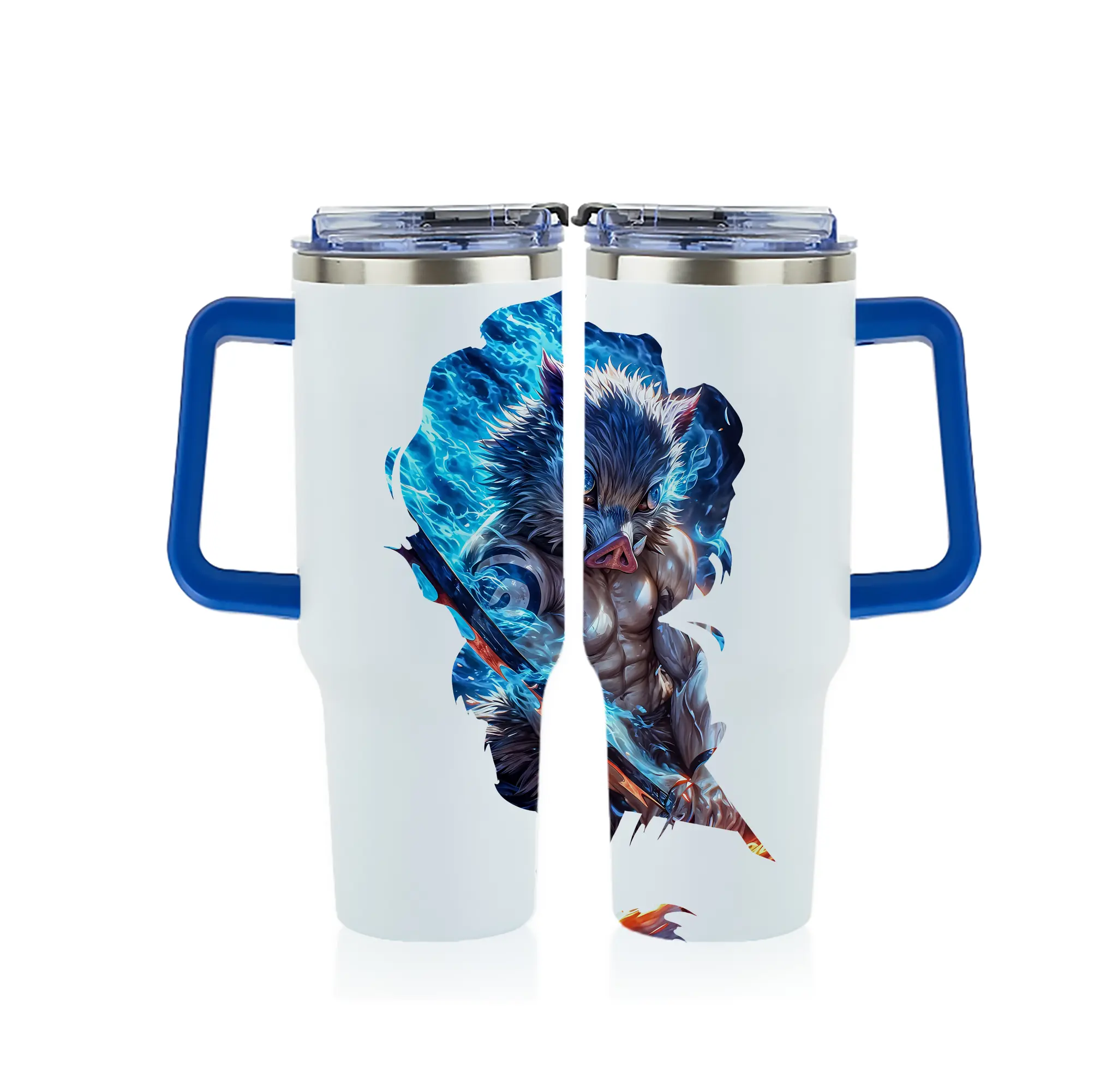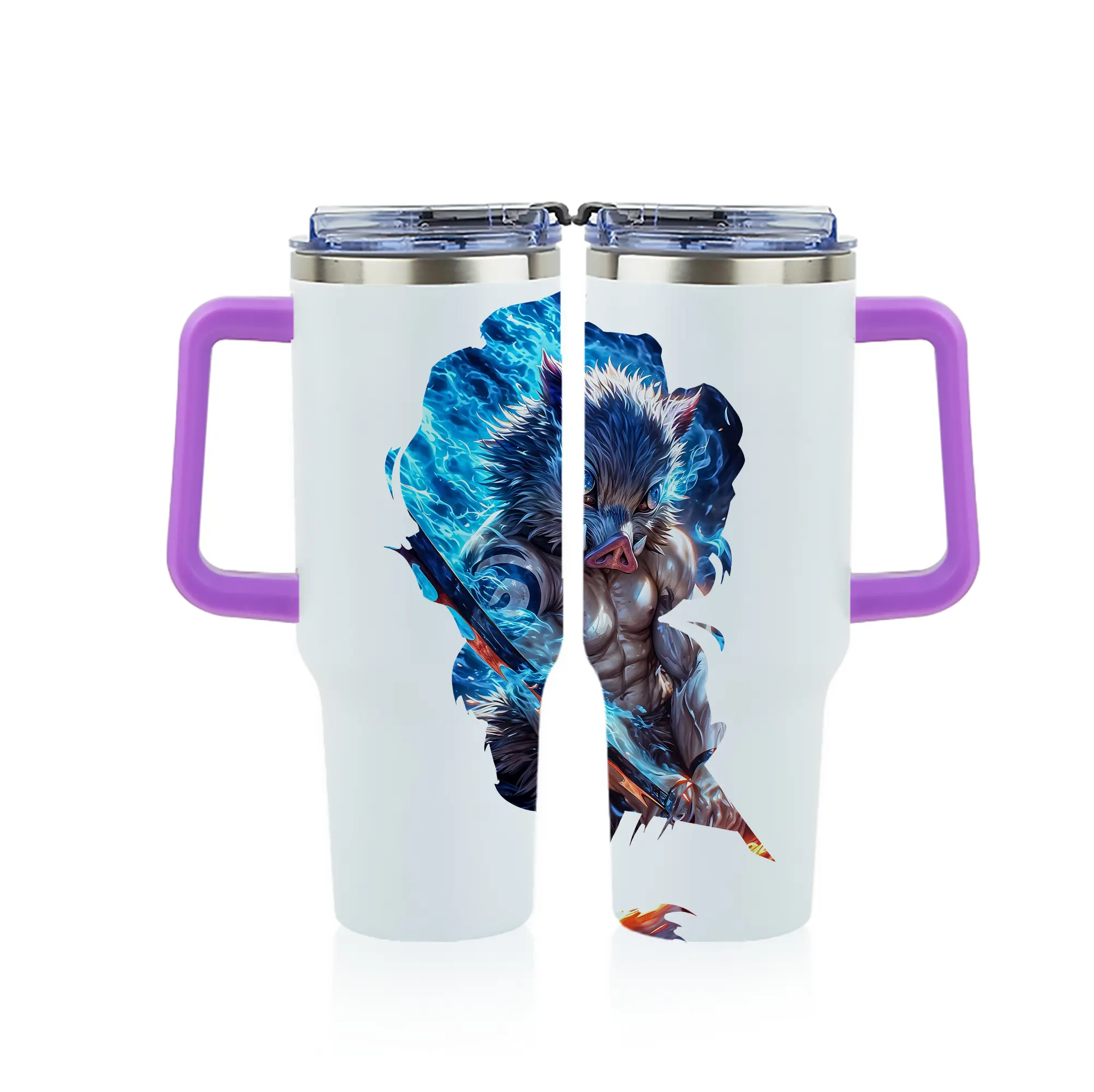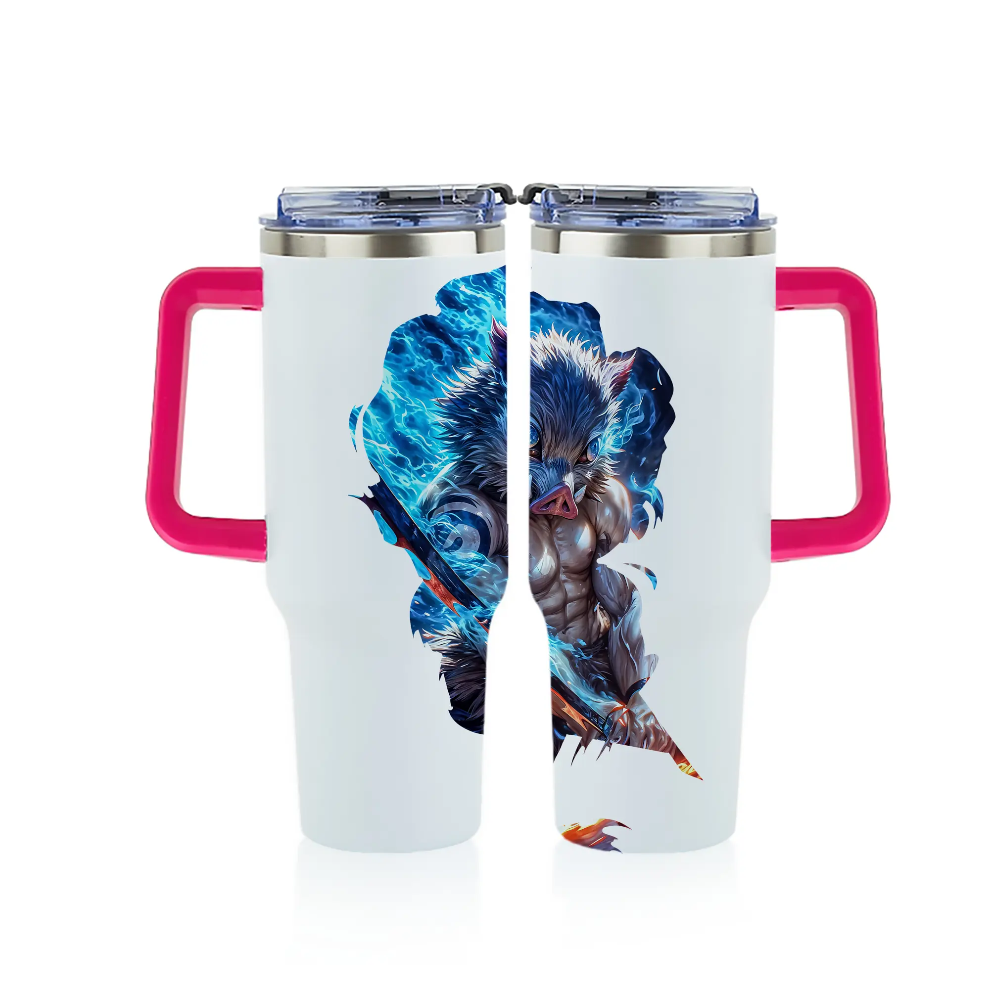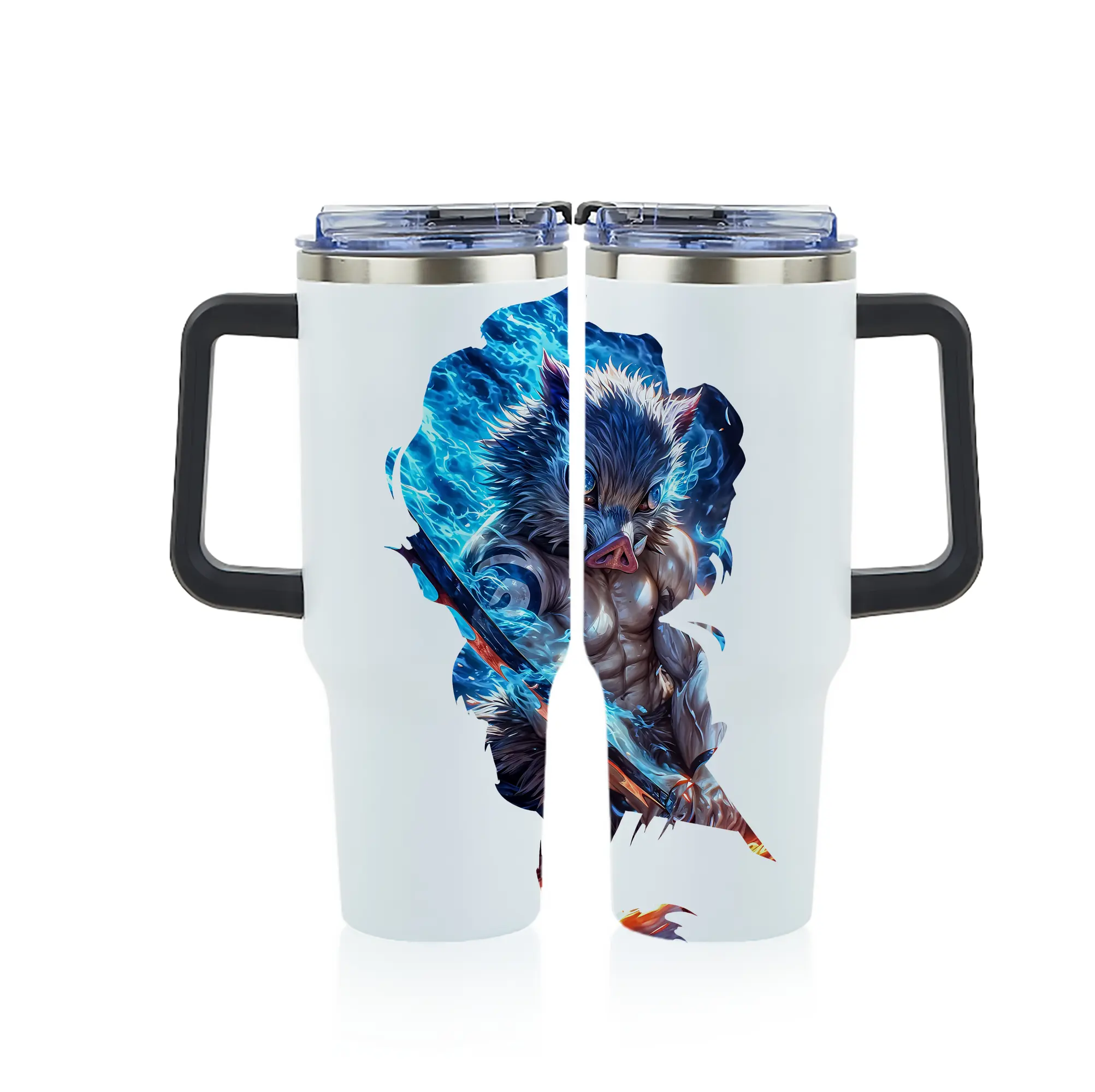 鬼滅の刃 グッズ,嘴平 伊之助 - 1200mL フルプリント車用タンブラー ・ 304ステンレス 内側 ・ 201ステンレス 外側 ・ 保温 保冷 ・ 通勤 ドライブ アウトドア用