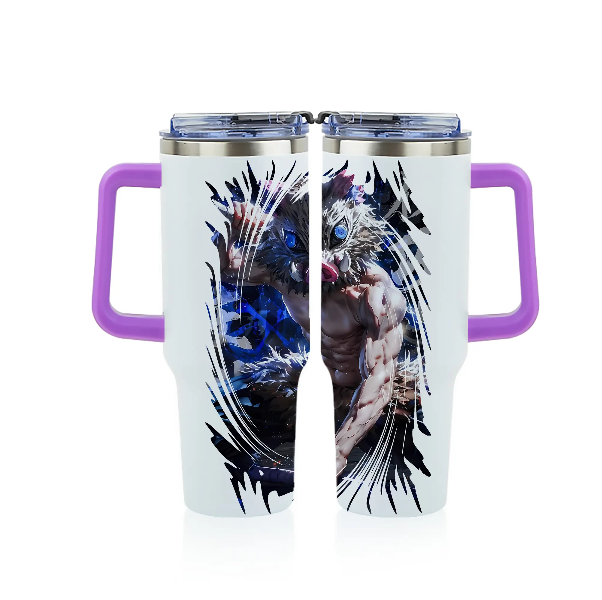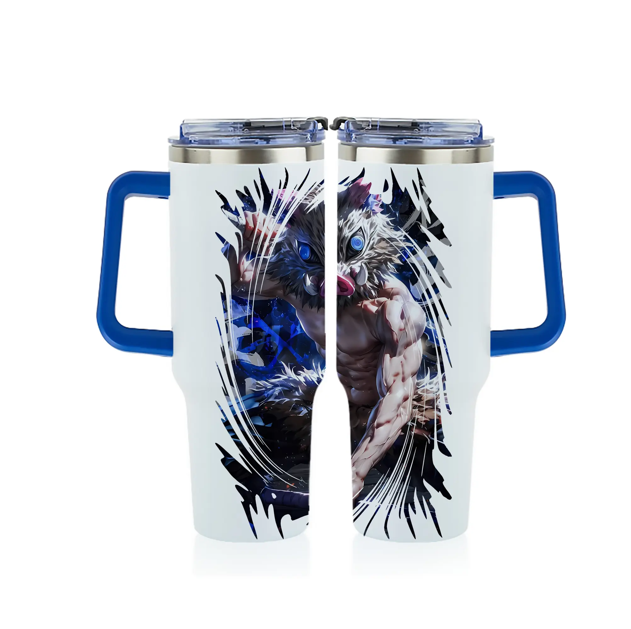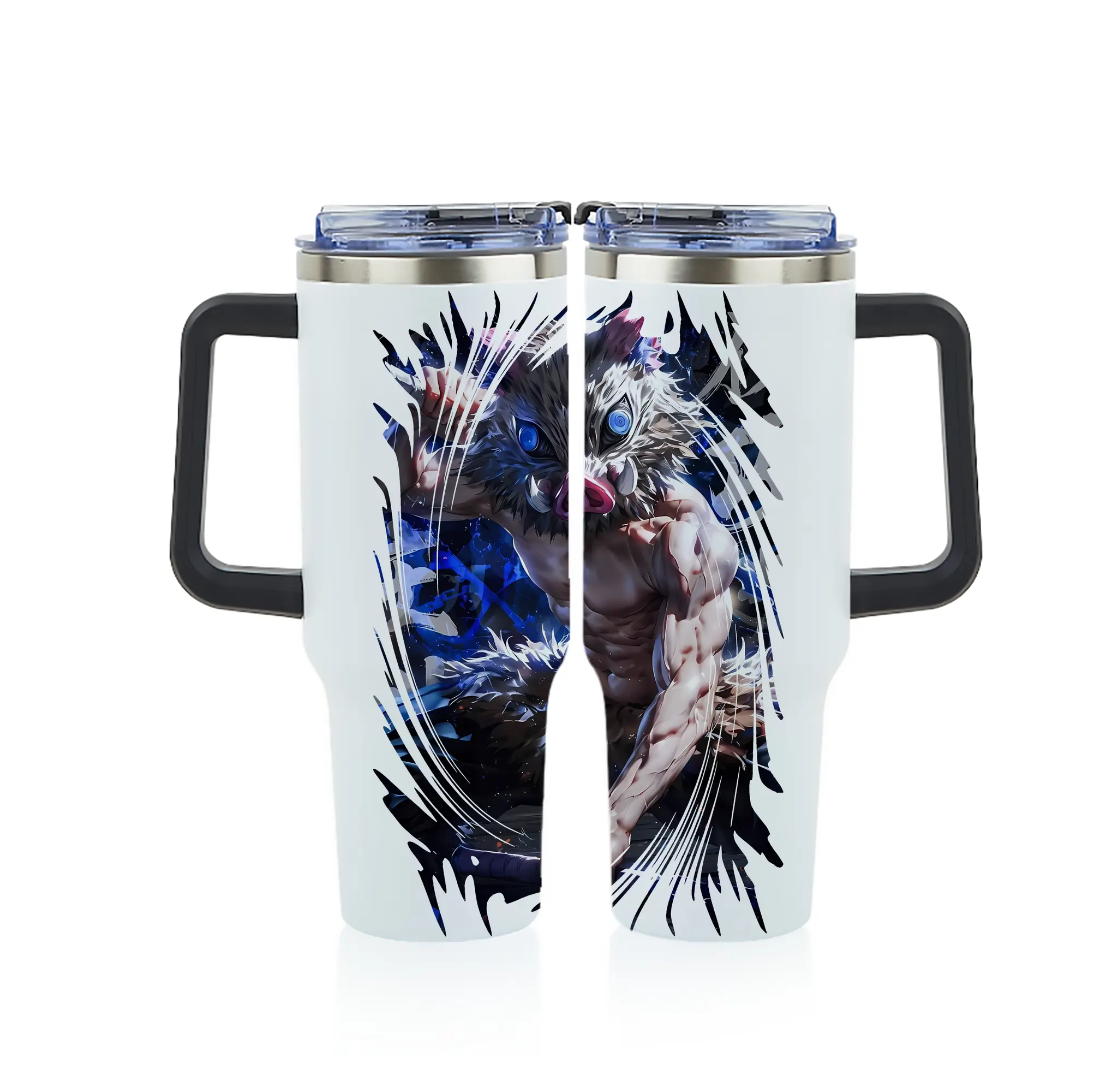 鬼滅の刃 グッズ,嘴平 伊之助 - 1200mL フルプリント車用タンブラー ・ 304ステンレス 内側 ・ 201ステンレス 外側 ・ 保温 保冷 ・ 通勤 ドライブ アウトドア用