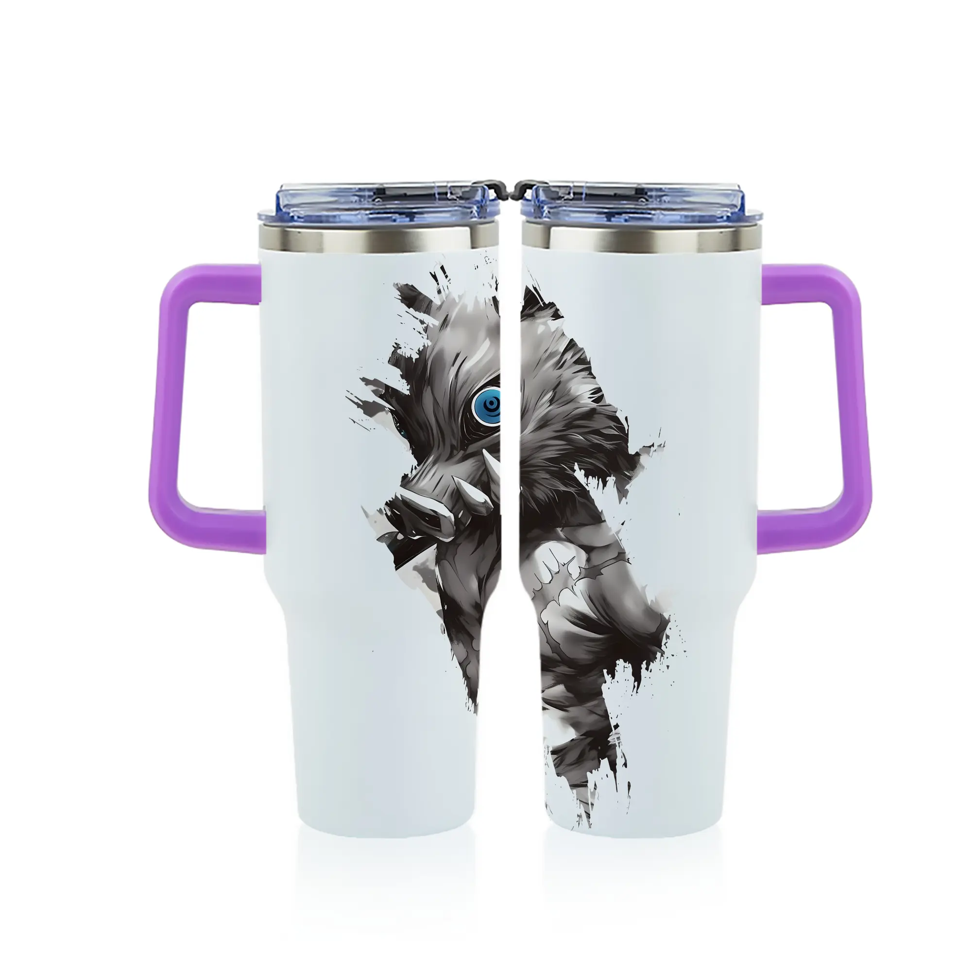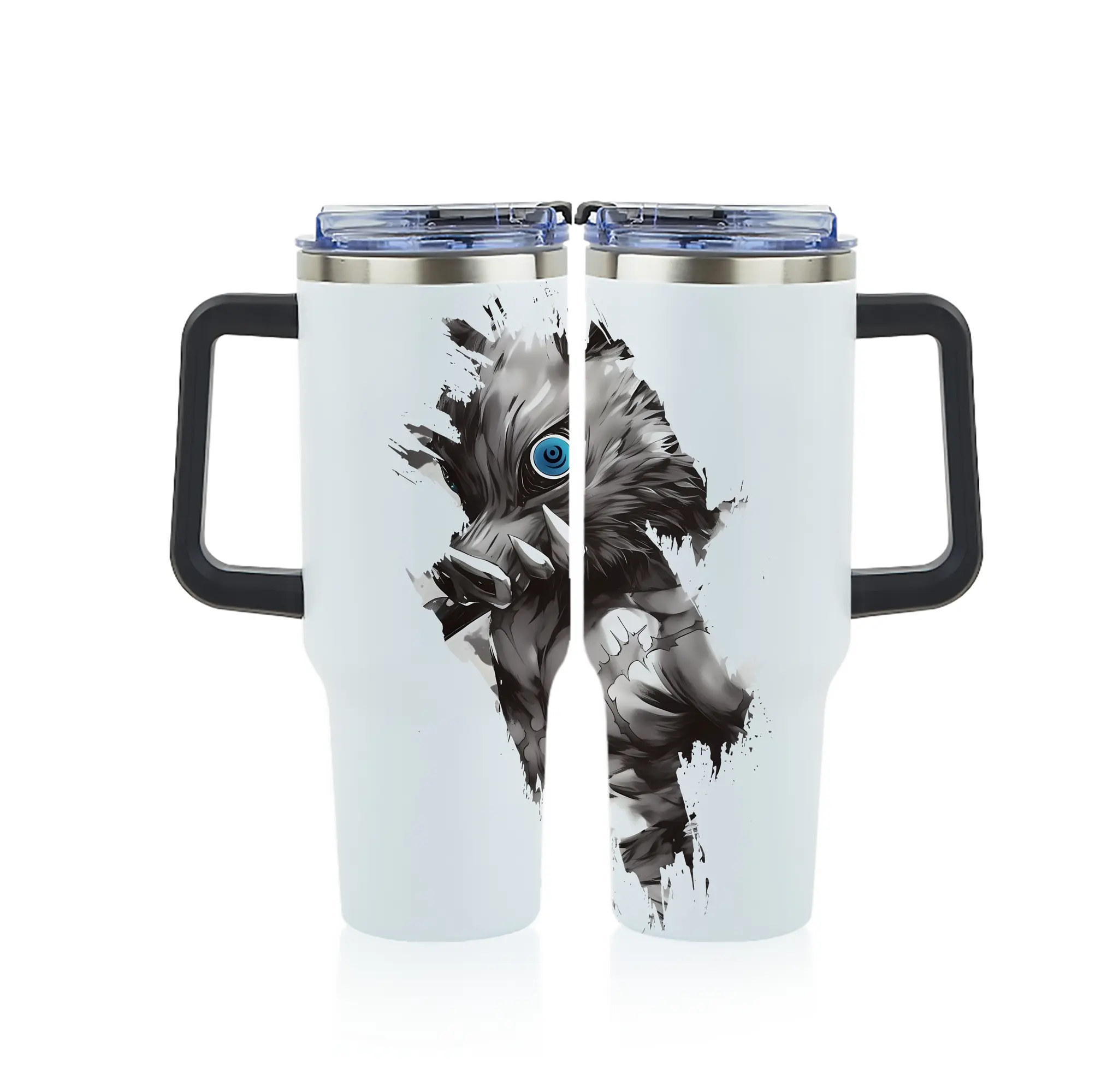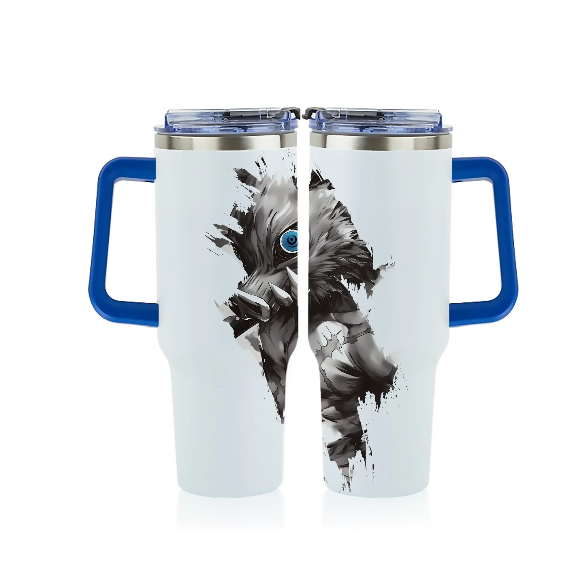 鬼滅の刃 グッズ,嘴平 伊之助 - 1200mL フルプリント車用タンブラー ・ 304ステンレス 内側 ・ 201ステンレス 外側 ・ 保温 保冷 ・ 通勤 ドライブ アウトドア用