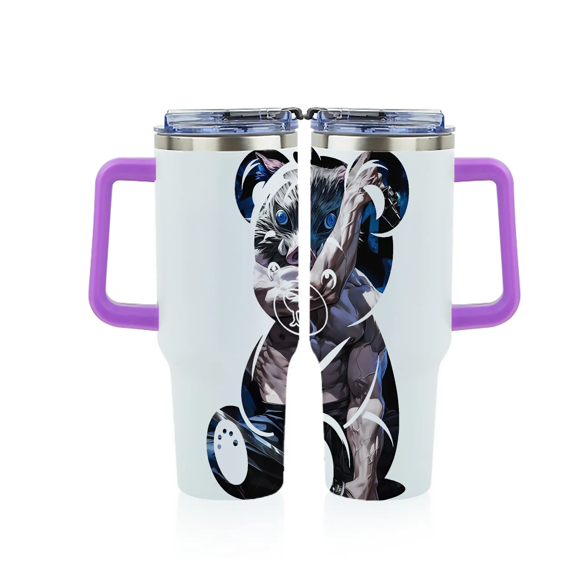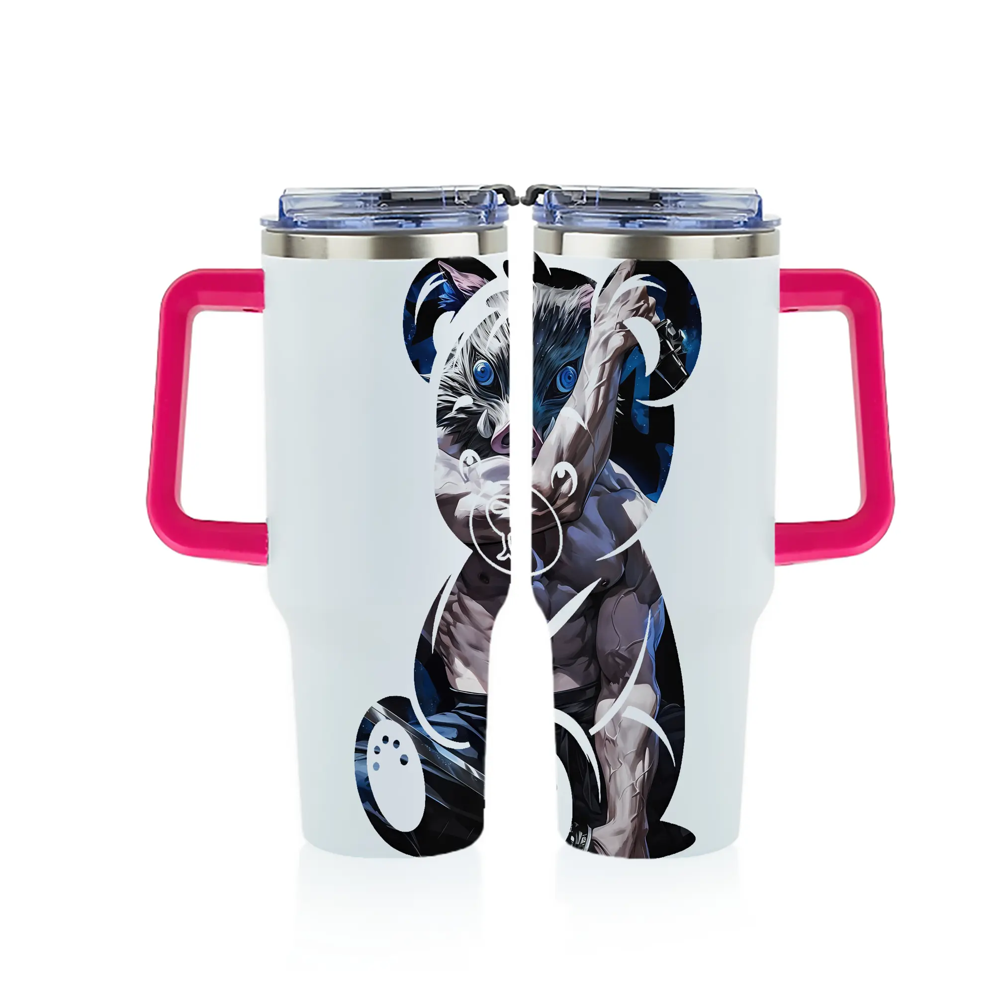 鬼滅の刃 グッズ,嘴平 伊之助 - 1200mL フルプリント車用タンブラー ・ 304ステンレス 内側 ・ 201ステンレス 外側 ・ 保温 保冷 ・ 通勤 ドライブ アウトドア用