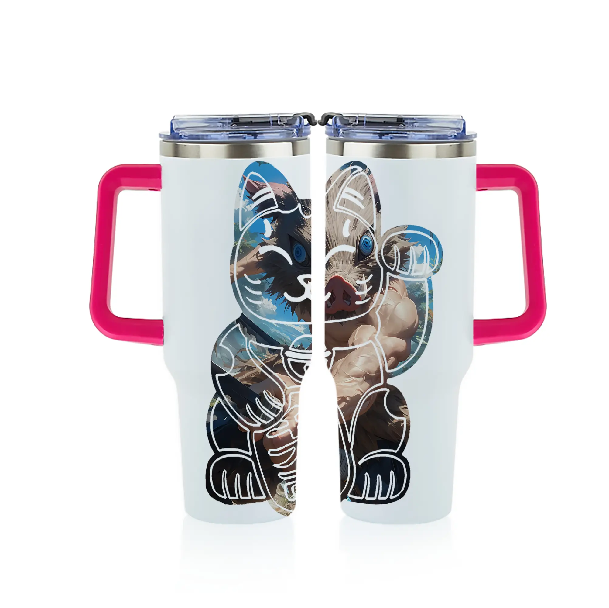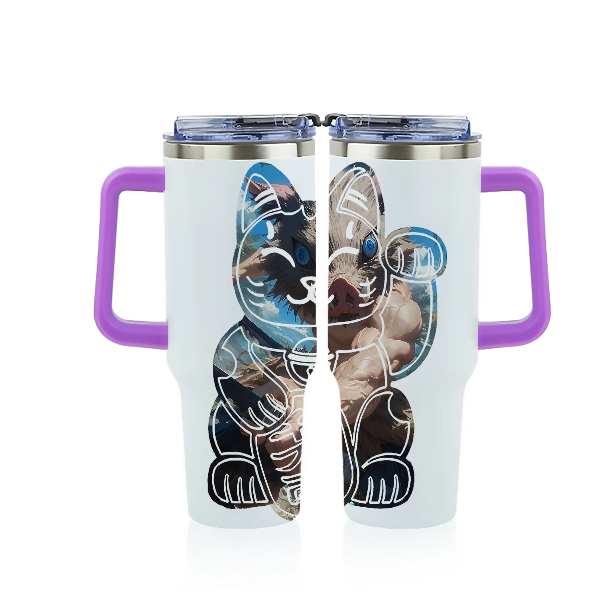 鬼滅の刃 グッズ,嘴平 伊之助 - 1200mL フルプリント車用タンブラー ・ 304ステンレス 内側 ・ 201ステンレス 外側 ・ 保温 保冷 ・ 通勤 ドライブ アウトドア用