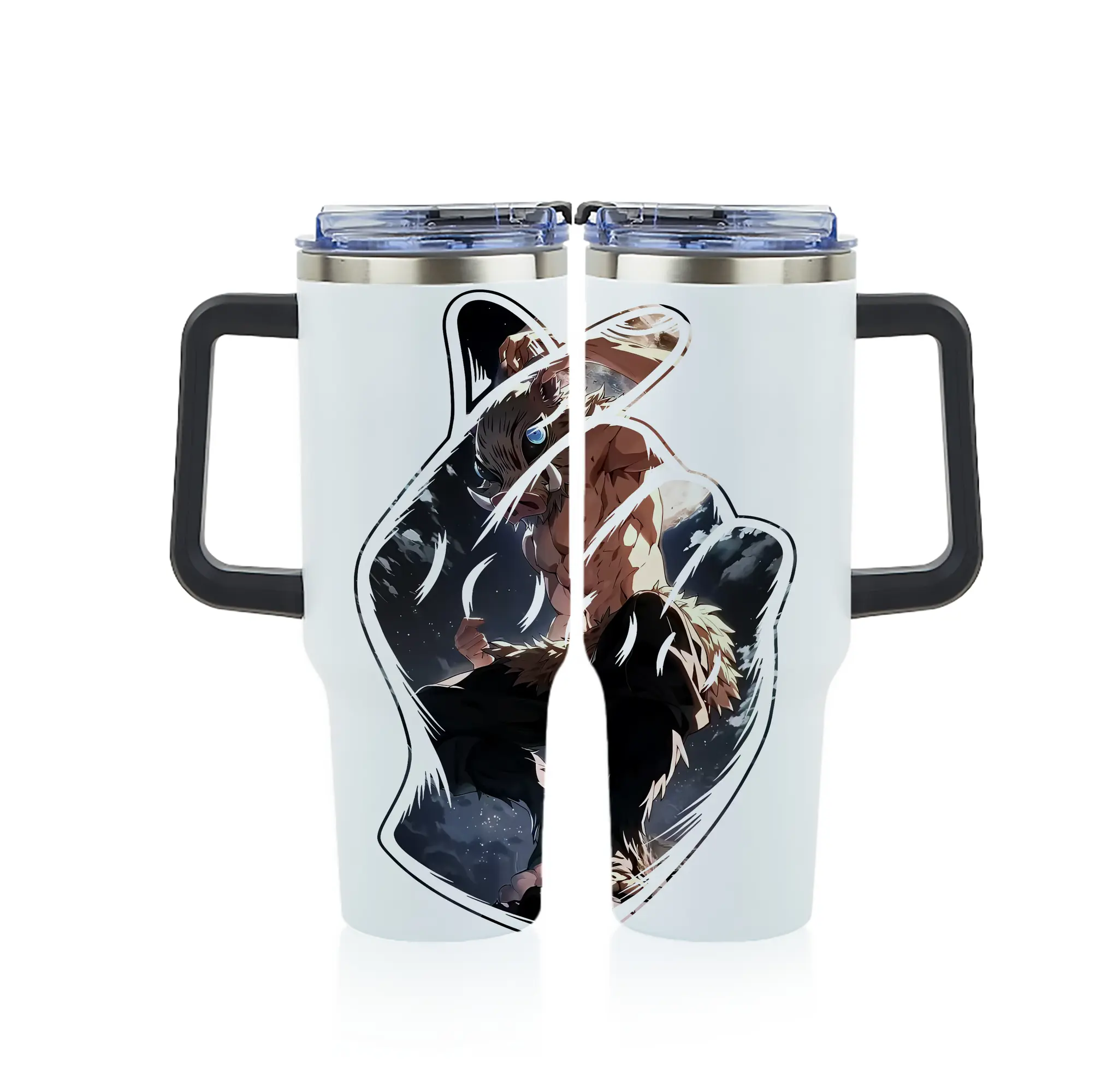 鬼滅の刃 グッズ,嘴平 伊之助 - 1200mL フルプリント車用タンブラー ・ 304ステンレス 内側 ・ 201ステンレス 外側 ・ 保温 保冷 ・ 通勤 ドライブ アウトドア用