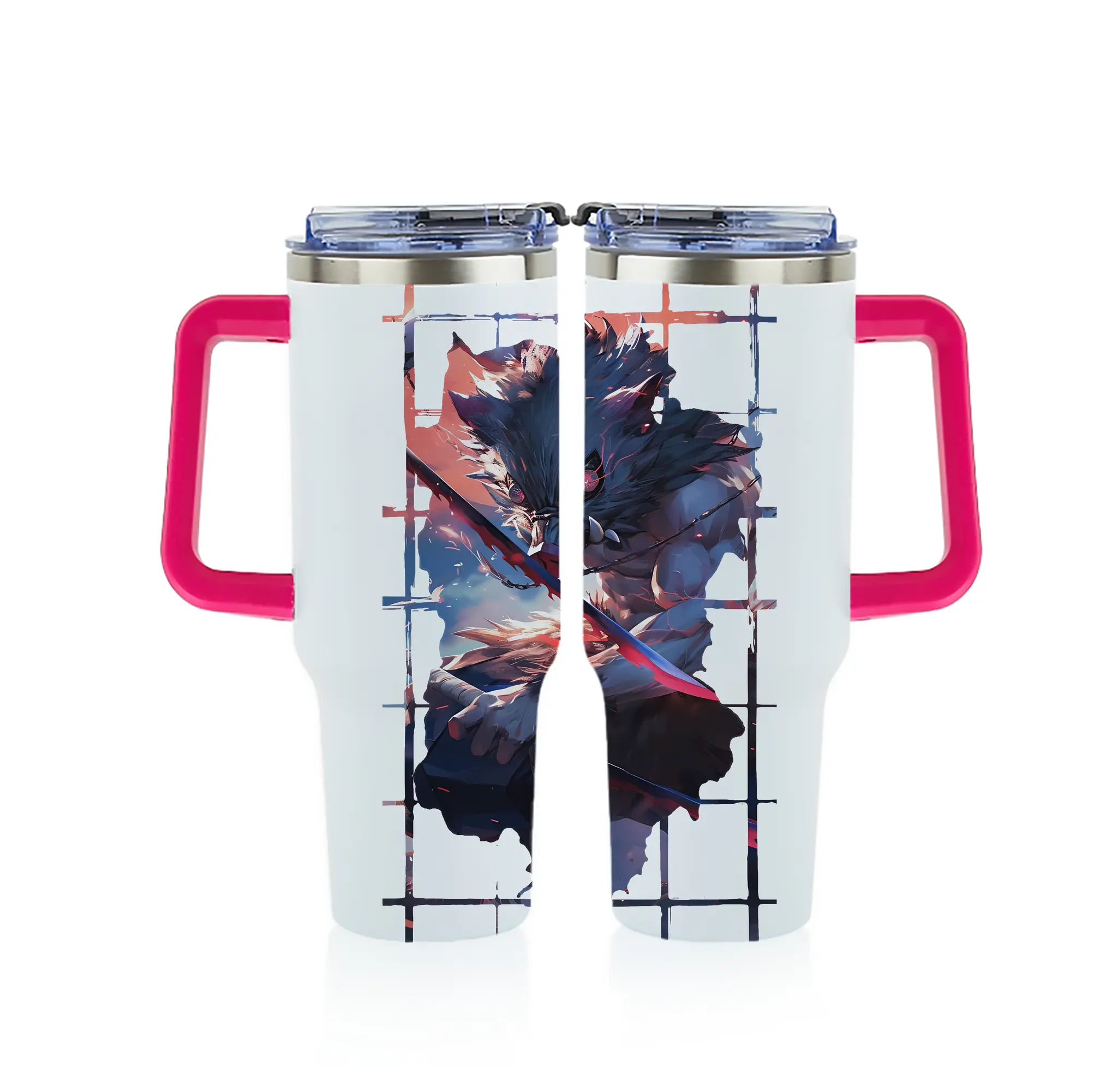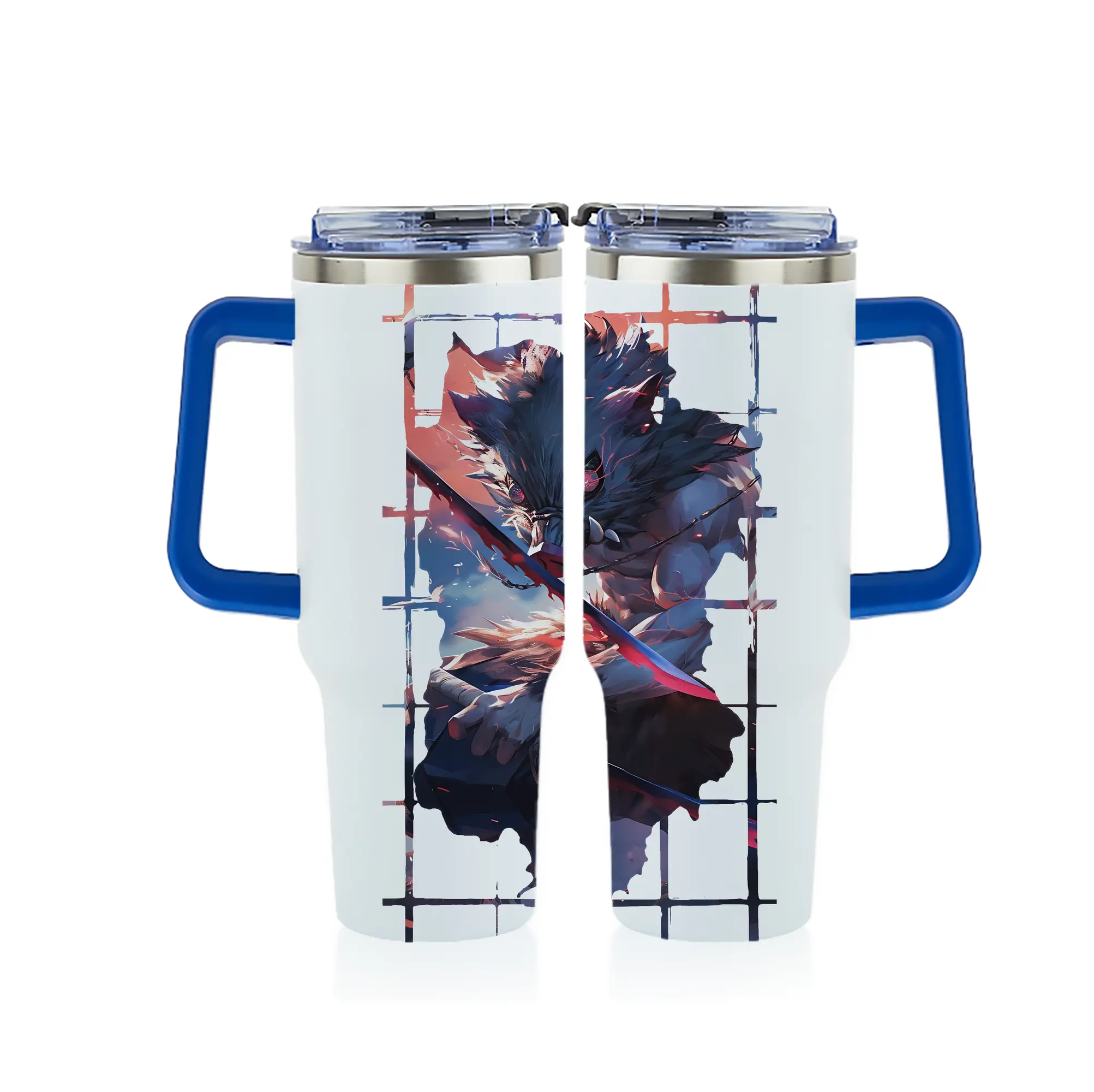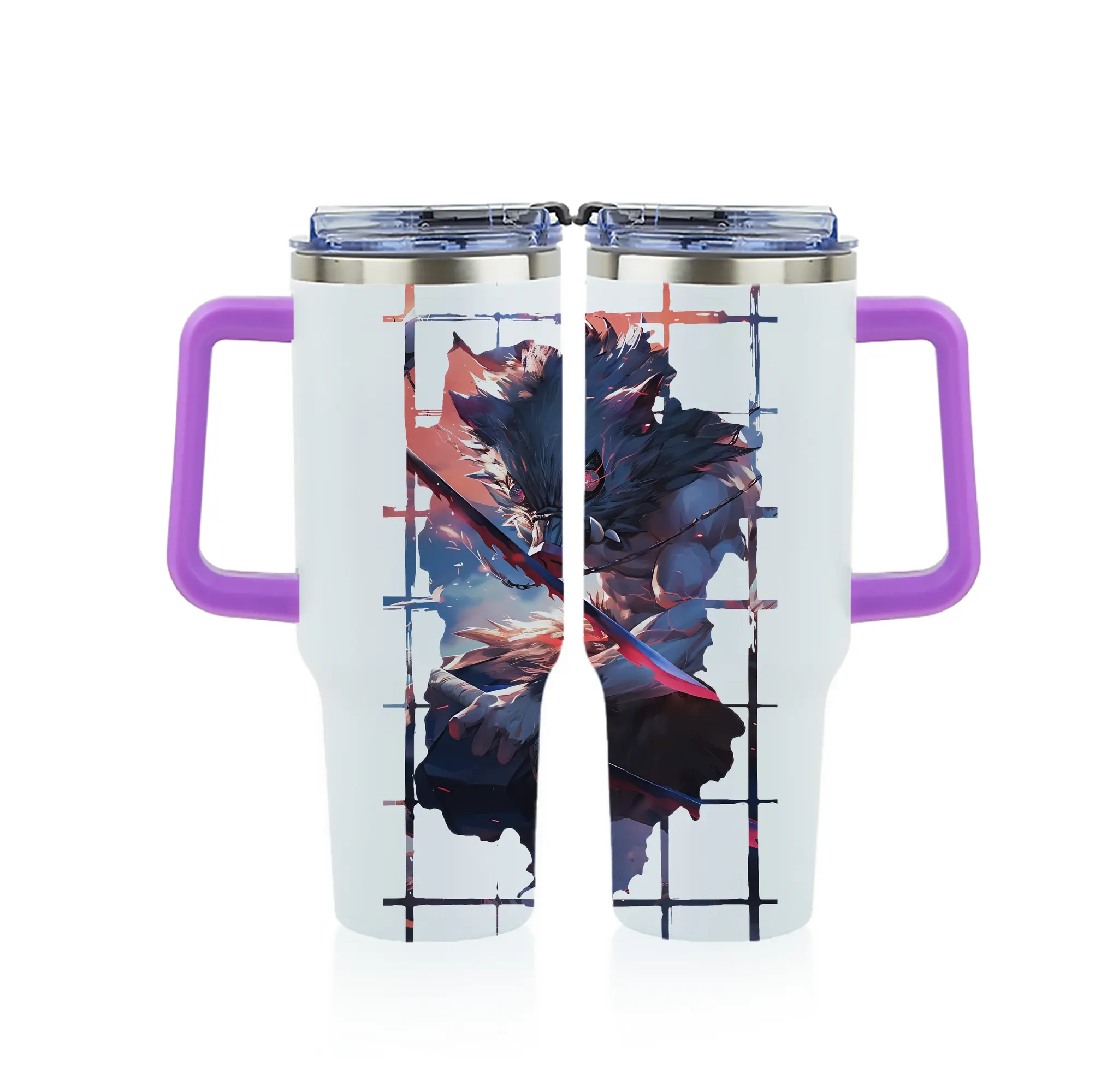 鬼滅の刃 グッズ,嘴平 伊之助 - 1200mL フルプリント車用タンブラー ・ 304ステンレス 内側 ・ 201ステンレス 外側 ・ 保温 保冷 ・ 通勤 ドライブ アウトドア用