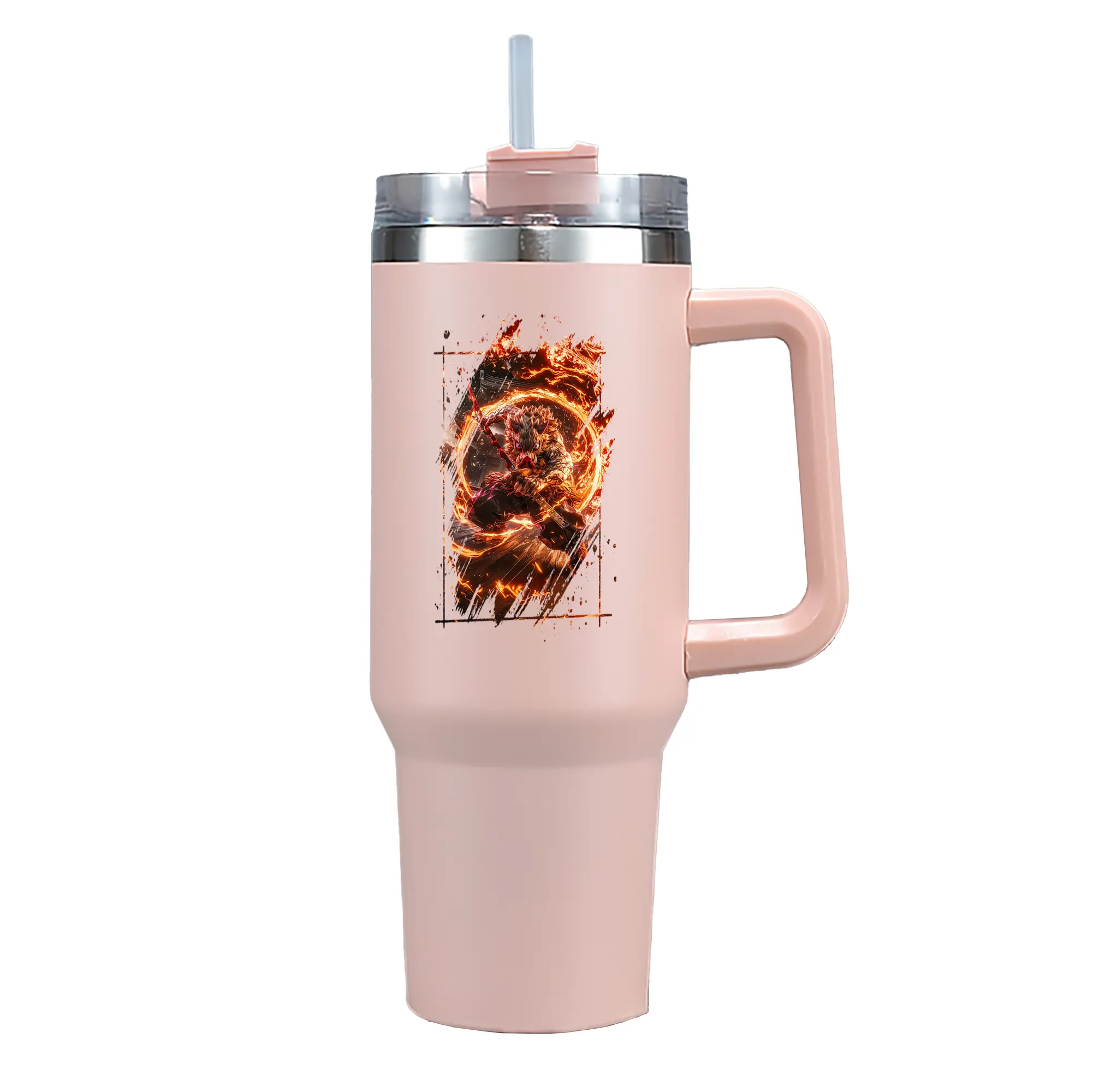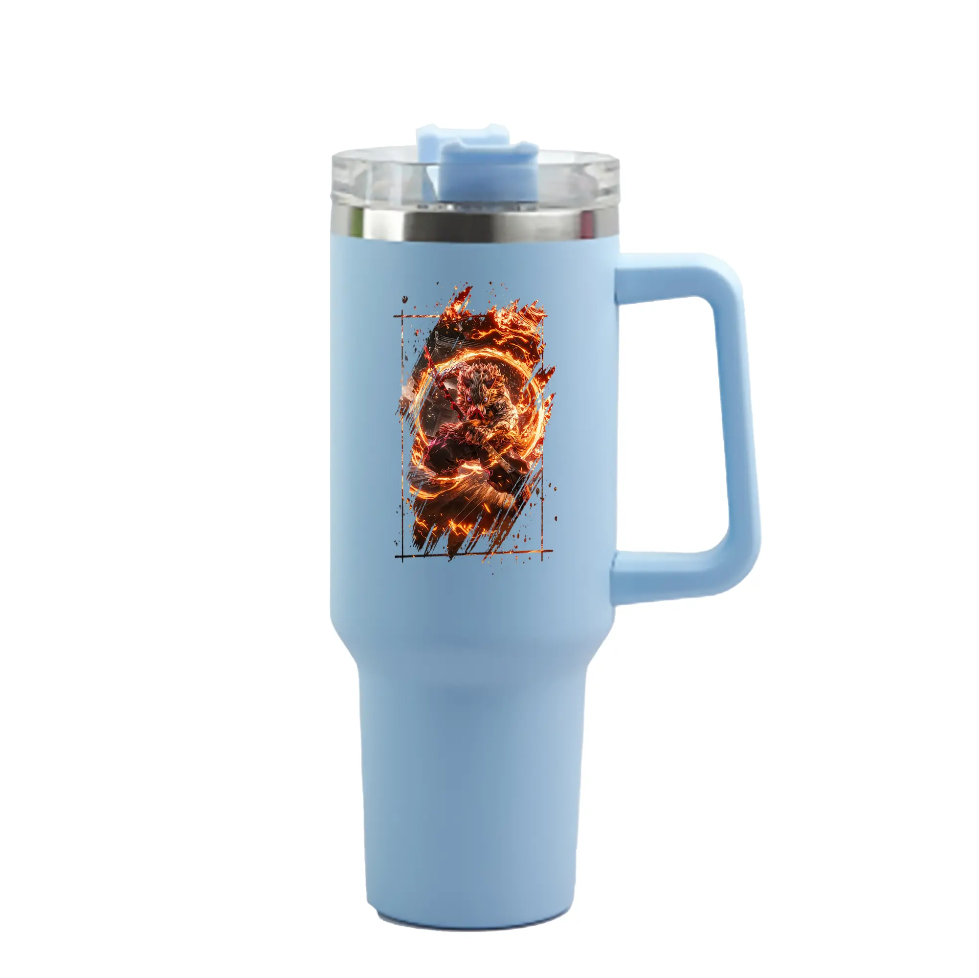 鬼滅の刃 グッズ,嘴平 伊之助 - 1200mL 車用タンブラー ・ クリスタルステッカー ・ 304ステンレス 内側 ・ 201ステンレス 外側 ・ 保温 保冷 ・ ハンドル&ストロー付き ・ 通勤 ドライブ アウトドア用