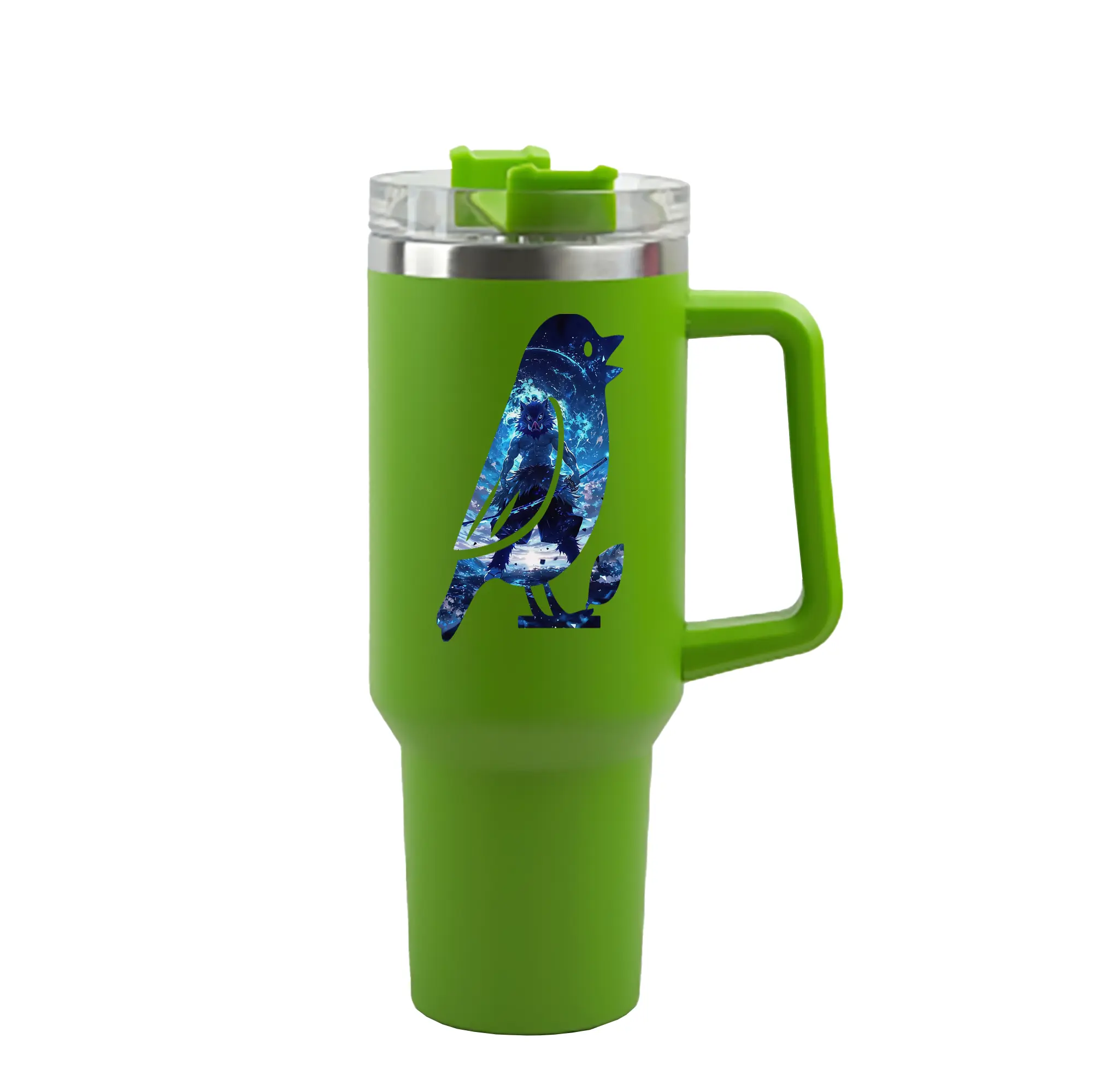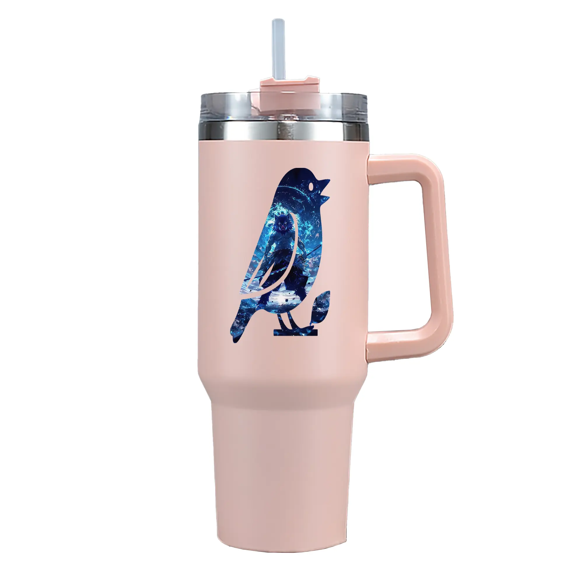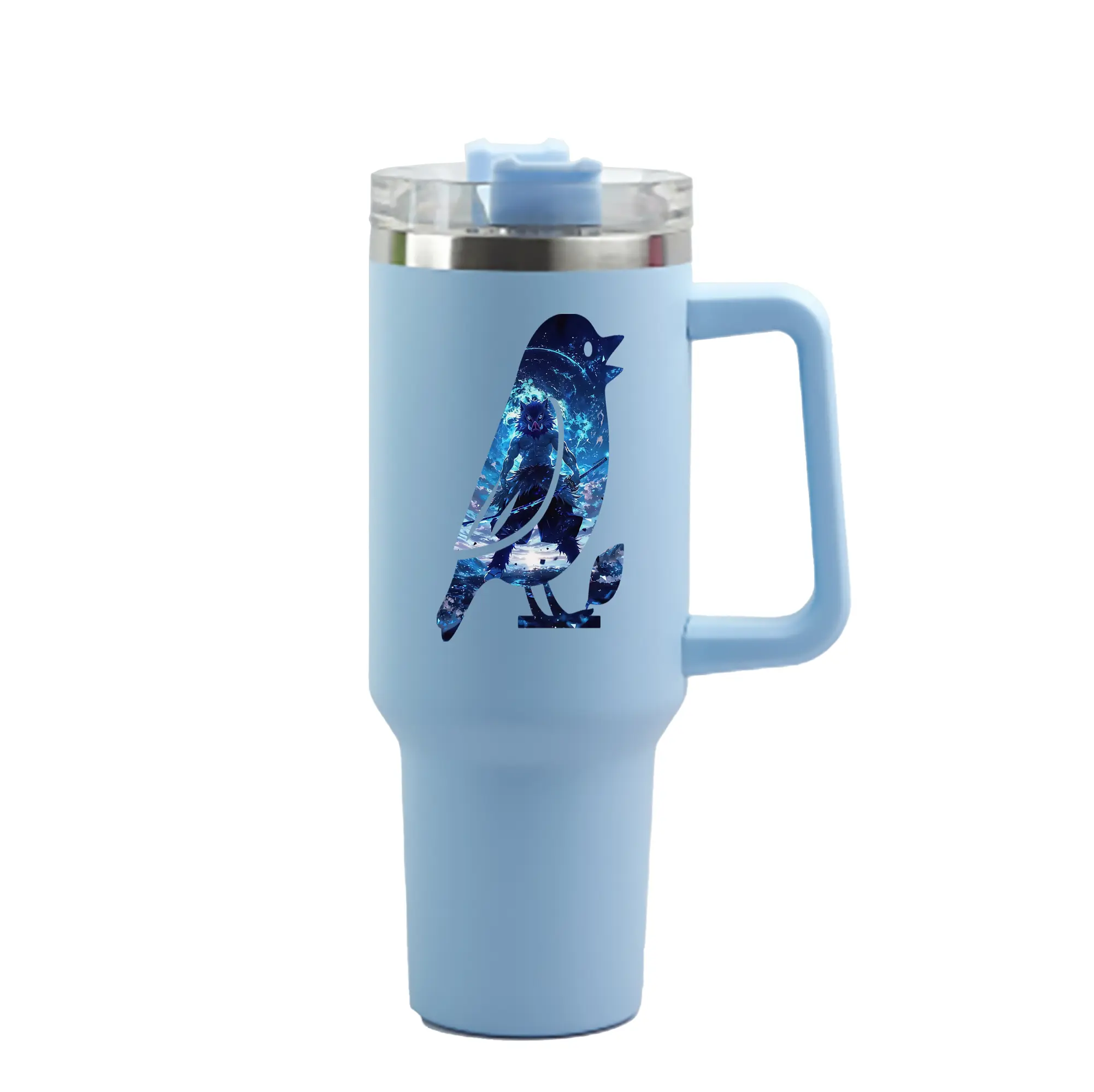 1200mL(40オンス)の大容量ハンドル付きカータンブラー。キラキラと輝くクリスタルステッカーデザインが、毎日の使用に華やかさをプラスします。食品グレード304ステンレスの内側と頑丈な201ステンレスの外側を採用し、耐久性・耐腐食性・安全性を兼ね備えています。