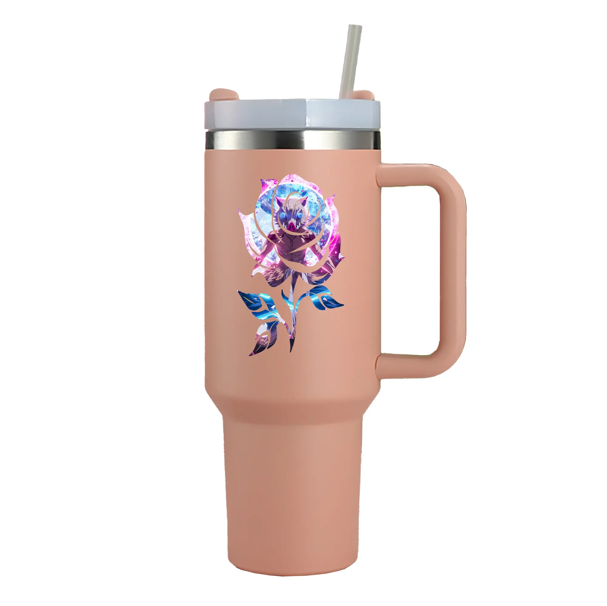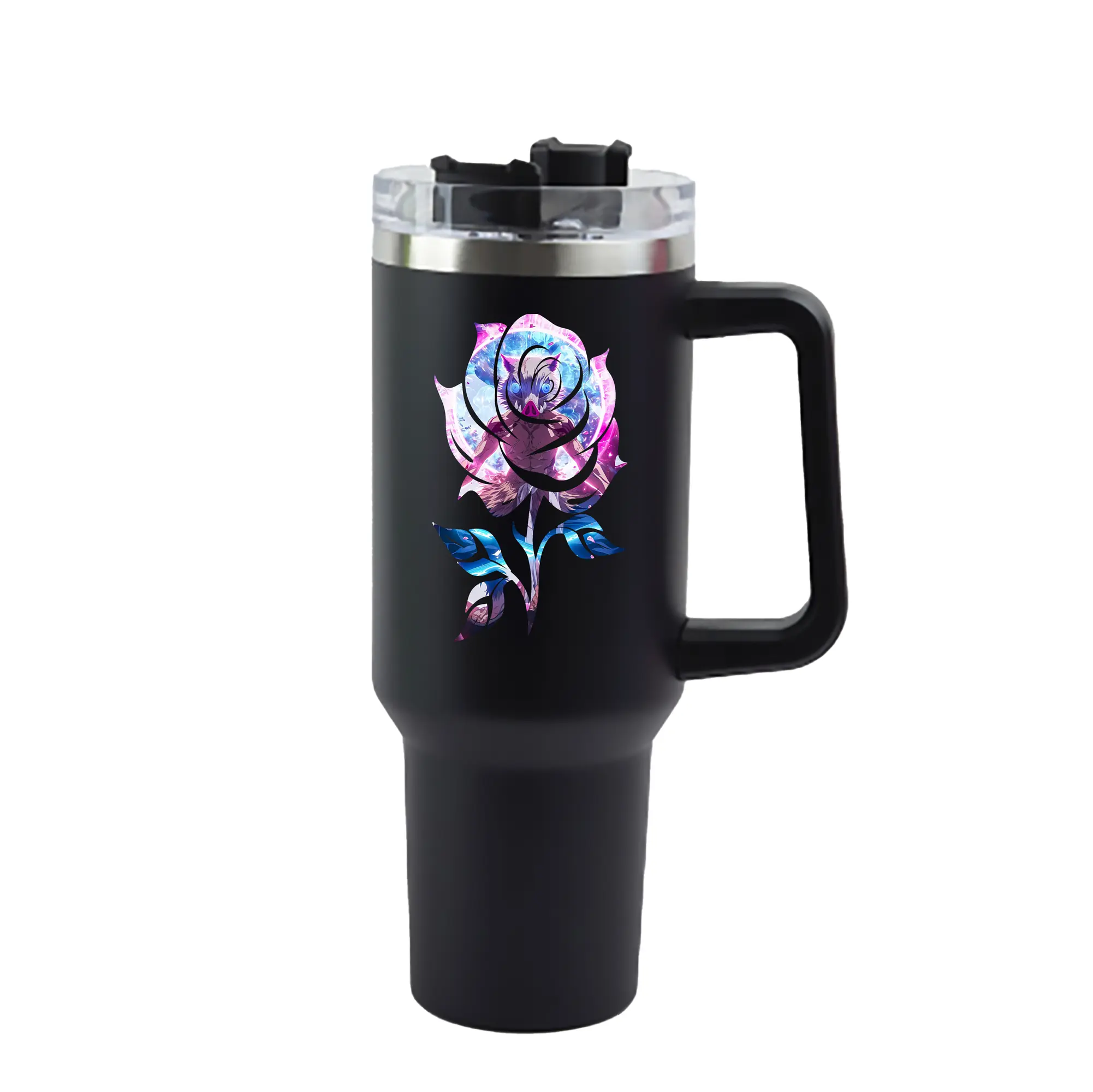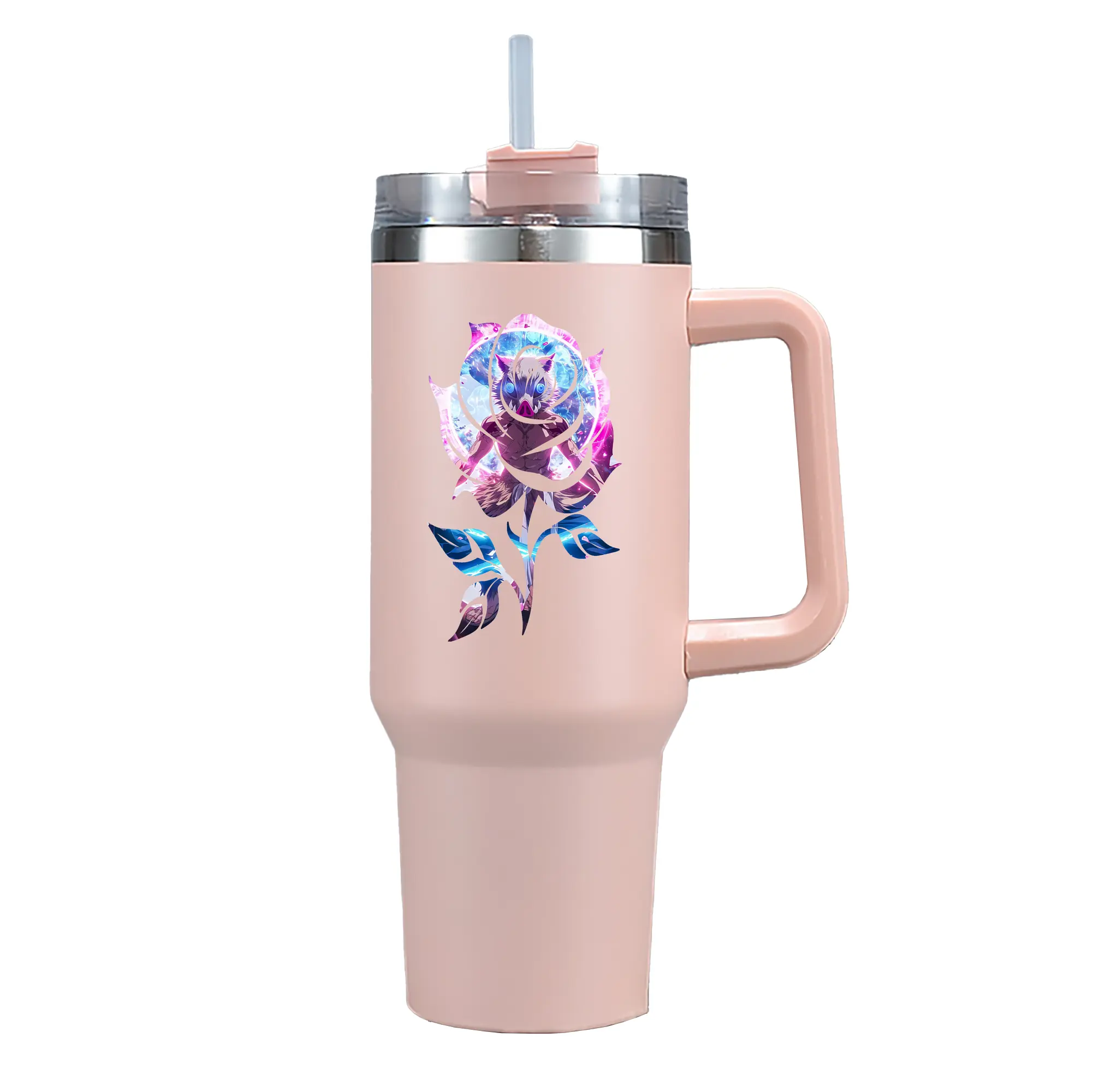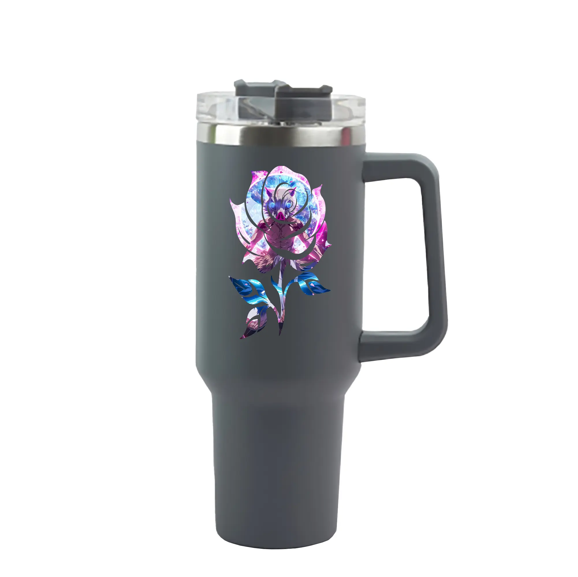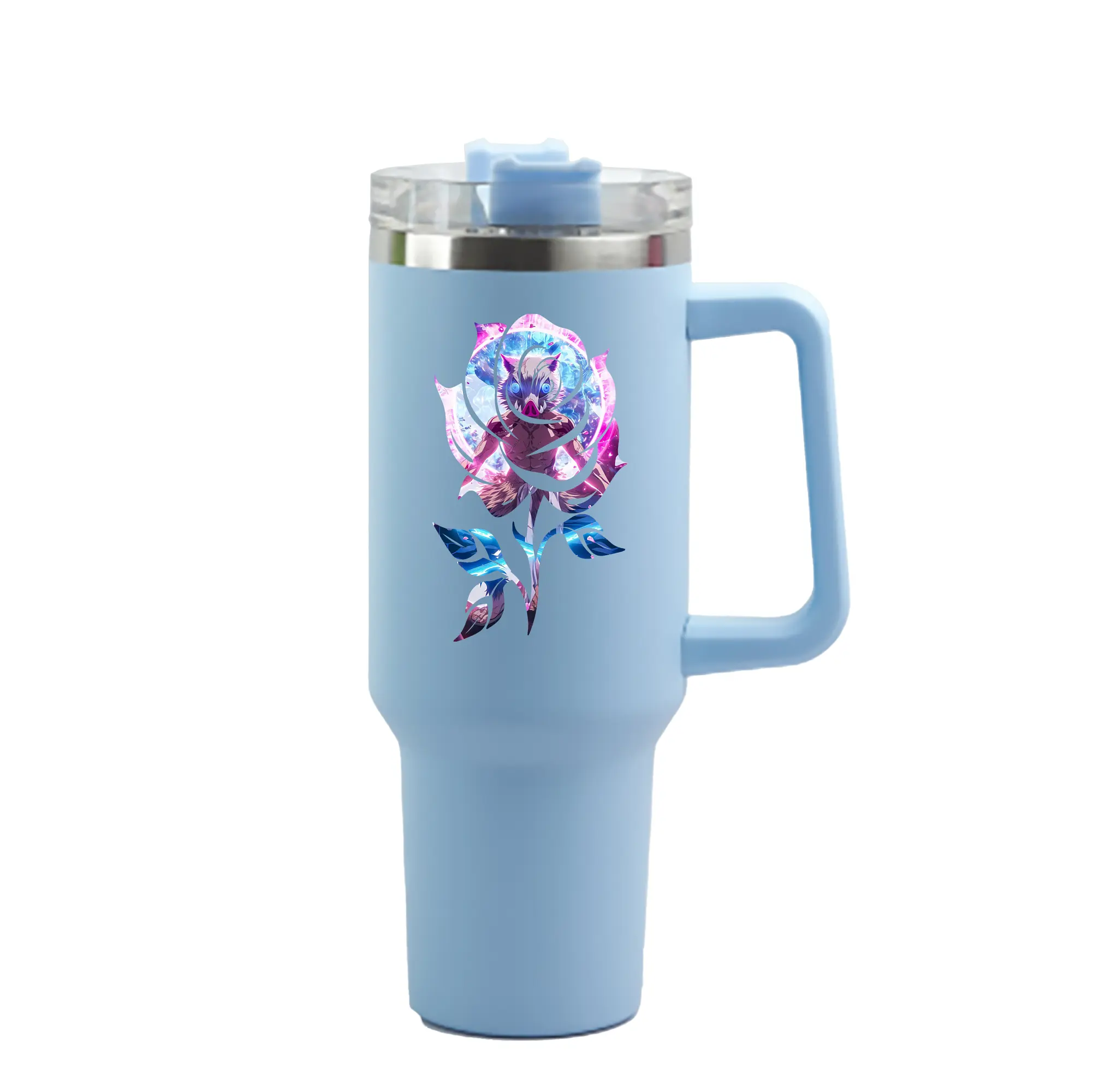 鬼滅の刃 グッズ,嘴平 伊之助 - 1200mL 車用タンブラー ・ クリスタルステッカー ・ 304ステンレス 内側 ・ 201ステンレス 外側 ・ 保温 保冷 ・ ハンドル&ストロー付き ・ 通勤 ドライブ アウトドア用