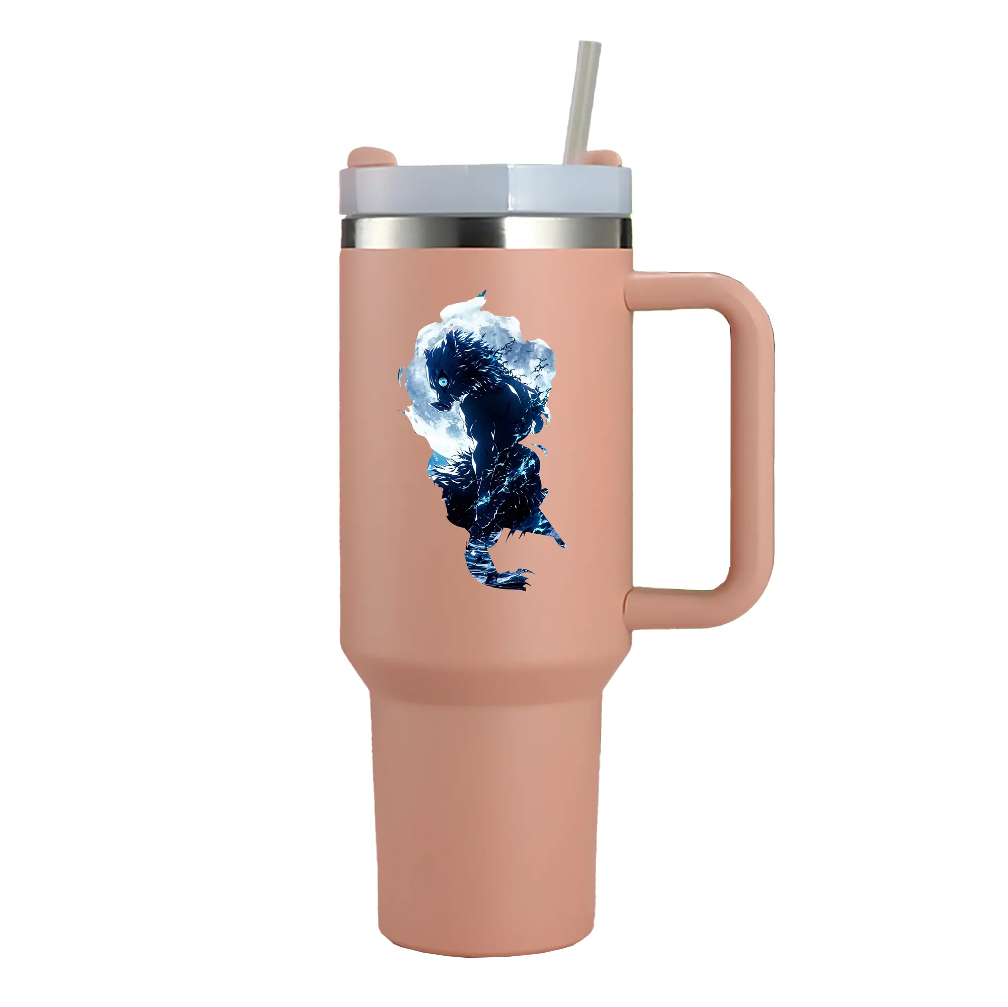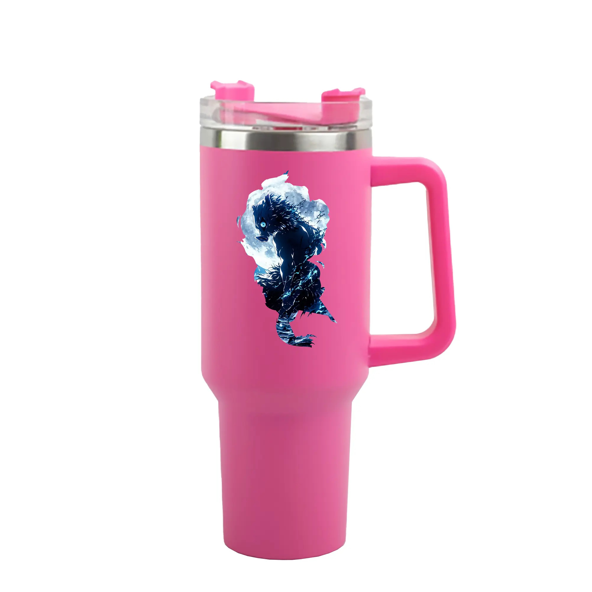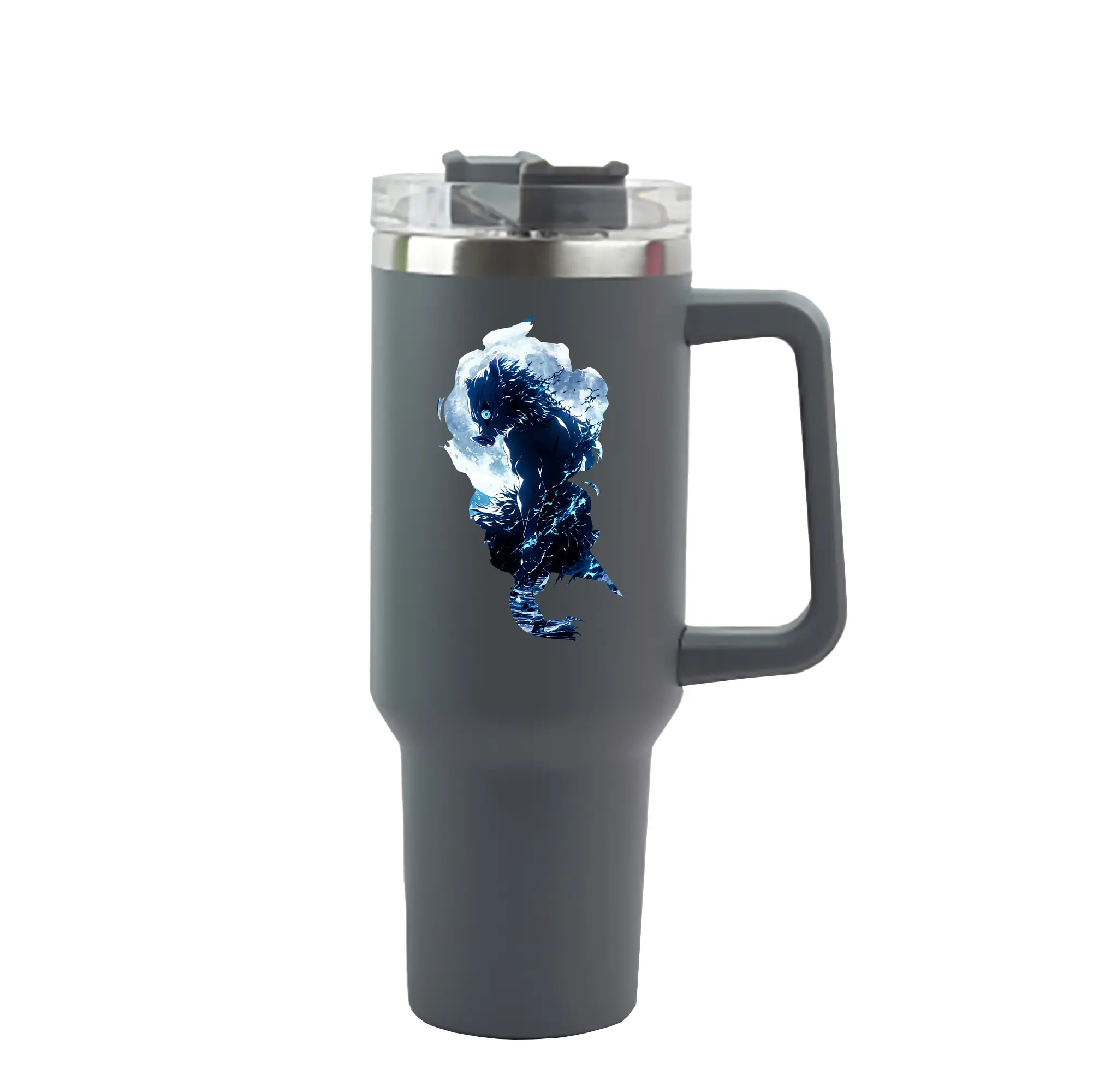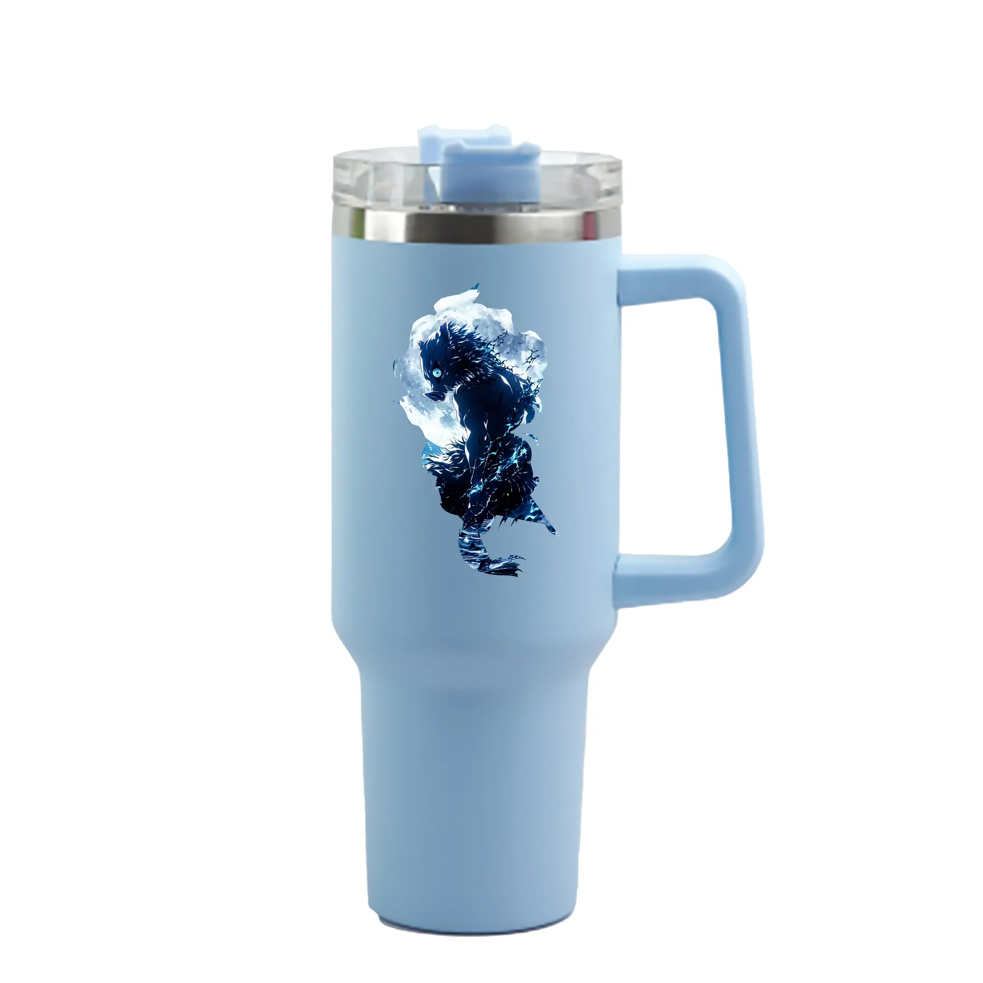 鬼滅の刃 グッズ,嘴平 伊之助 - 1200mL 車用タンブラー ・ クリスタルステッカー ・ 304ステンレス 内側 ・ 201ステンレス 外側 ・ 保温 保冷 ・ ハンドル&ストロー付き ・ 通勤 ドライブ アウトドア用