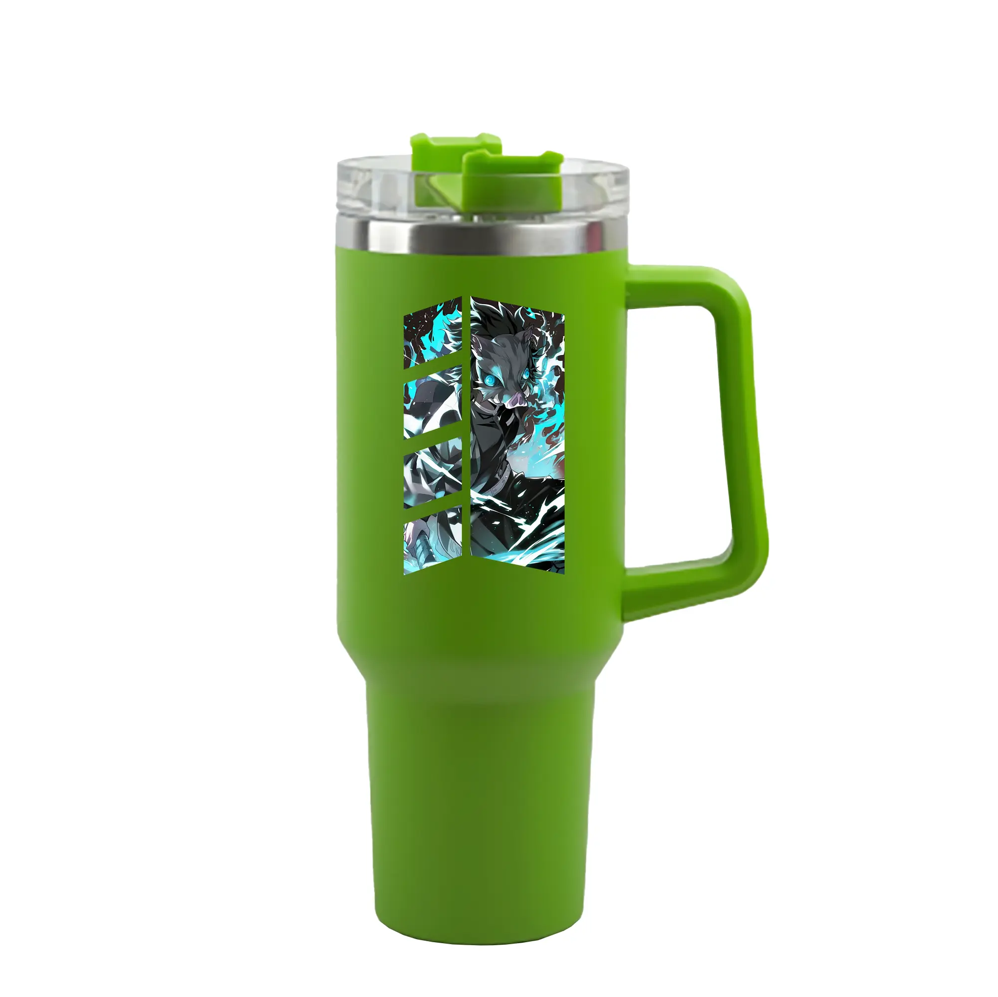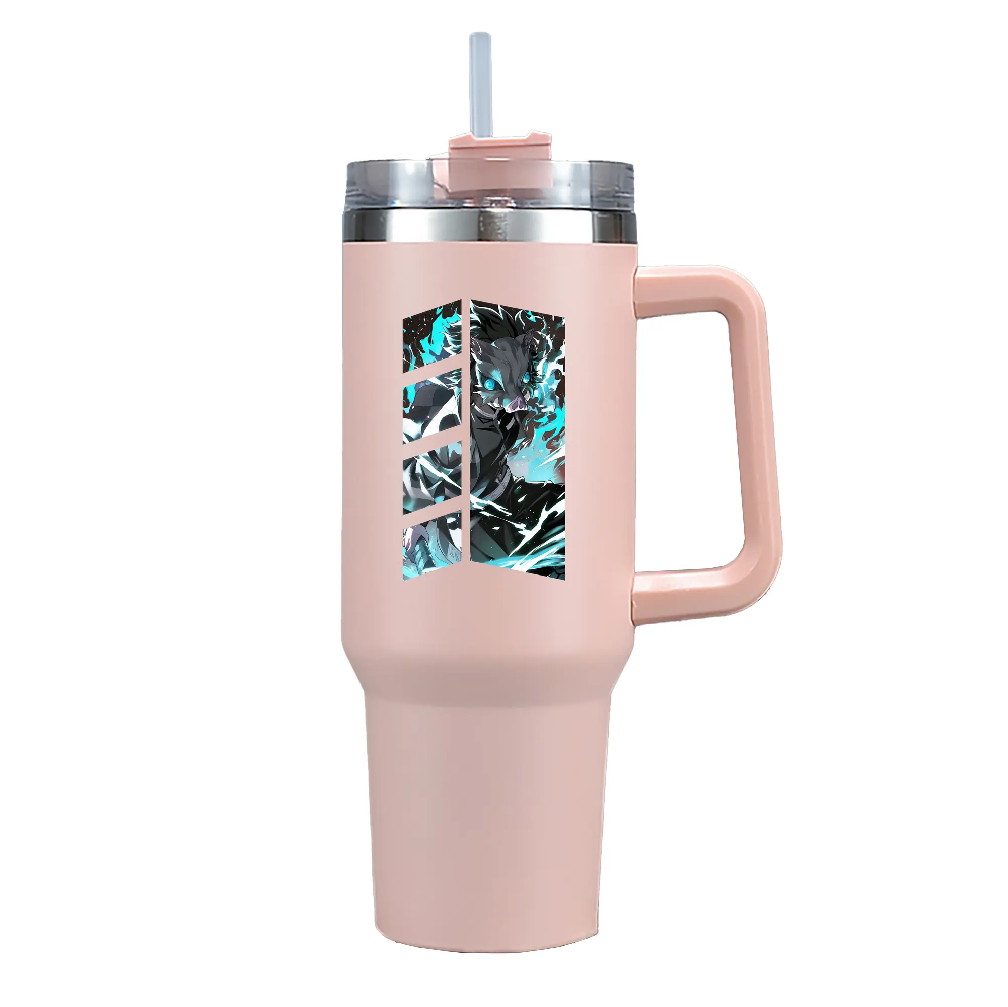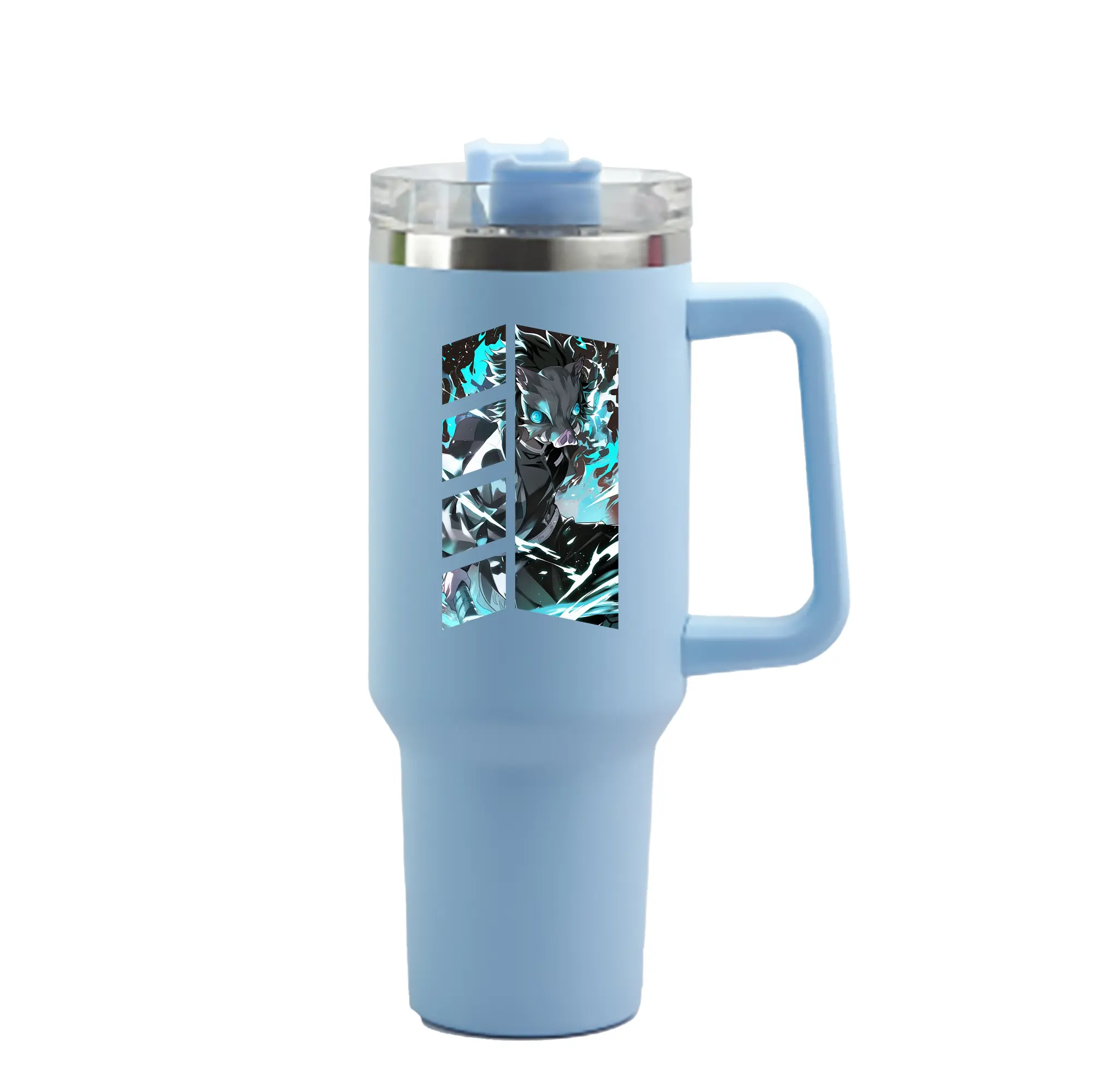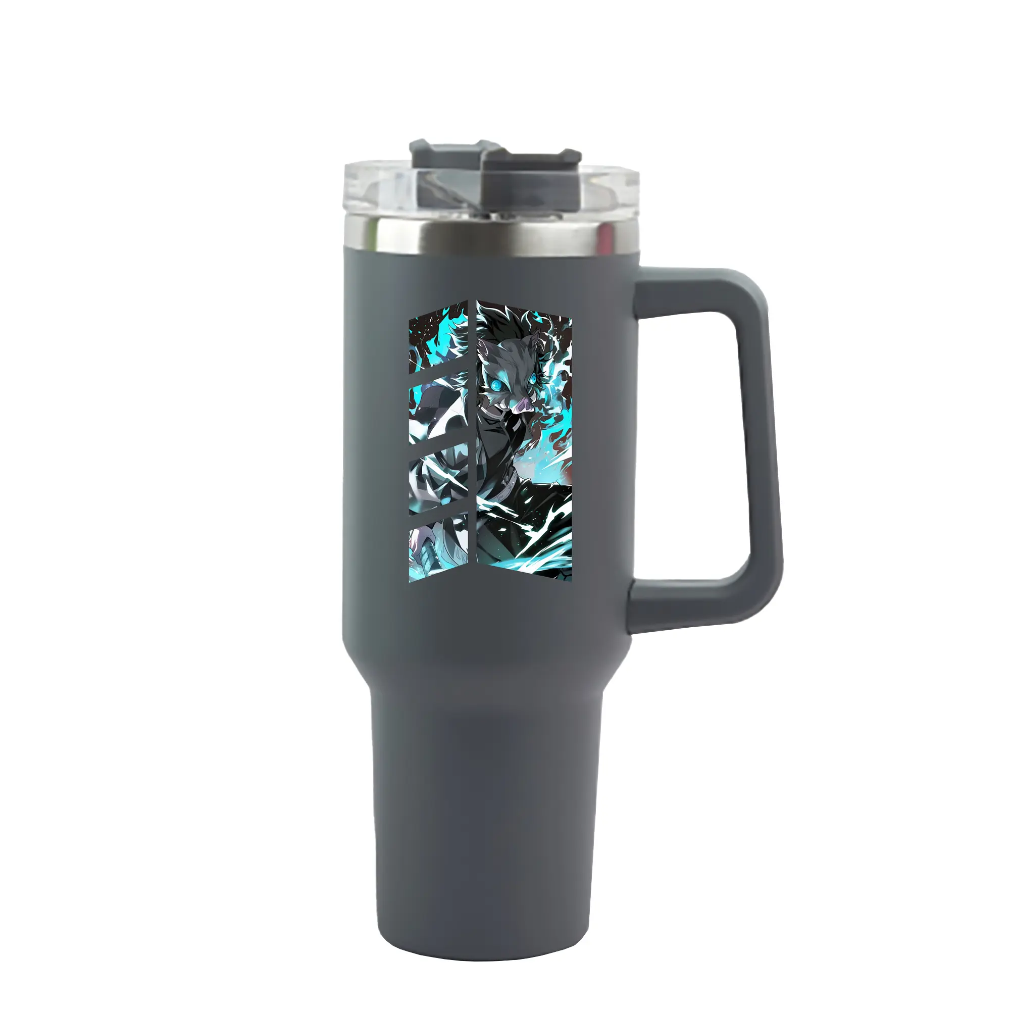 鬼滅の刃 グッズ,嘴平 伊之助 - 1200mL 車用タンブラー ・ クリスタルステッカー ・ 304ステンレス 内側 ・ 201ステンレス 外側 ・ 保温 保冷 ・ ハンドル&ストロー付き ・ 通勤 ドライブ アウトドア用