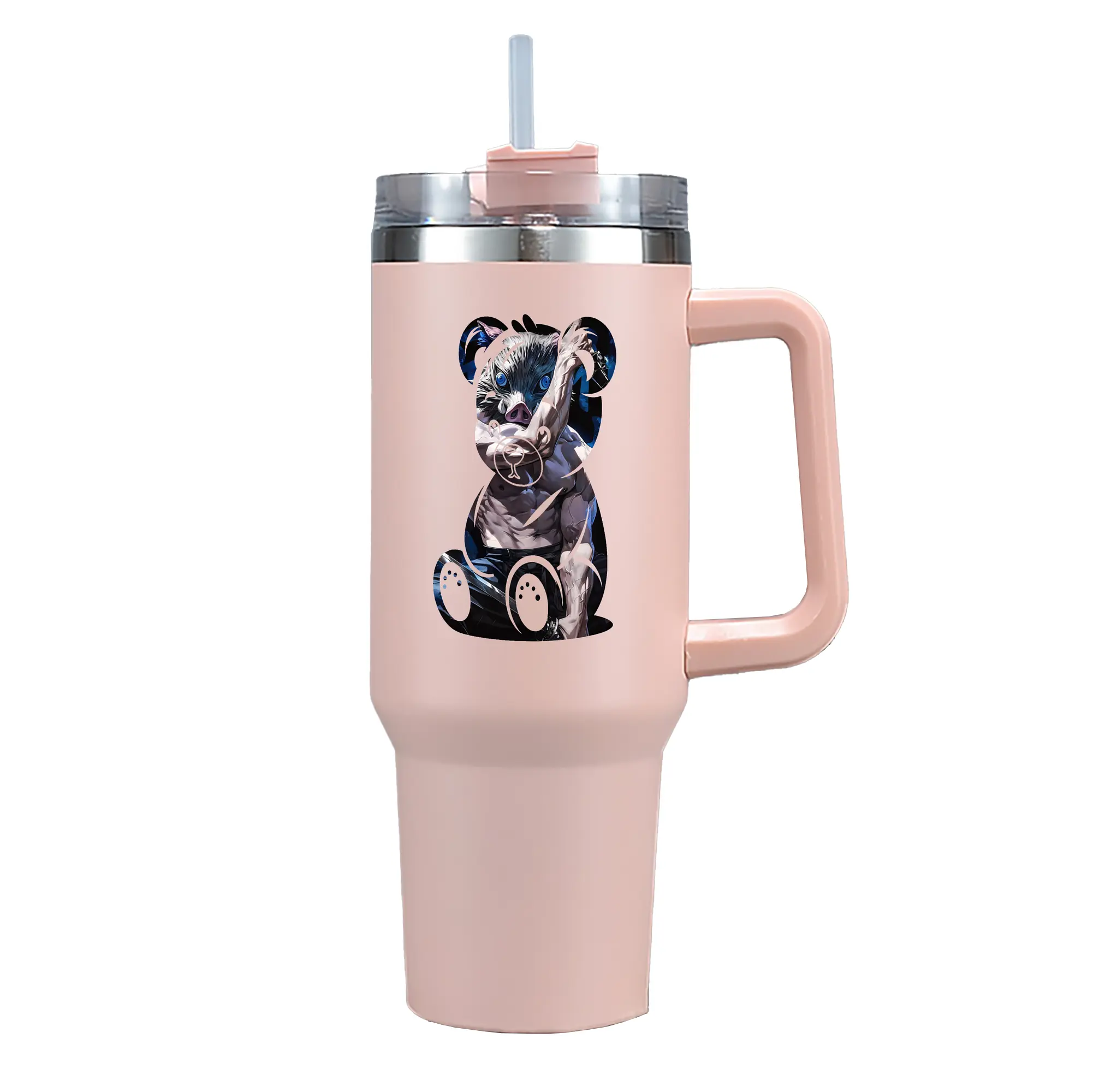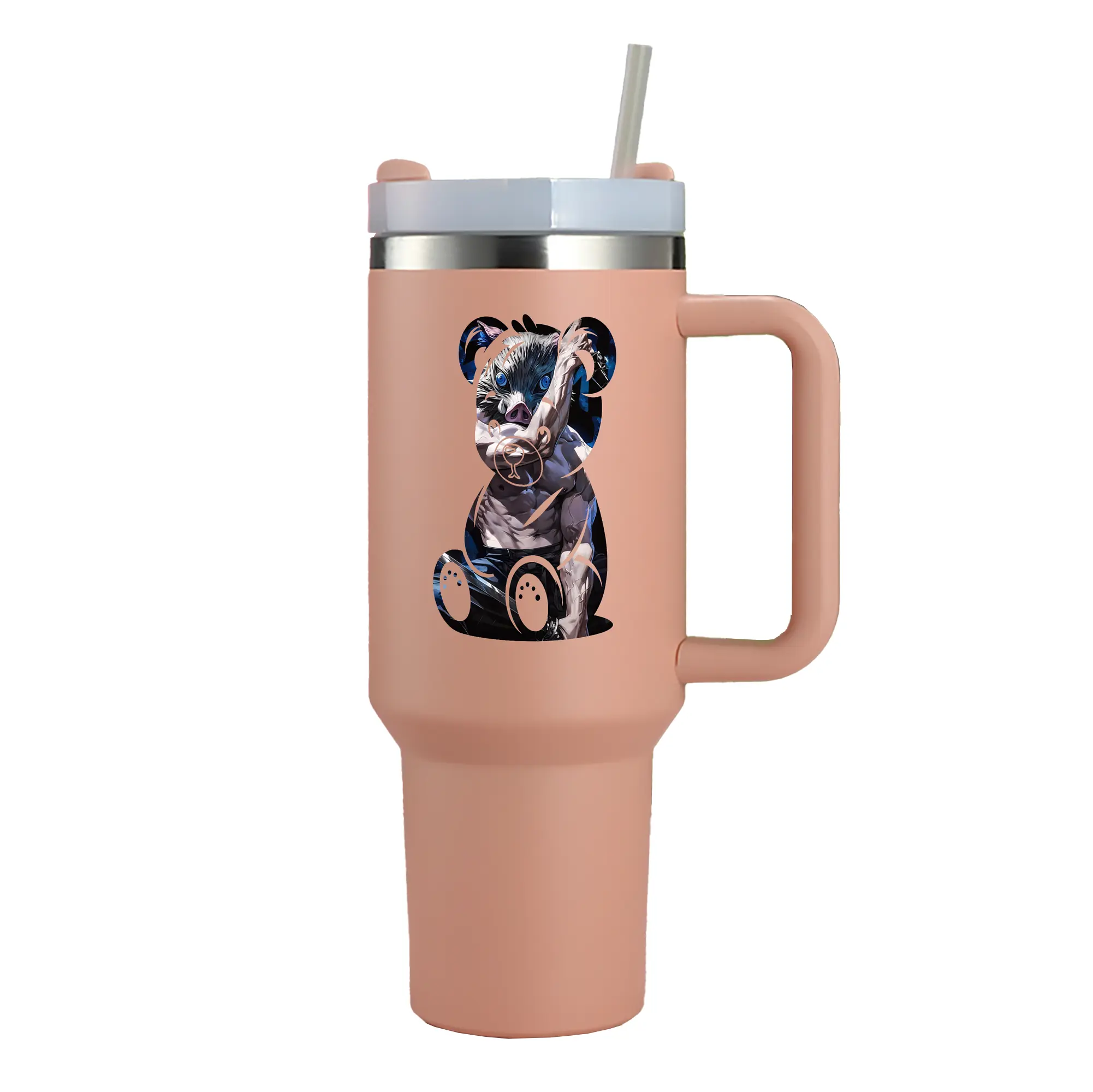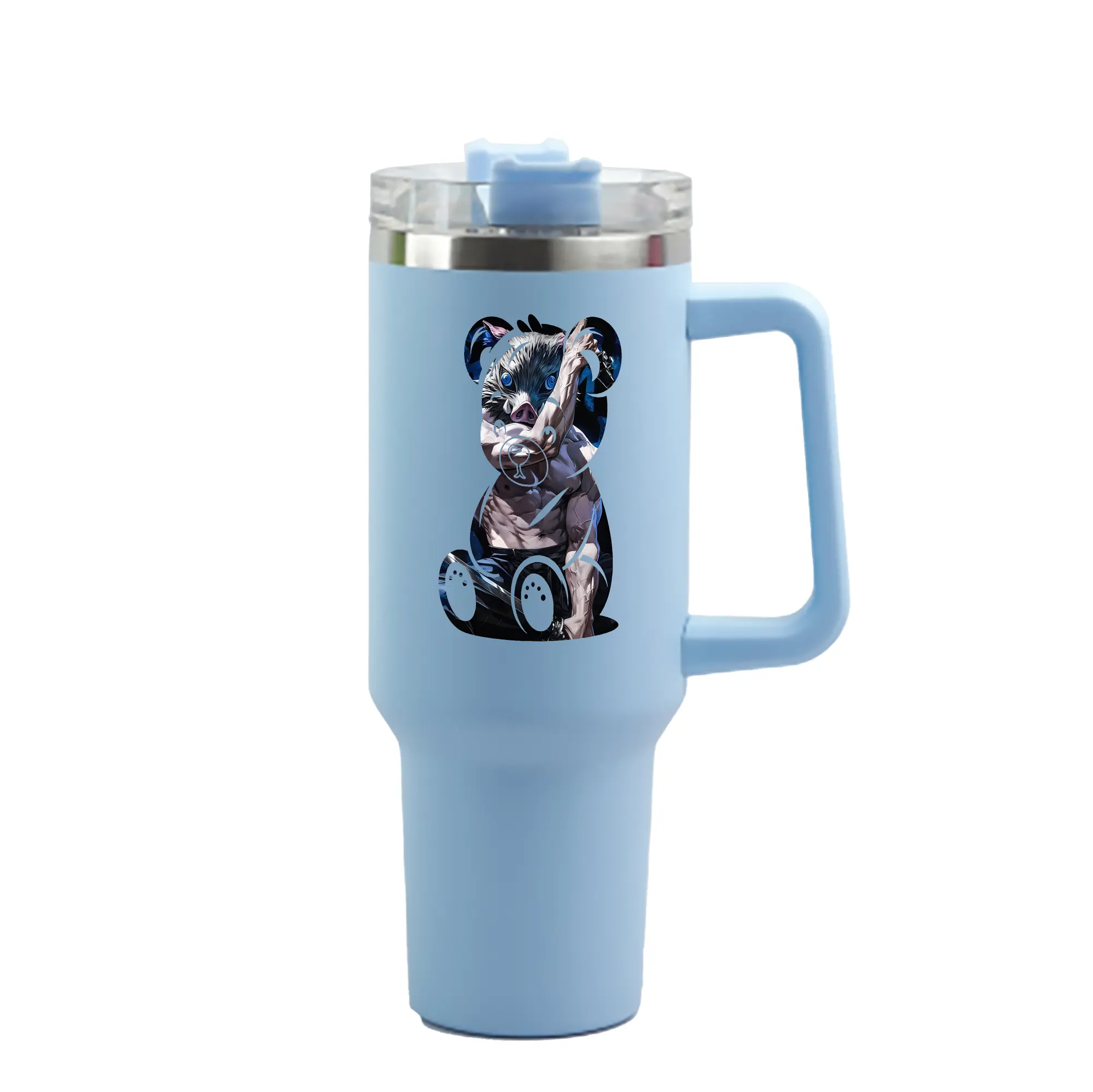鬼滅の刃 グッズ,嘴平 伊之助 - 1200mL 車用タンブラー ・ クリスタルステッカー ・ 304ステンレス 内側 ・ 201ステンレス 外側 ・ 保温 保冷 ・ ハンドル&ストロー付き ・ 通勤 ドライブ アウトドア用