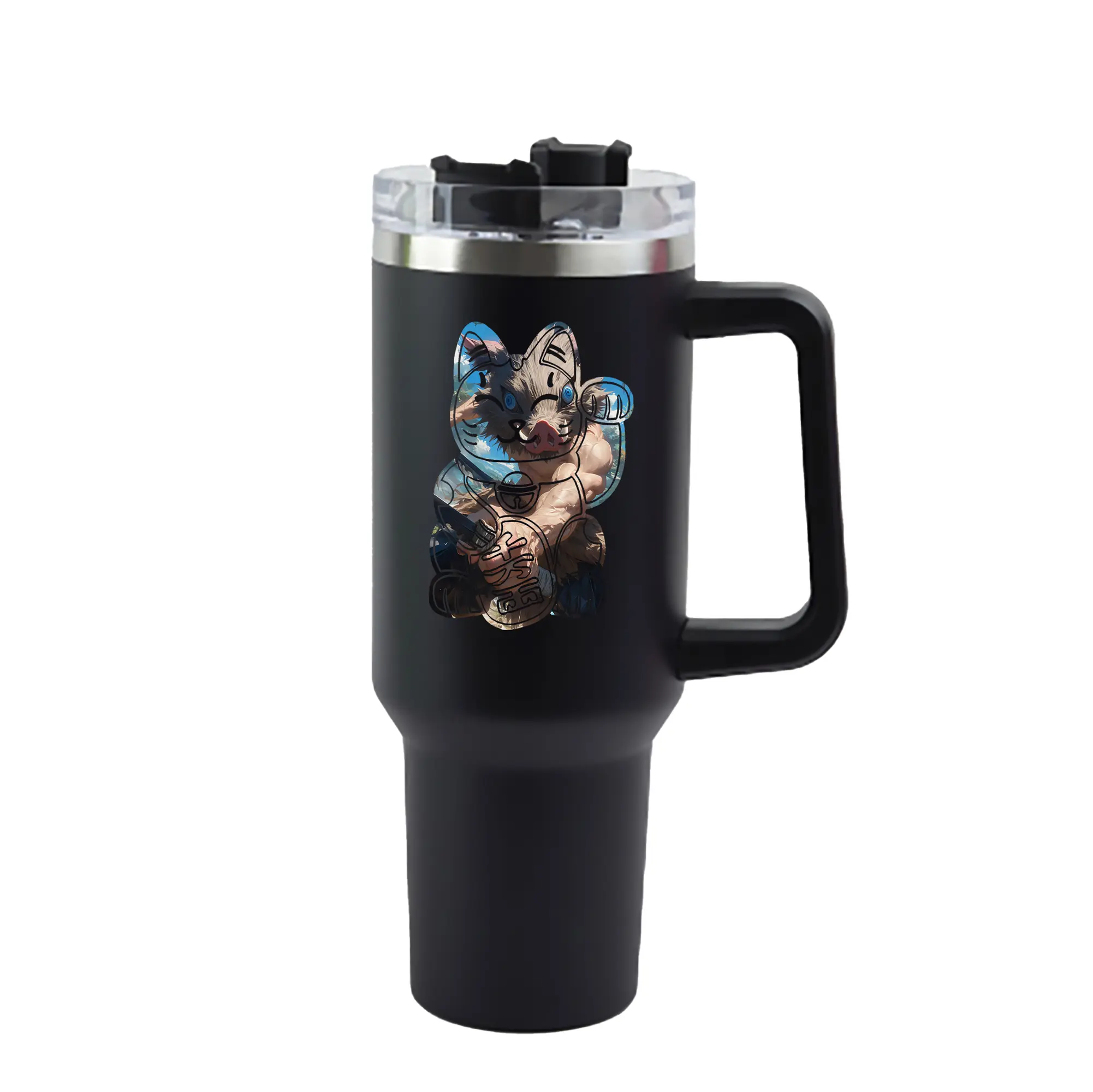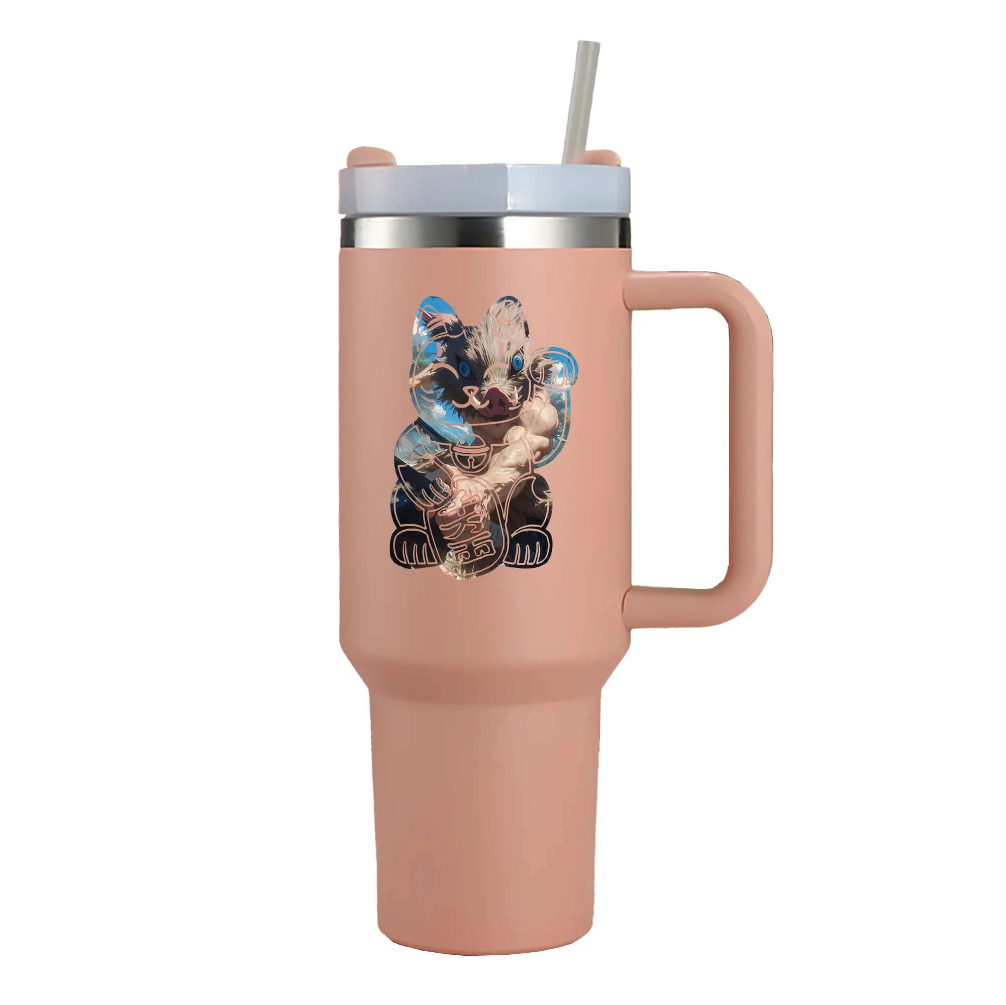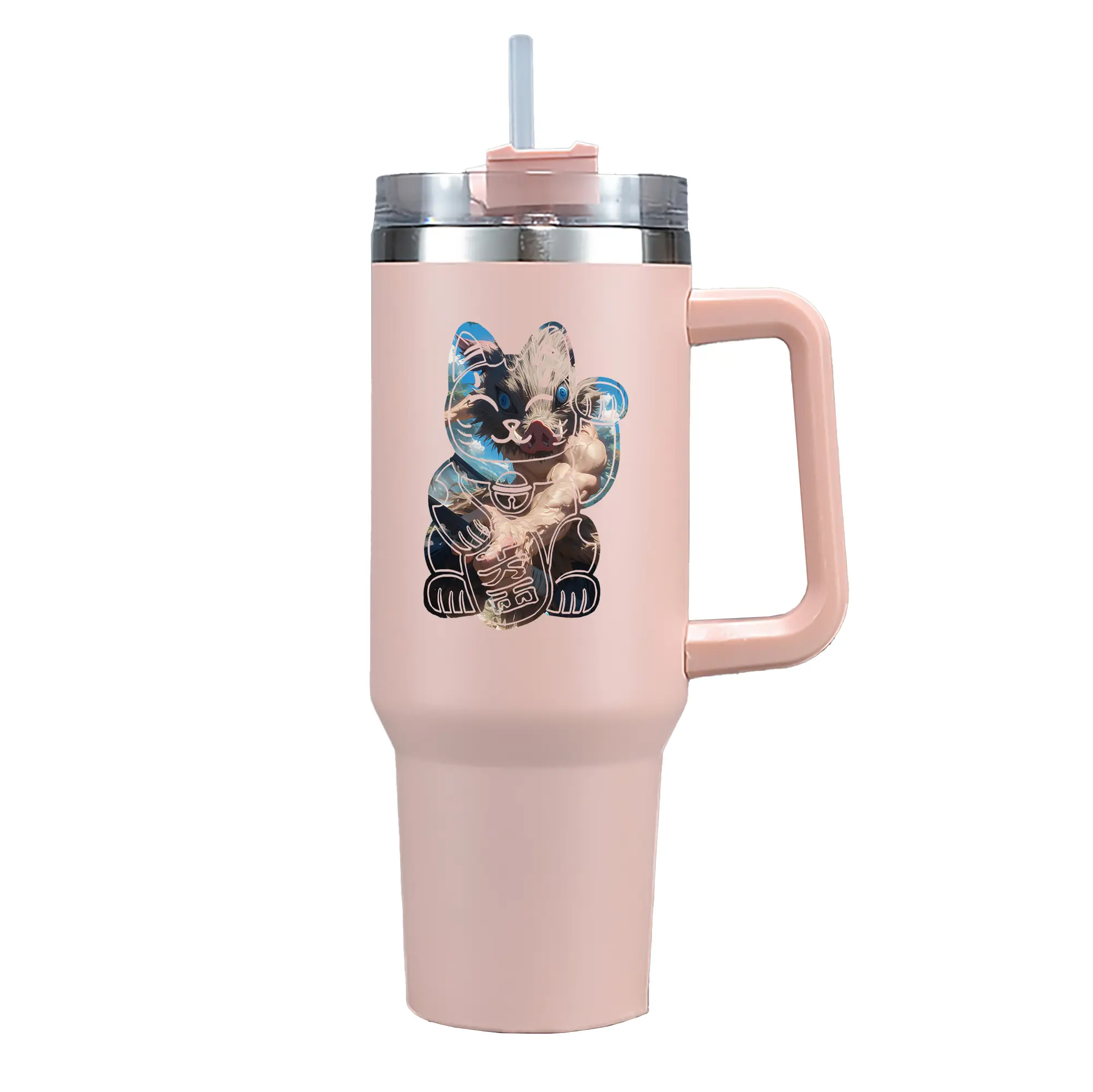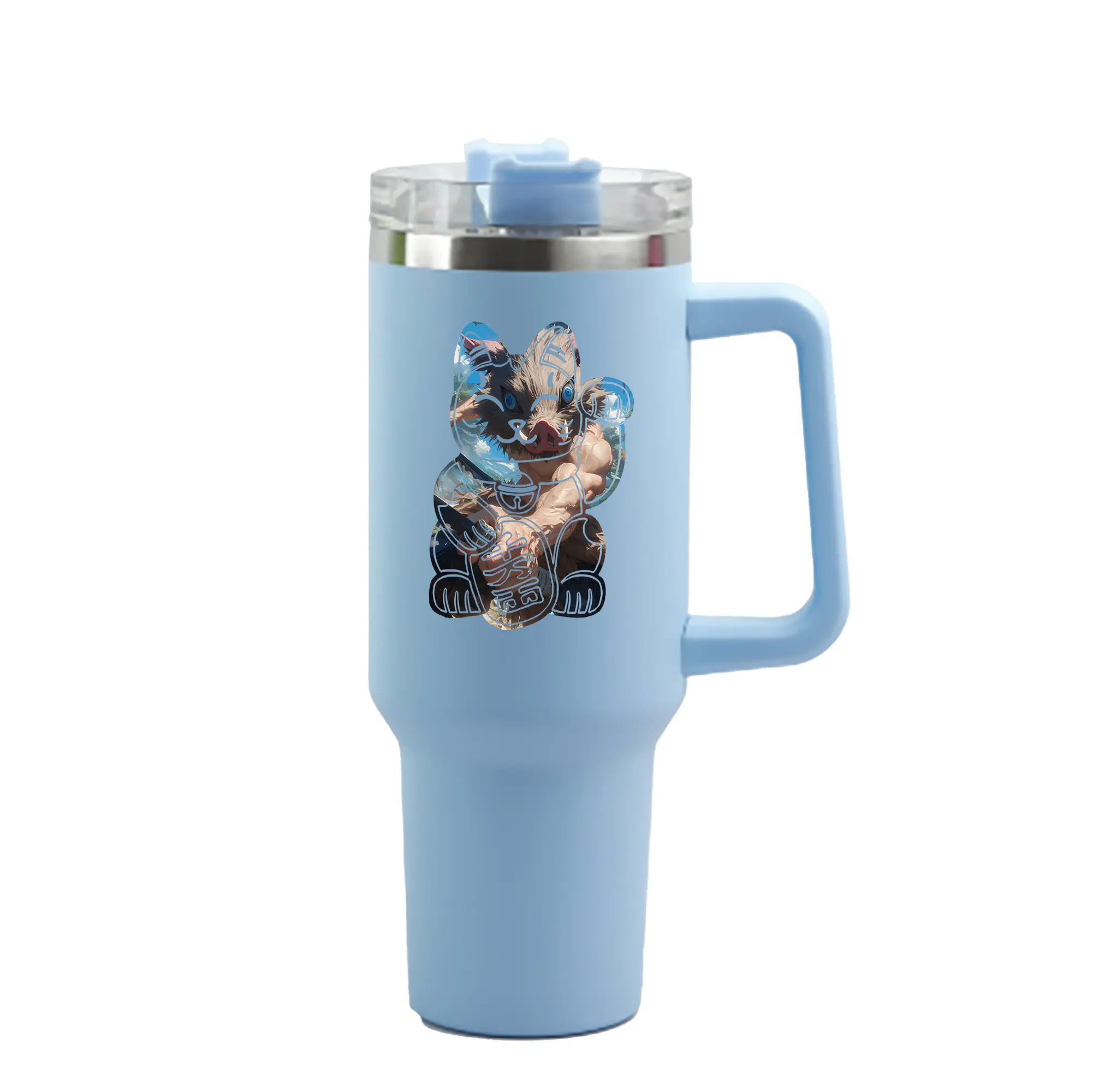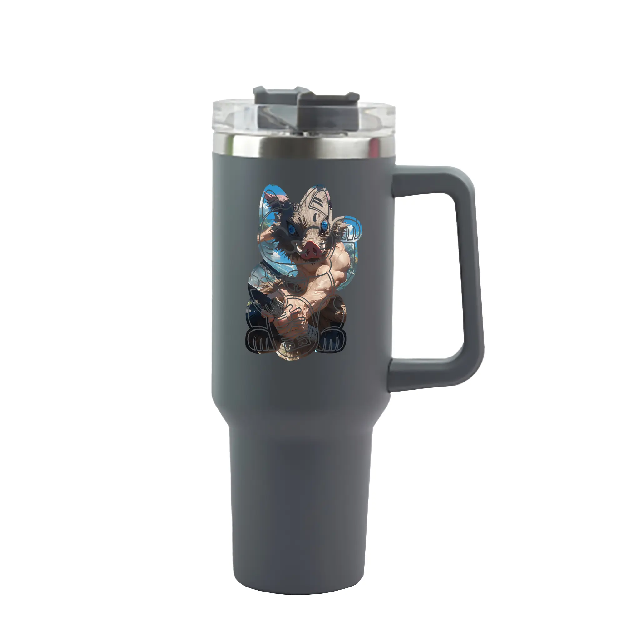 鬼滅の刃 グッズ,嘴平 伊之助 - 1200mL 車用タンブラー ・ クリスタルステッカー ・ 304ステンレス 内側 ・ 201ステンレス 外側 ・ 保温 保冷 ・ ハンドル&ストロー付き ・ 通勤 ドライブ アウトドア用
