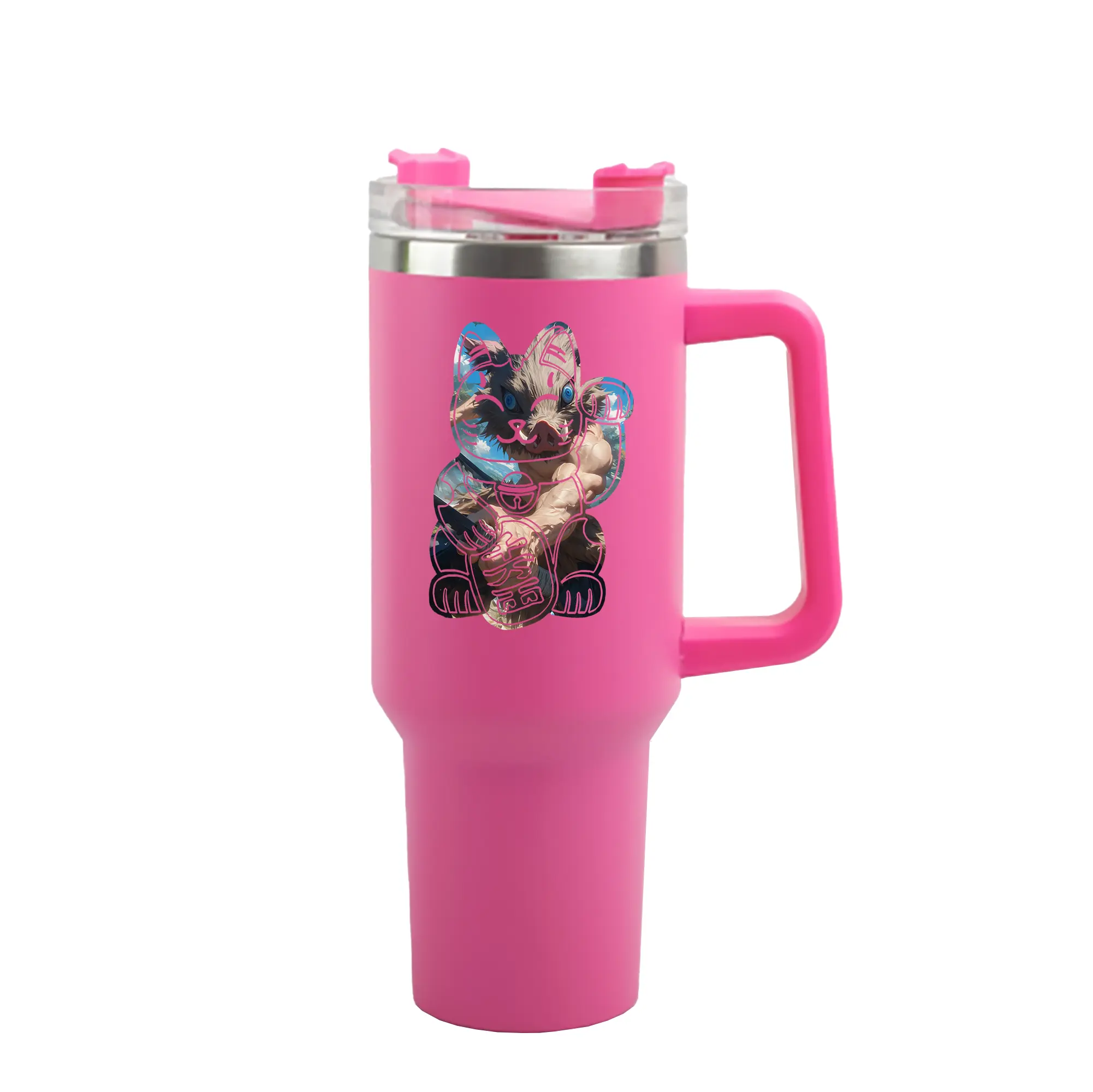 1200mL(40オンス)の大容量ハンドル付きカータンブラー。キラキラと輝くクリスタルステッカーデザインが、毎日の使用に華やかさをプラスします。食品グレード304ステンレスの内側と頑丈な201ステンレスの外側を採用し、耐久性・耐腐食性・安全性を兼ね備えています。