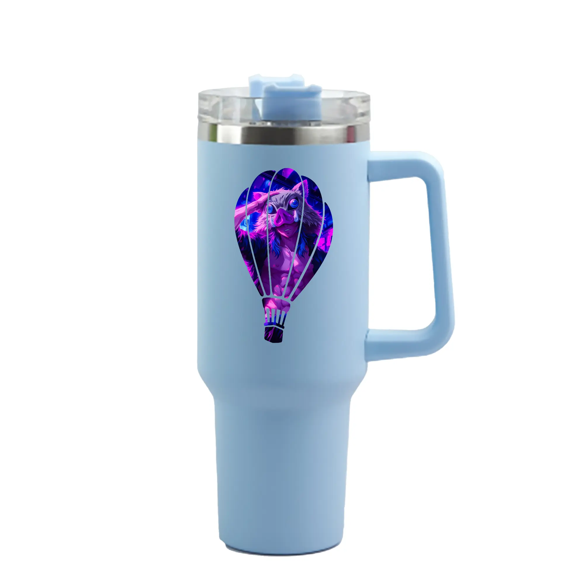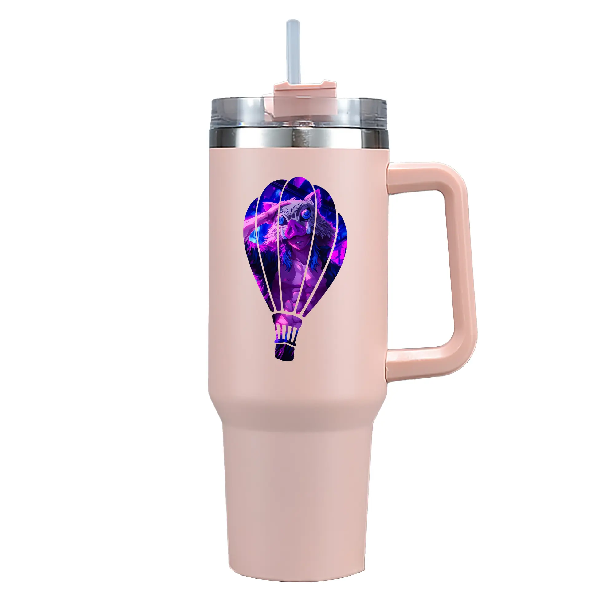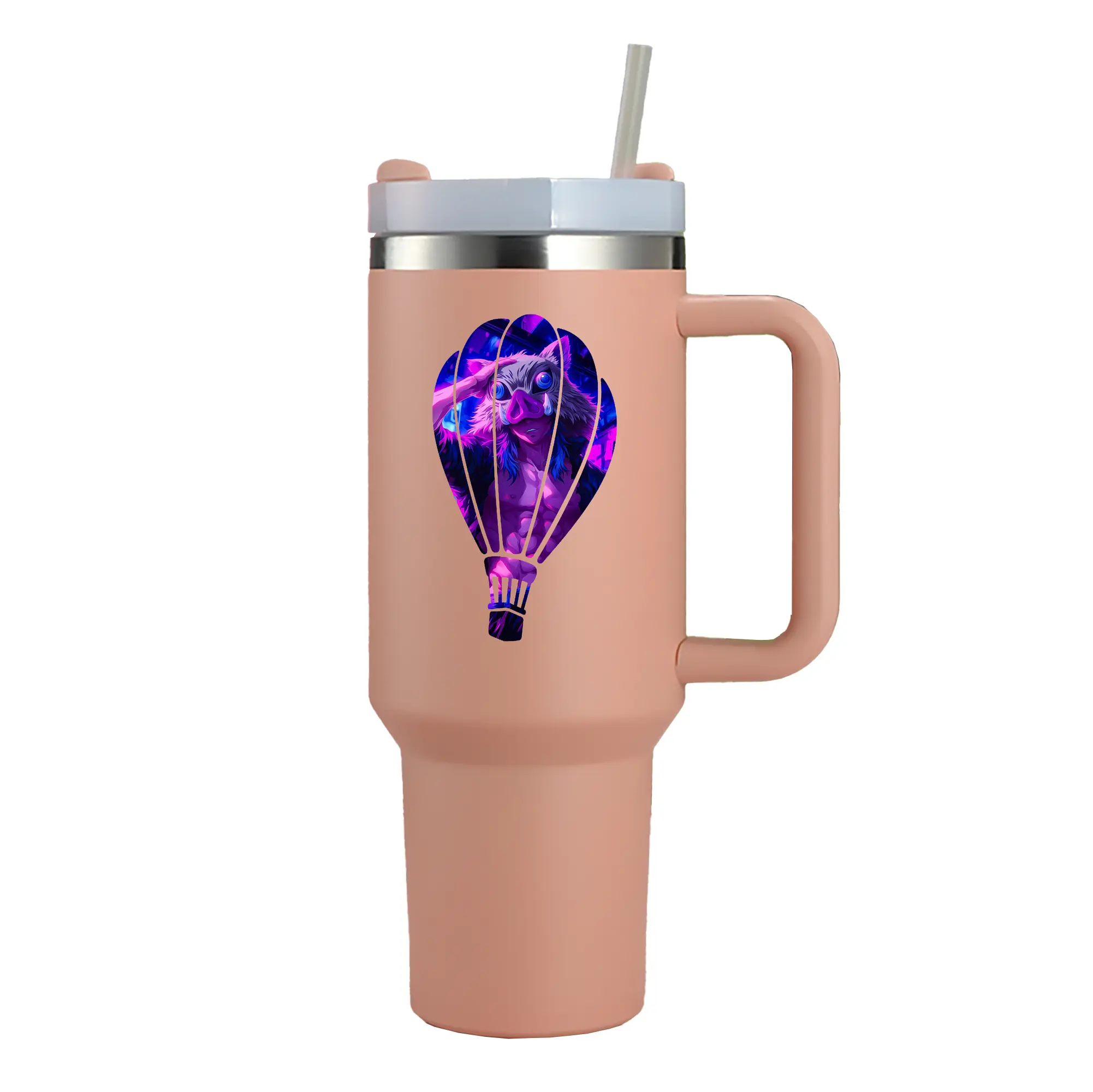 鬼滅の刃 グッズ,嘴平 伊之助 - 1200mL 車用タンブラー ・ クリスタルステッカー ・ 304ステンレス 内側 ・ 201ステンレス 外側 ・ 保温 保冷 ・ ハンドル&ストロー付き ・ 通勤 ドライブ アウトドア用