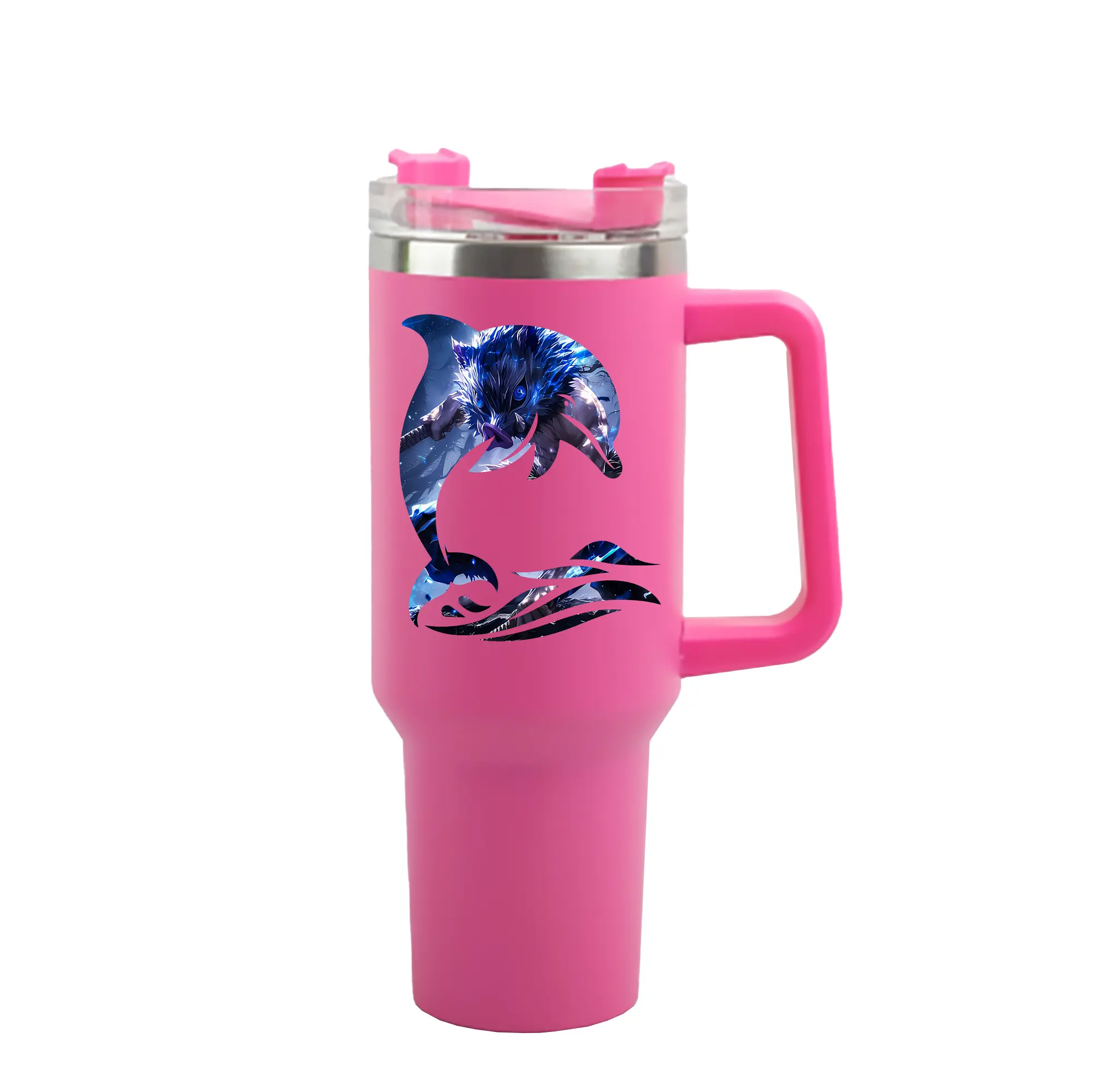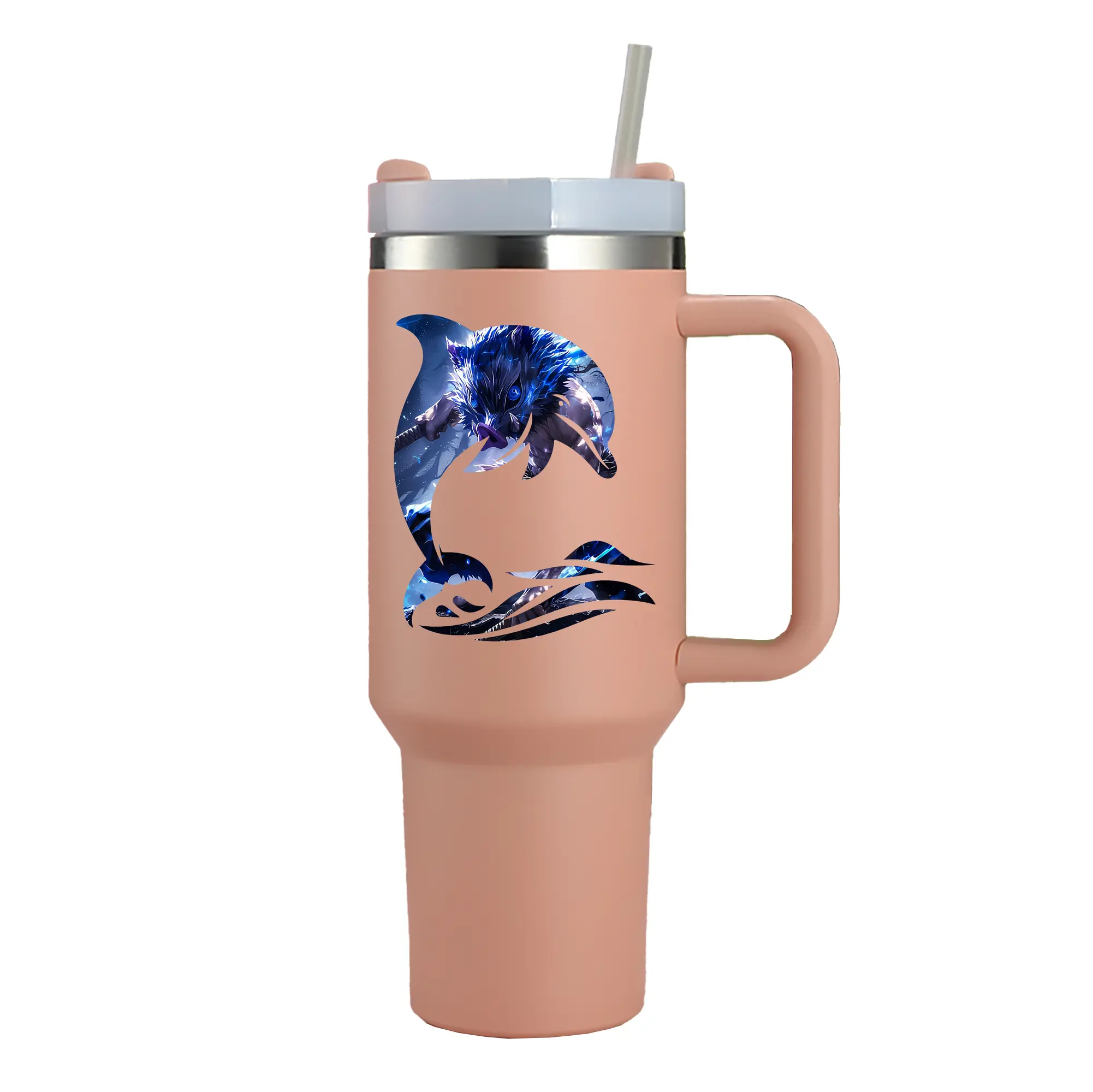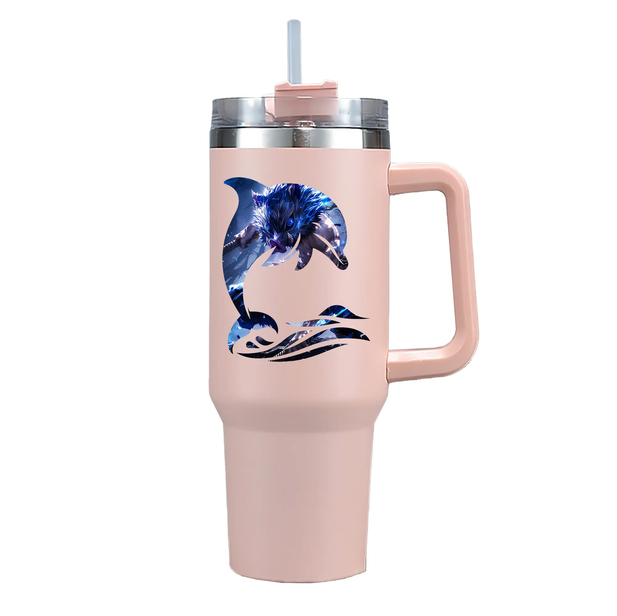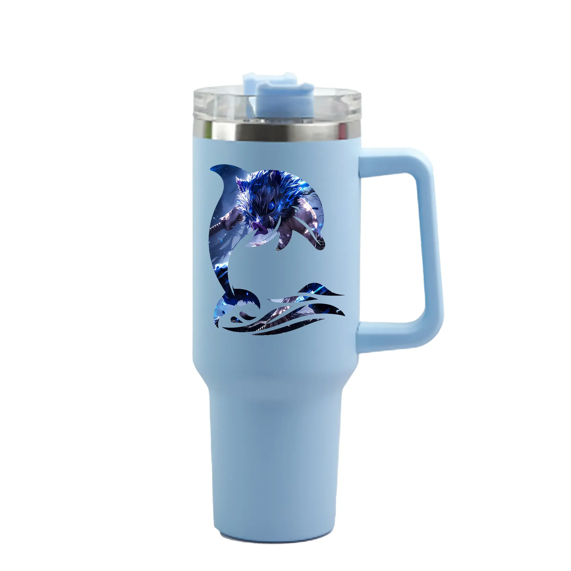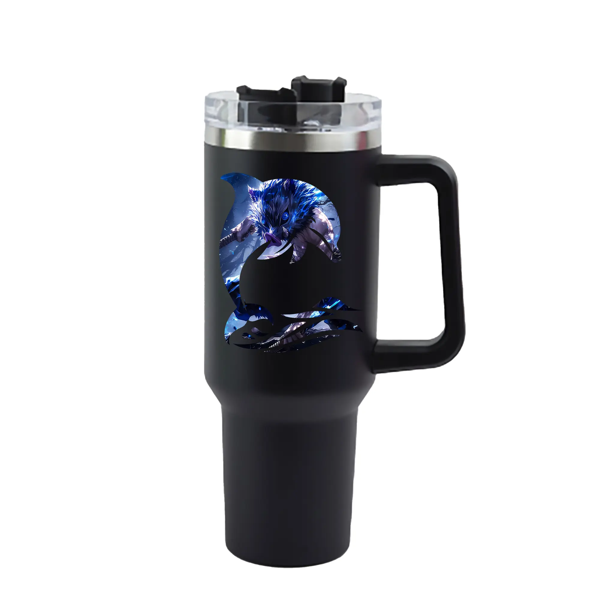 鬼滅の刃 グッズ,嘴平 伊之助 - 1200mL 車用タンブラー ・ クリスタルステッカー ・ 304ステンレス 内側 ・ 201ステンレス 外側 ・ 保温 保冷 ・ ハンドル&ストロー付き ・ 通勤 ドライブ アウトドア用