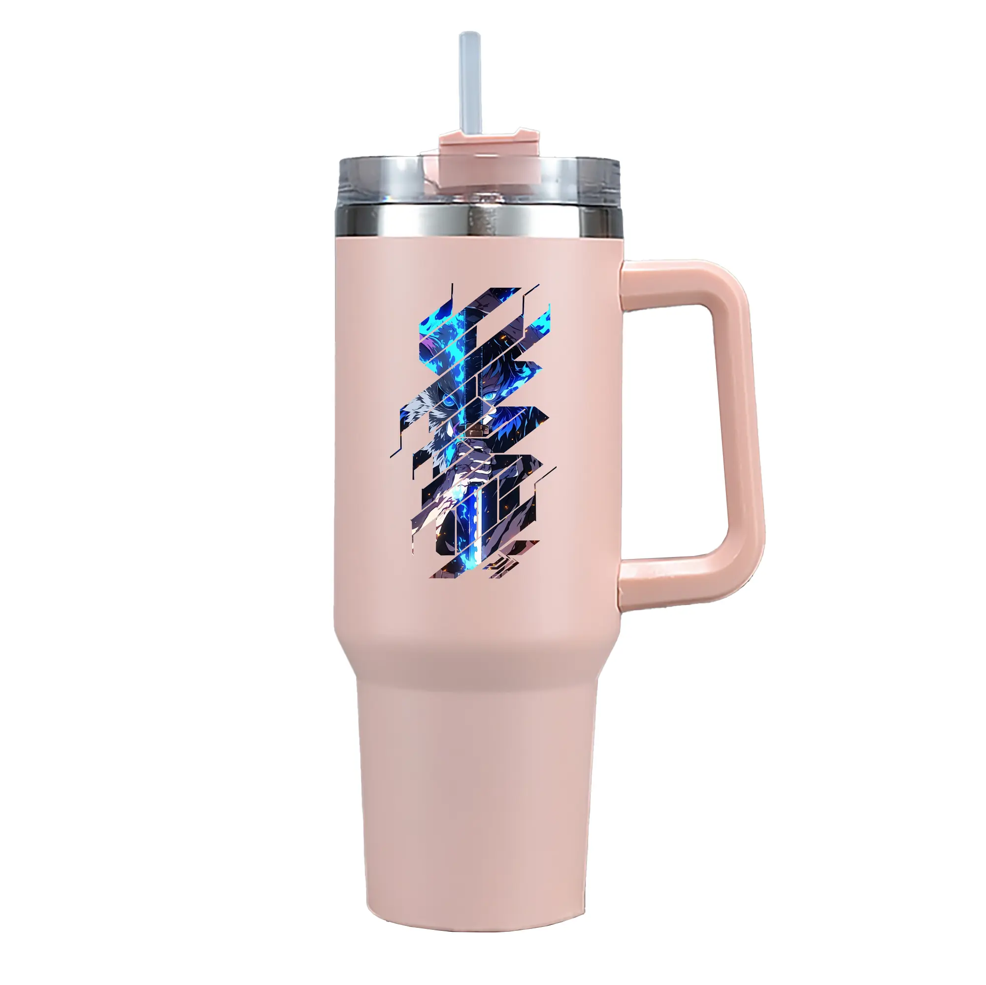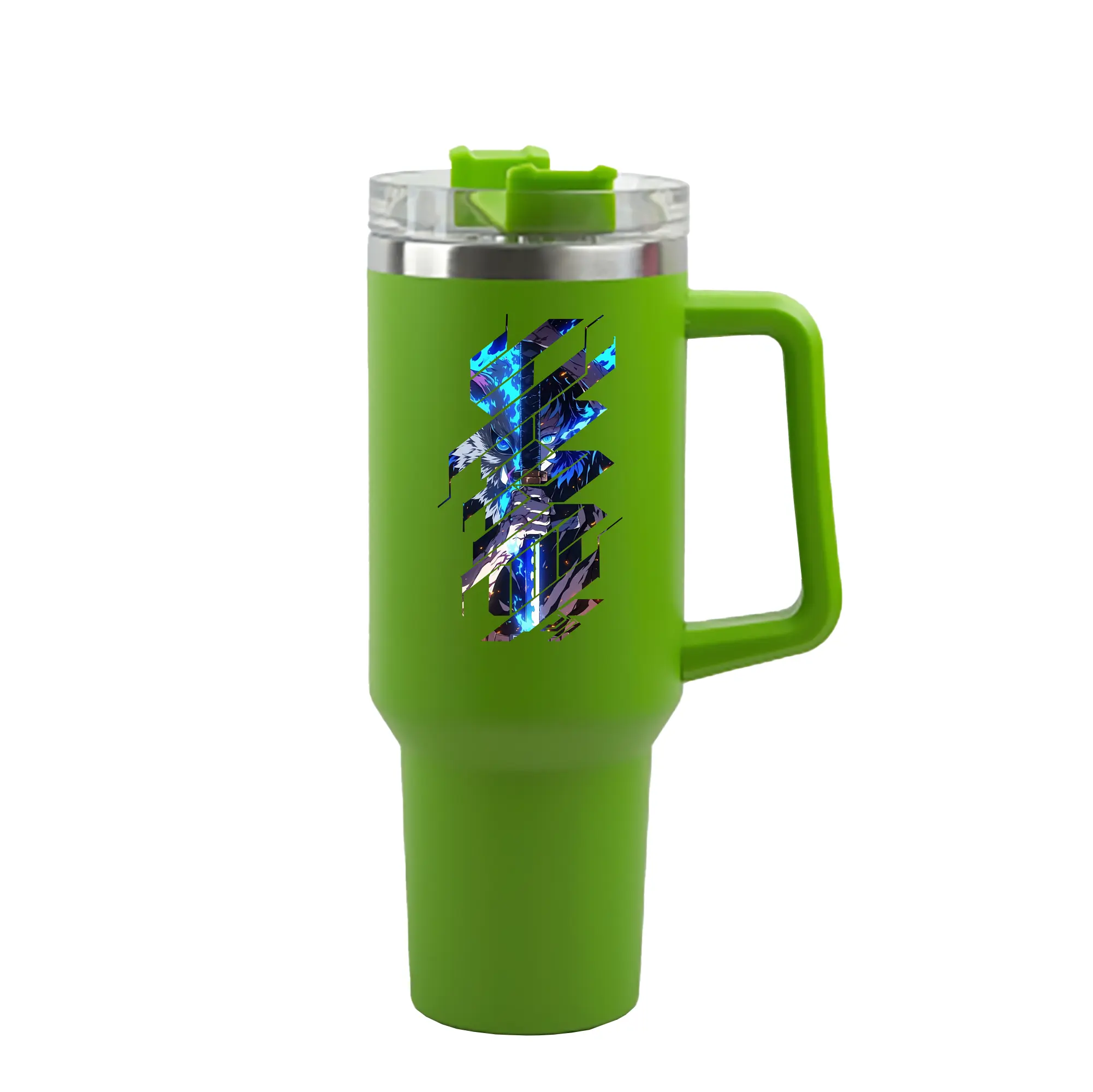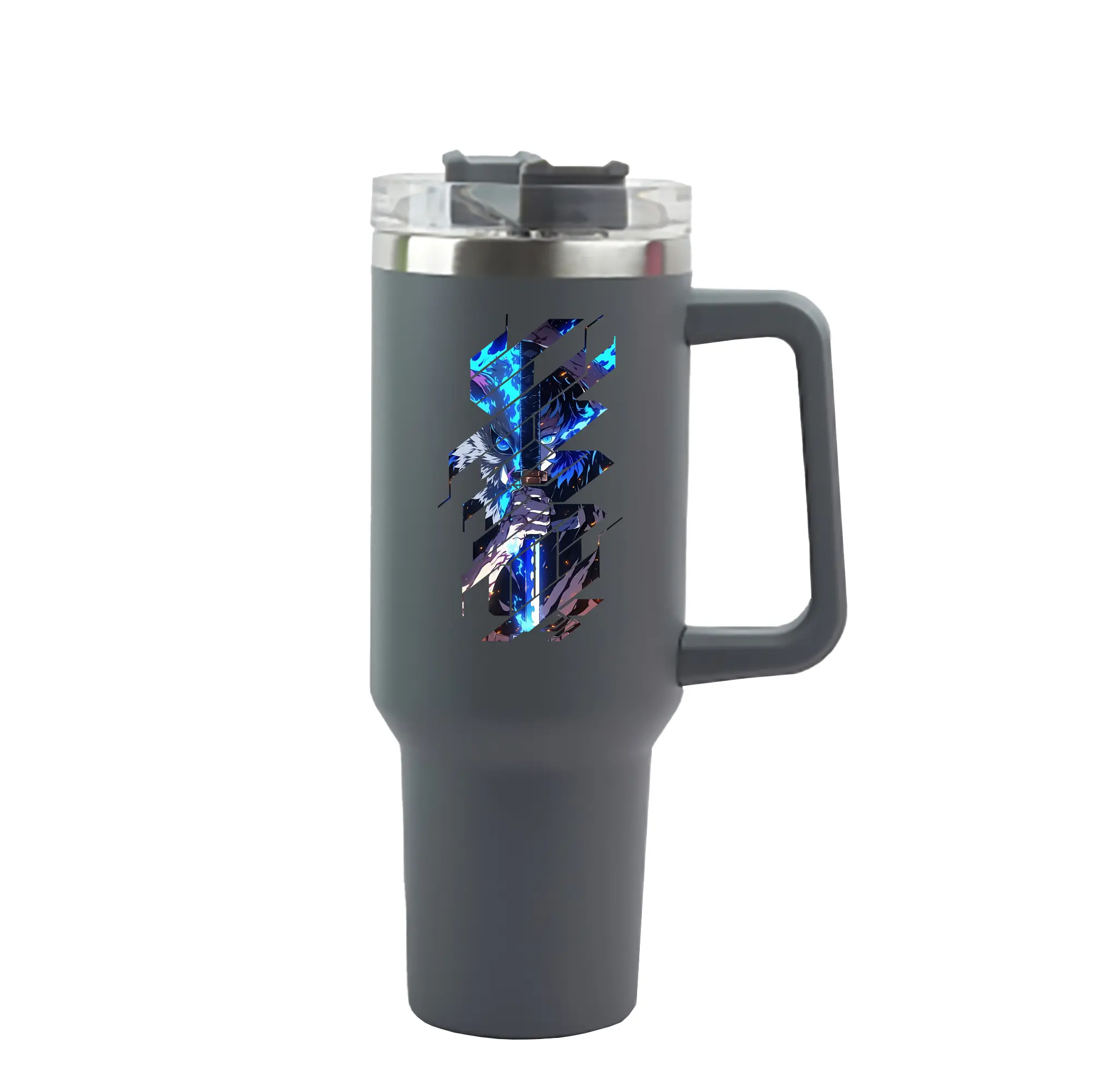 鬼滅の刃 グッズ,嘴平 伊之助 - 1200mL 車用タンブラー ・ クリスタルステッカー ・ 304ステンレス 内側 ・ 201ステンレス 外側 ・ 保温 保冷 ・ ハンドル&ストロー付き ・ 通勤 ドライブ アウトドア用