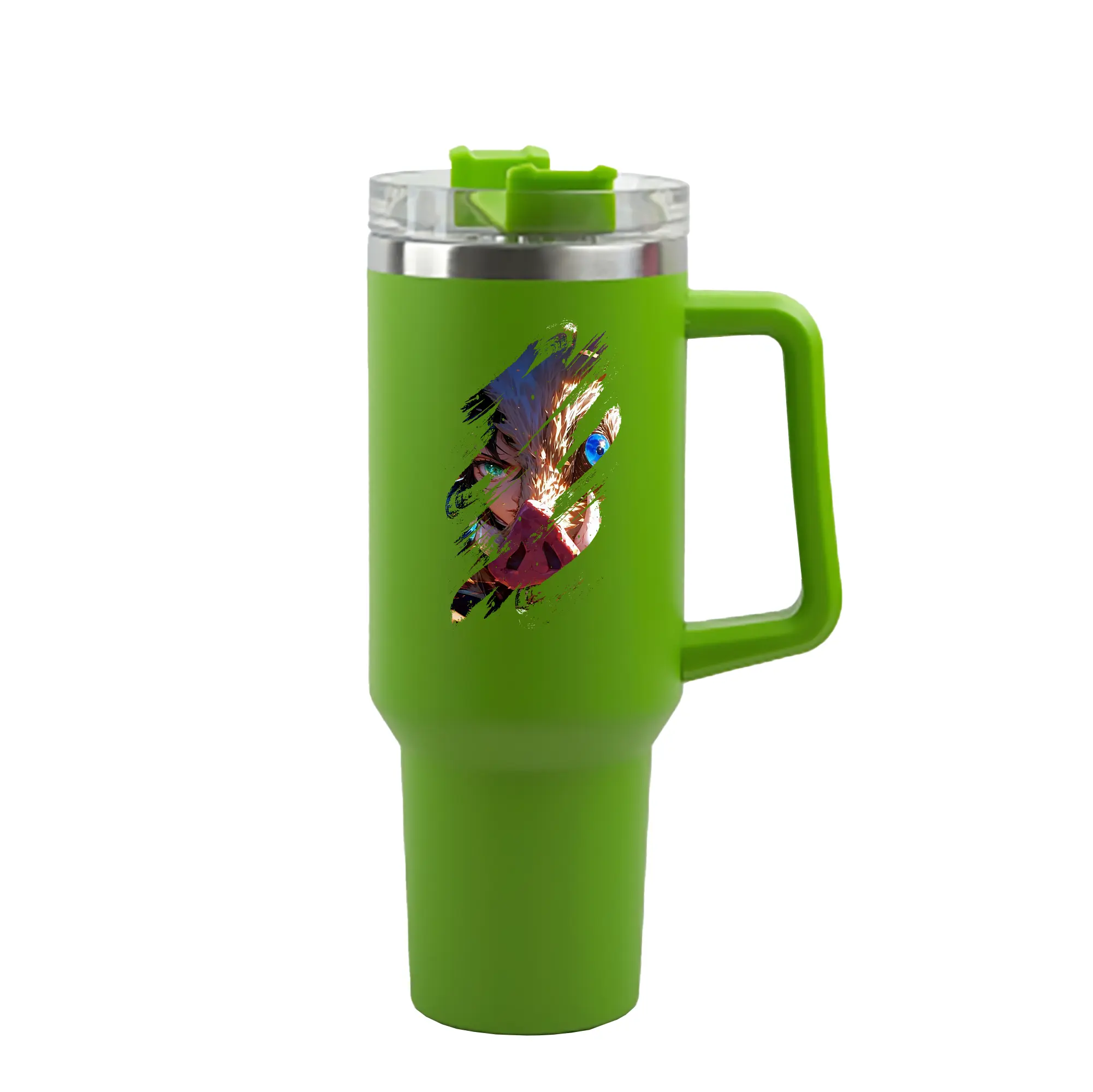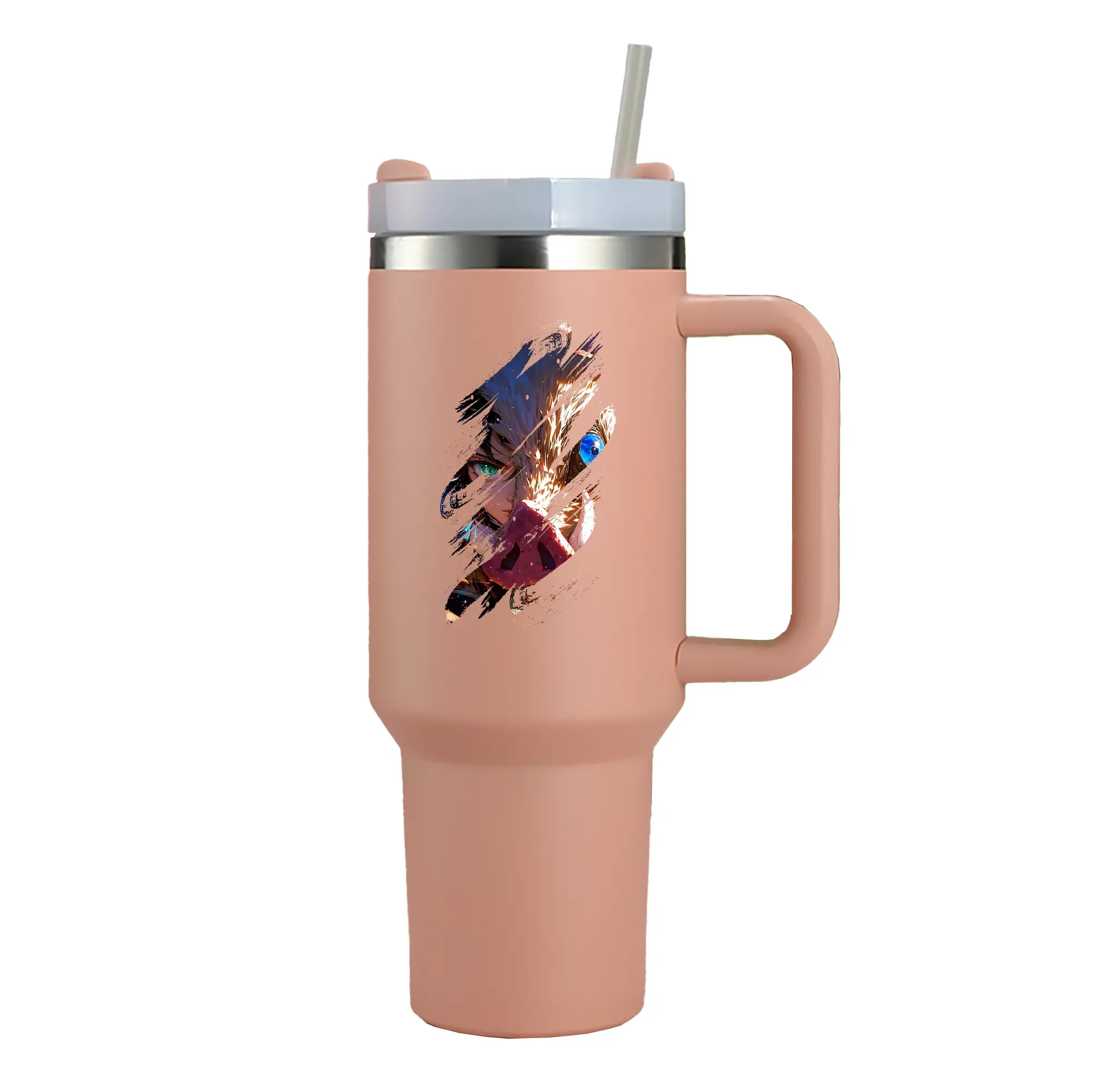 鬼滅の刃 グッズ,嘴平 伊之助 - 1200mL 車用タンブラー ・ クリスタルステッカー ・ 304ステンレス 内側 ・ 201ステンレス 外側 ・ 保温 保冷 ・ ハンドル&ストロー付き ・ 通勤 ドライブ アウトドア用