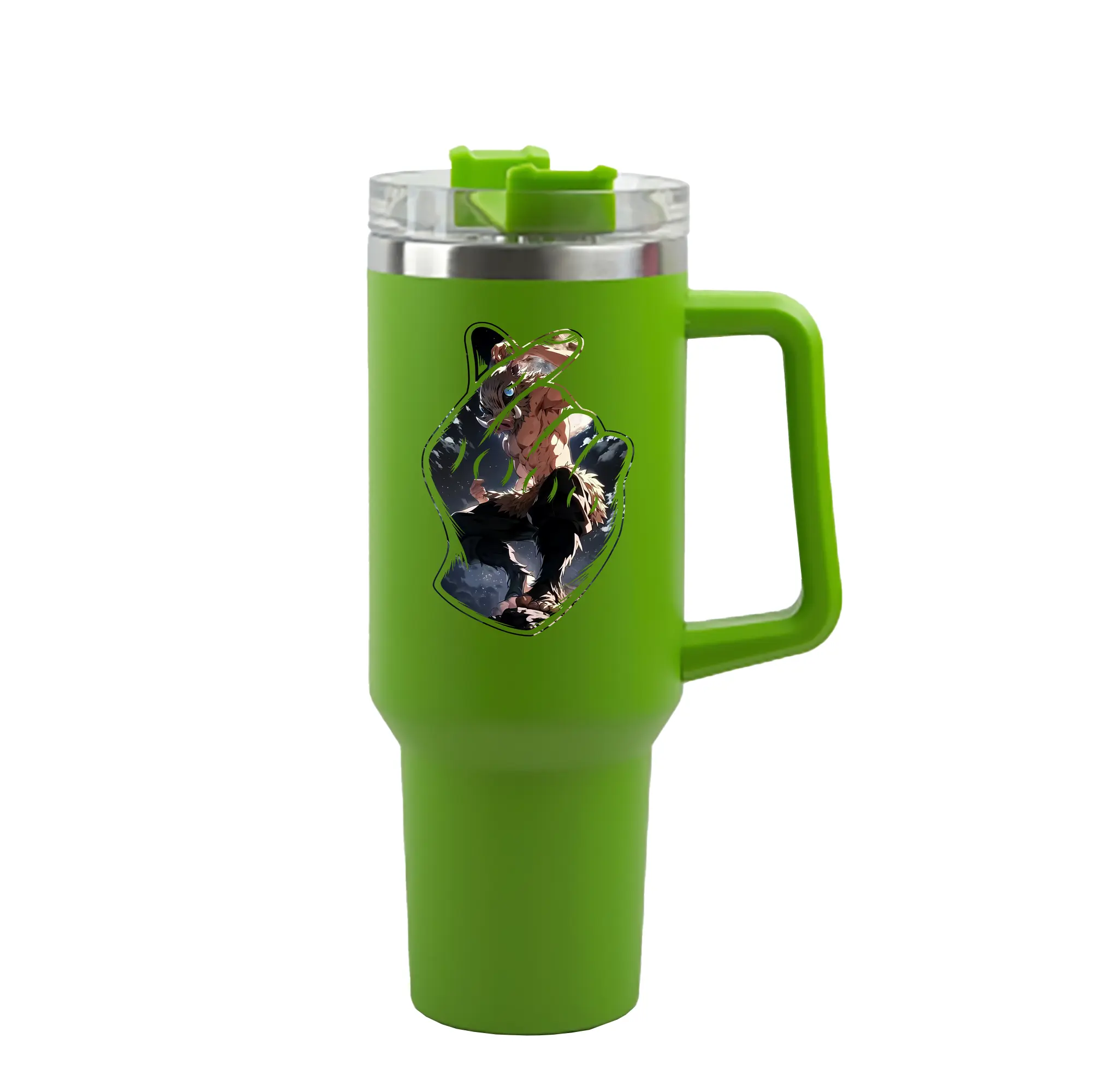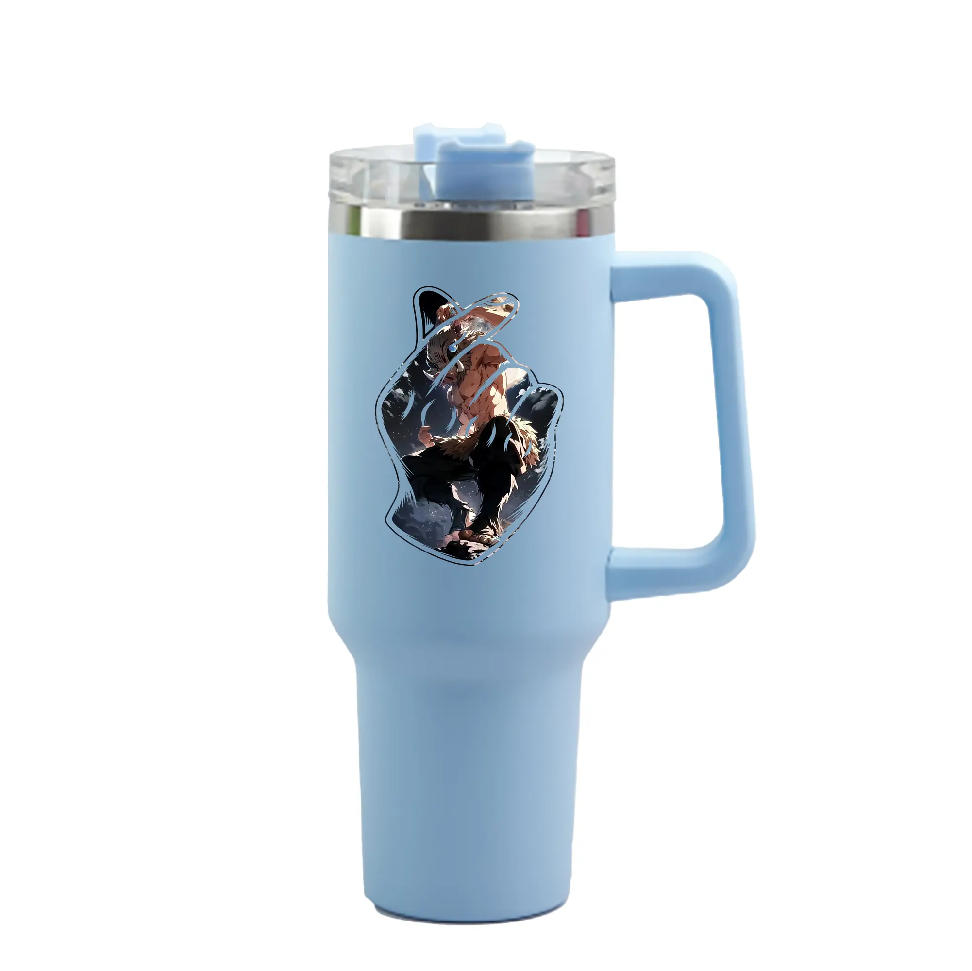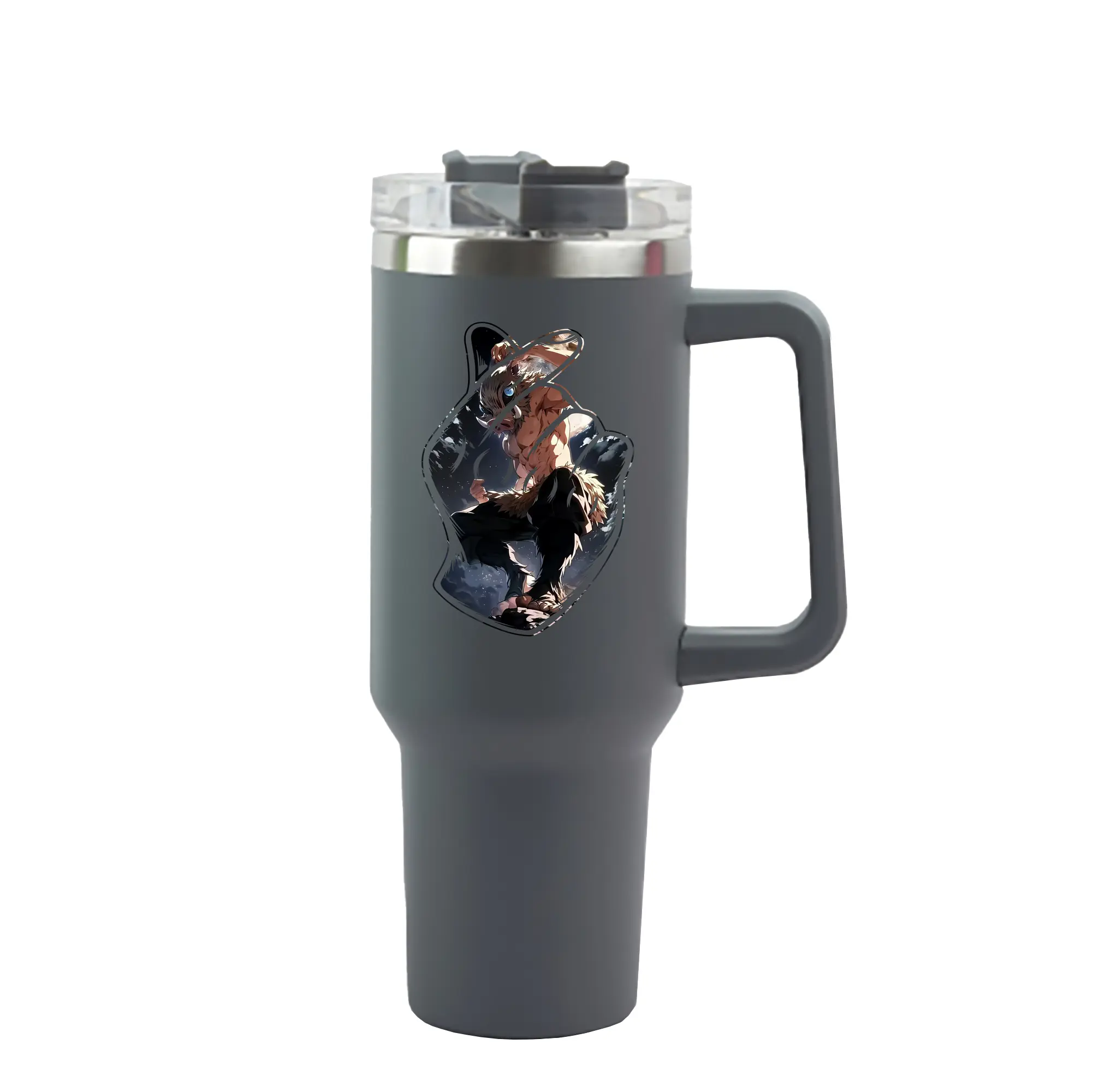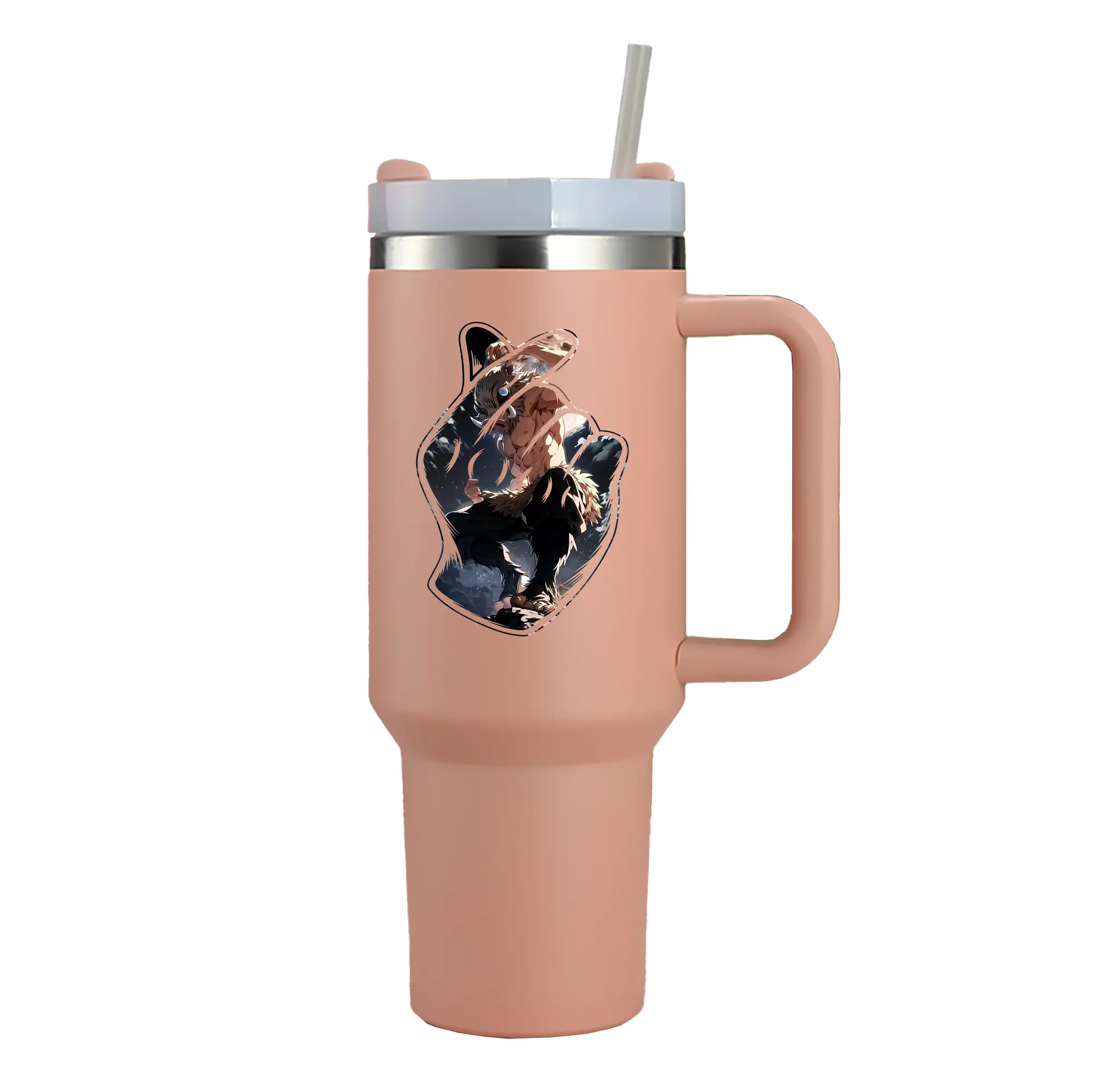 鬼滅の刃 グッズ,嘴平 伊之助 - 1200mL 車用タンブラー ・ クリスタルステッカー ・ 304ステンレス 内側 ・ 201ステンレス 外側 ・ 保温 保冷 ・ ハンドル&ストロー付き ・ 通勤 ドライブ アウトドア用