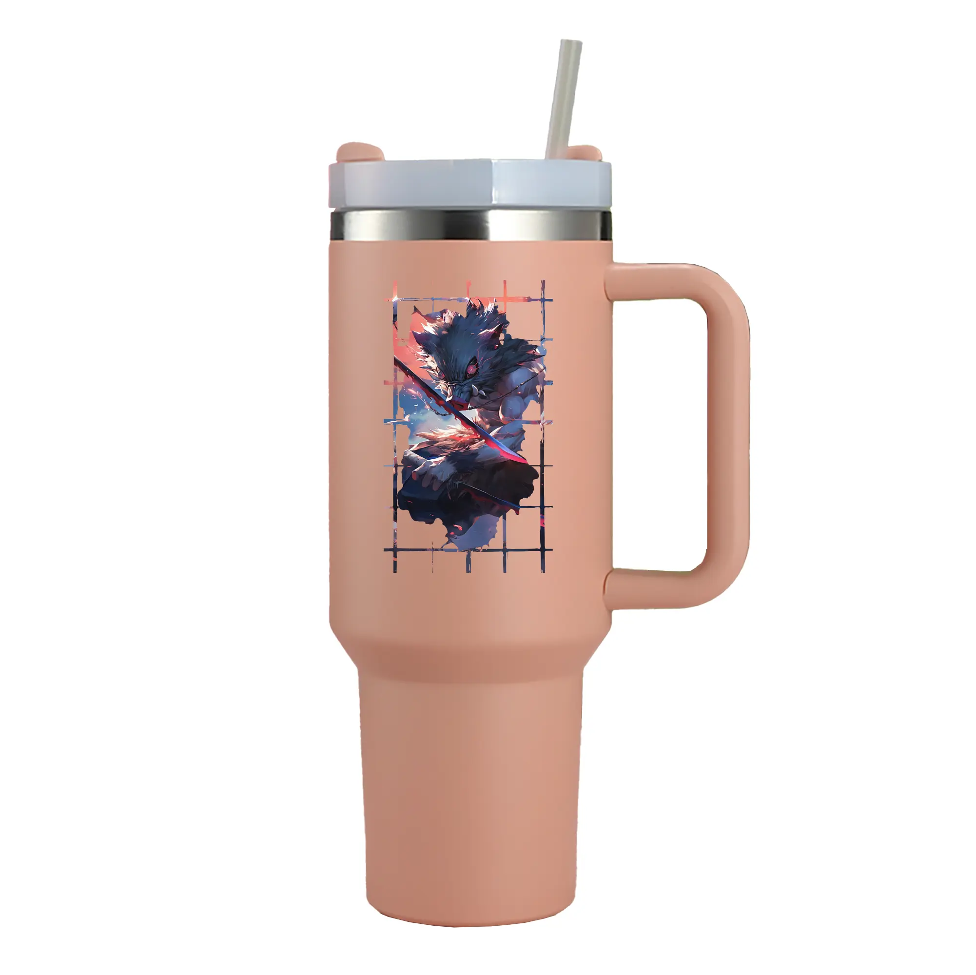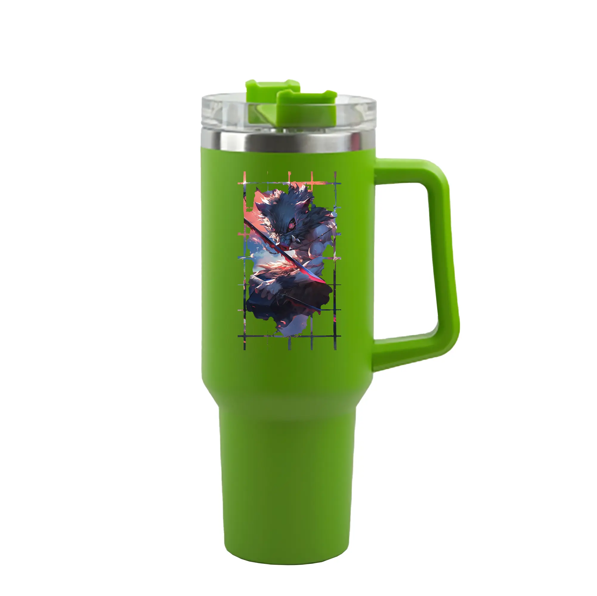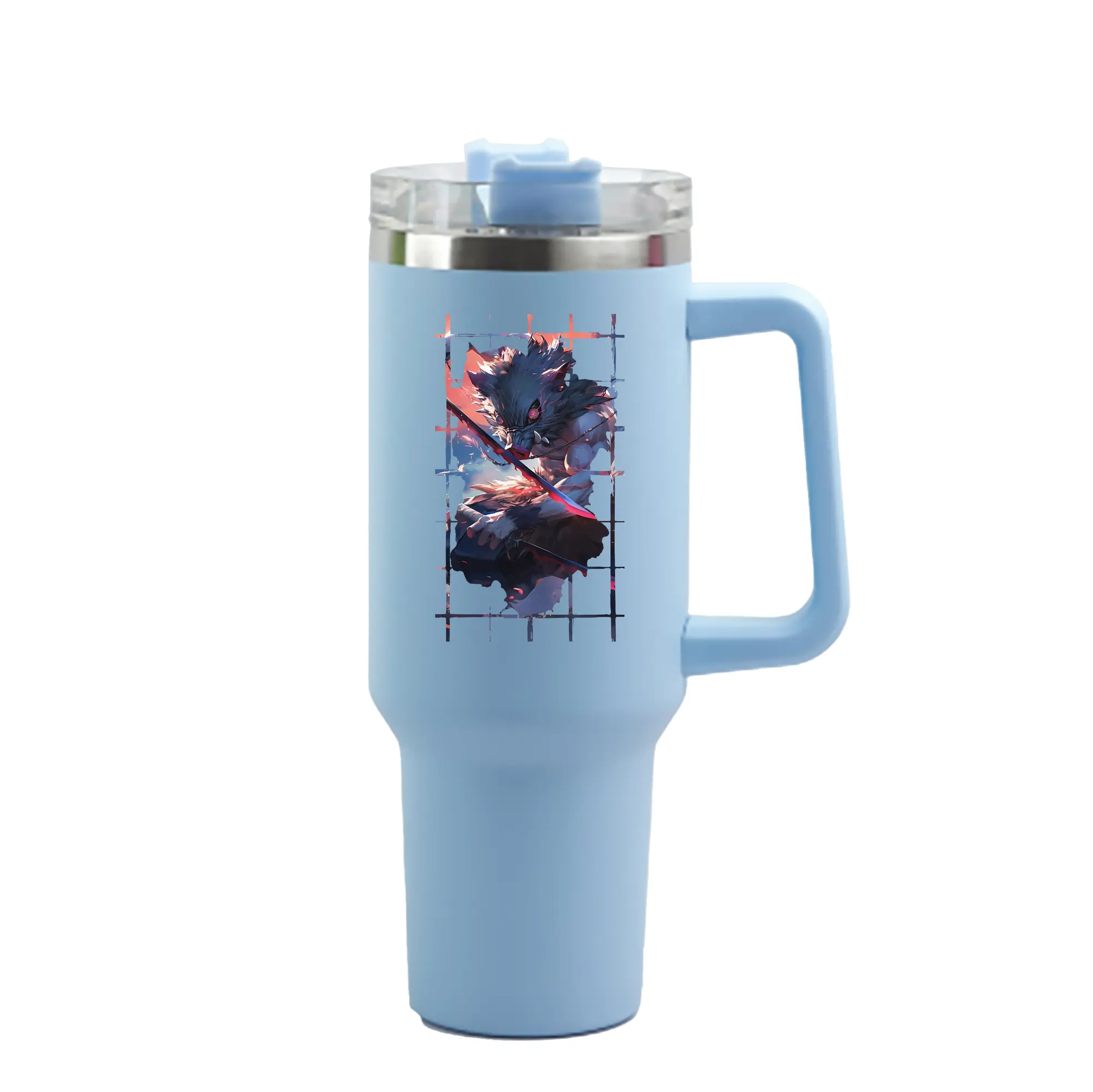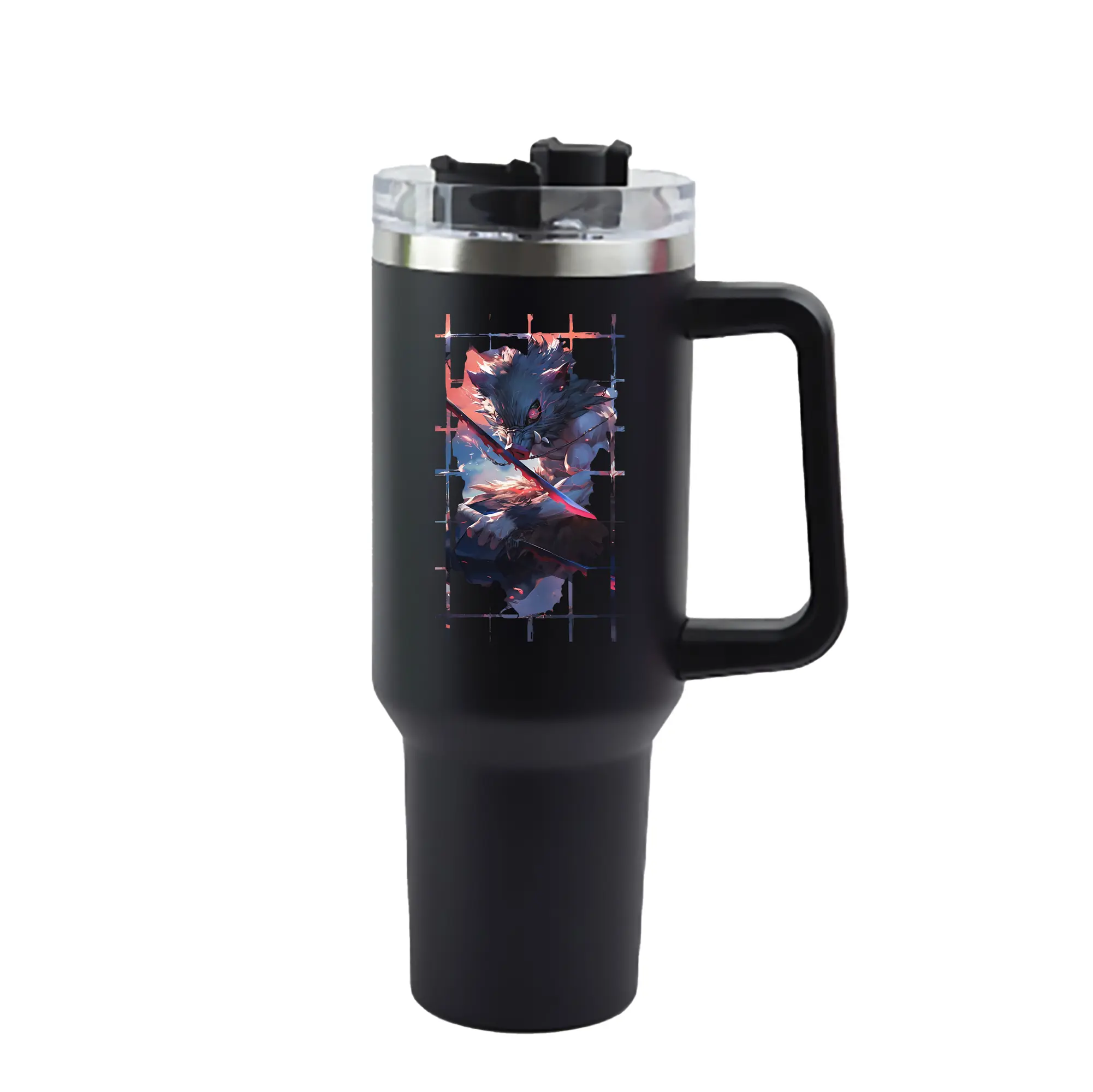 鬼滅の刃 グッズ,嘴平 伊之助 - 1200mL 車用タンブラー ・ クリスタルステッカー ・ 304ステンレス 内側 ・ 201ステンレス 外側 ・ 保温 保冷 ・ ハンドル&ストロー付き ・ 通勤 ドライブ アウトドア用