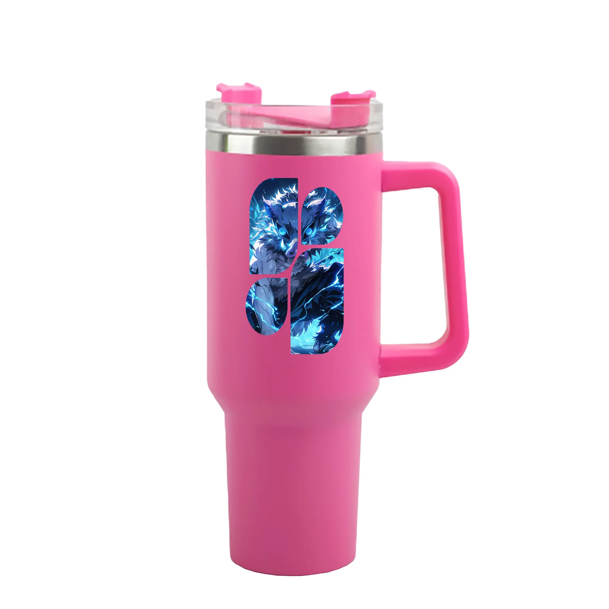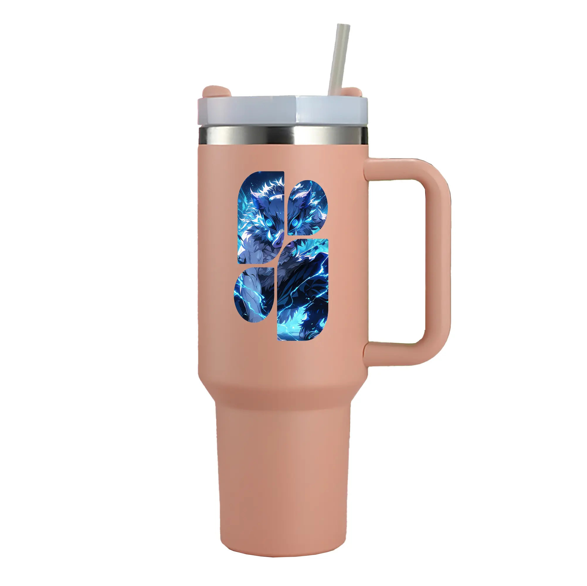 鬼滅の刃 グッズ,嘴平 伊之助 - 1200mL 車用タンブラー ・ クリスタルステッカー ・ 304ステンレス 内側 ・ 201ステンレス 外側 ・ 保温 保冷 ・ ハンドル&ストロー付き ・ 通勤 ドライブ アウトドア用