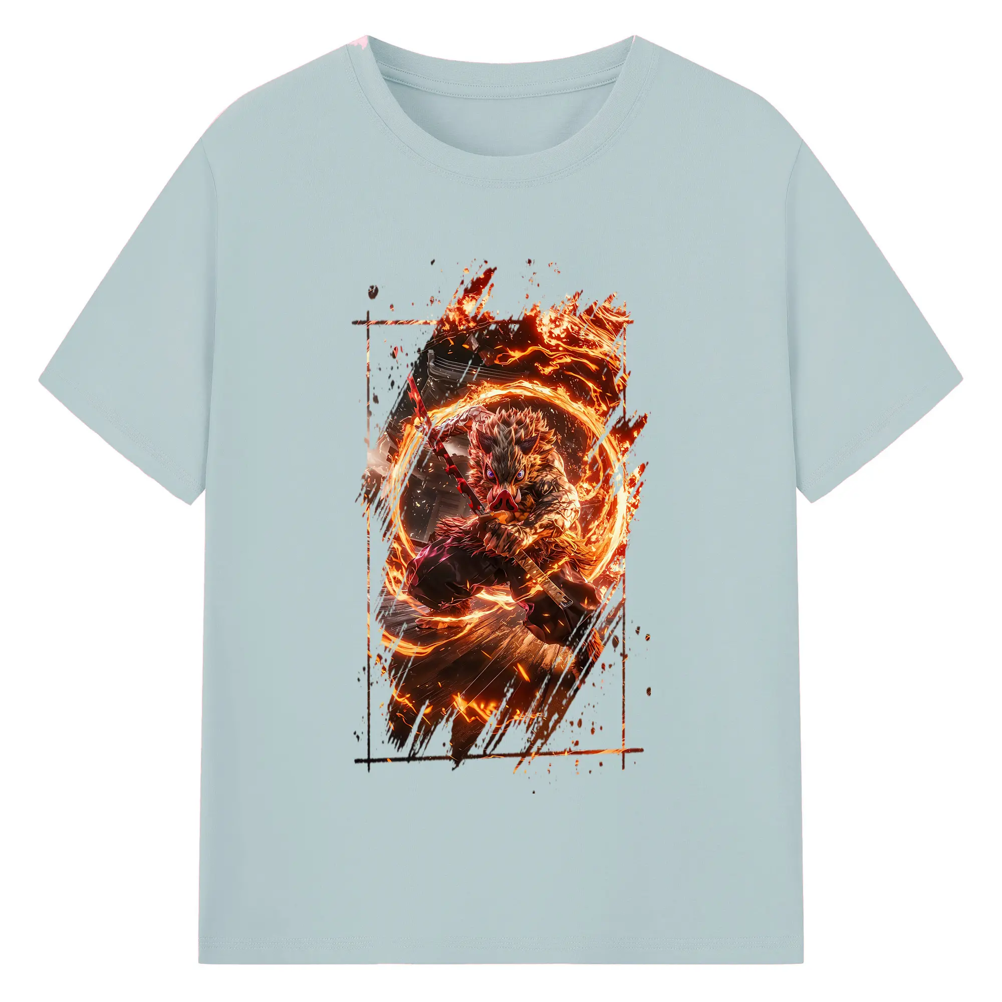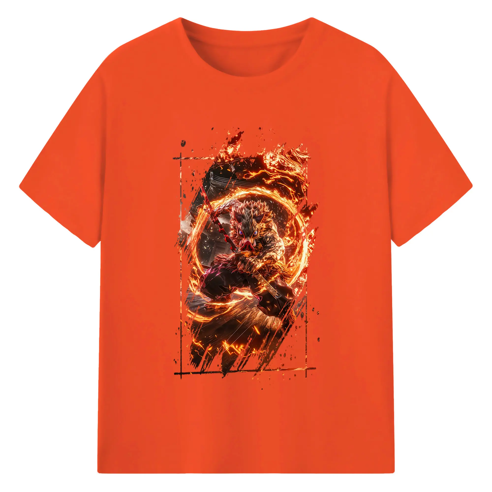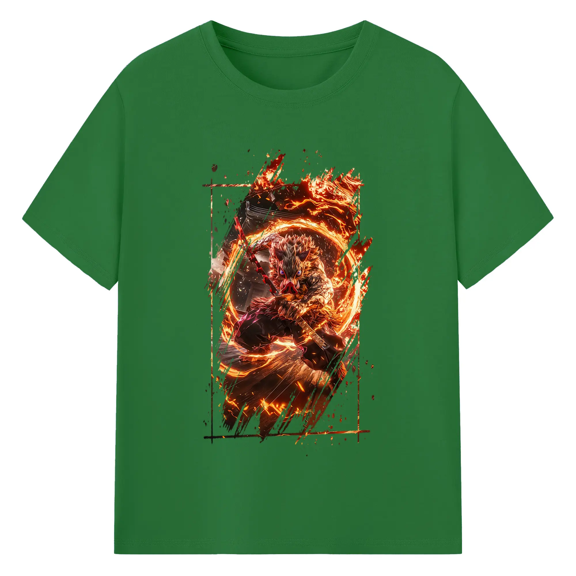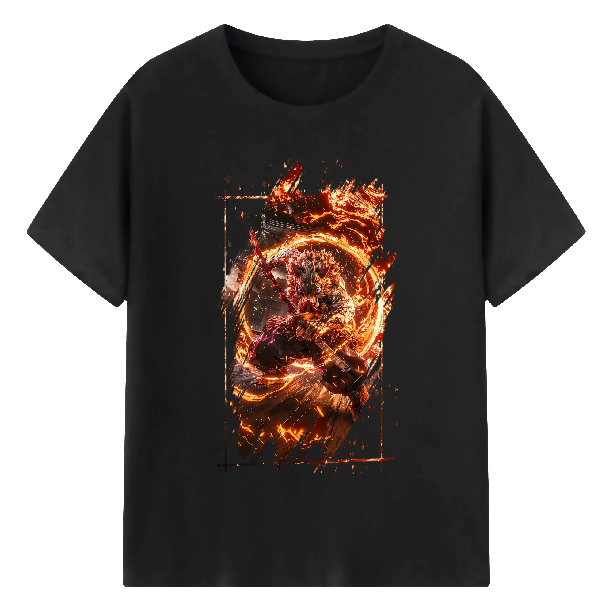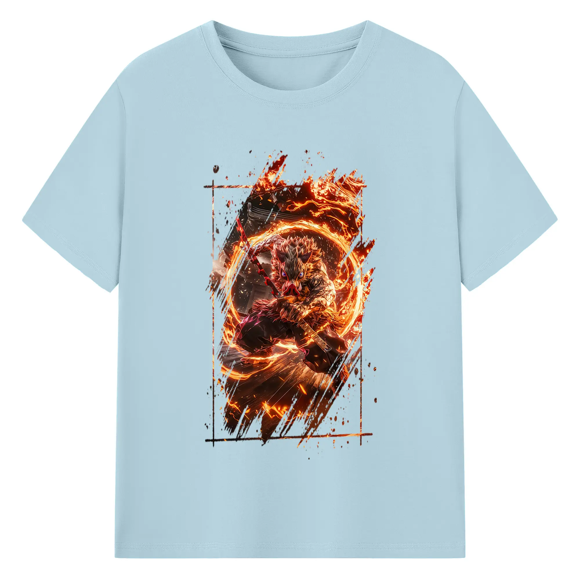鬼滅の刃 グッズ,嘴平 伊之助 - 綿100% 半袖Tシャツ ・ バックプリント ・ 快適 通気性 ・ 日常使い 散歩 スポーツ用