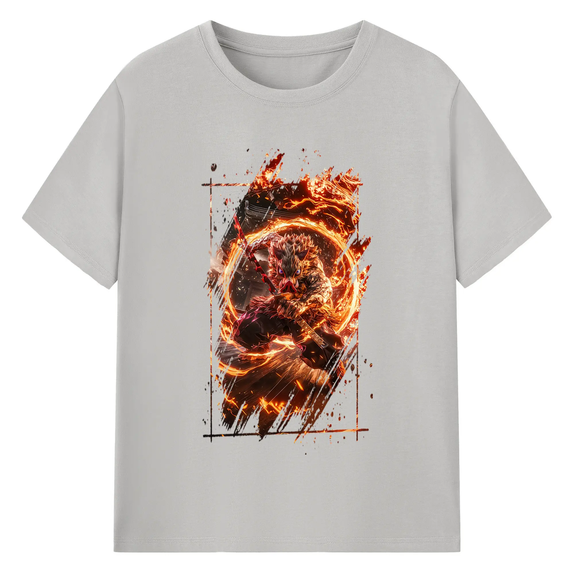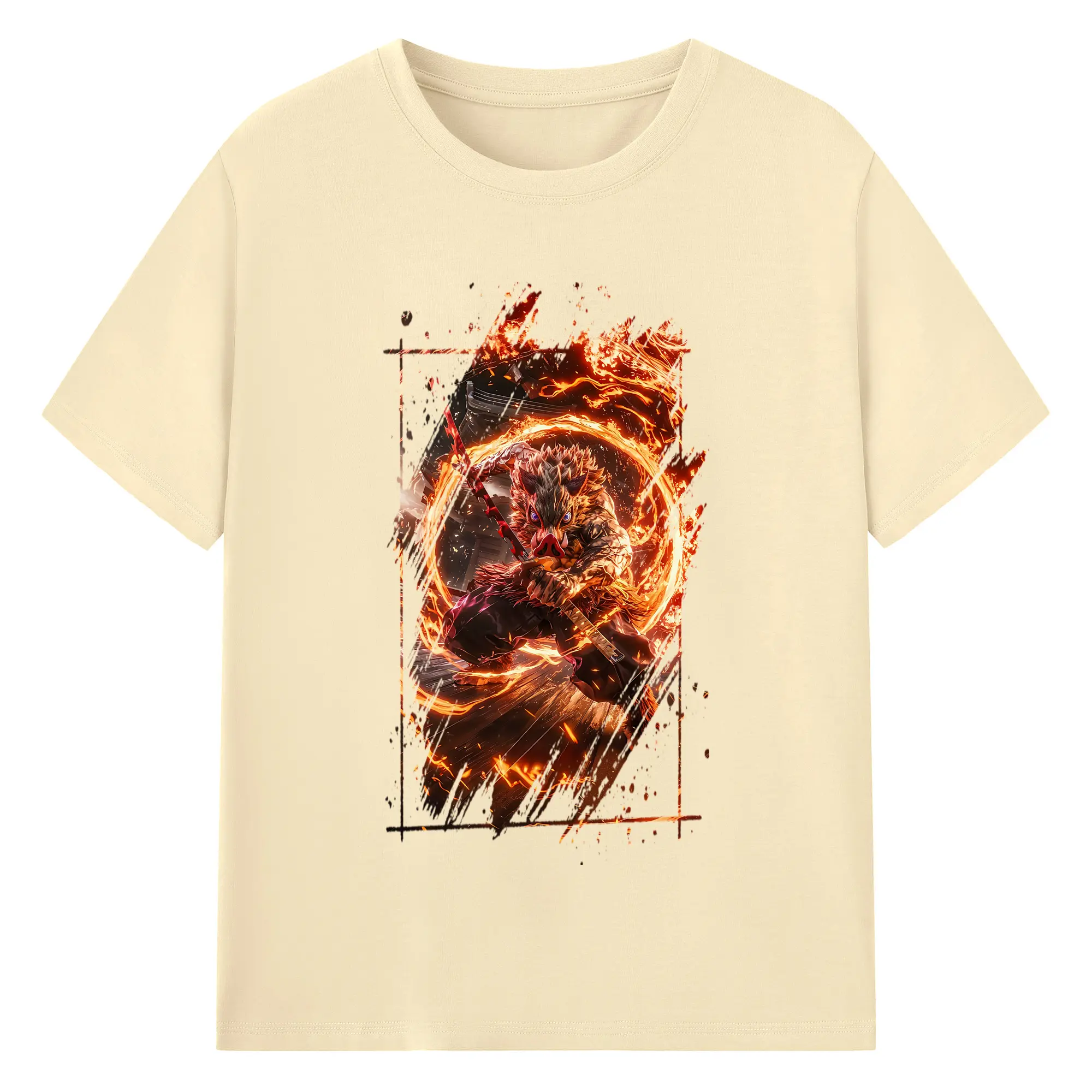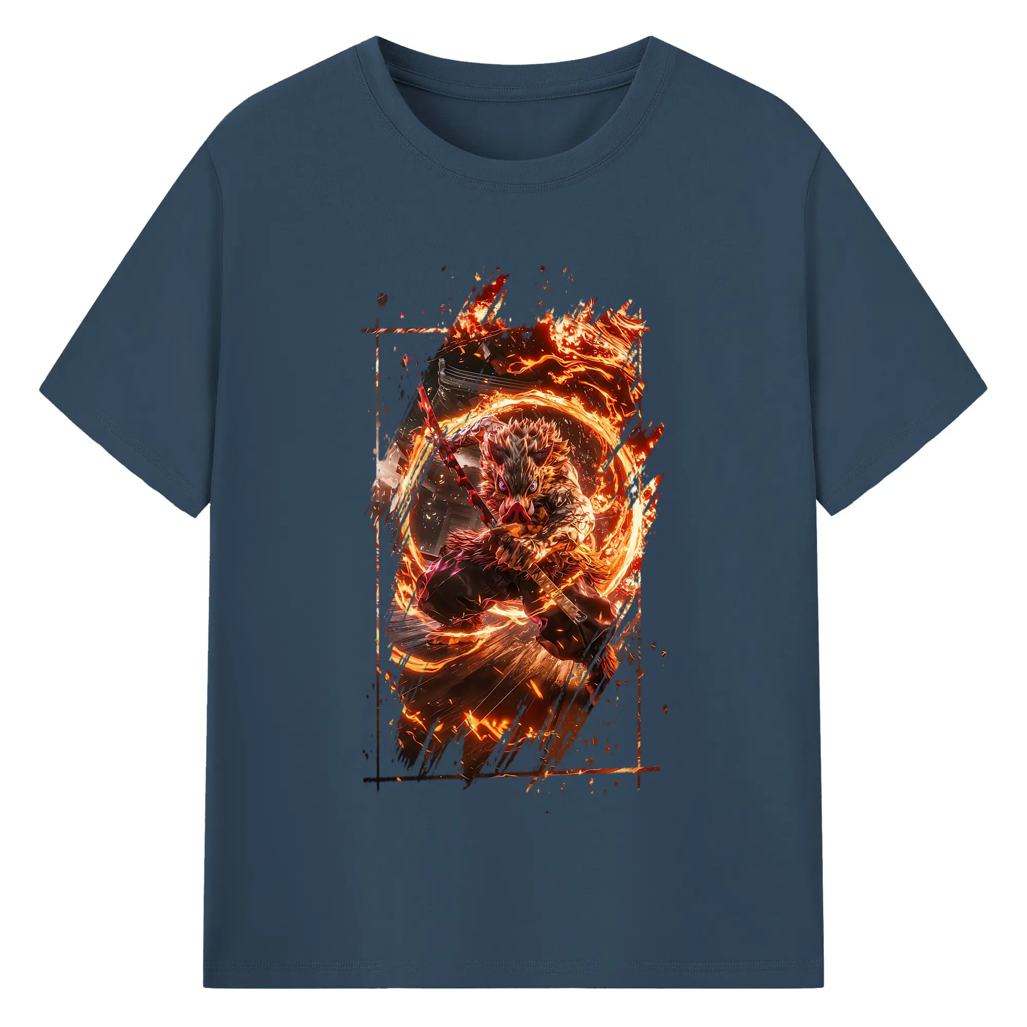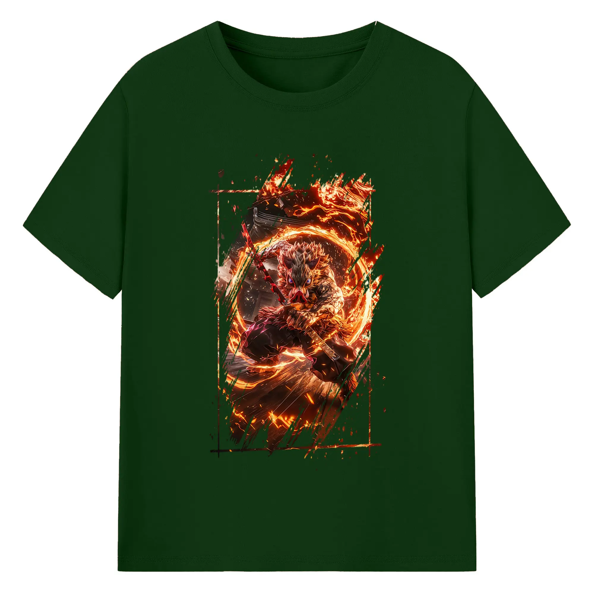 鬼滅の刃 グッズ,嘴平 伊之助 - 綿100% 半袖Tシャツ ・ バックプリント ・ 快適 通気性 ・ 日常使い 散歩 スポーツ用