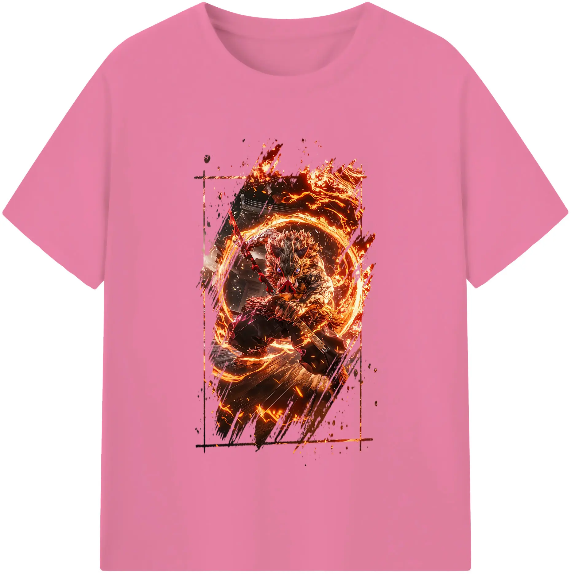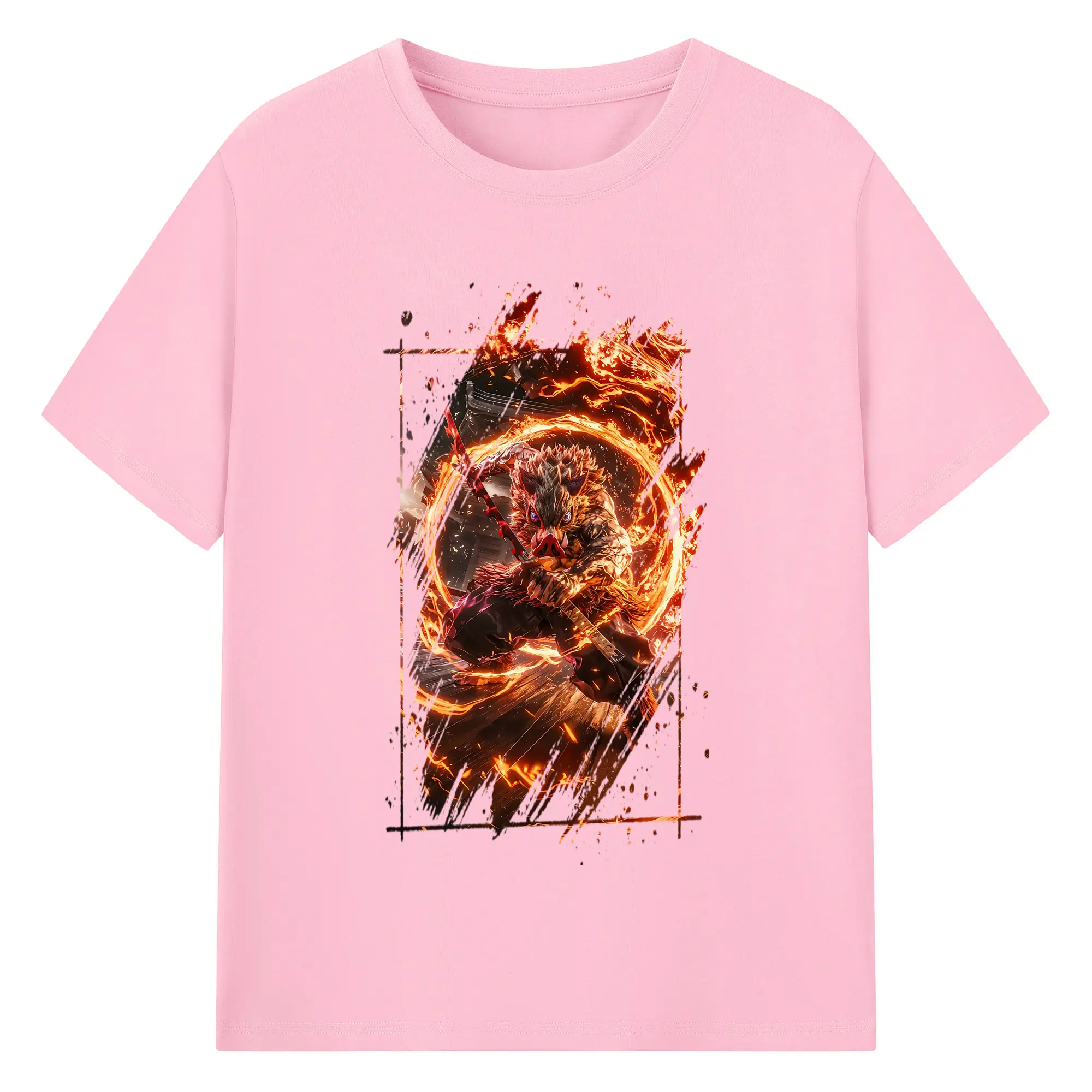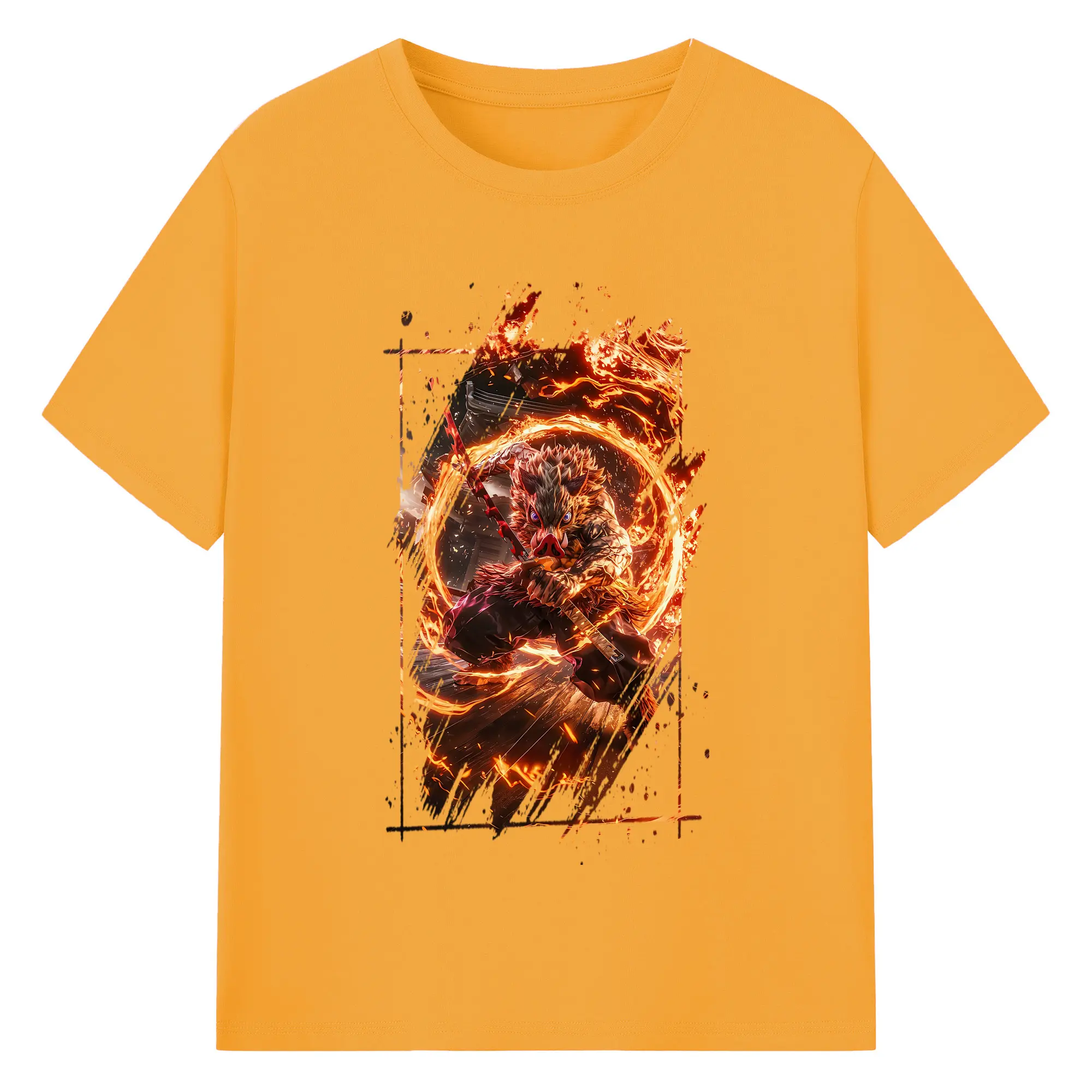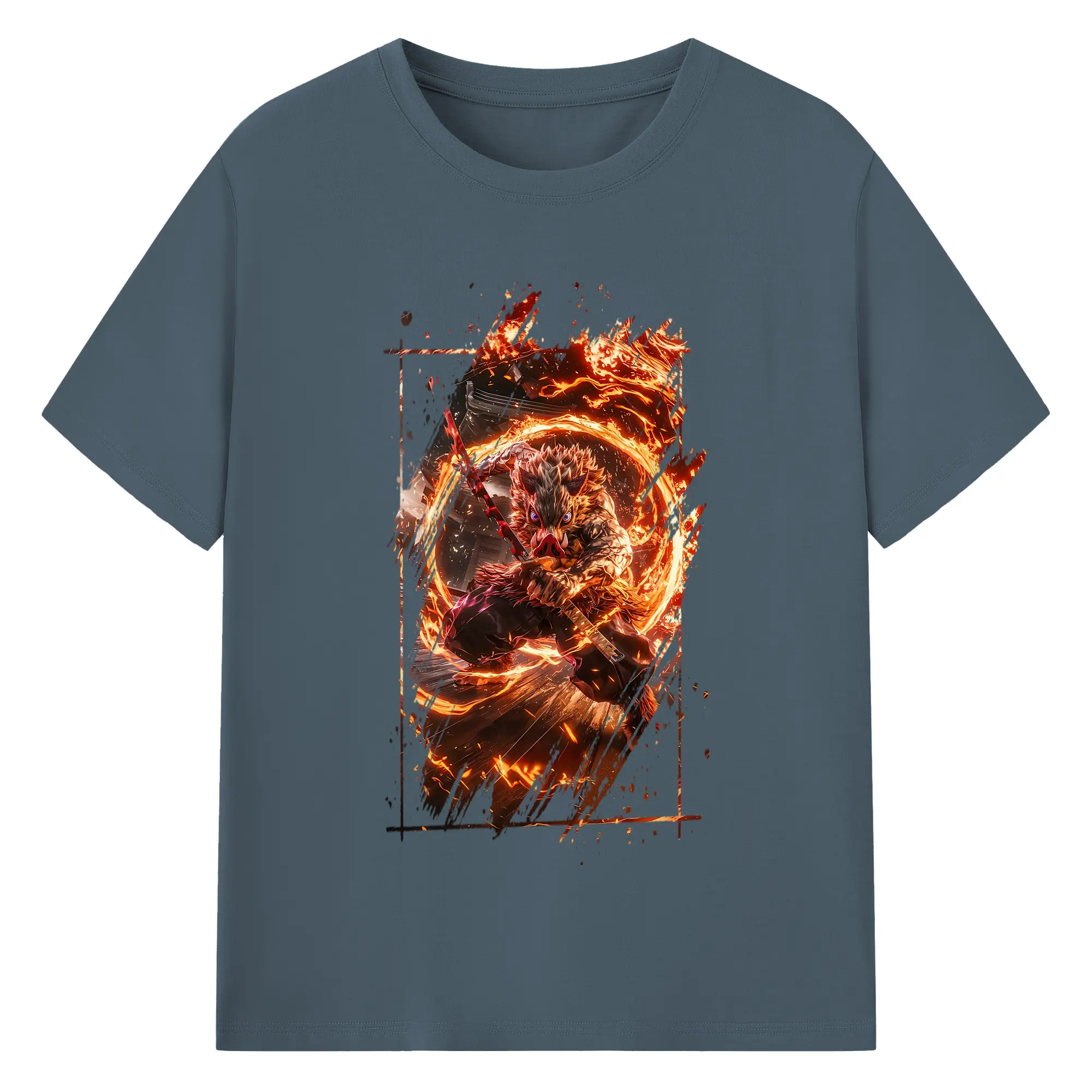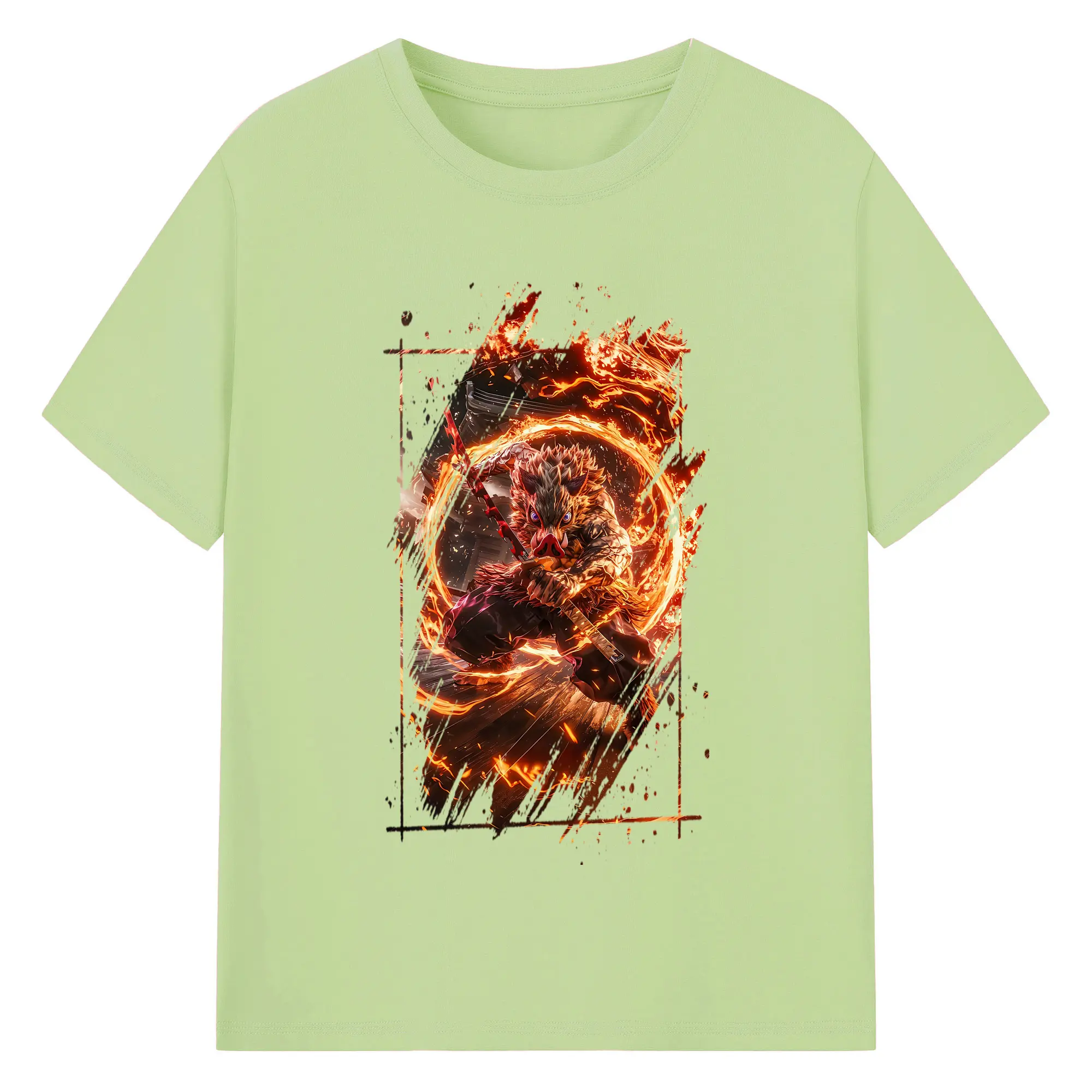 鬼滅の刃 グッズ,嘴平 伊之助 - 綿100% 半袖Tシャツ ・ バックプリント ・ 快適 通気性 ・ 日常使い 散歩 スポーツ用