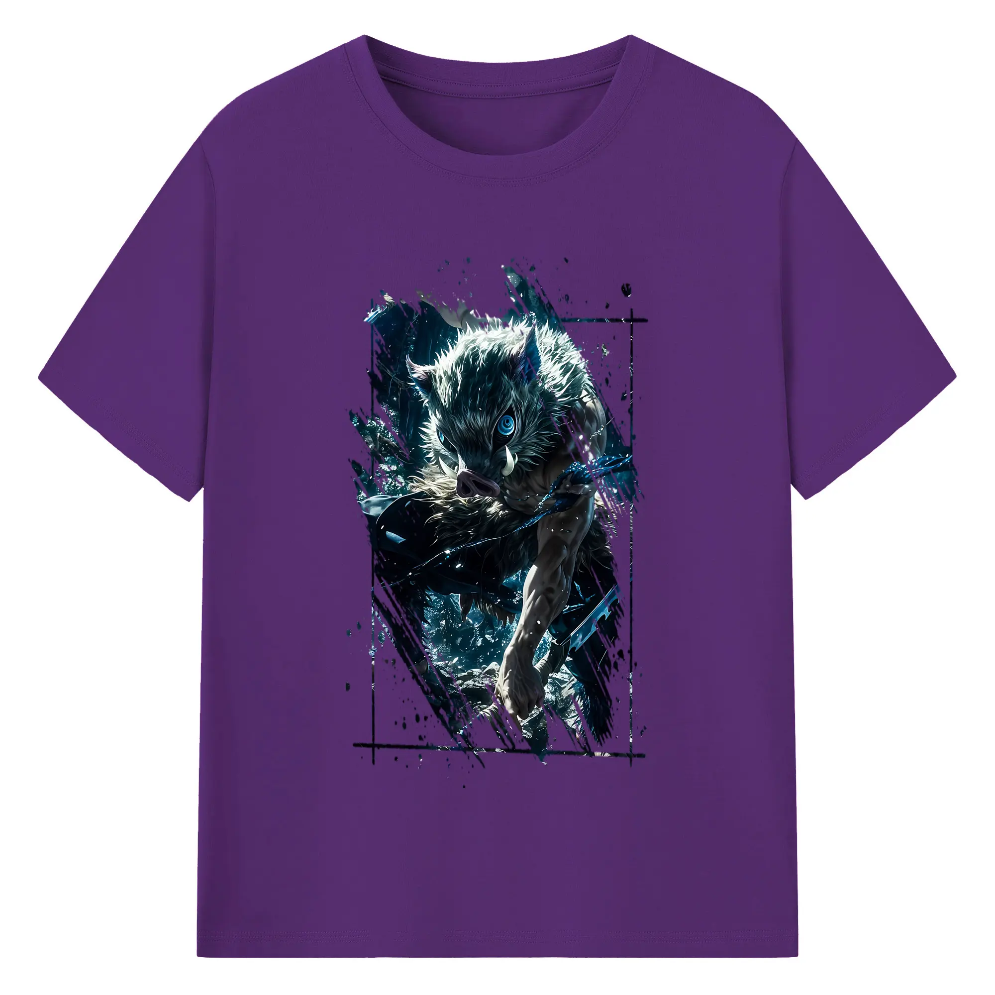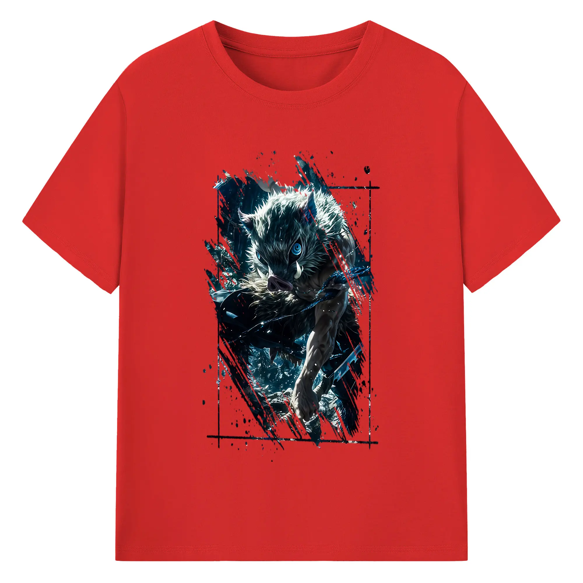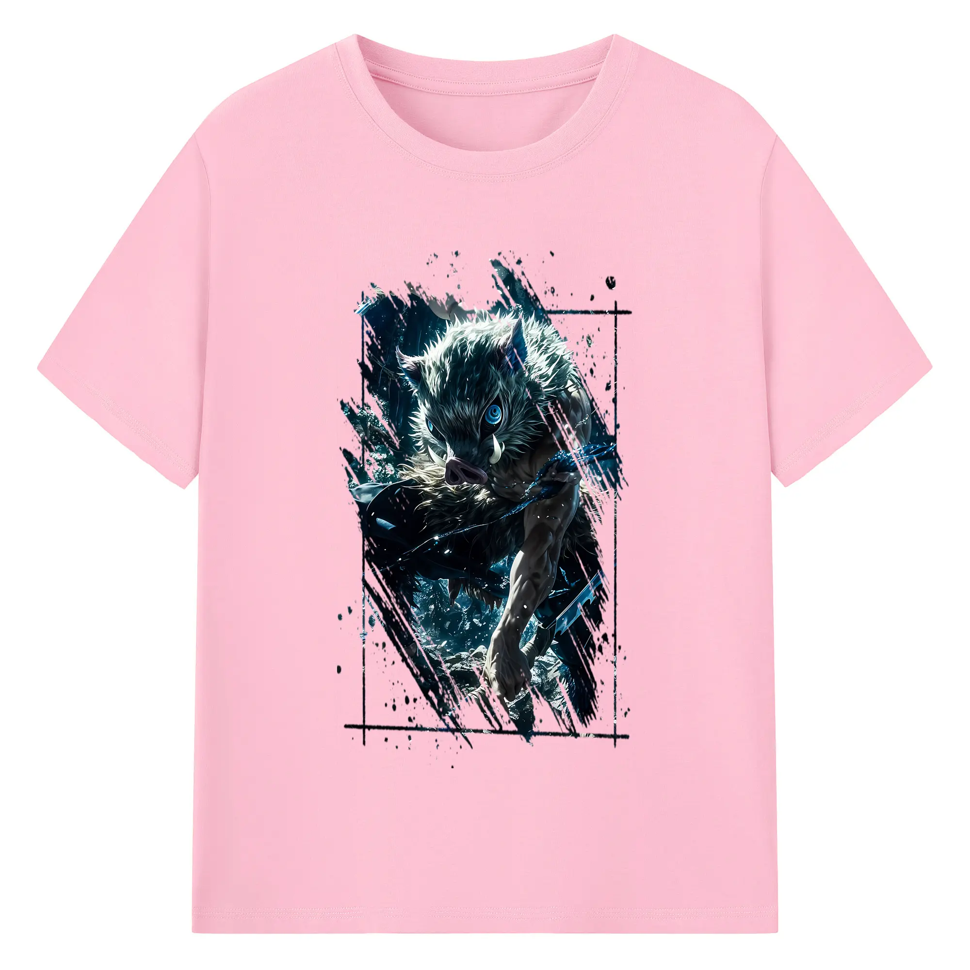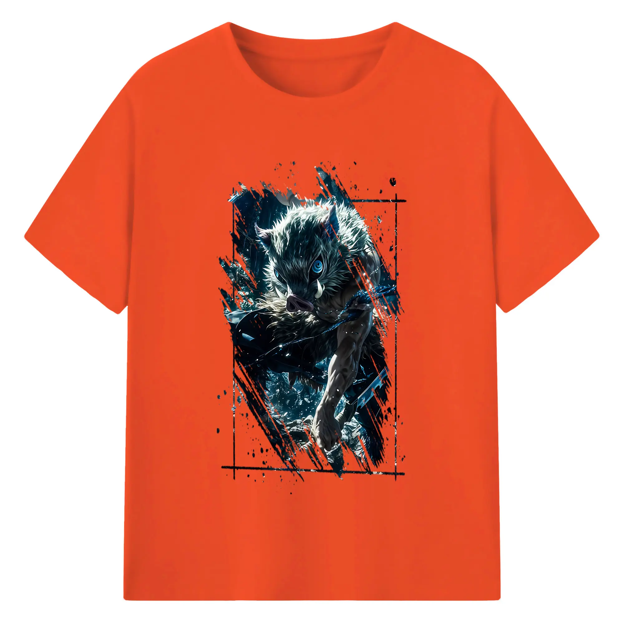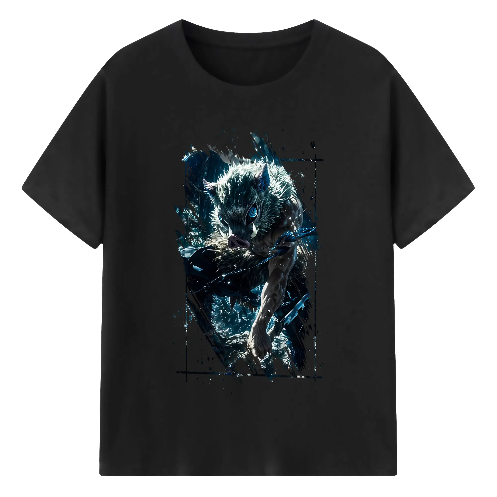 鬼滅の刃 グッズ,嘴平 伊之助 - 綿100% 半袖Tシャツ ・ バックプリント ・ 快適 通気性 ・ 日常使い 散歩 スポーツ用