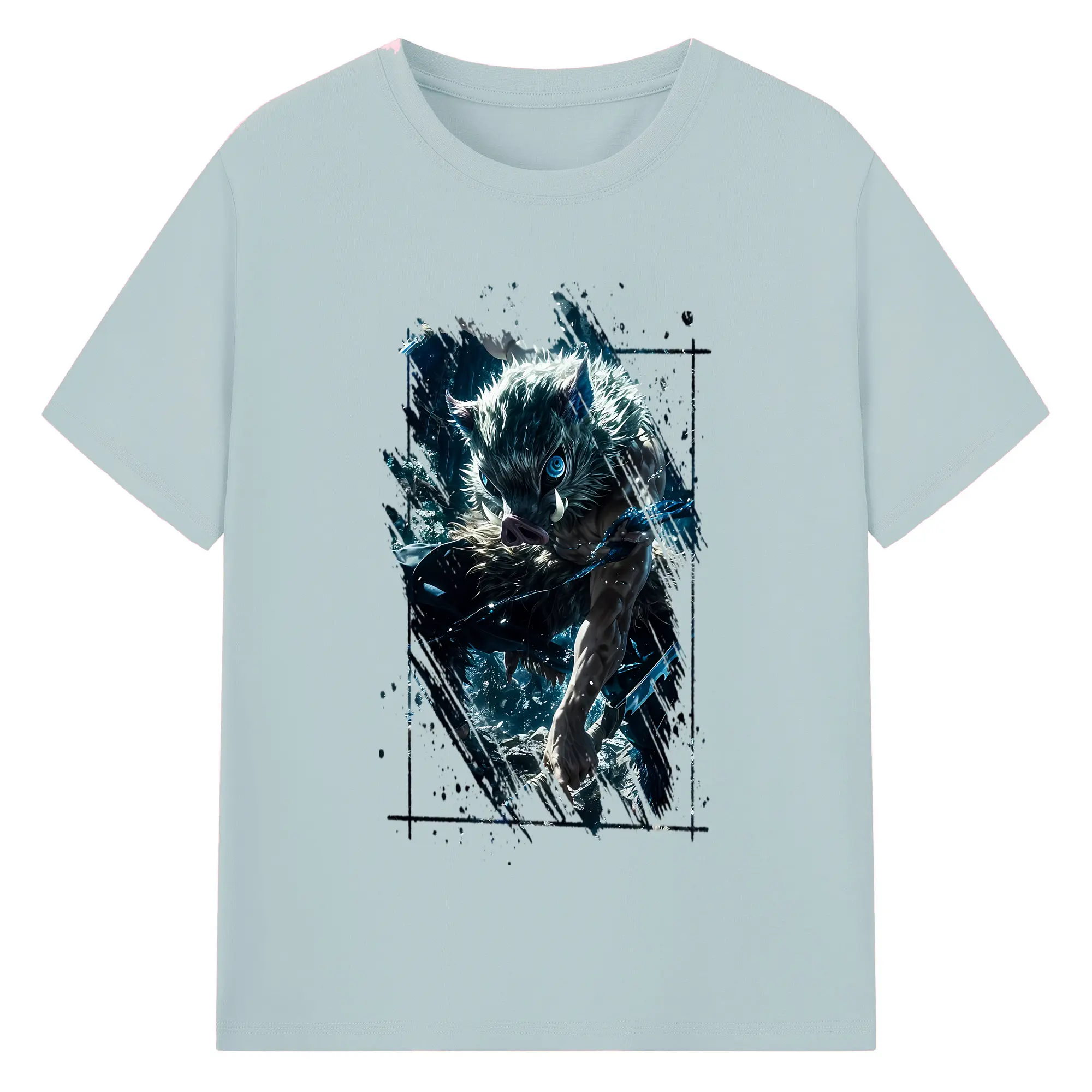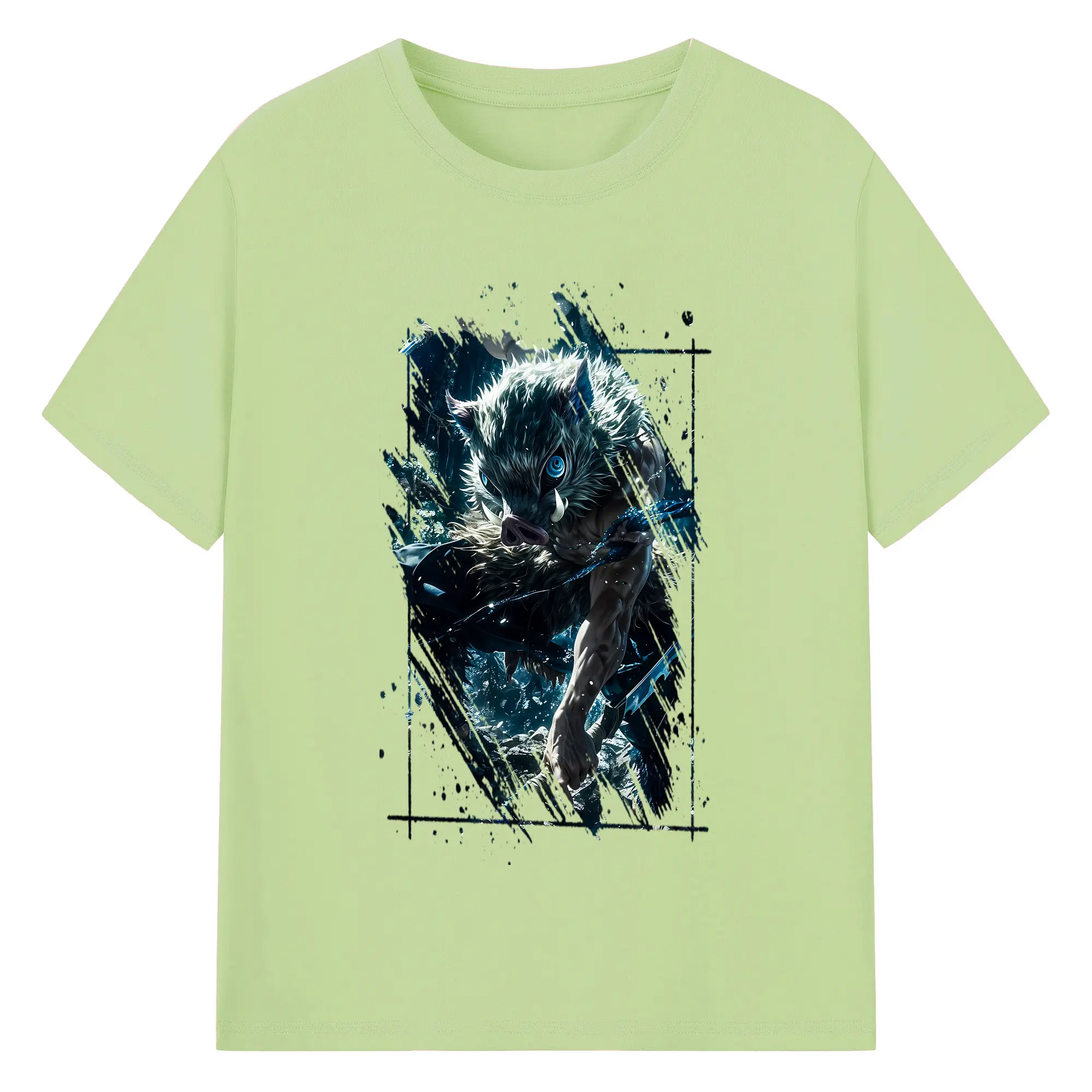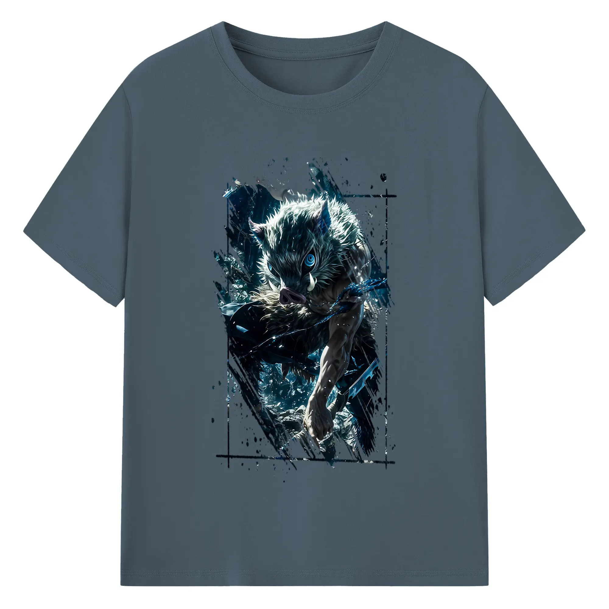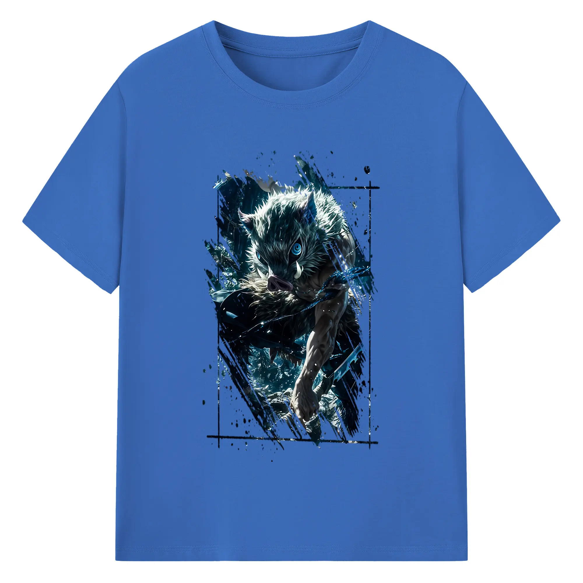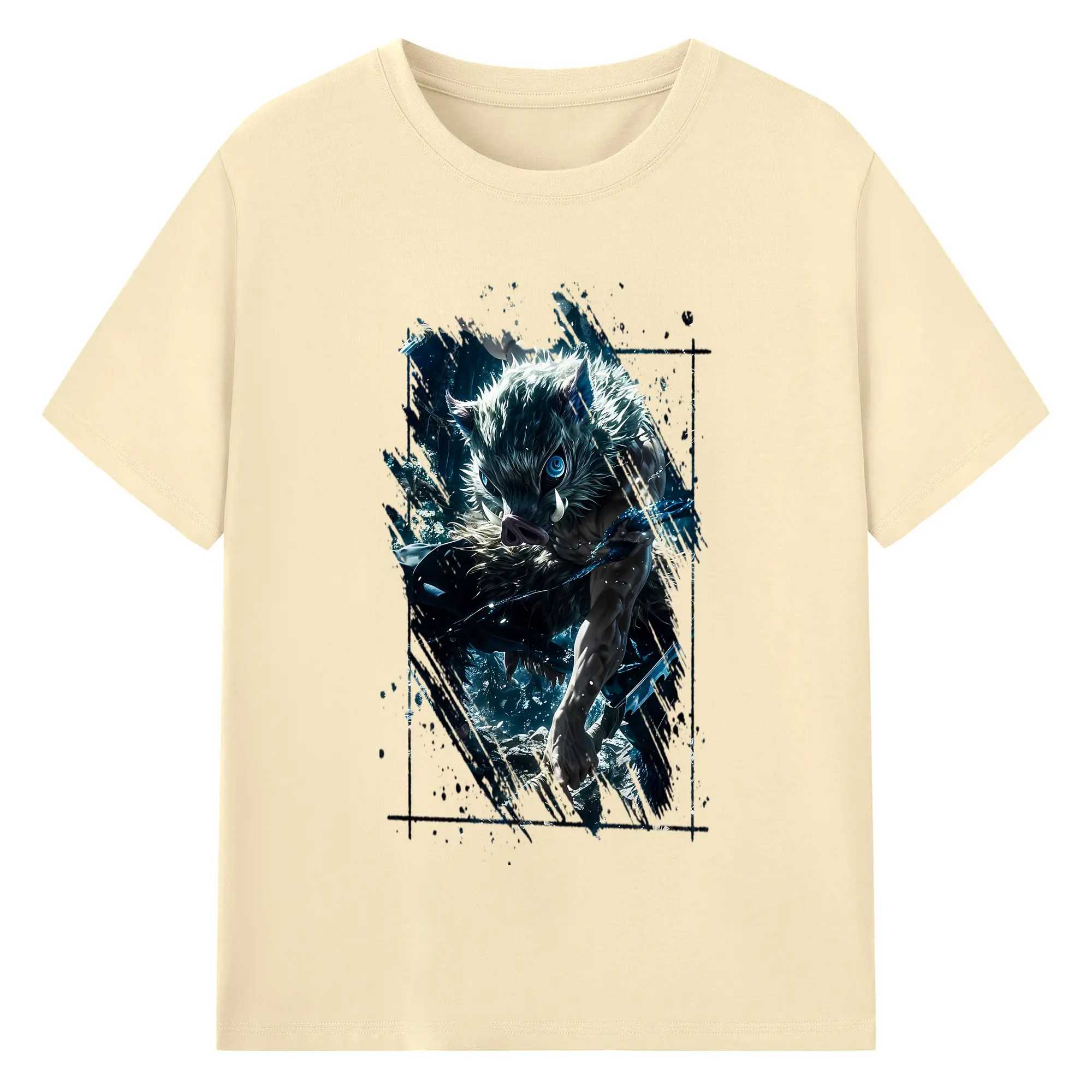 鬼滅の刃 グッズ,嘴平 伊之助 - 綿100% 半袖Tシャツ ・ バックプリント ・ 快適 通気性 ・ 日常使い 散歩 スポーツ用