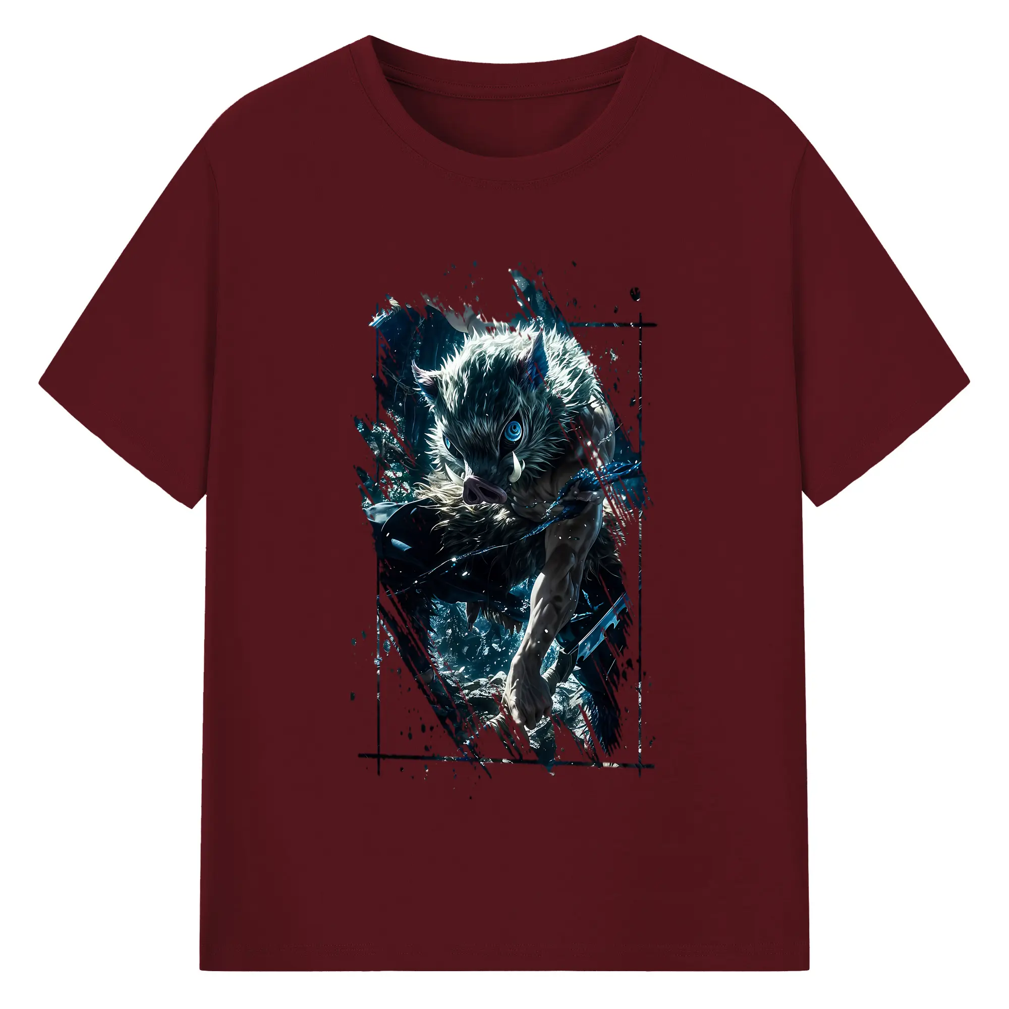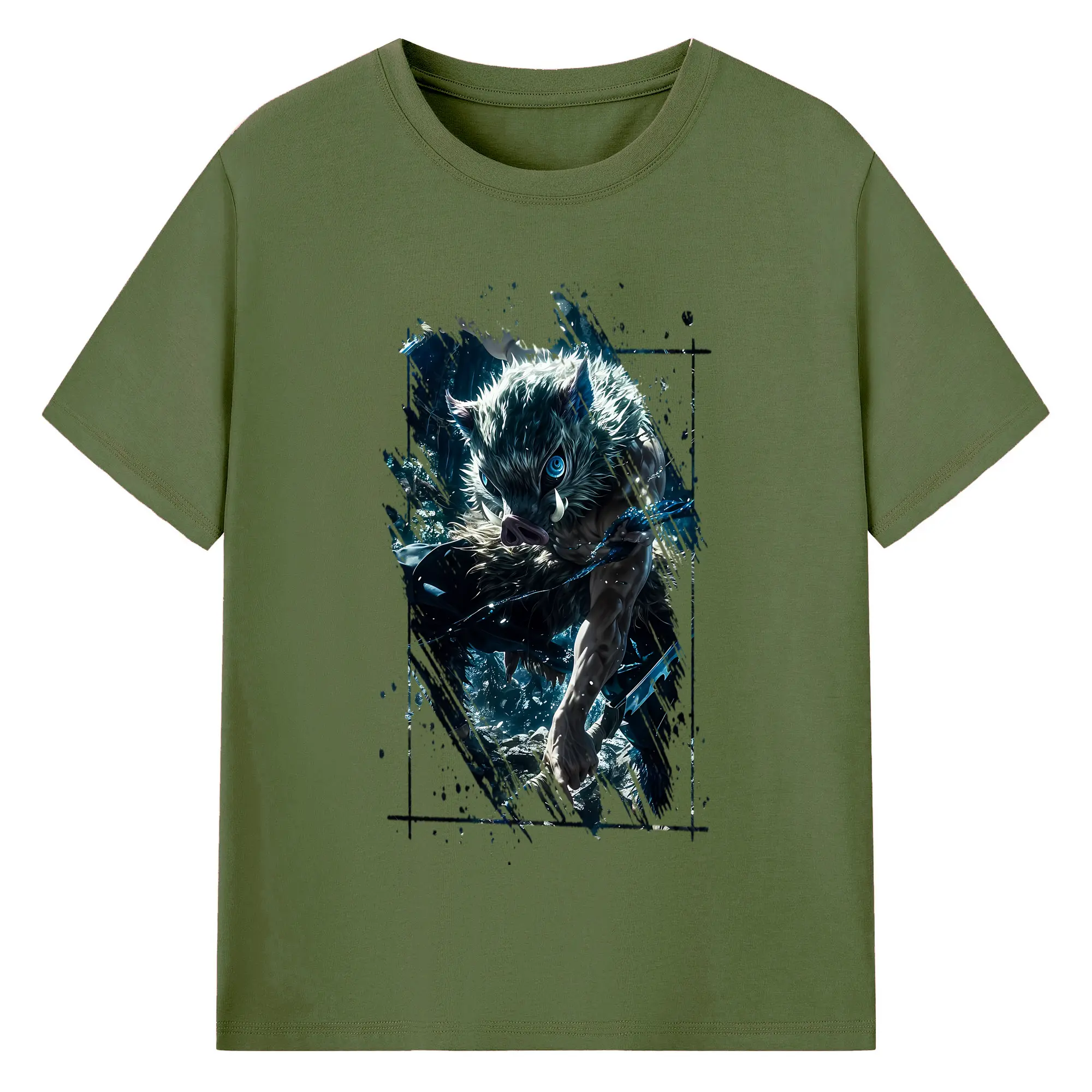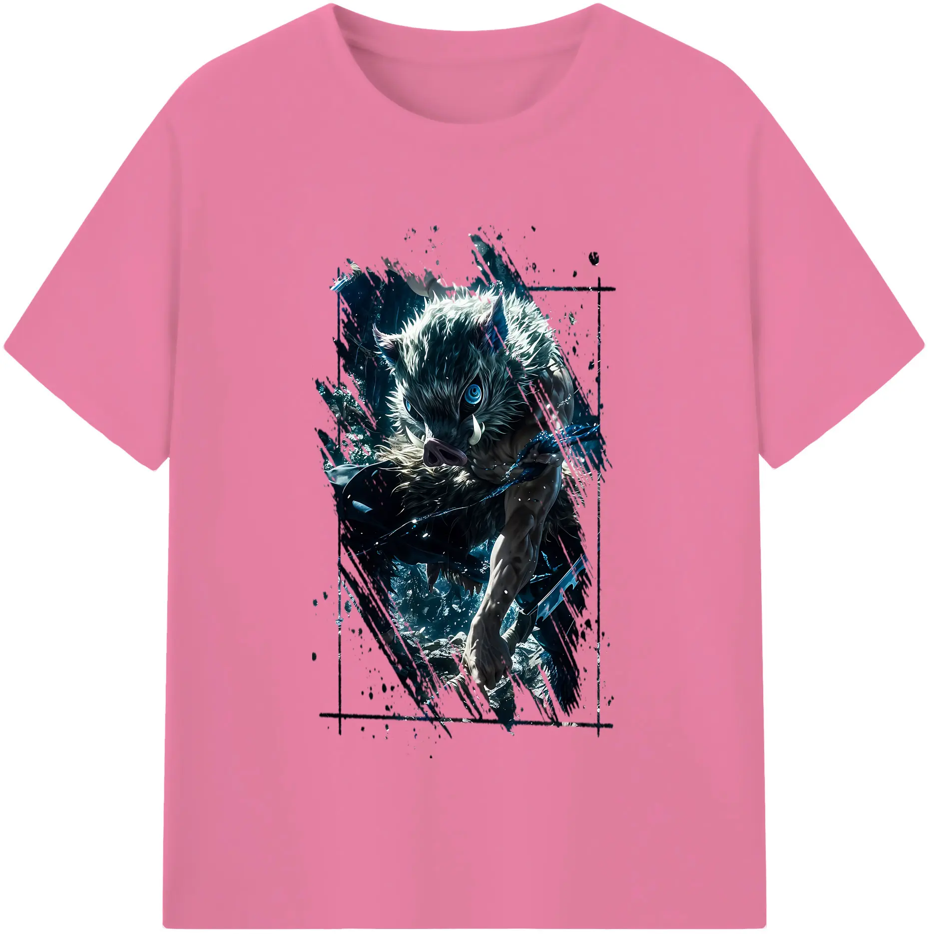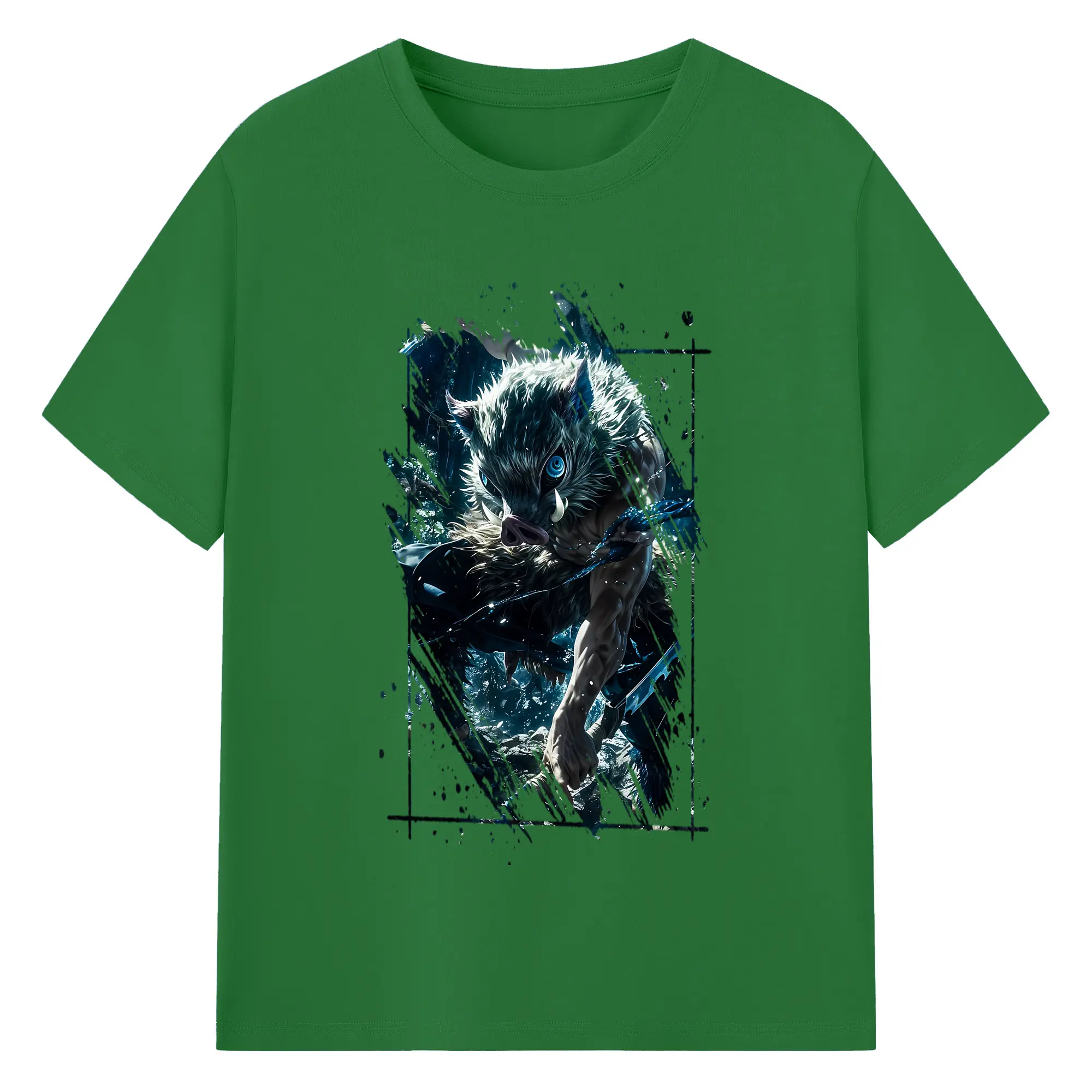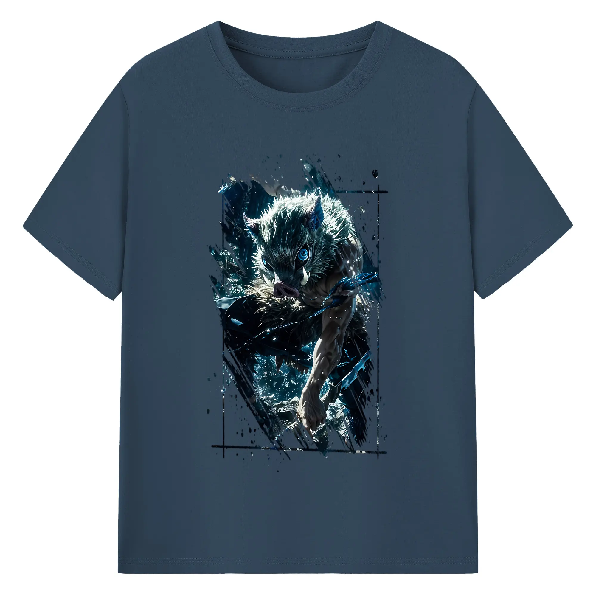 鬼滅の刃 グッズ,嘴平 伊之助 - 綿100% 半袖Tシャツ ・ バックプリント ・ 快適 通気性 ・ 日常使い 散歩 スポーツ用