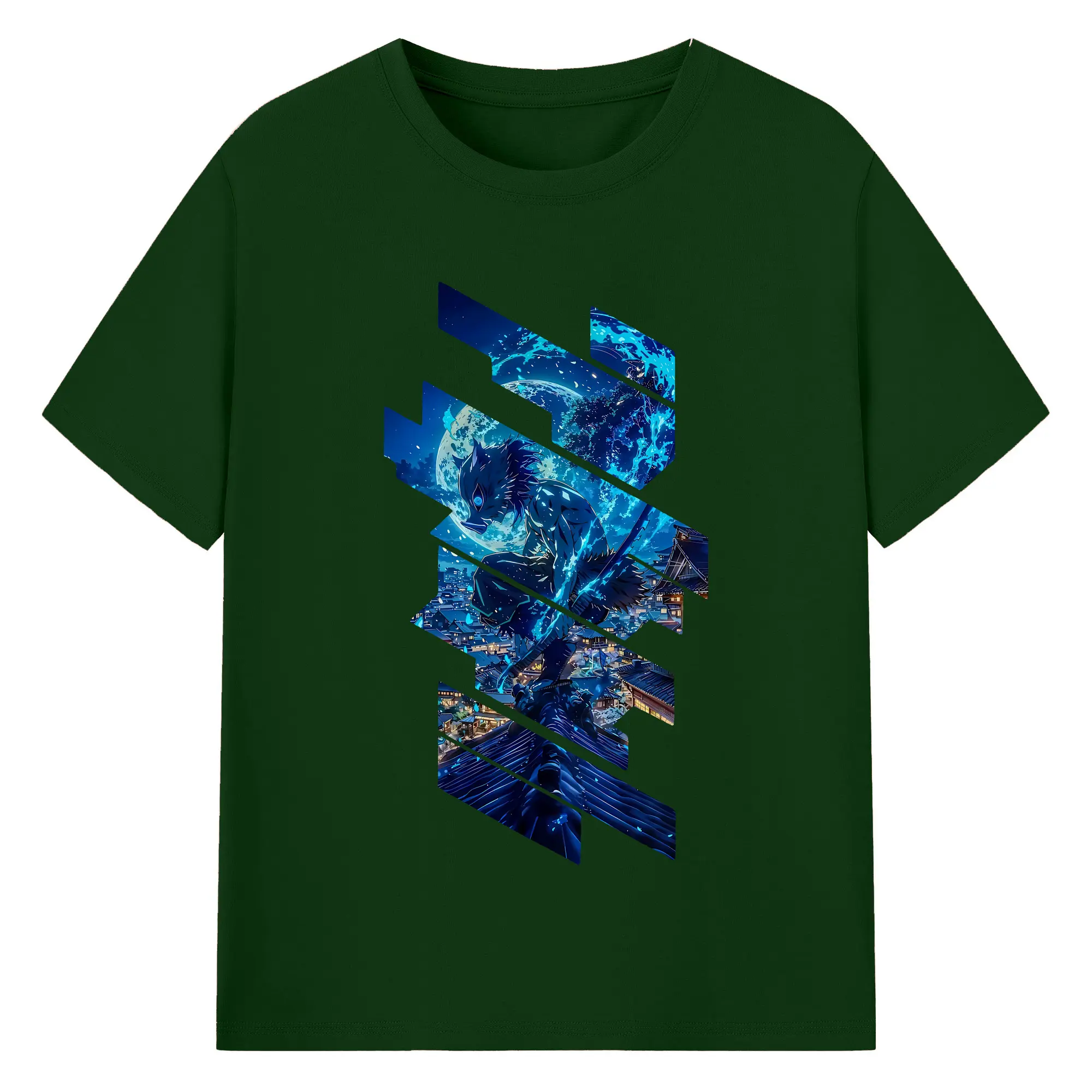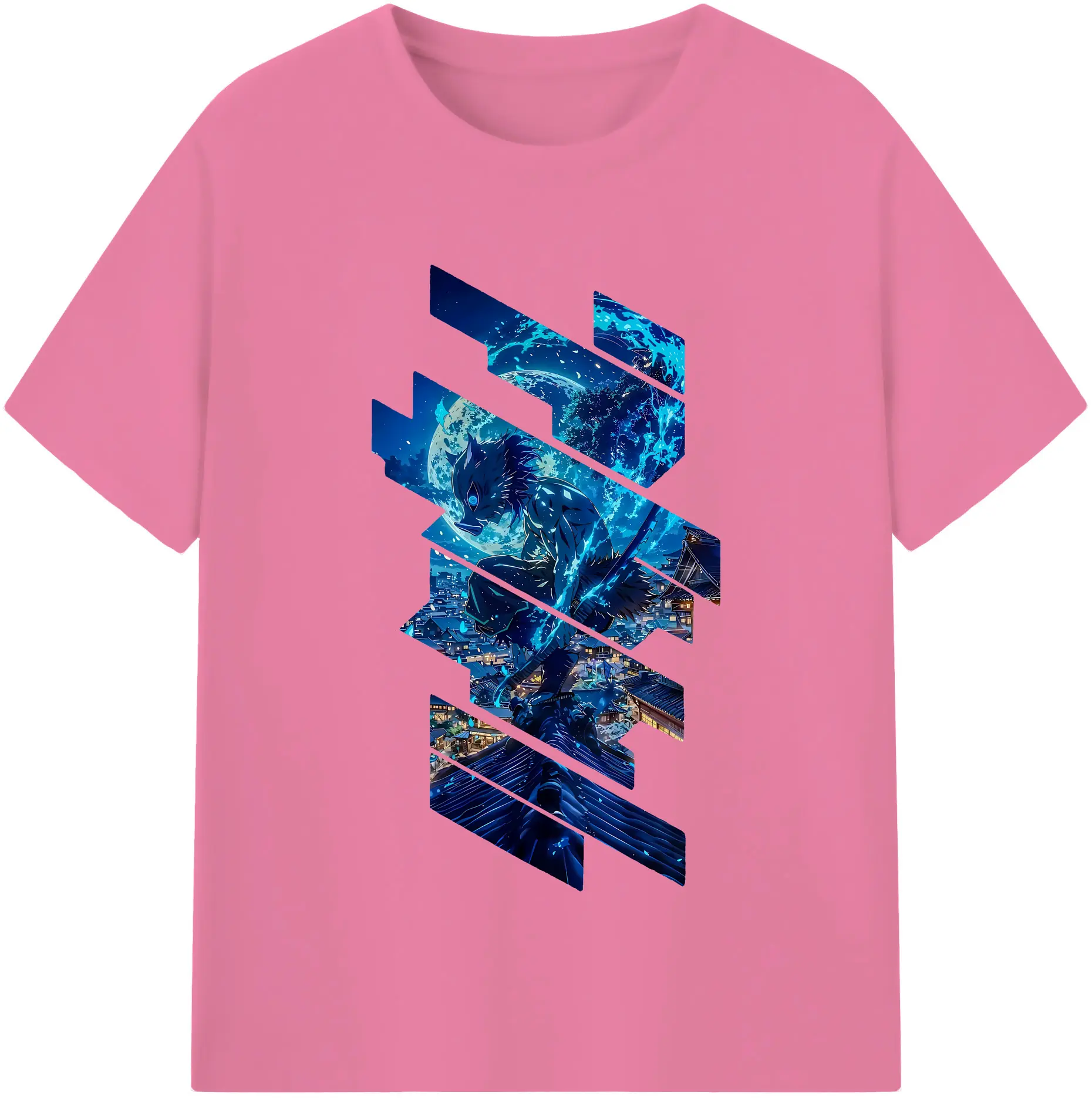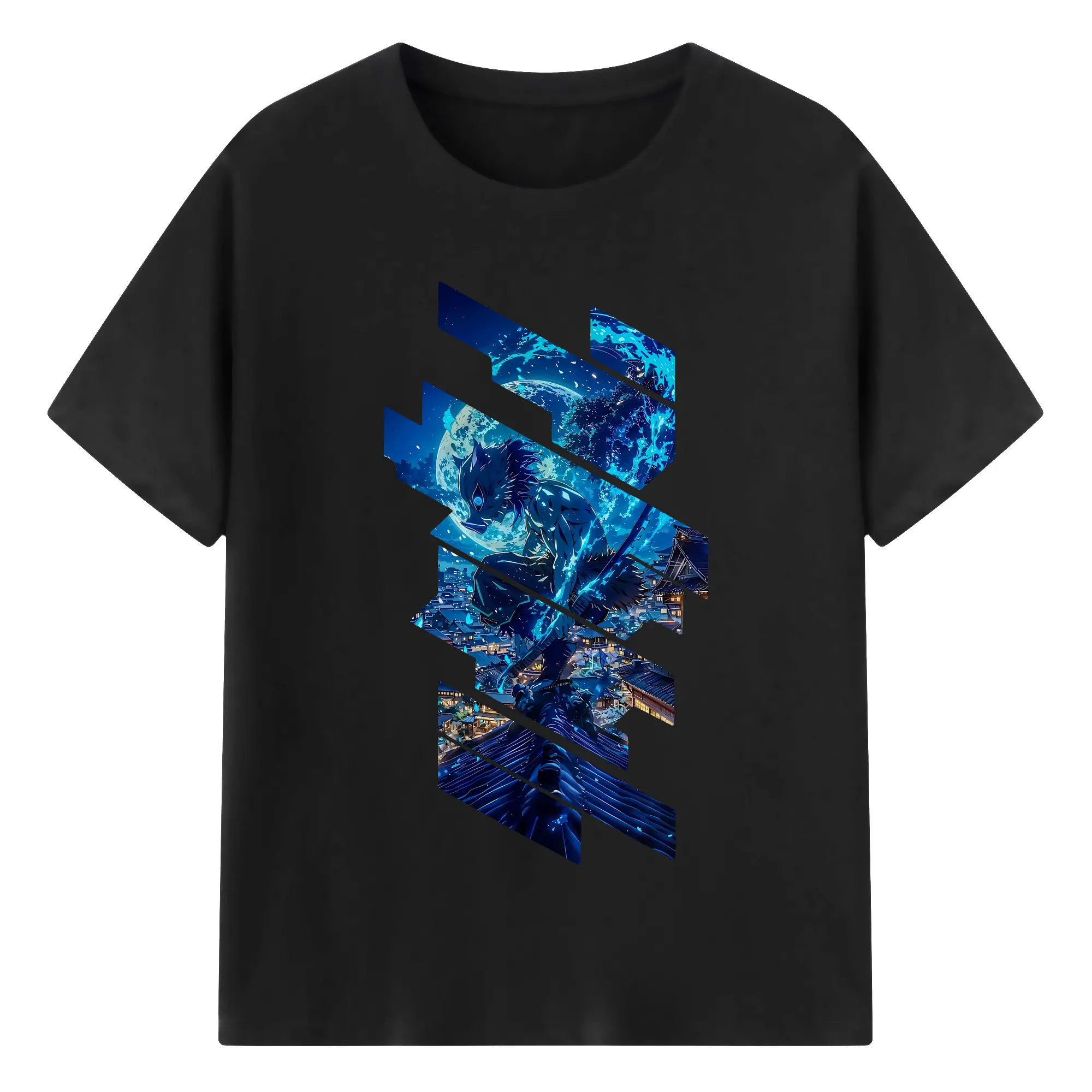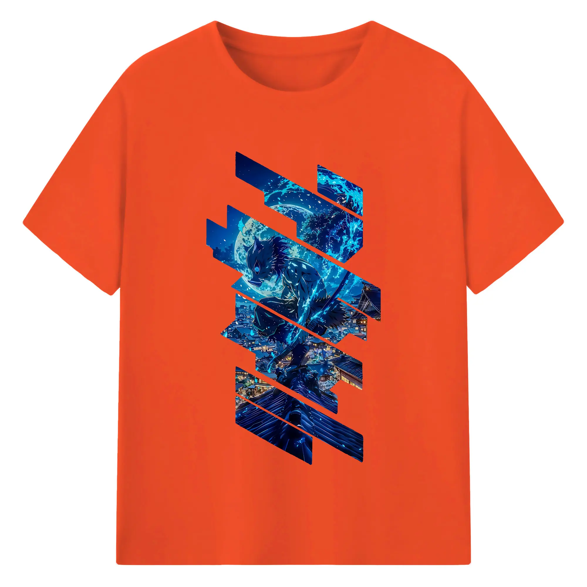鬼滅の刃 グッズ,嘴平 伊之助 - 綿100% 半袖Tシャツ ・ バックプリント ・ 快適 通気性 ・ 日常使い 散歩 スポーツ用
